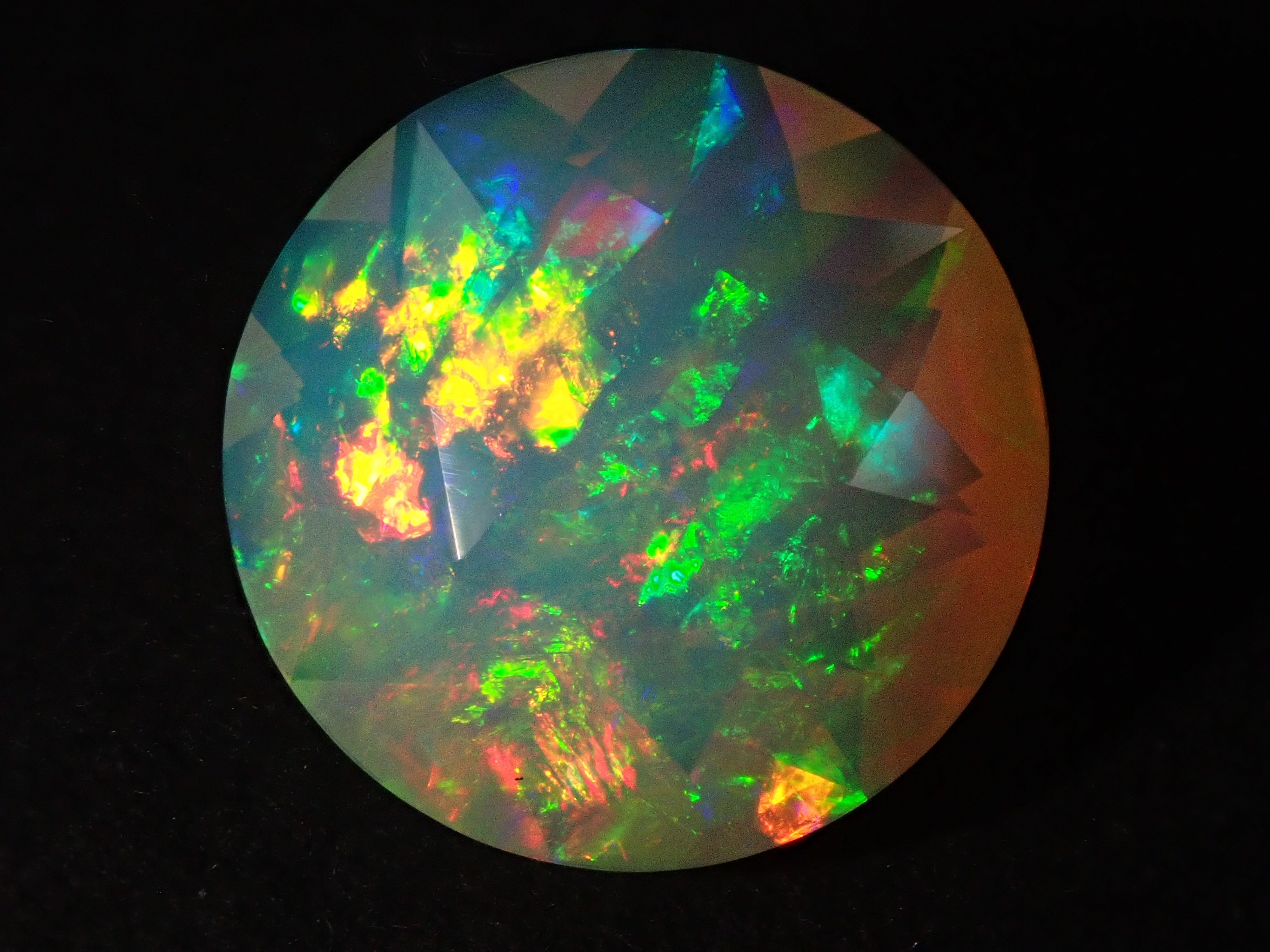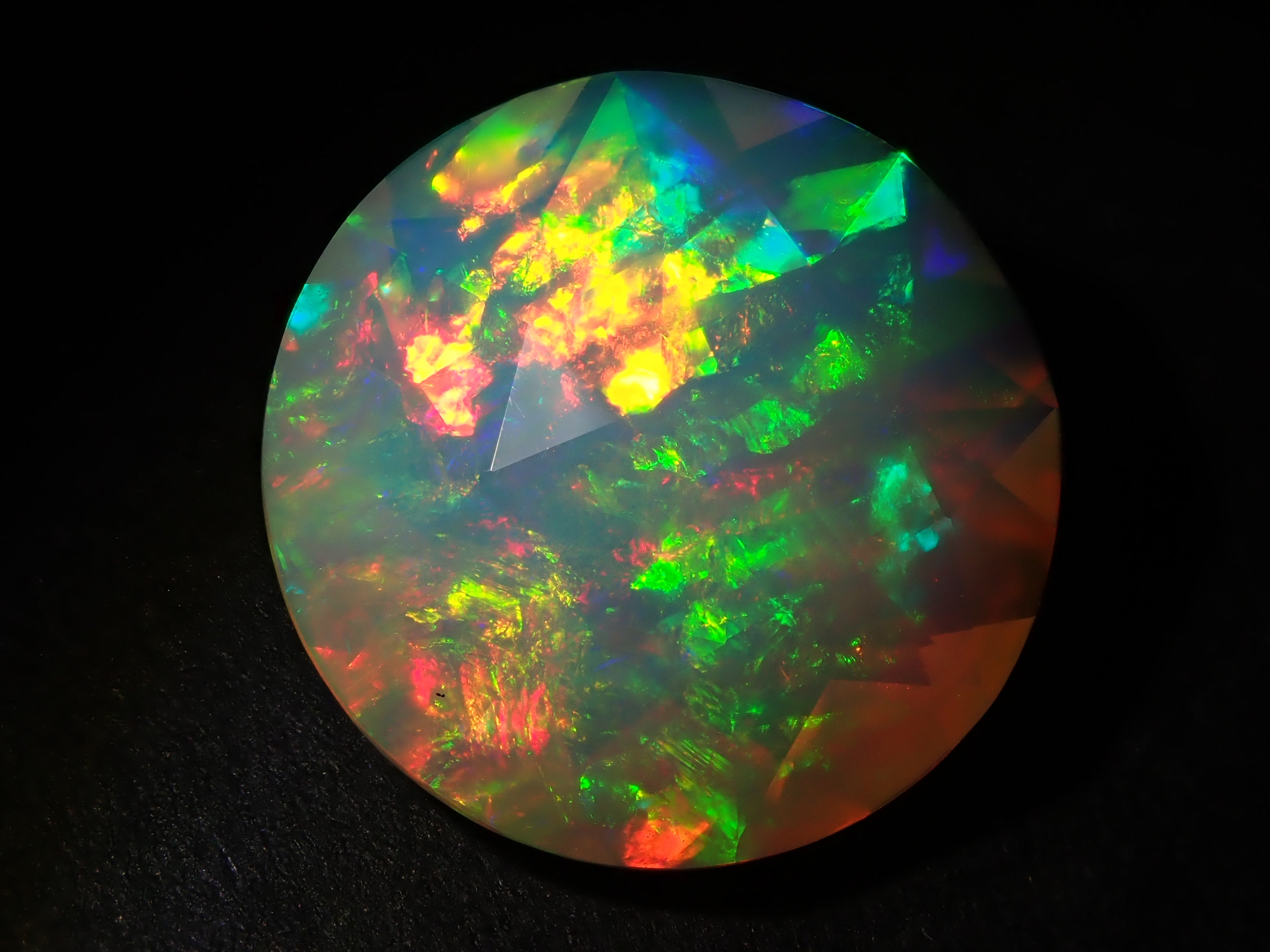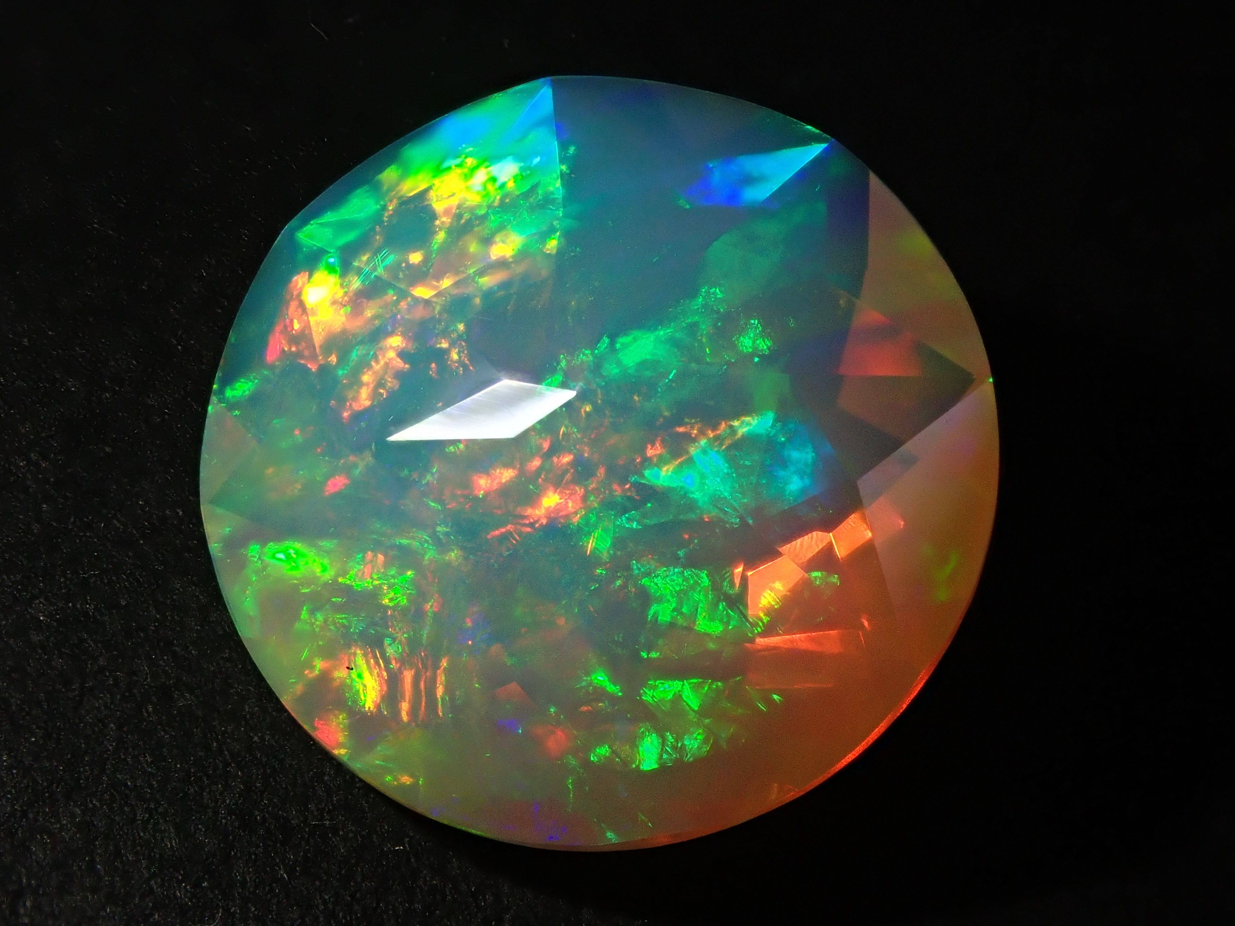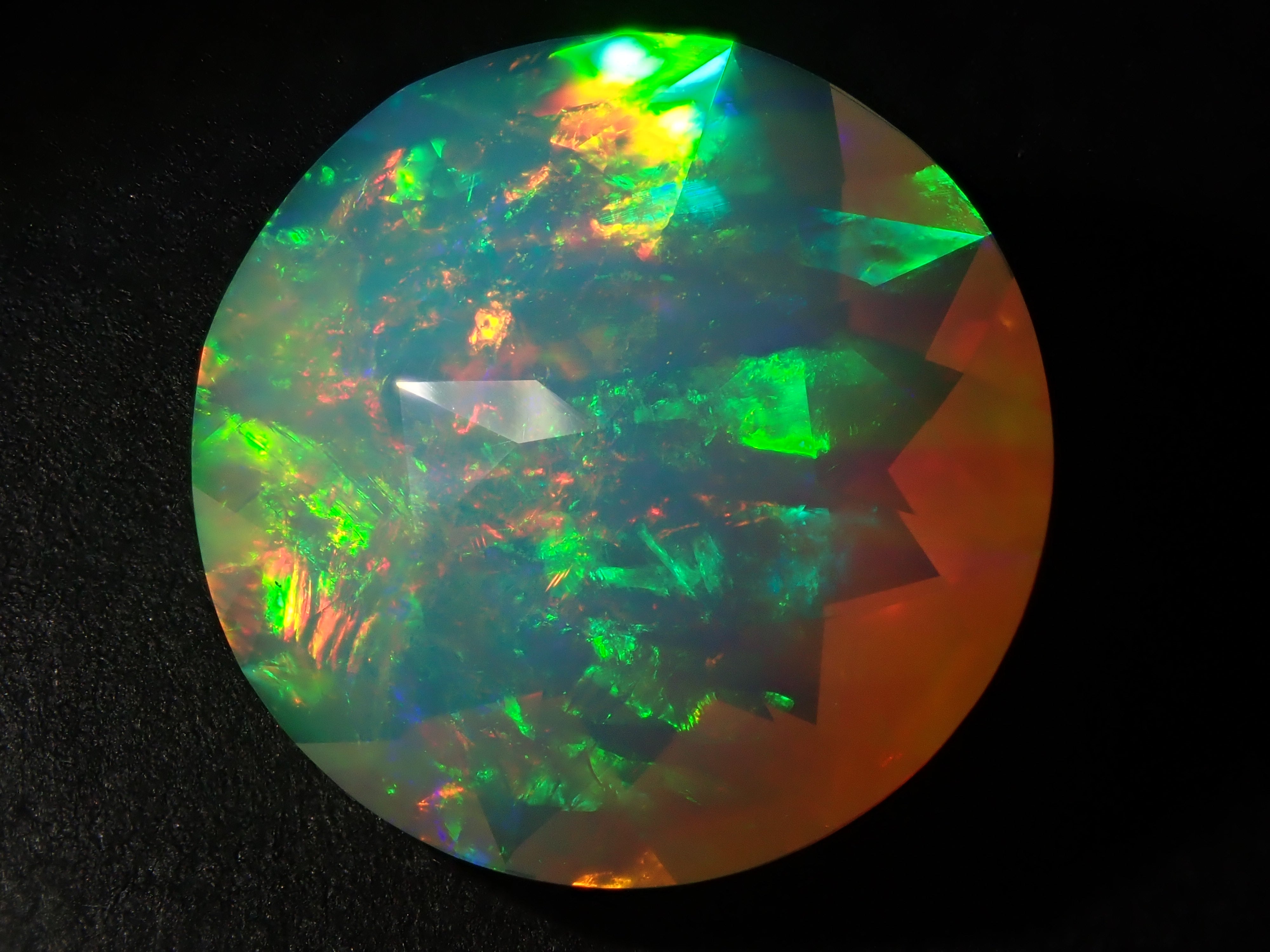 蛋白石是一種閃爍著彩虹色光芒的寶石。蛋白石是一種寶石,有許多不同的類型並具有多種表現形式。有些人被這種魅力所吸引,以至於只收集蛋白石。照片是使用筆燈拍攝的。