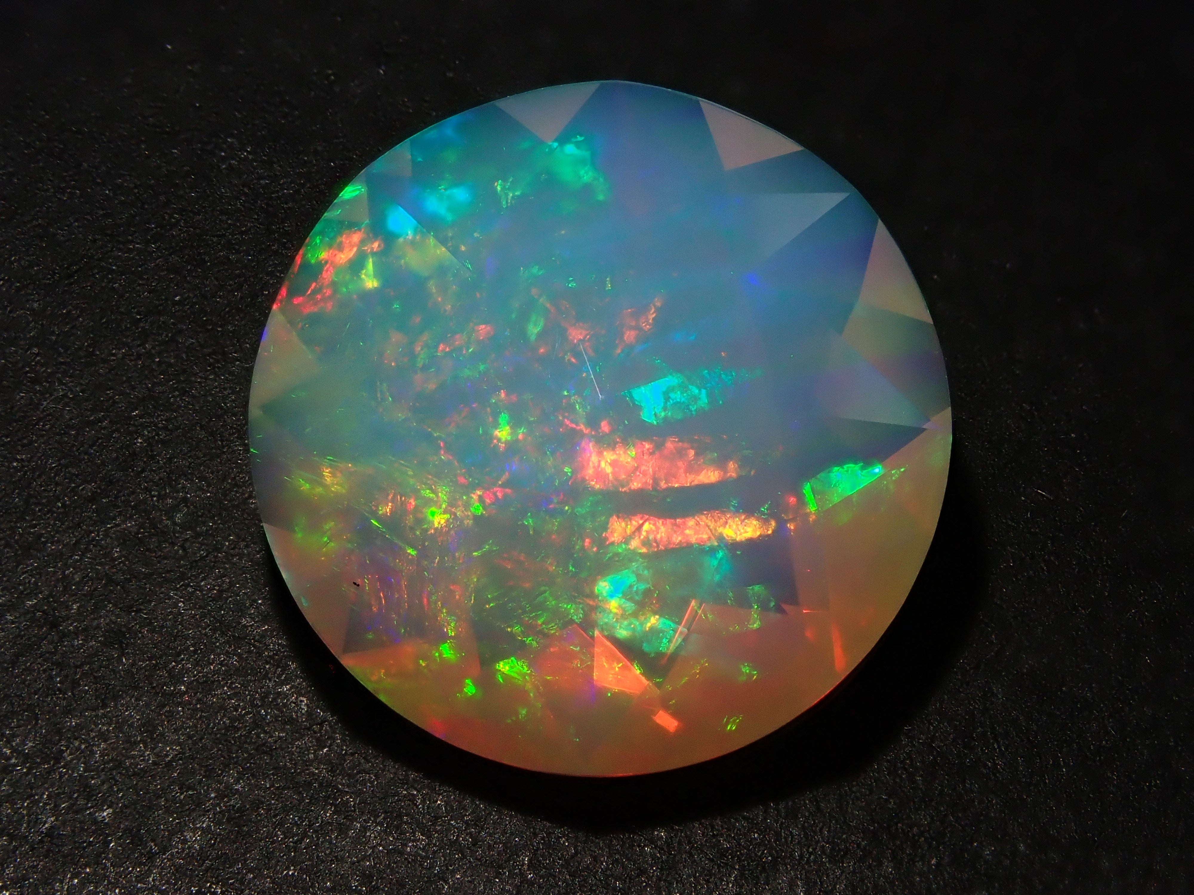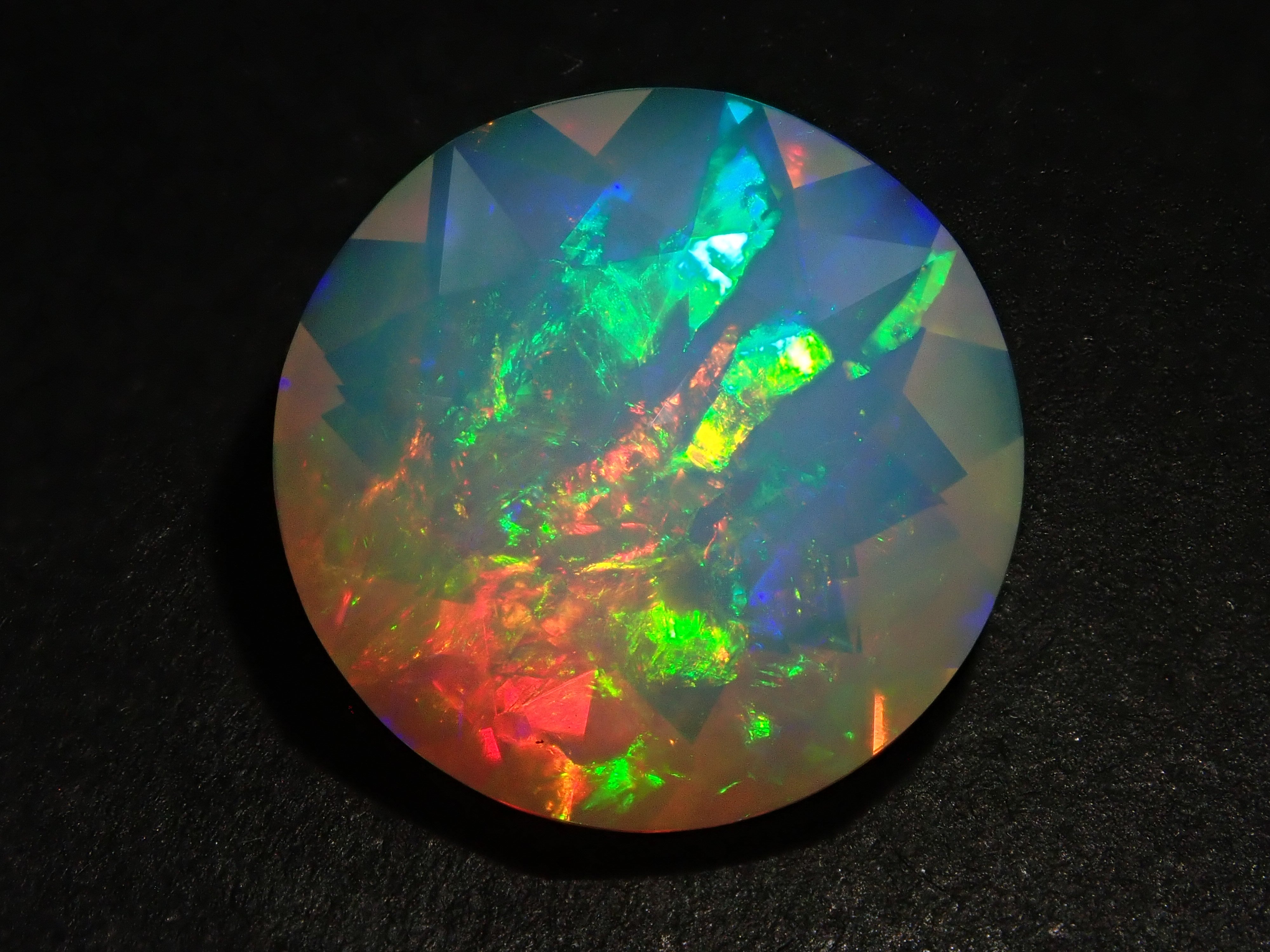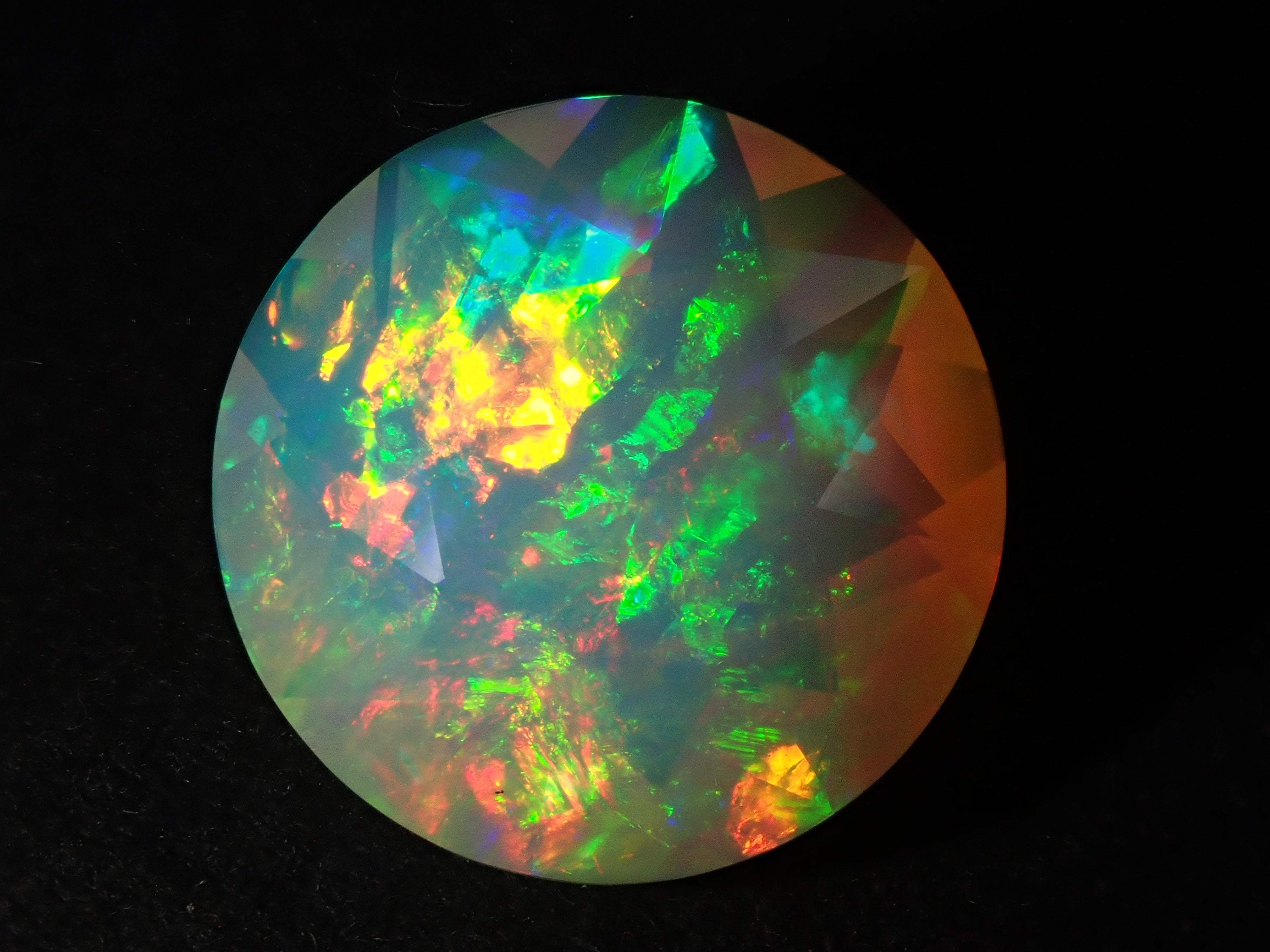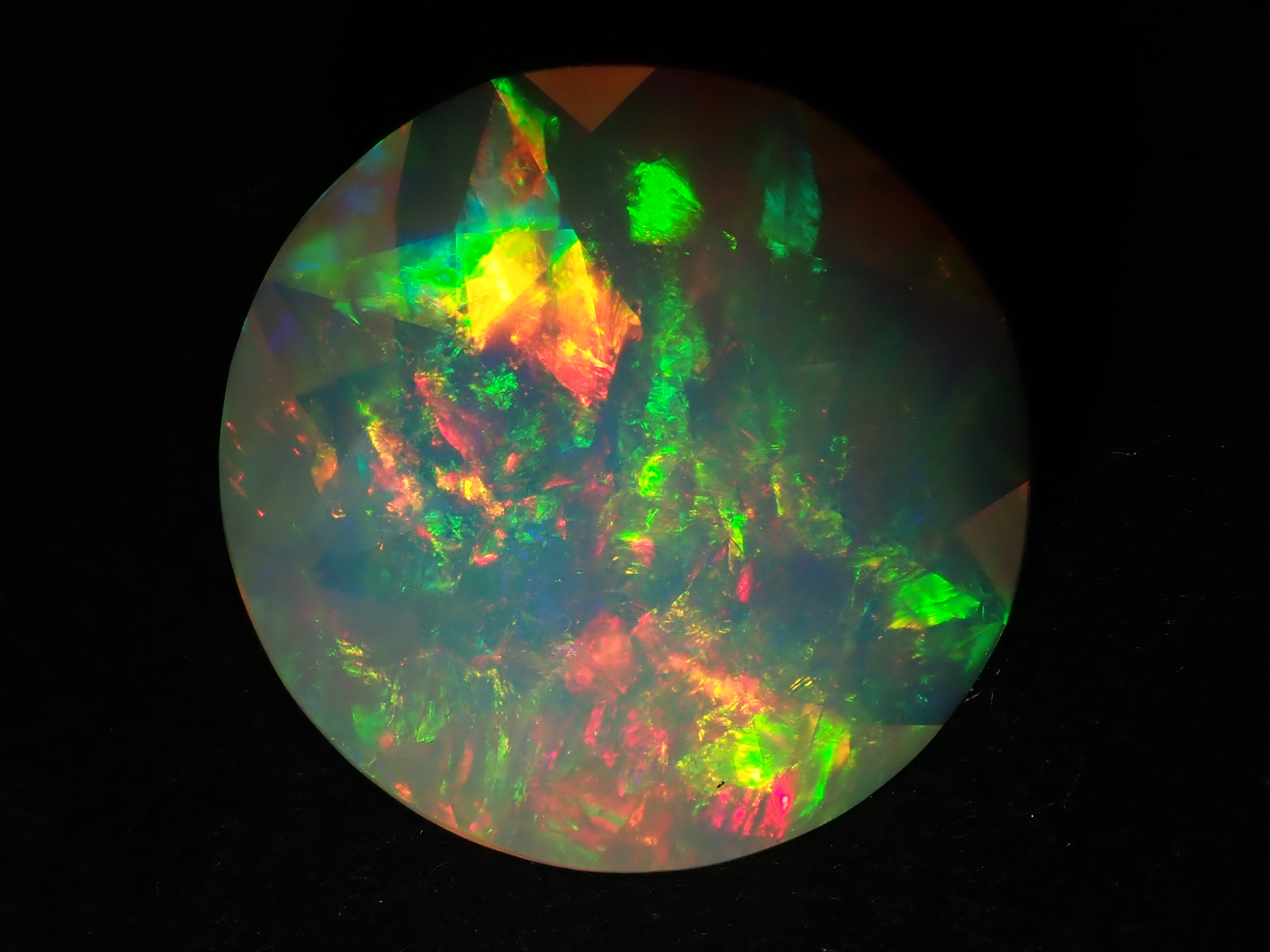 蛋白石是一種閃爍著彩虹色光芒的寶石。蛋白石是一種寶石,有許多不同的類型並具有多種表現形式。有些人被這種魅力所吸引,以至於只收集蛋白石。照片是使用筆燈拍攝的。