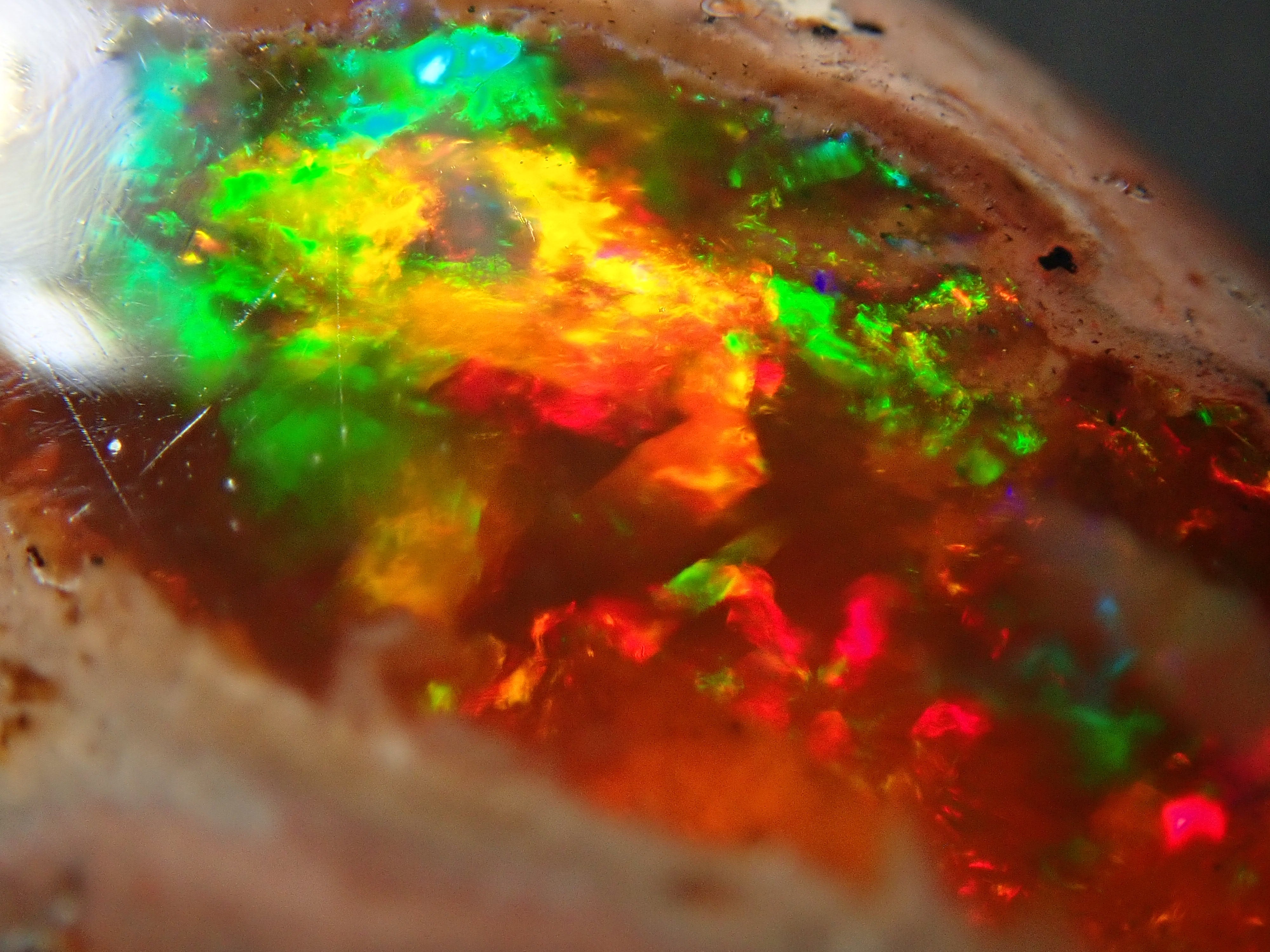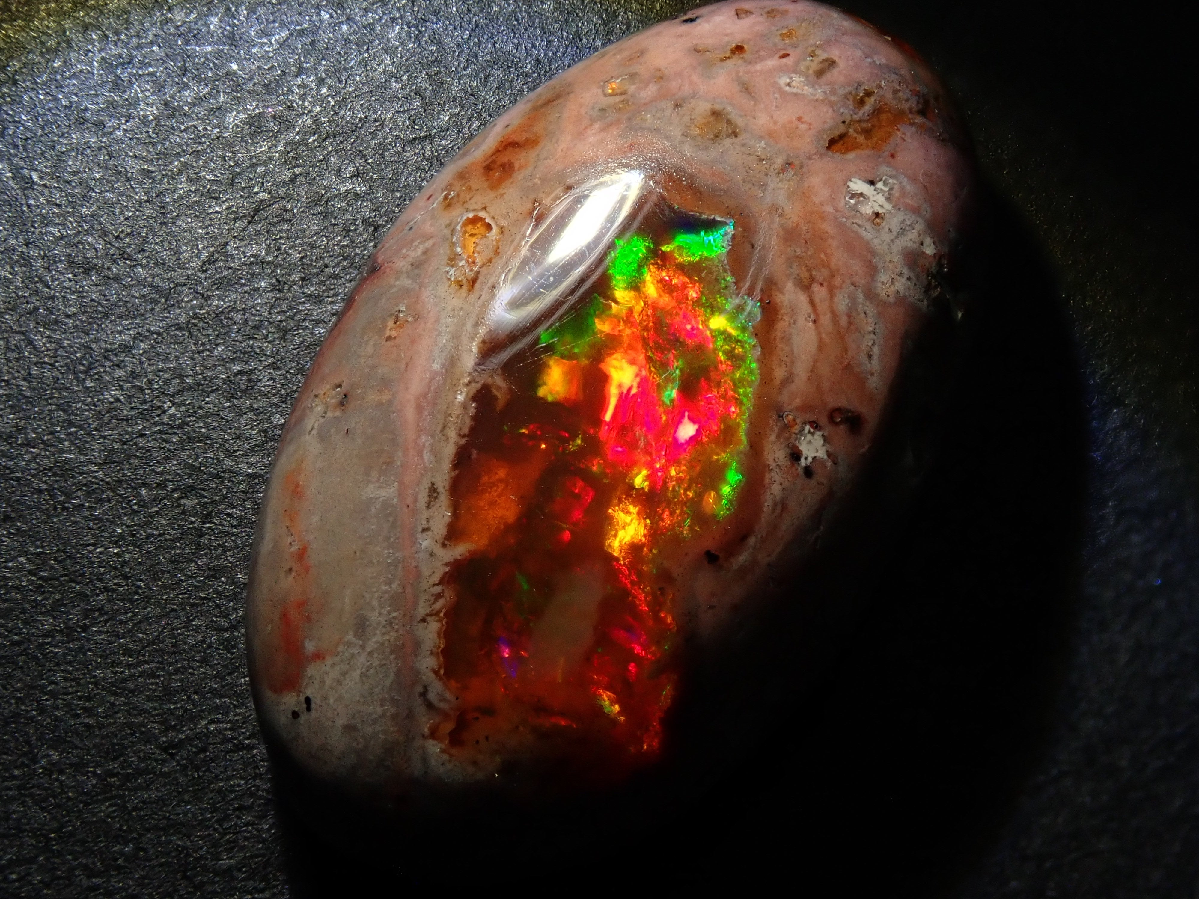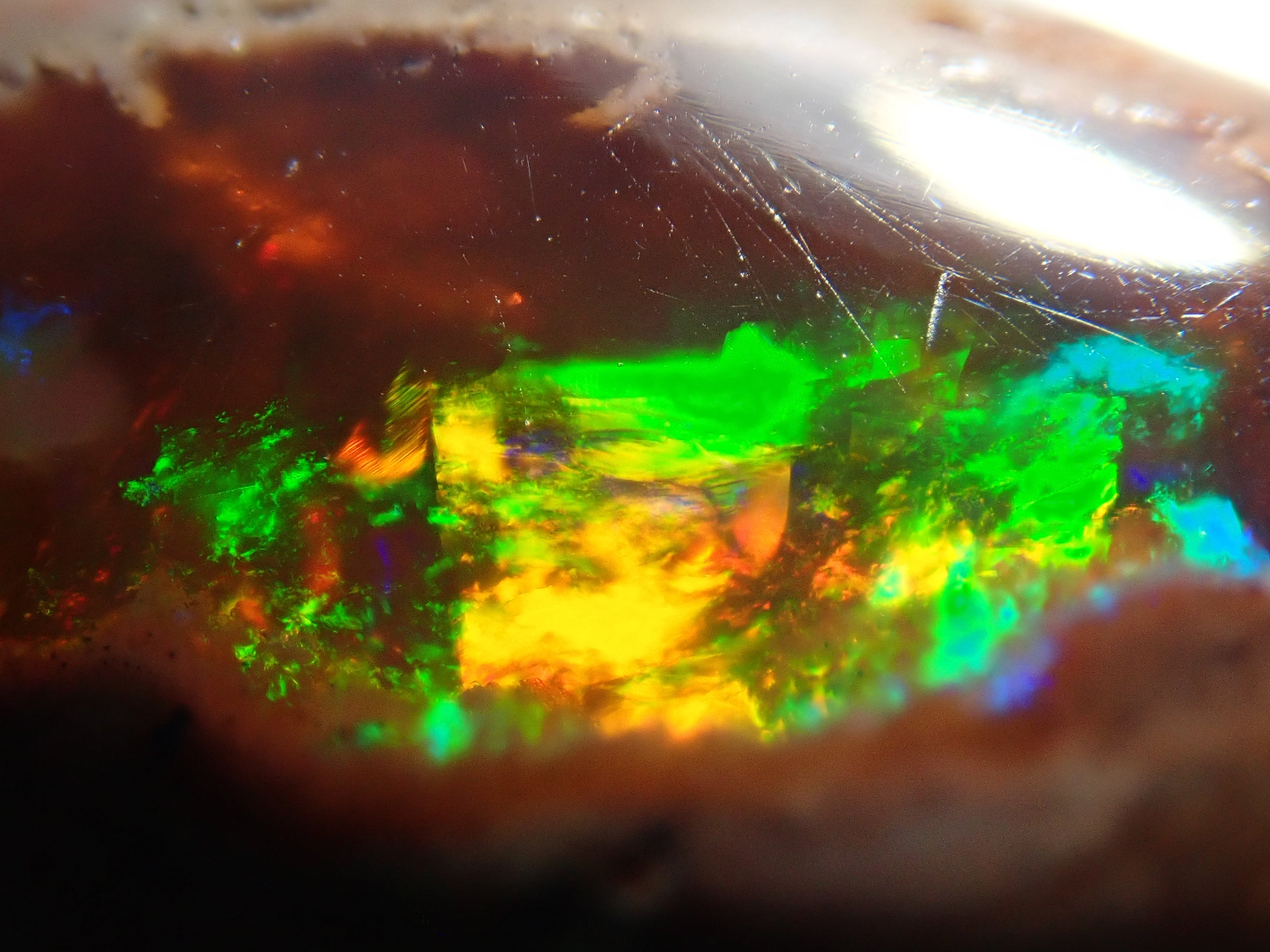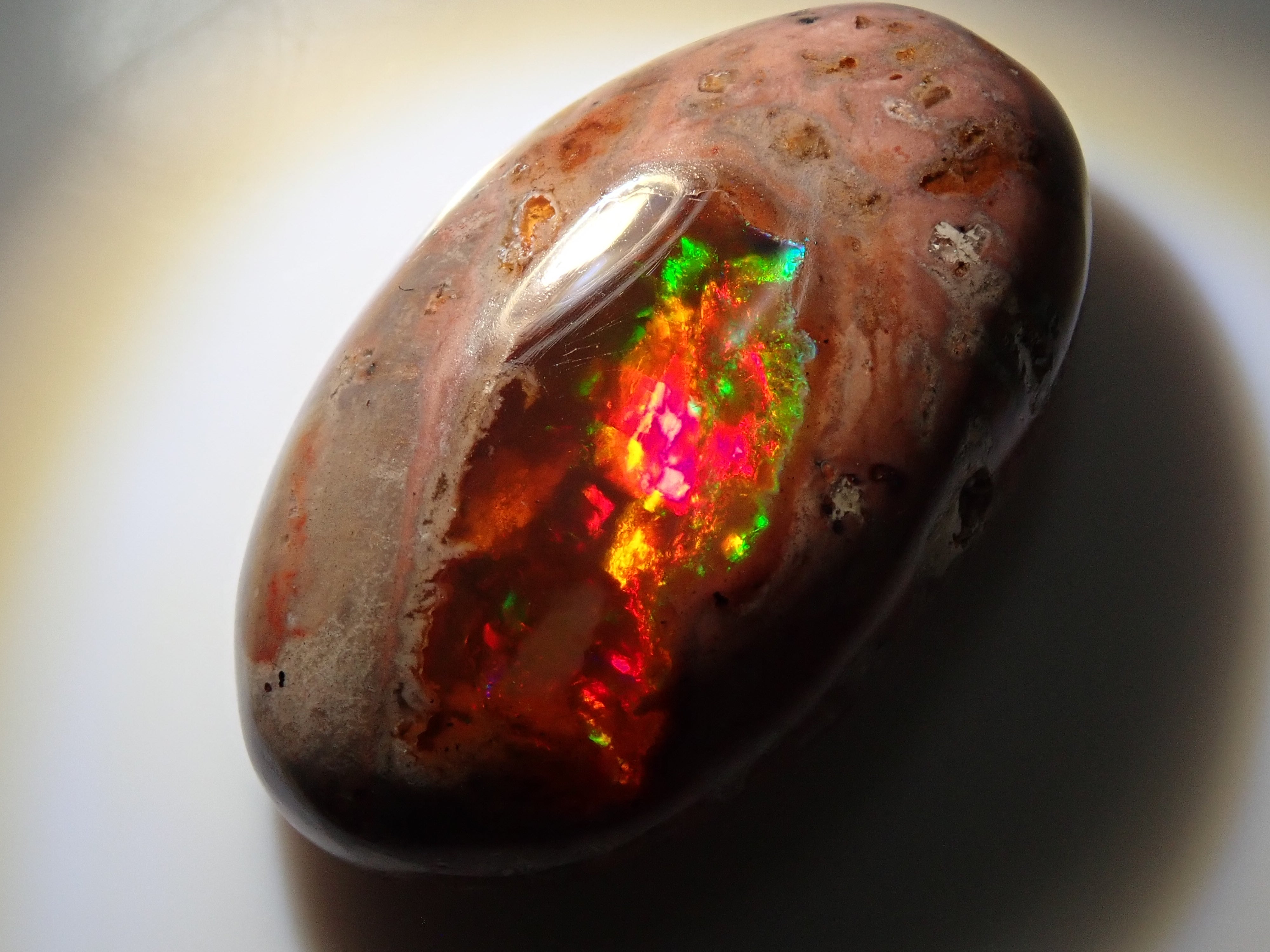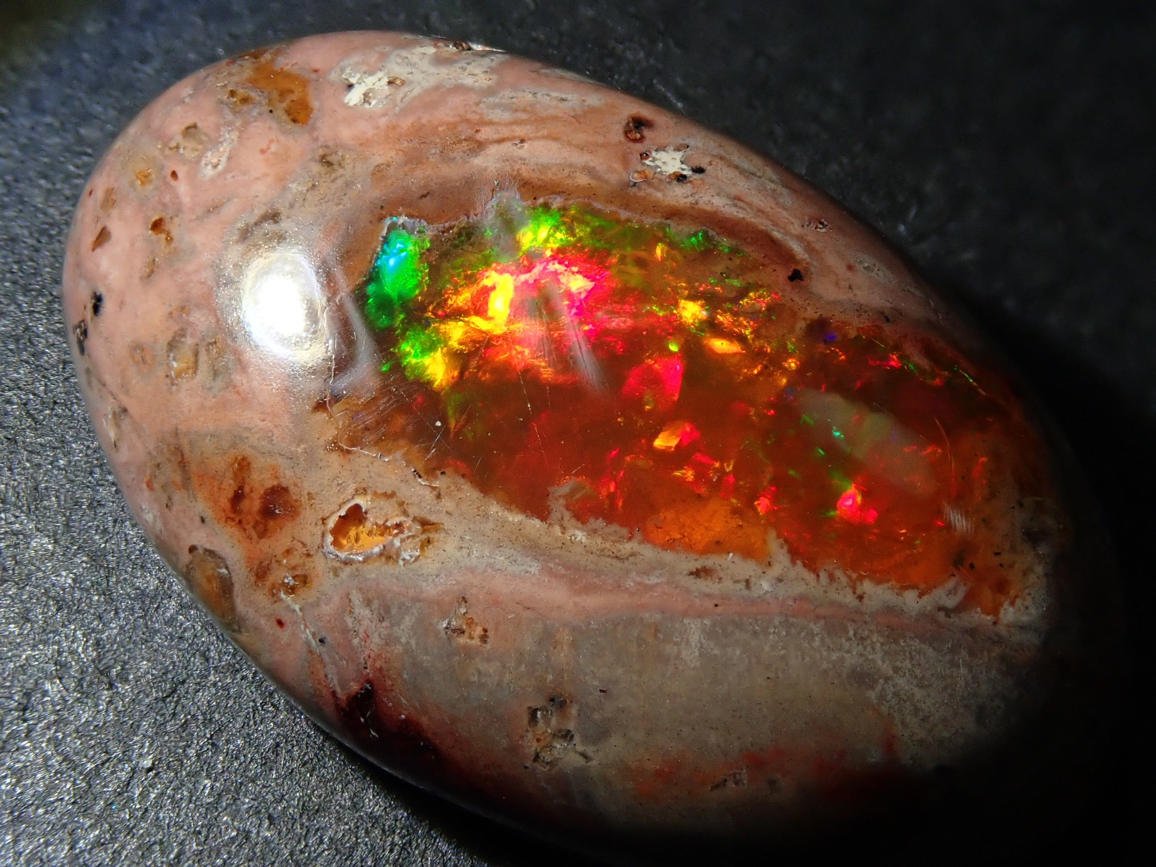蛋白石是一種閃爍著彩虹色光芒的寶石。蛋白石有多種類型,但其中坎特拉蛋白石最受收藏家歡迎。它是一種寶石,擁有許多感受到大地活力的愛好者,甚至可以鬆散地欣賞它。 Cantera 蛋白石原本是一種有許多環的寶石。照片是使用筆燈拍攝的。墨西哥坎特拉蛋白石,色彩豐富。