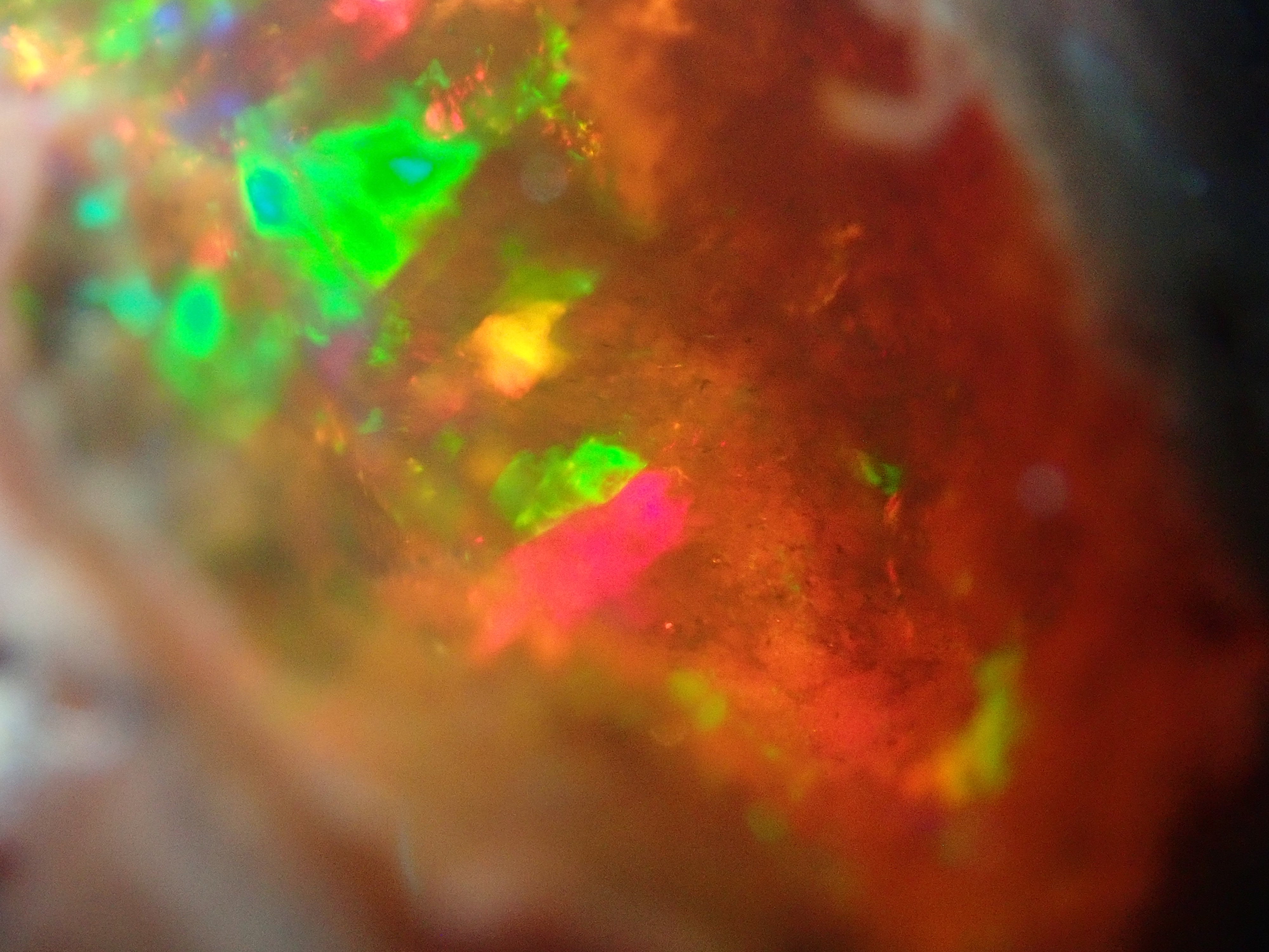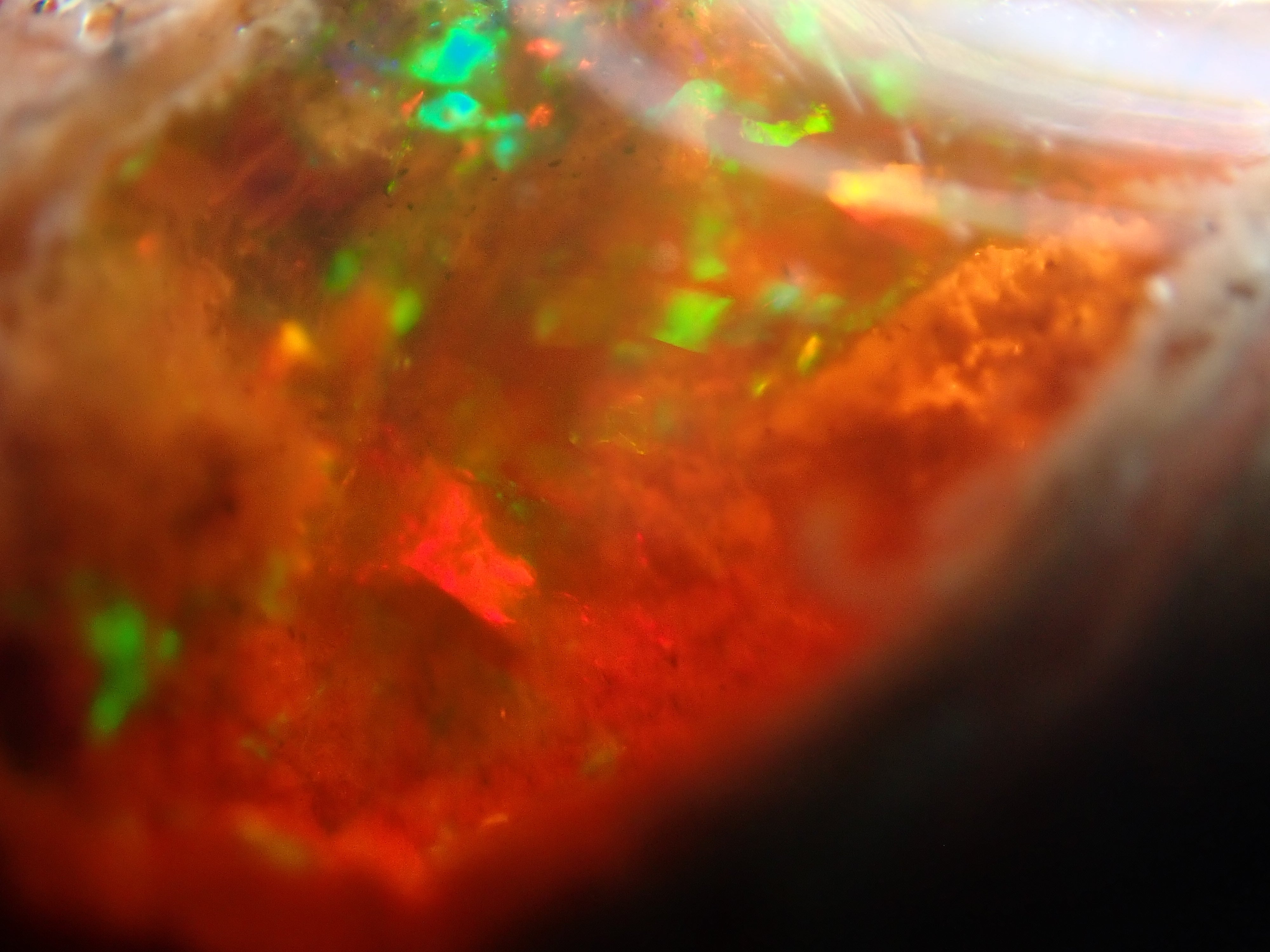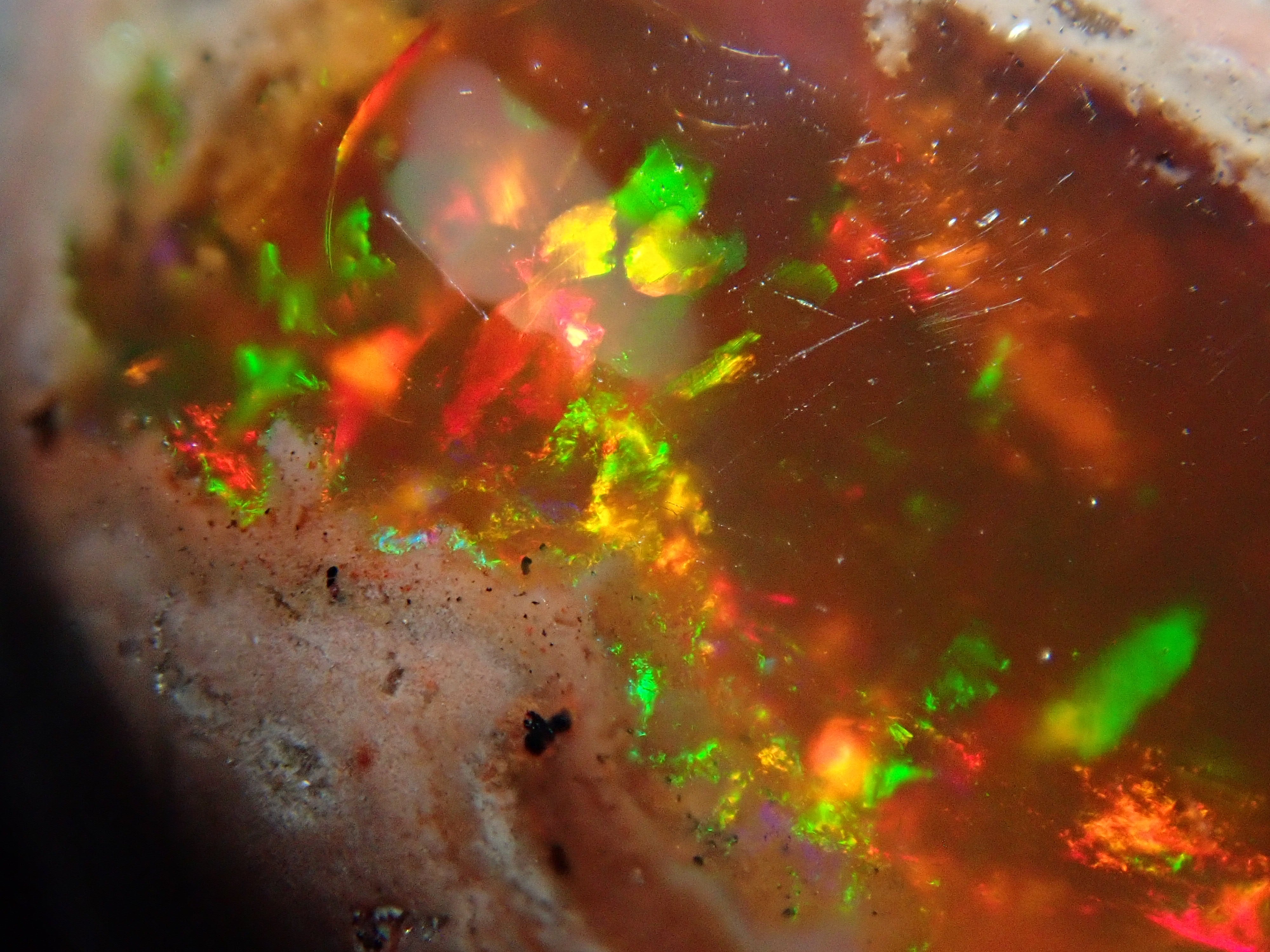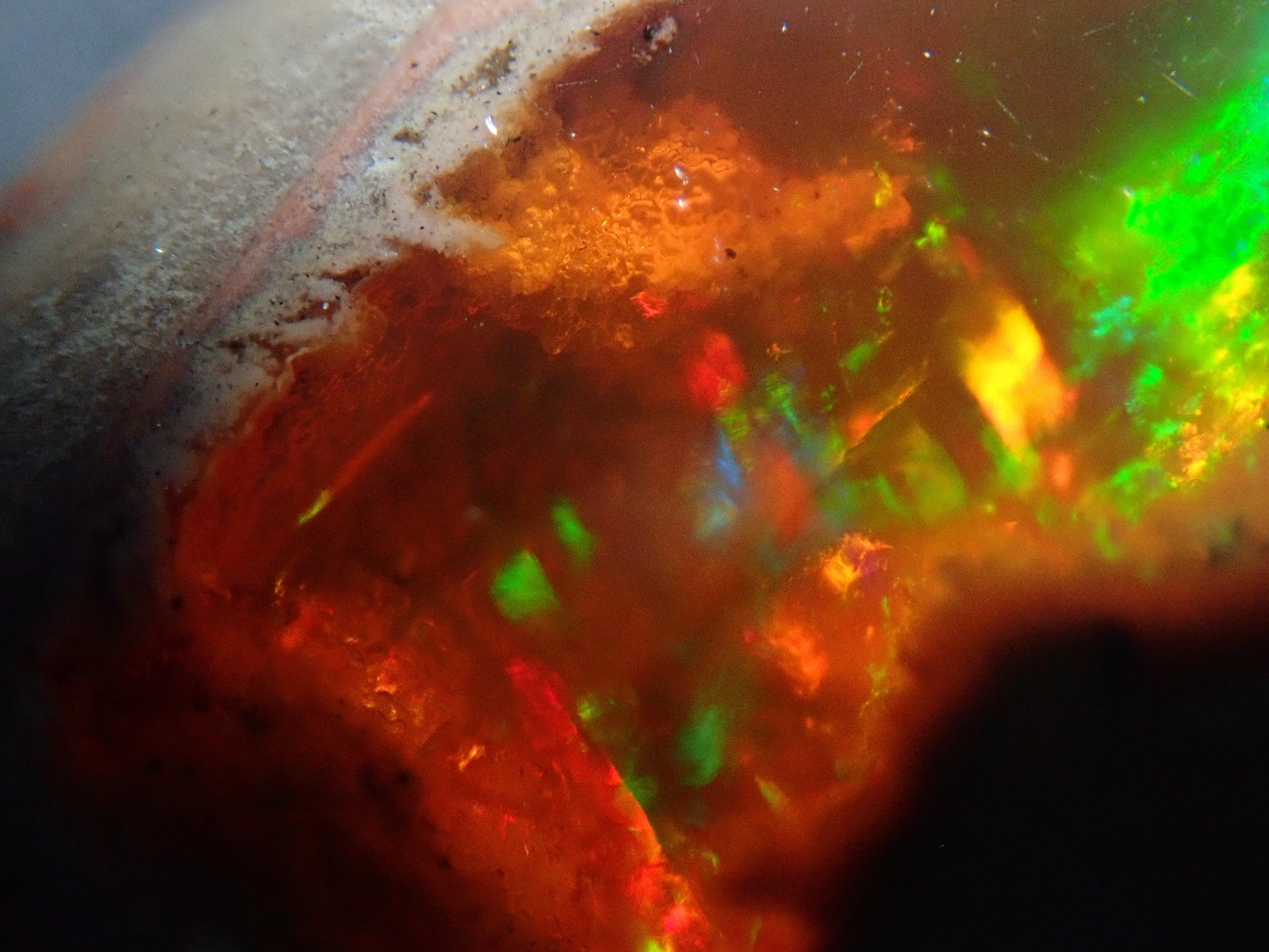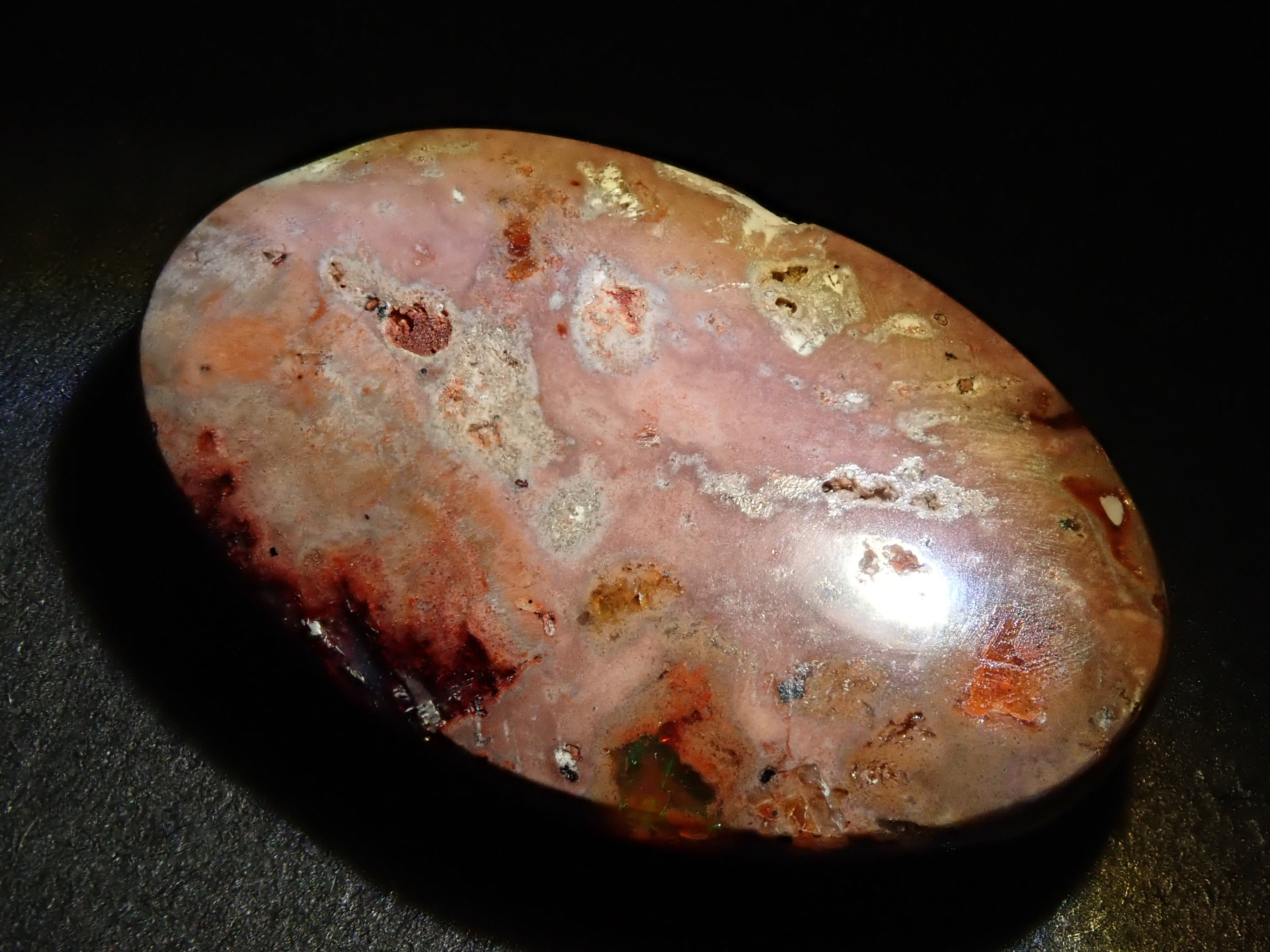 蛋白石是一種閃爍著彩虹色光芒的寶石。蛋白石有多種類型,但其中坎特拉蛋白石最受收藏家歡迎。它是一種寶石,擁有許多感受到大地活力的愛好者,甚至可以鬆散地欣賞它。 Cantera 蛋白石原本是一種有許多環的寶石。照片是使用筆燈拍攝的。墨西哥坎特拉蛋白石,色彩豐富。