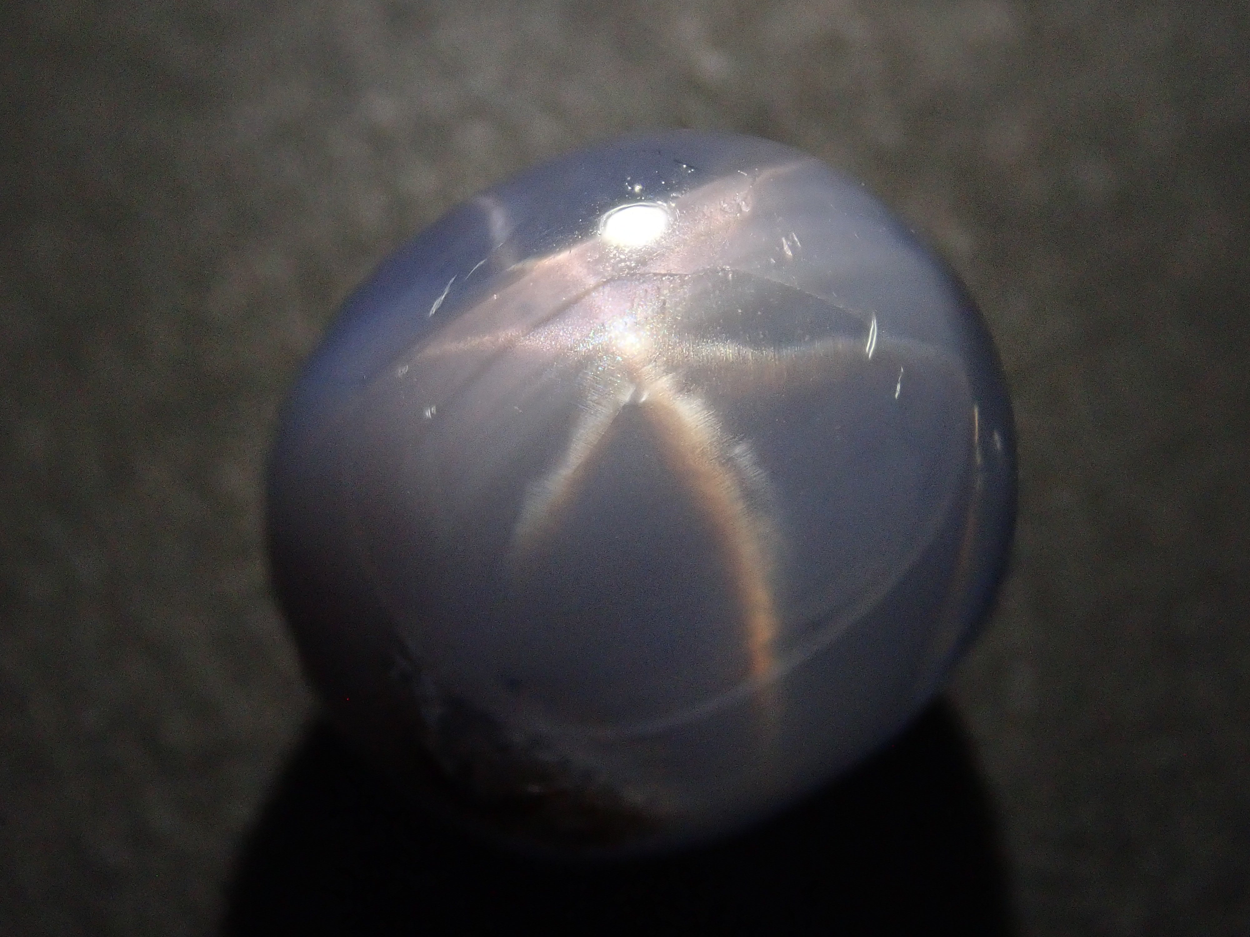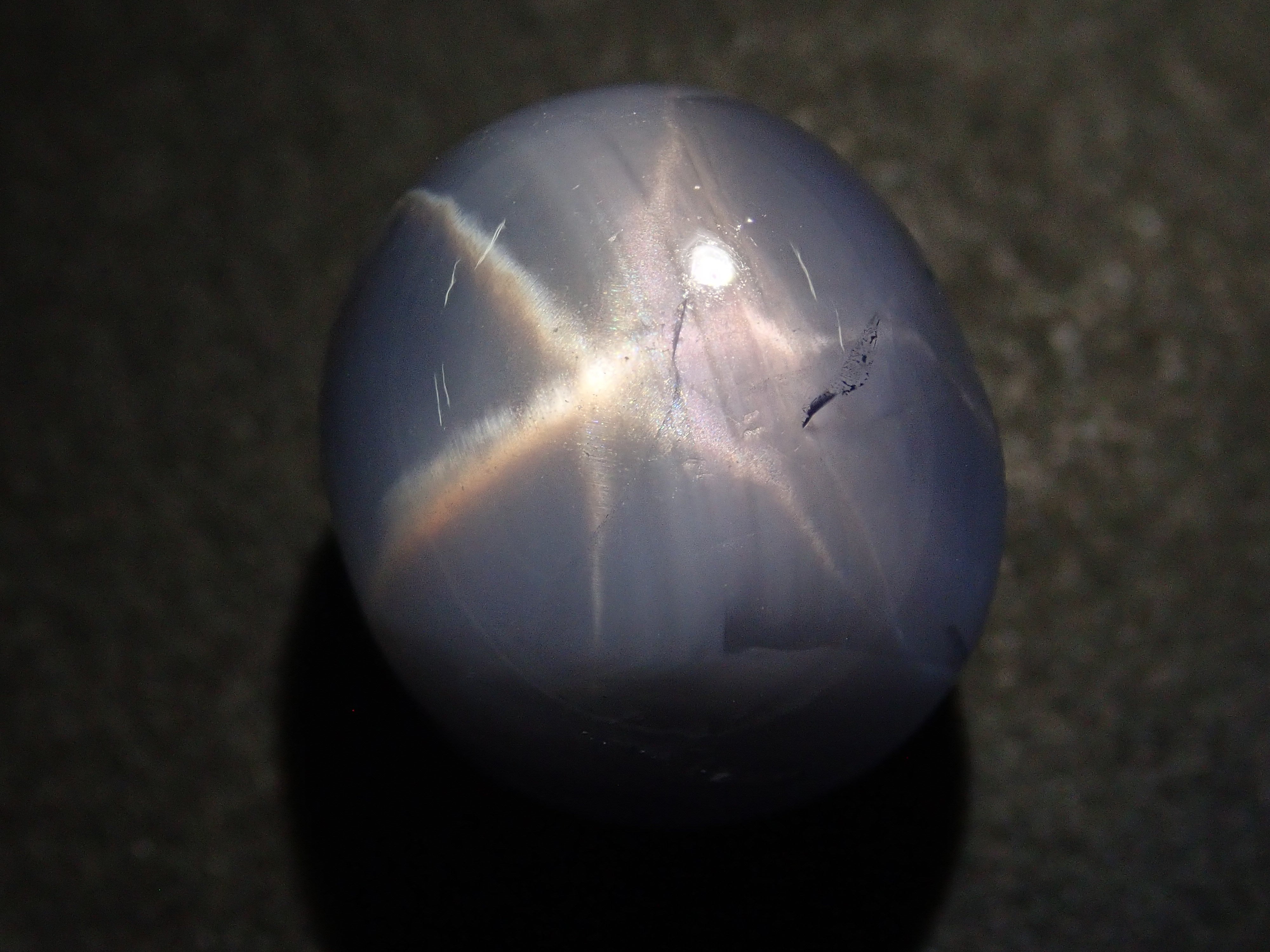藍寶石是一種著名的寶石。其中,這是可以看到明星效應的類型。藍寶石的硬度為 9,是僅次於鑽石的第二硬寶石,是一種高度堅韌、穩定且易於護理的寶石。筆燈用於攝影。石頭的背面基本上是未拋光的。一顆星光藍寶石,重 21 克拉。