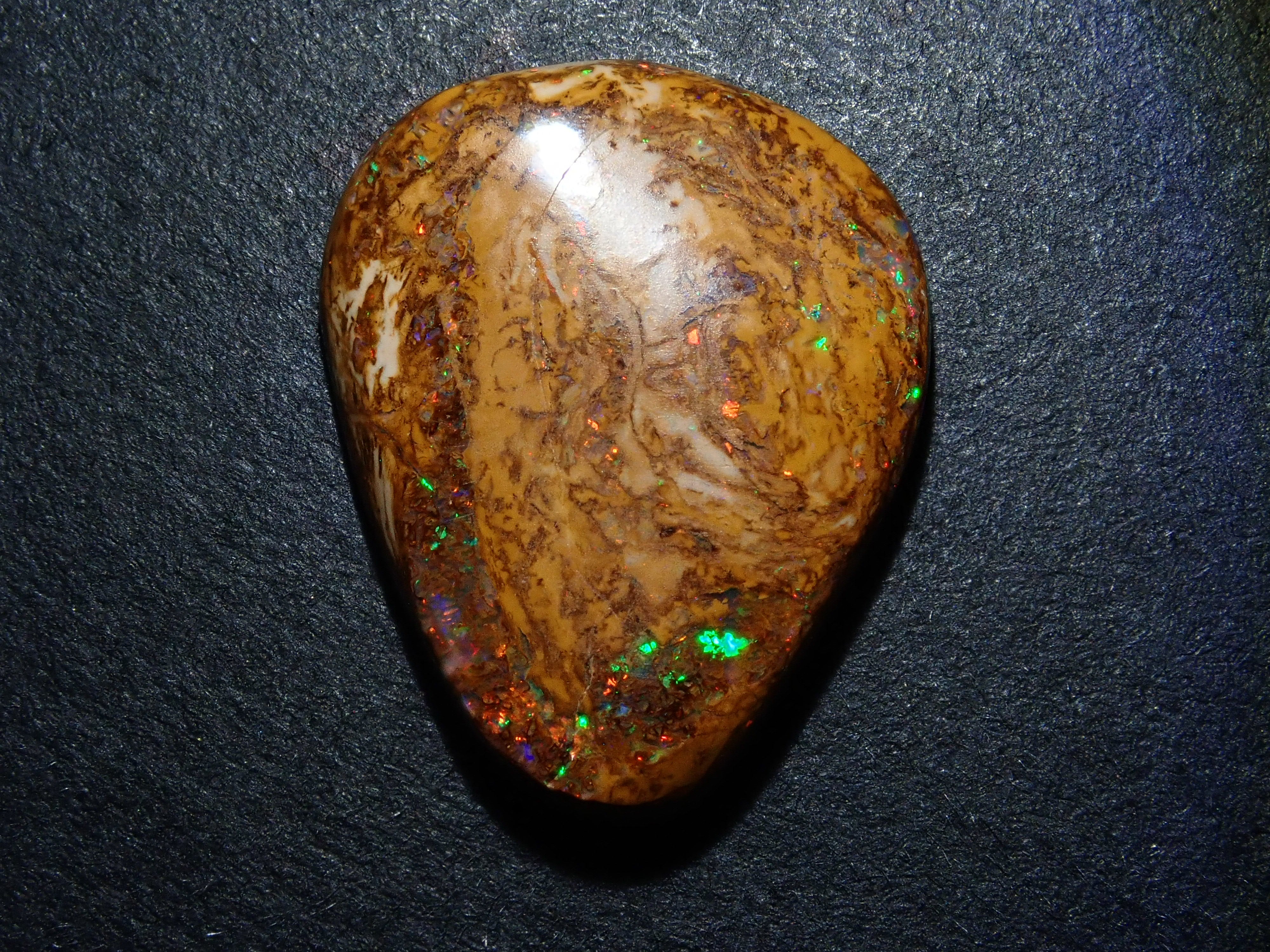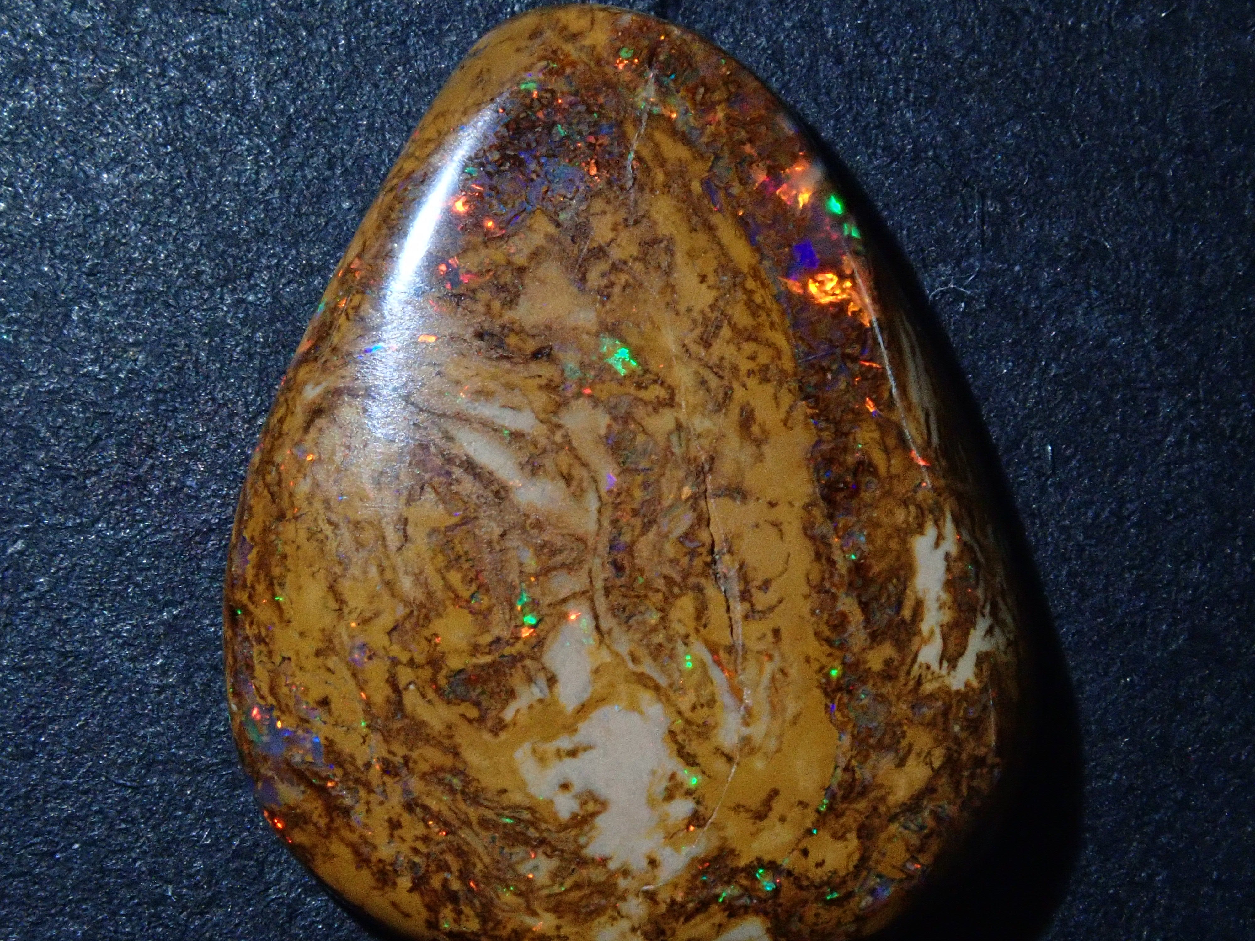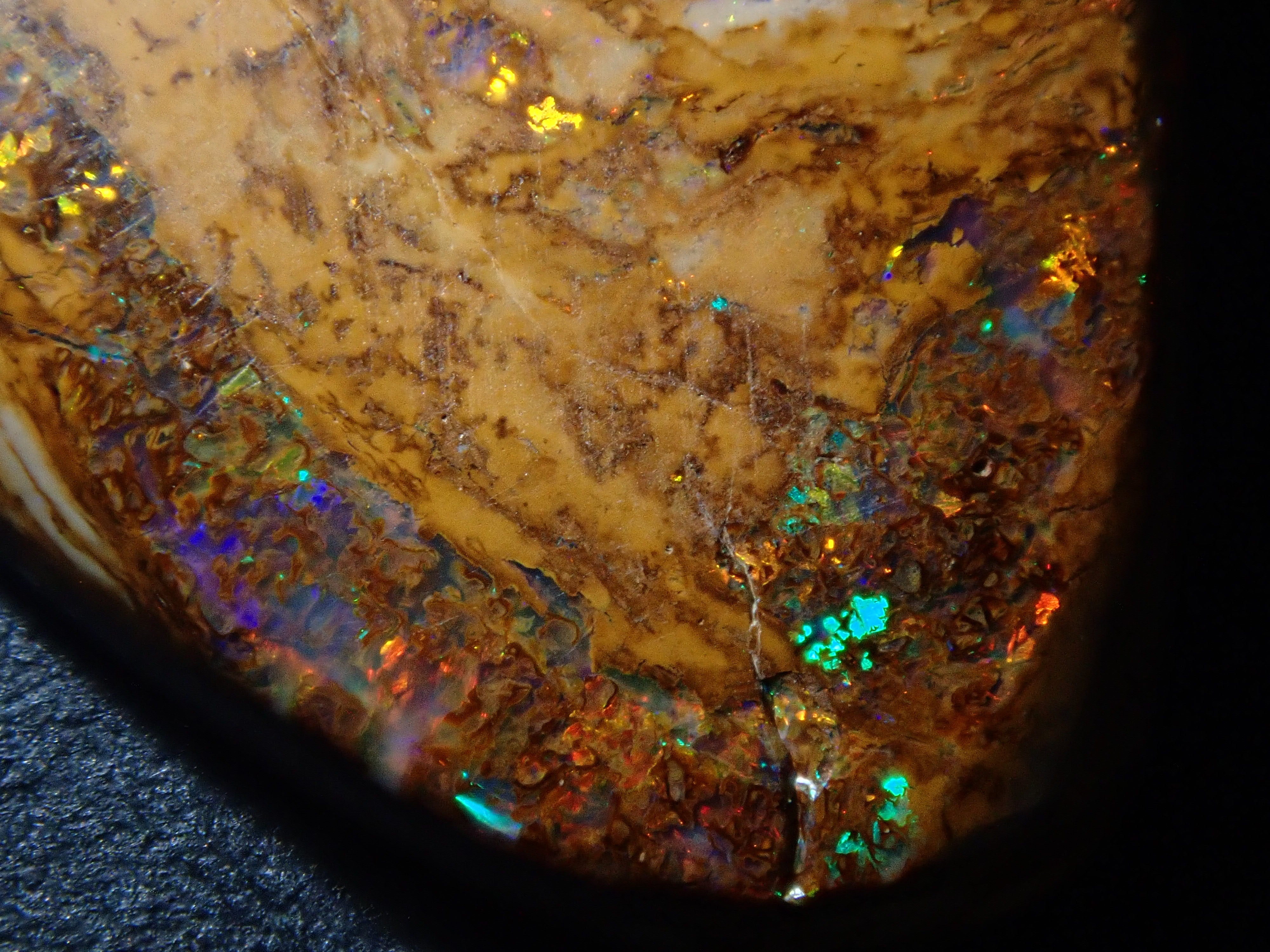 蛋白石是一種閃爍著彩虹色光芒的寶石。蛋白石有多種類型,其中,礫石蛋白石是指仍附著主岩的蛋白石。有些照片是用筆燈拍攝的。
