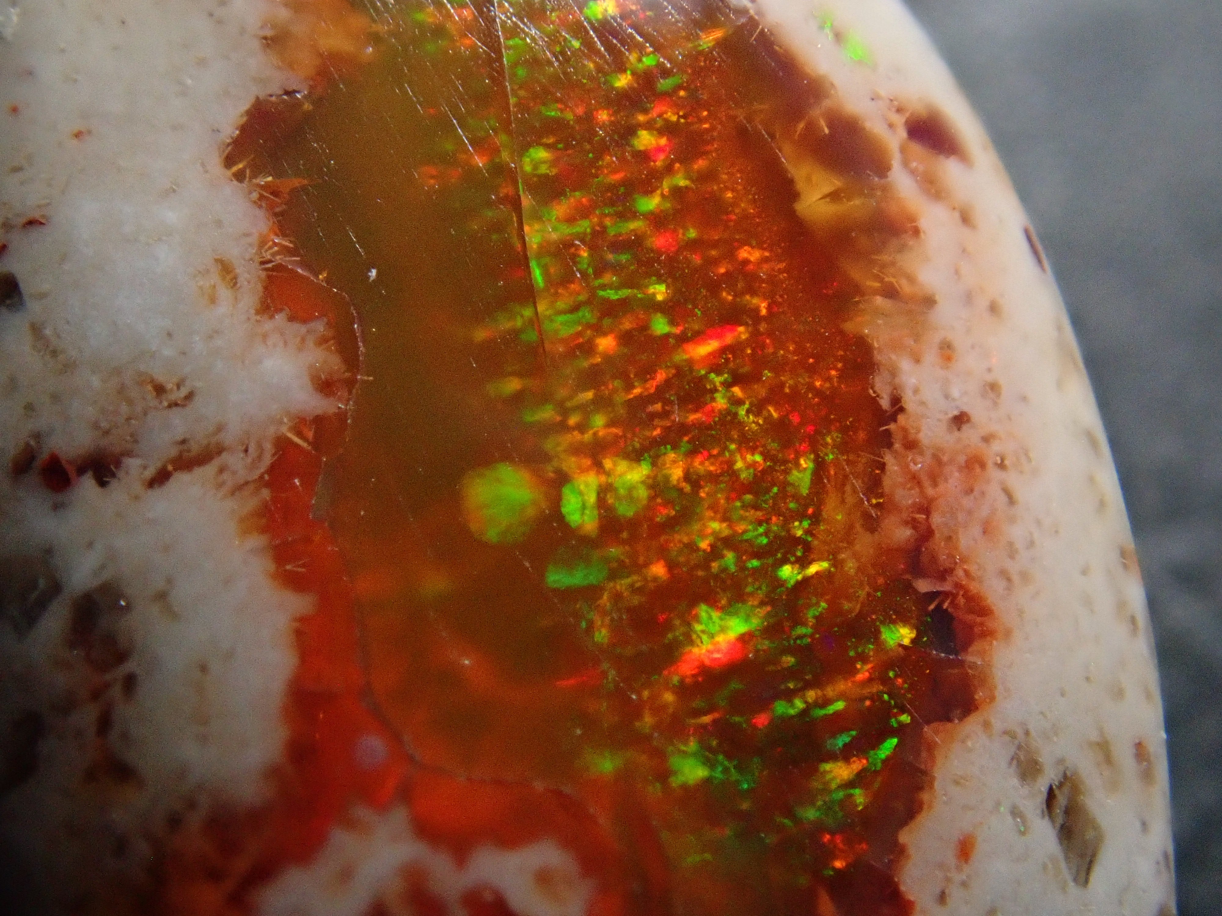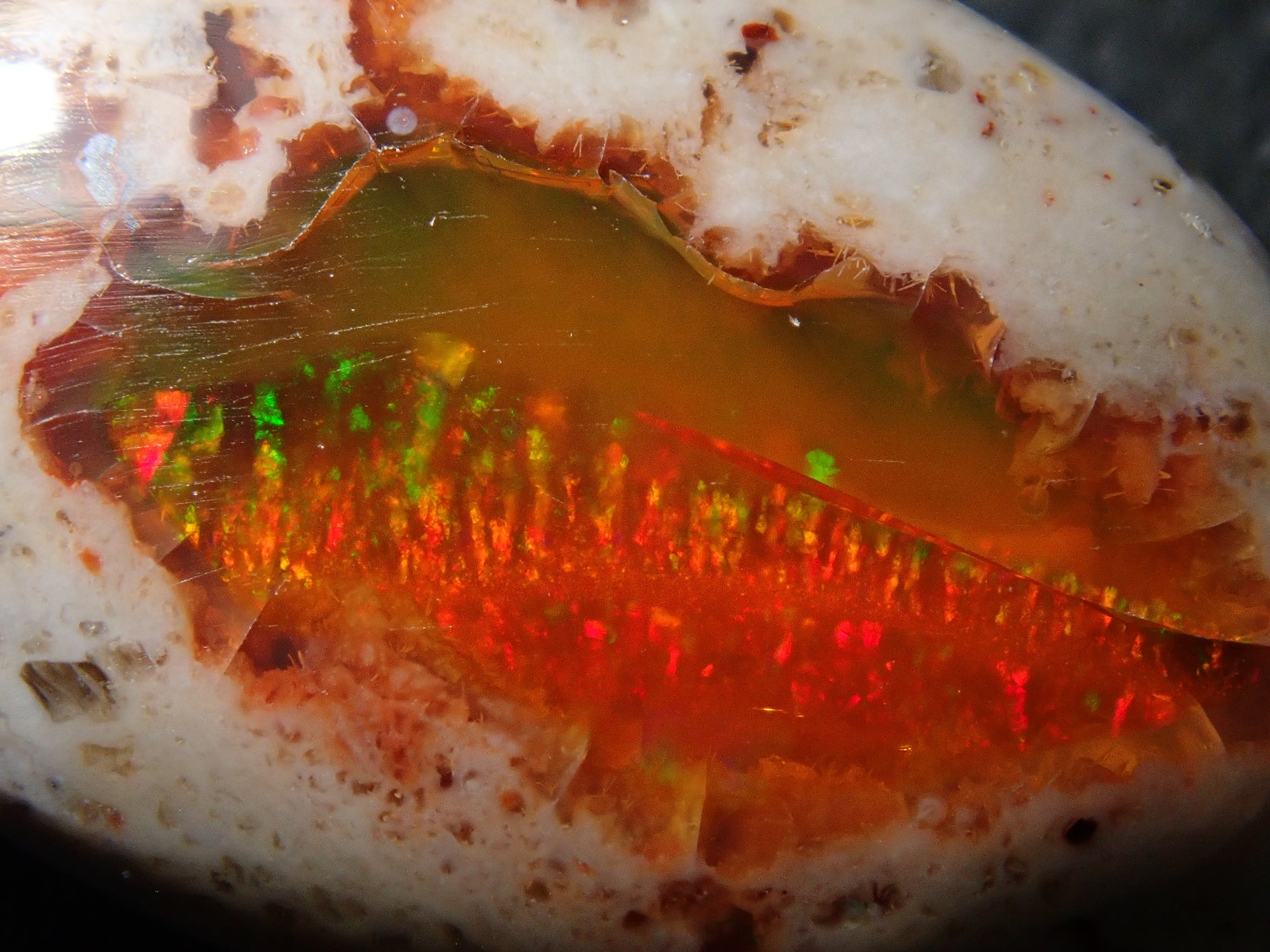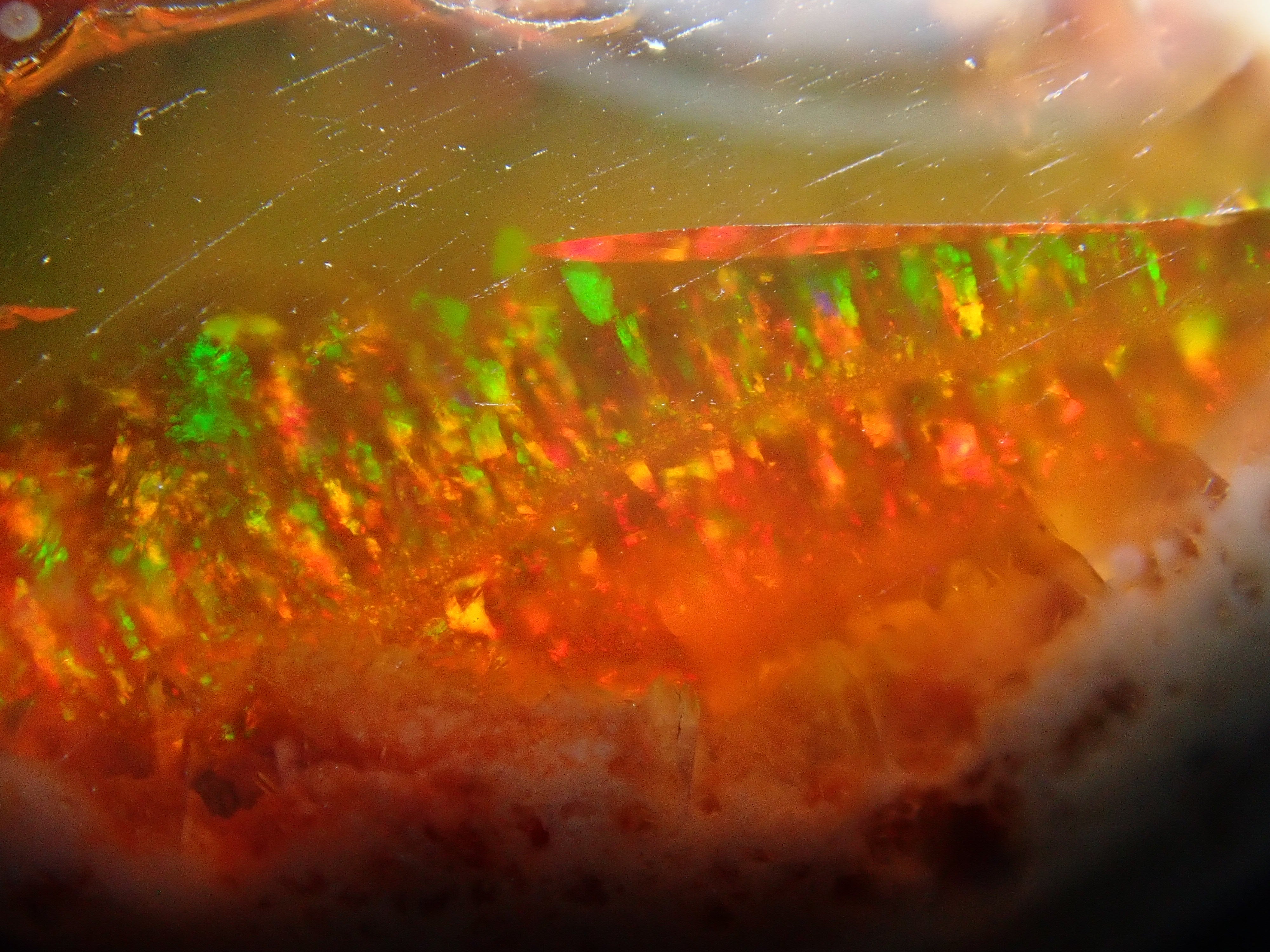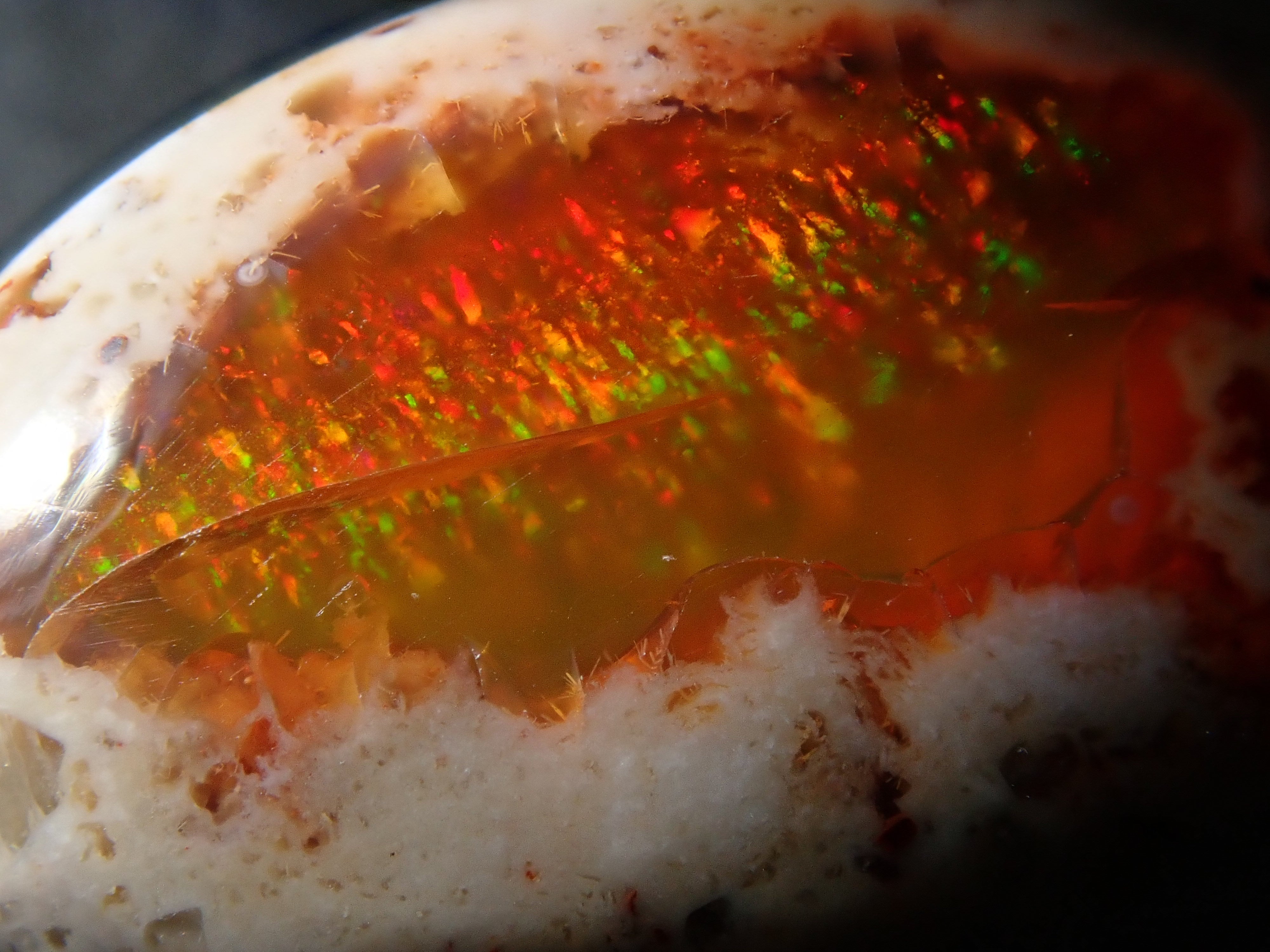 Cantera 蛋白石原本是一種有許多環的寶石。照片是使用筆燈拍攝的。