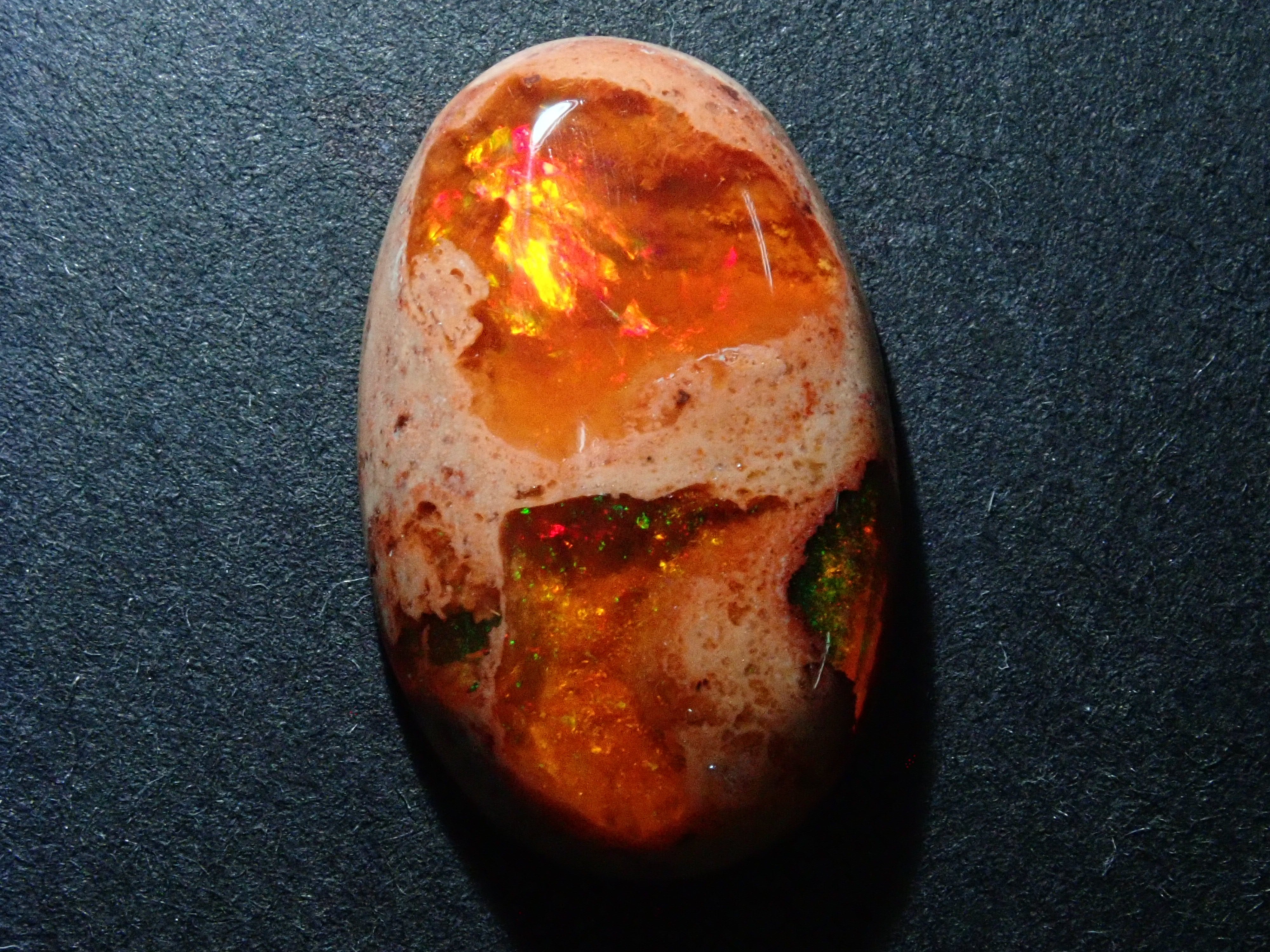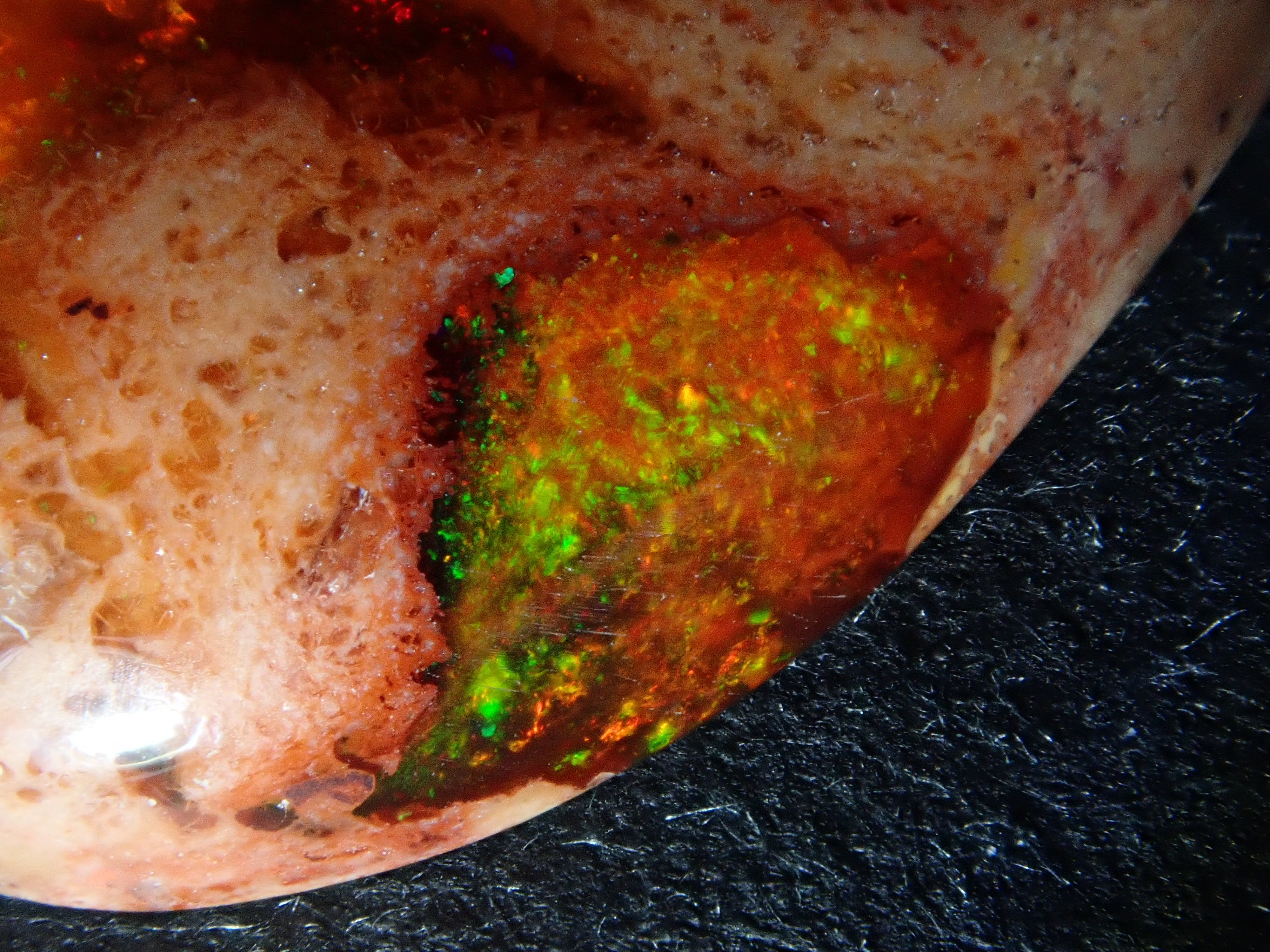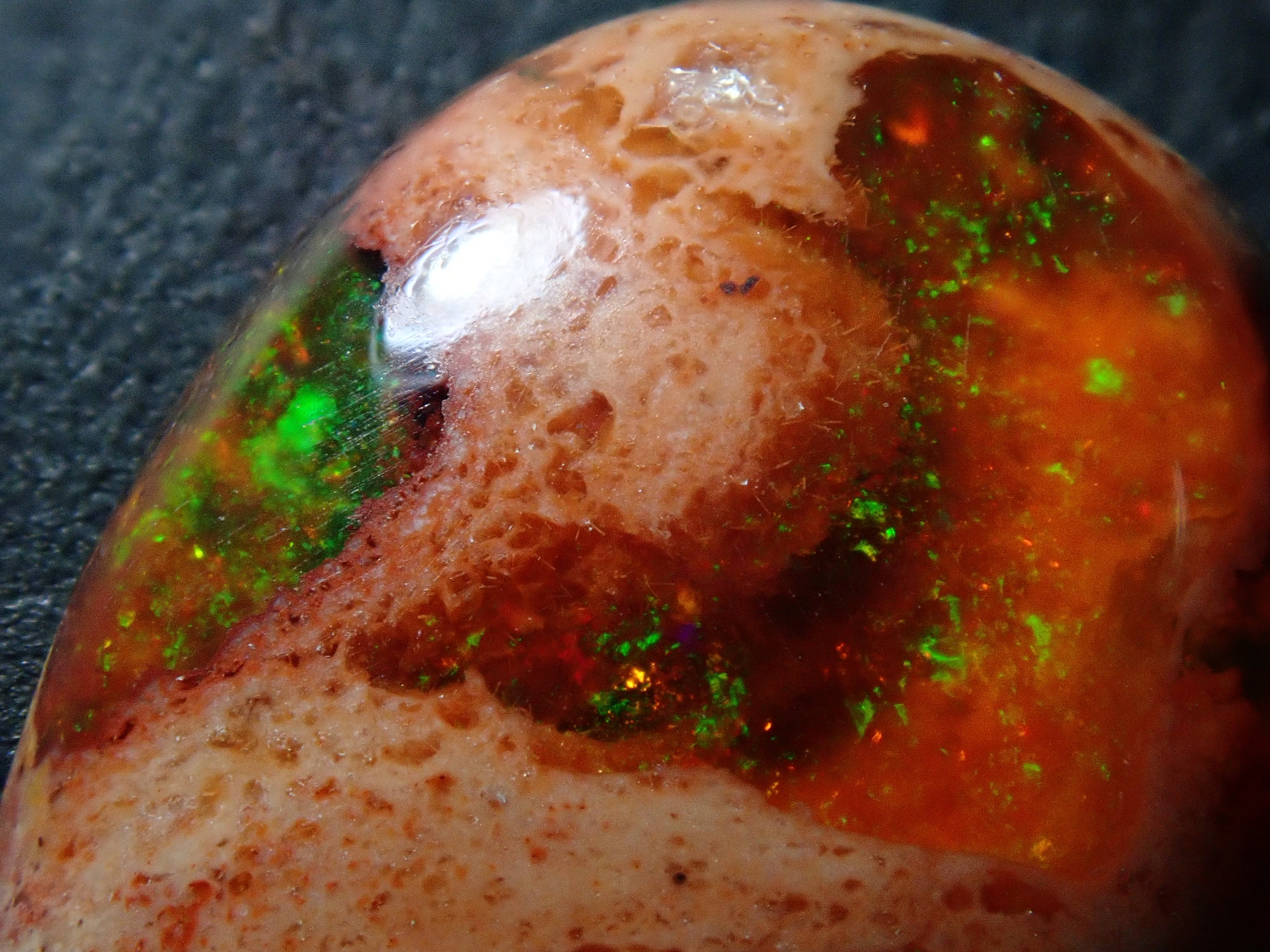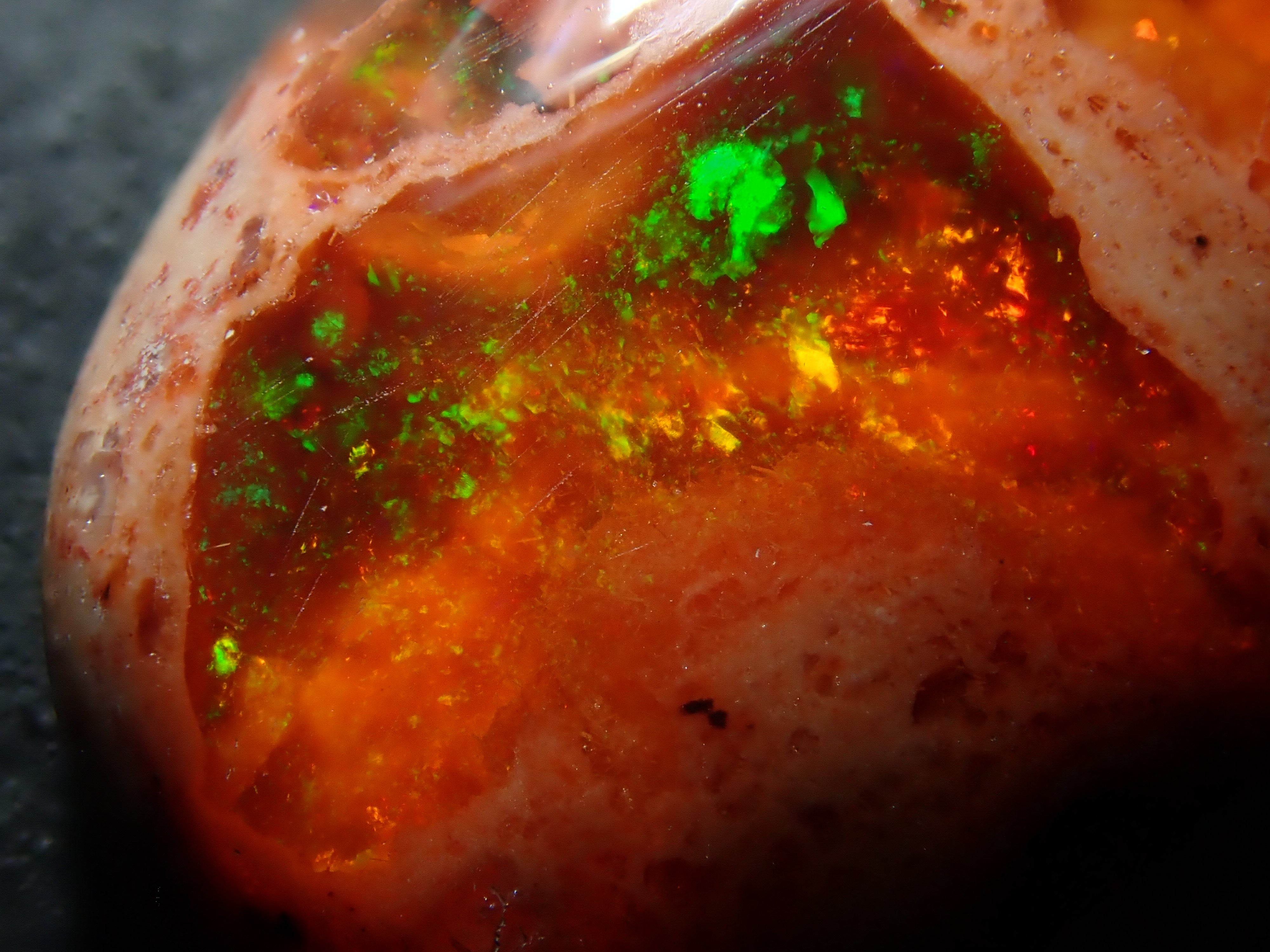 Cantera 蛋白石原本是一種有許多環的寶石。照片是使用筆燈拍攝的。