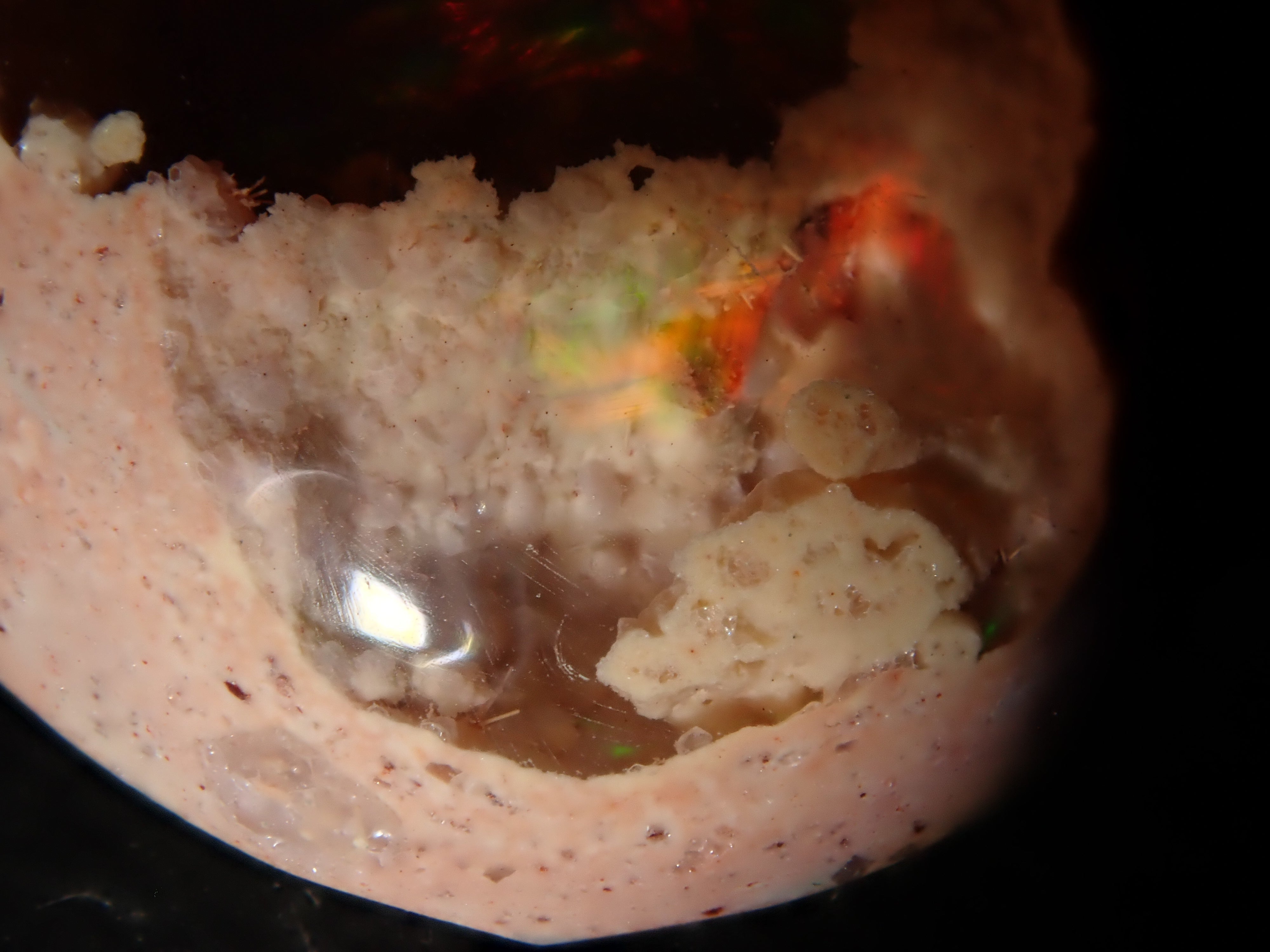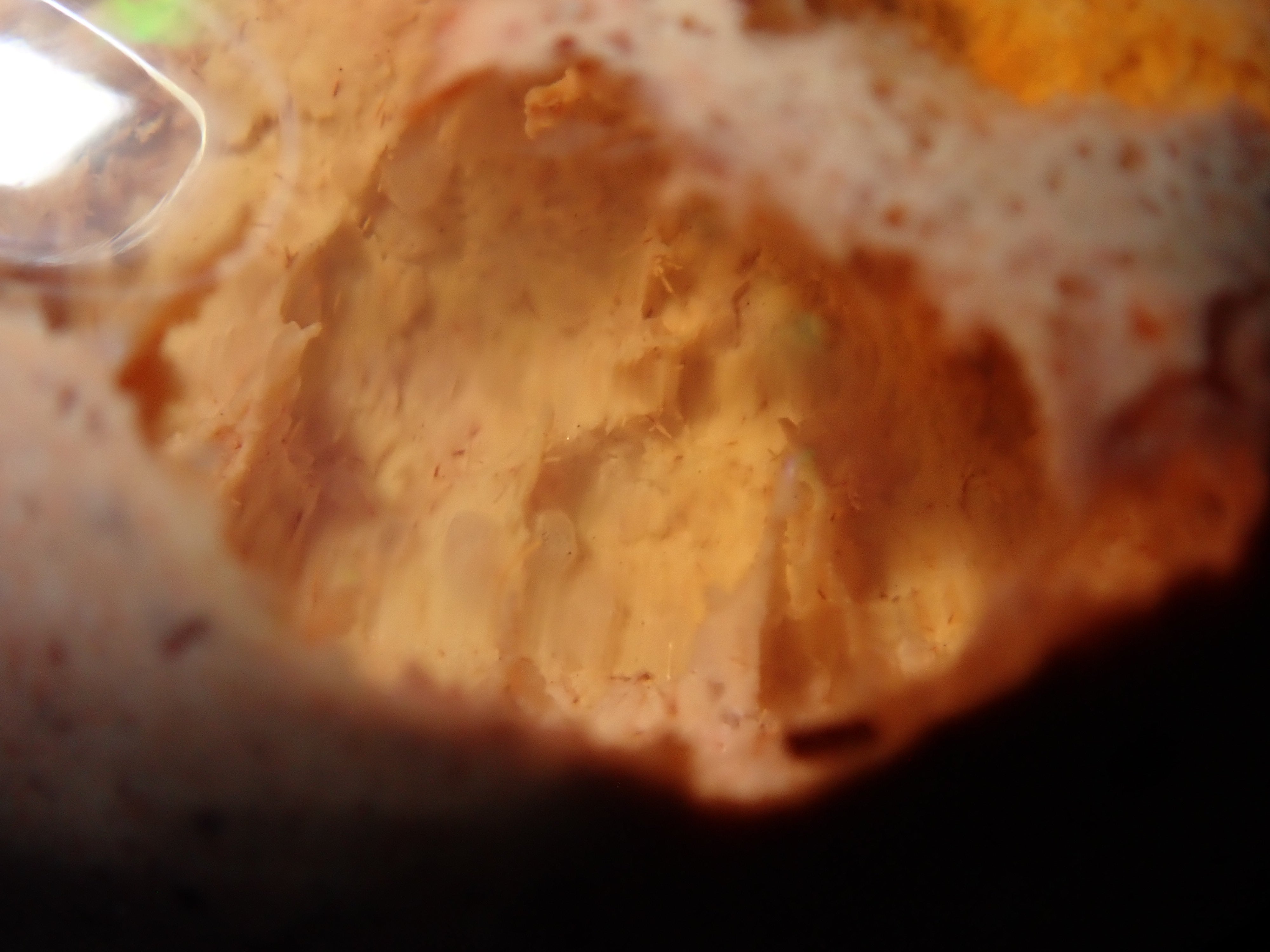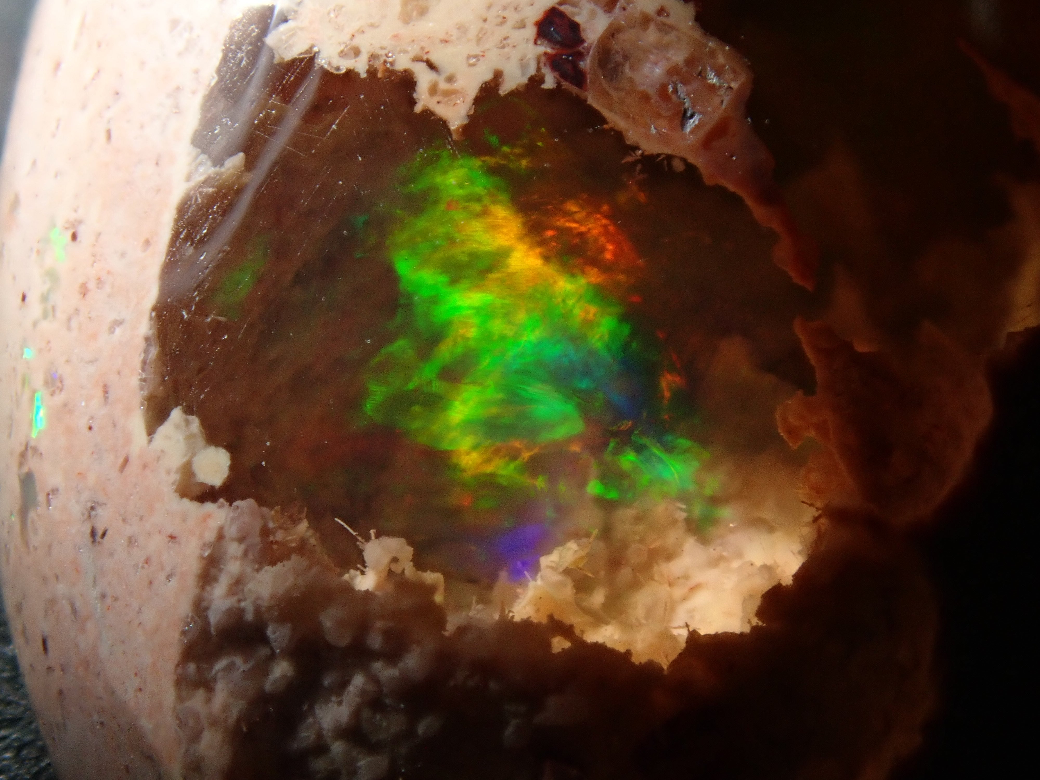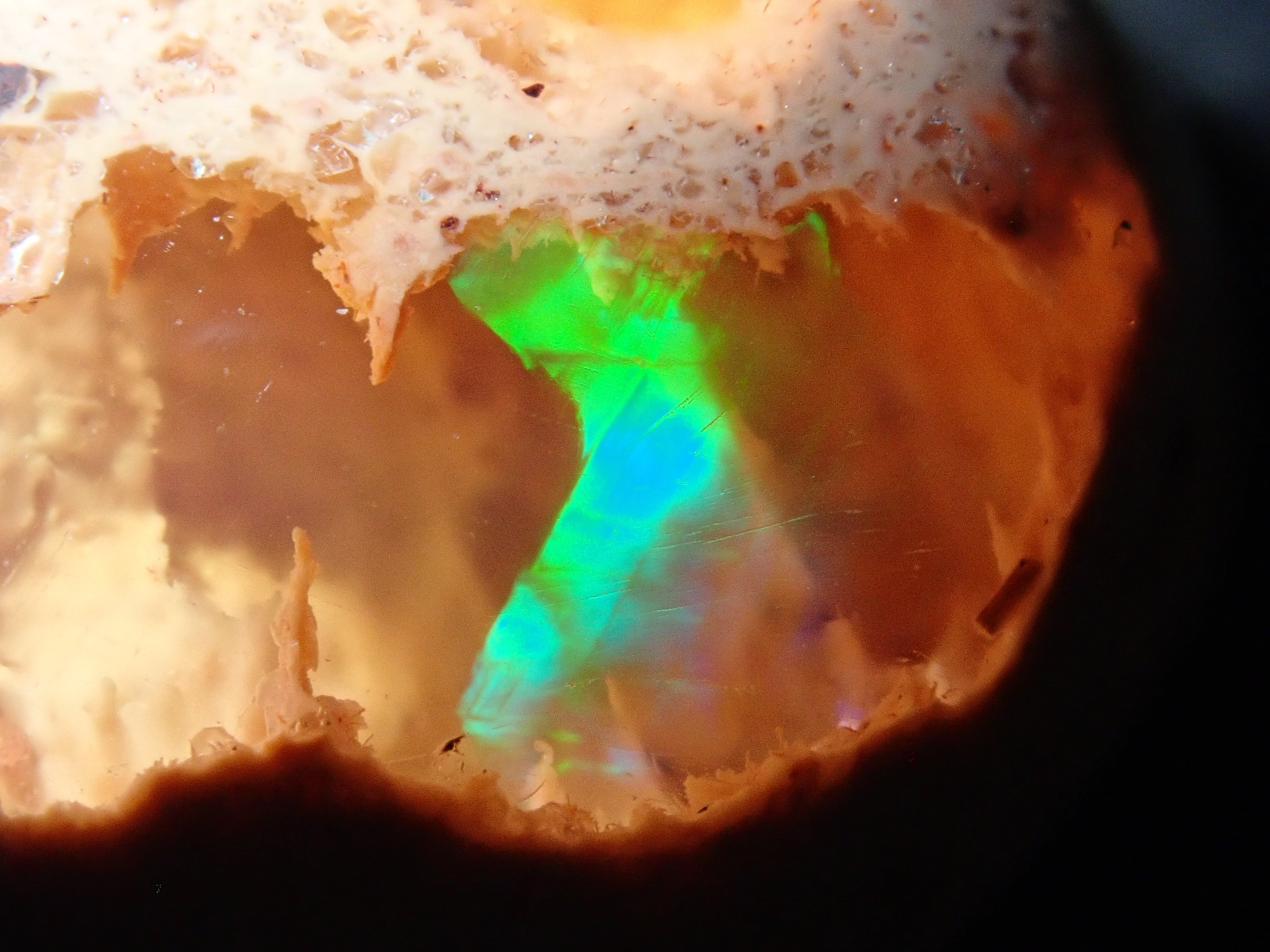 Cantera 蛋白石原本是一種有許多環的寶石。照片是使用筆燈拍攝的。