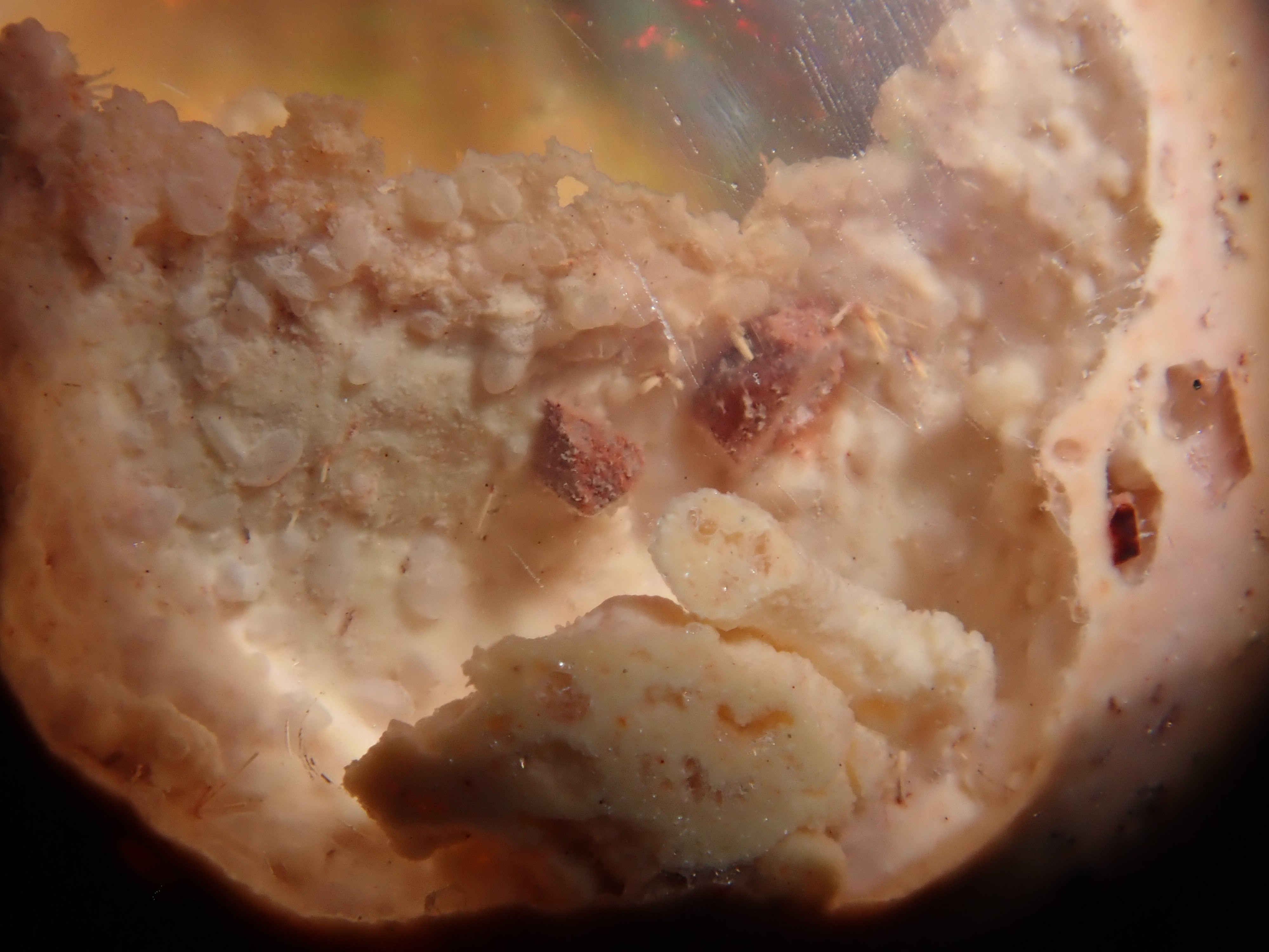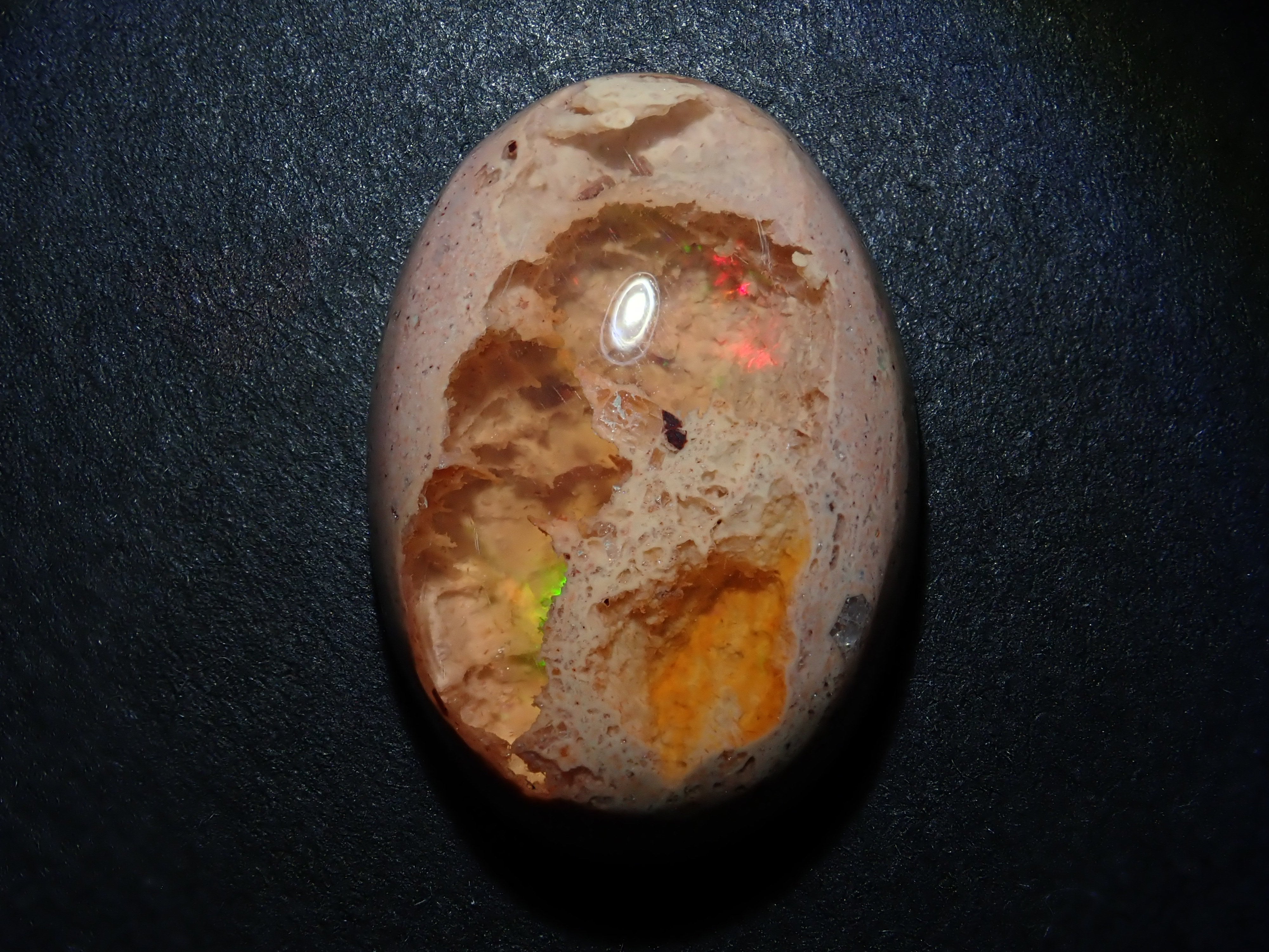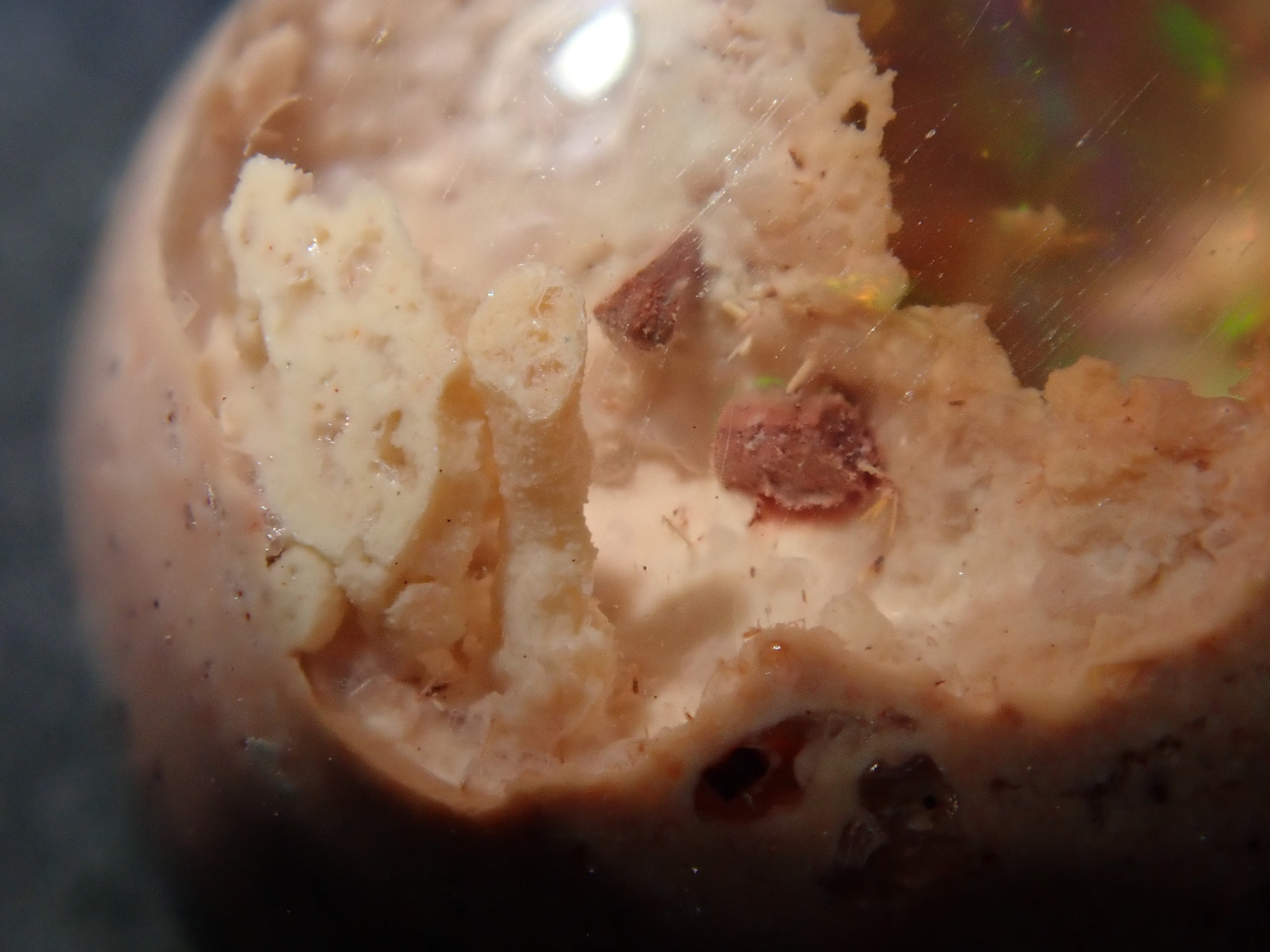 Cantera 蛋白石原本是一種有許多環的寶石。照片是使用筆燈拍攝的。
