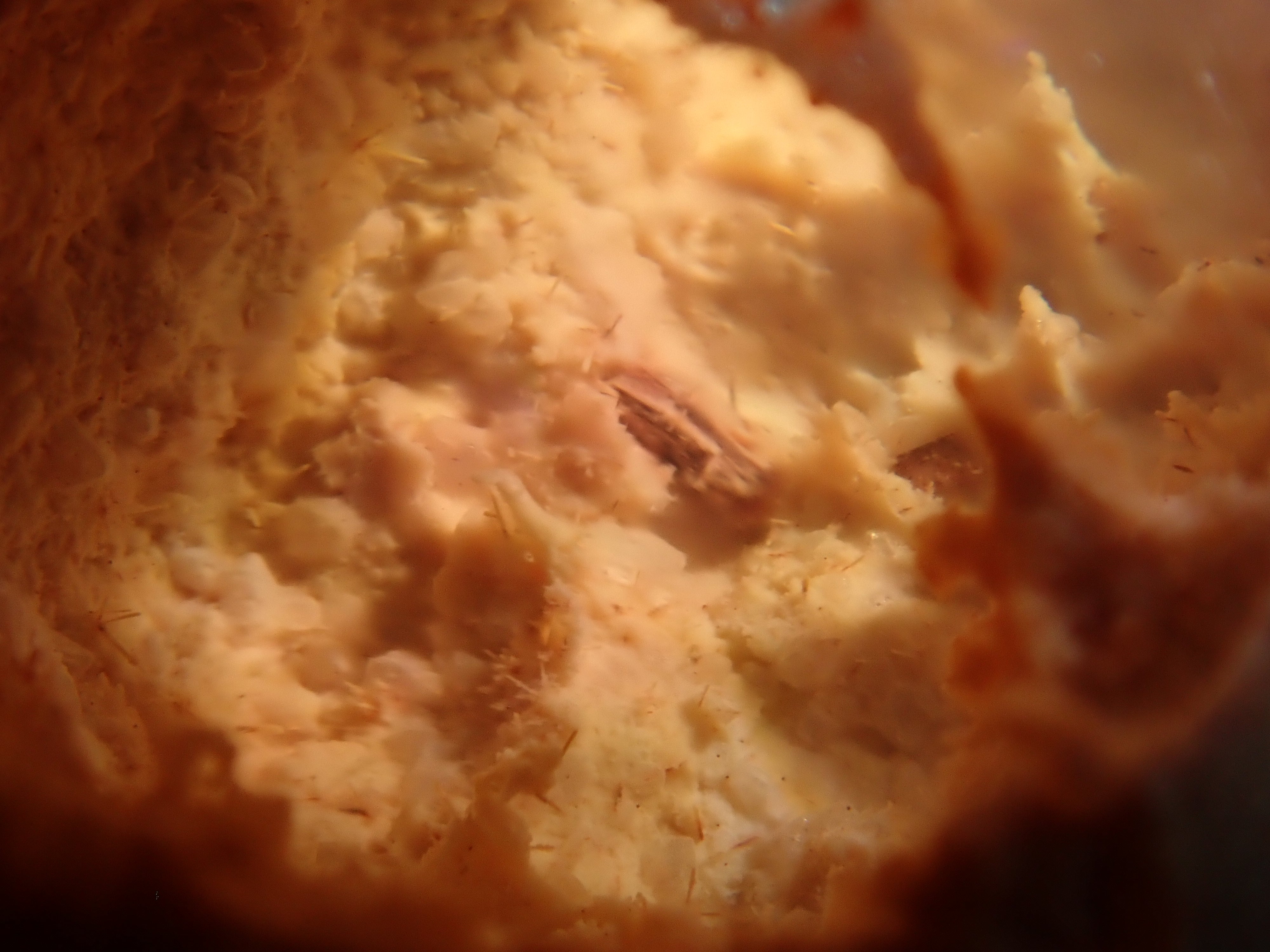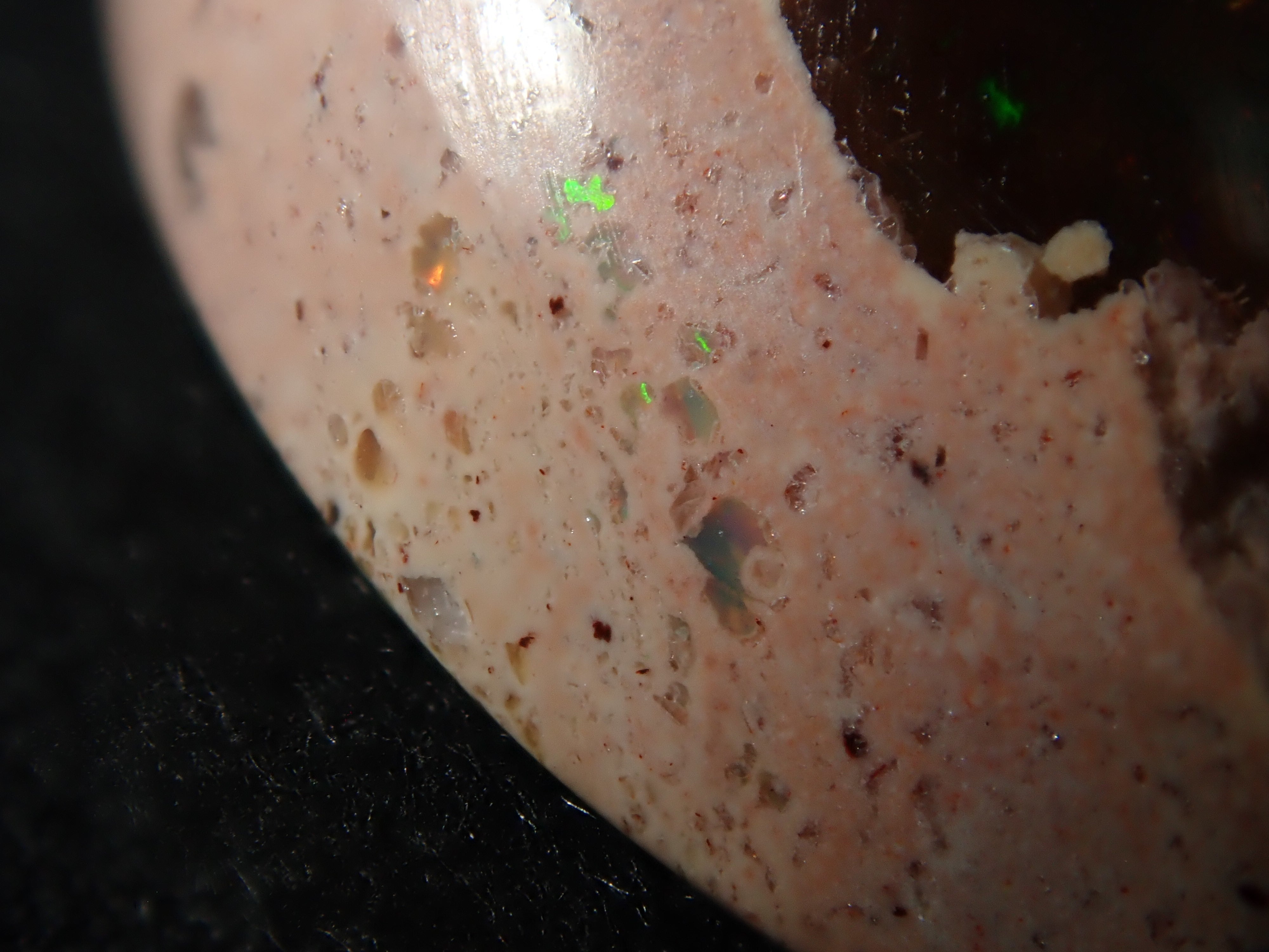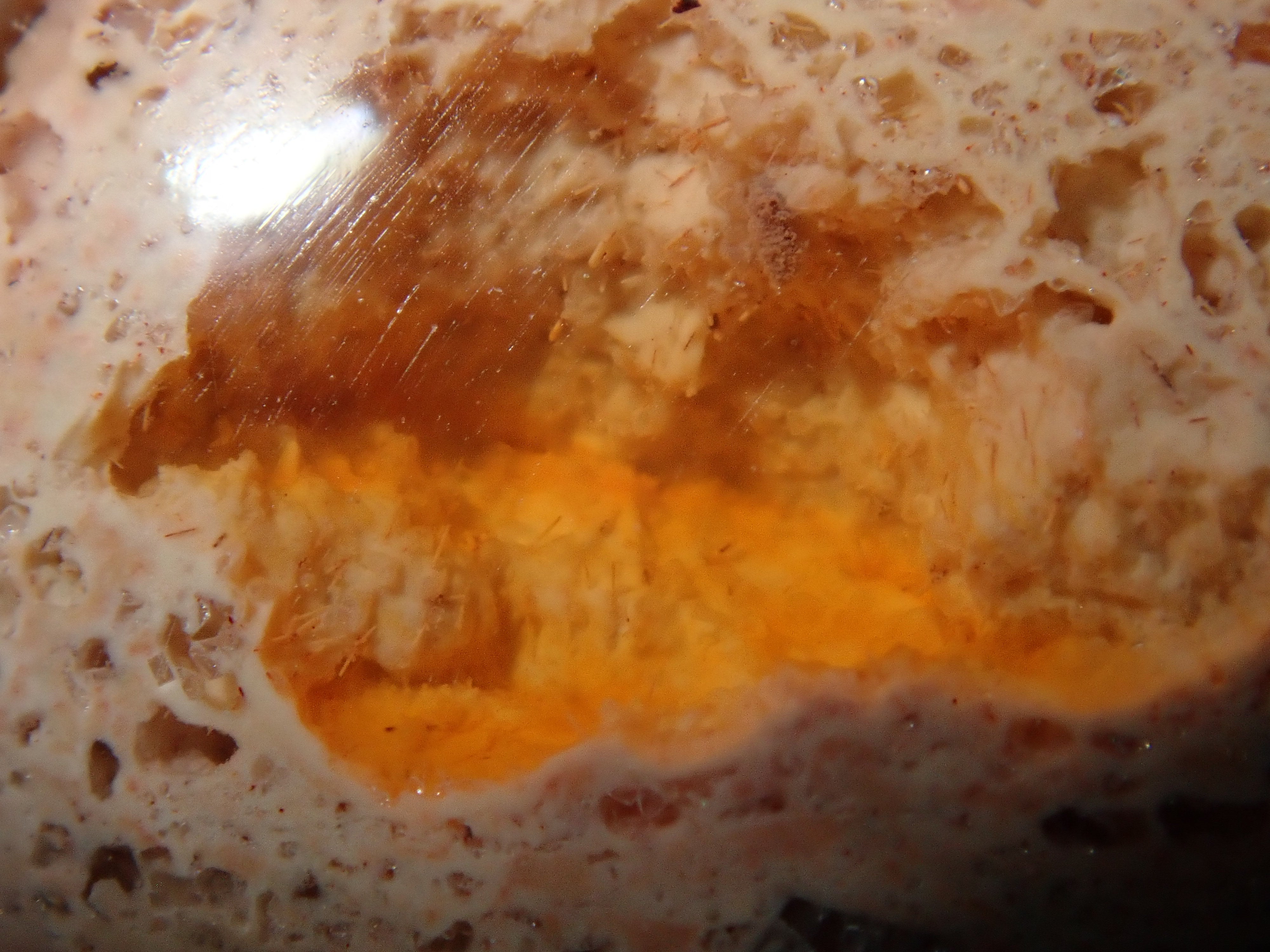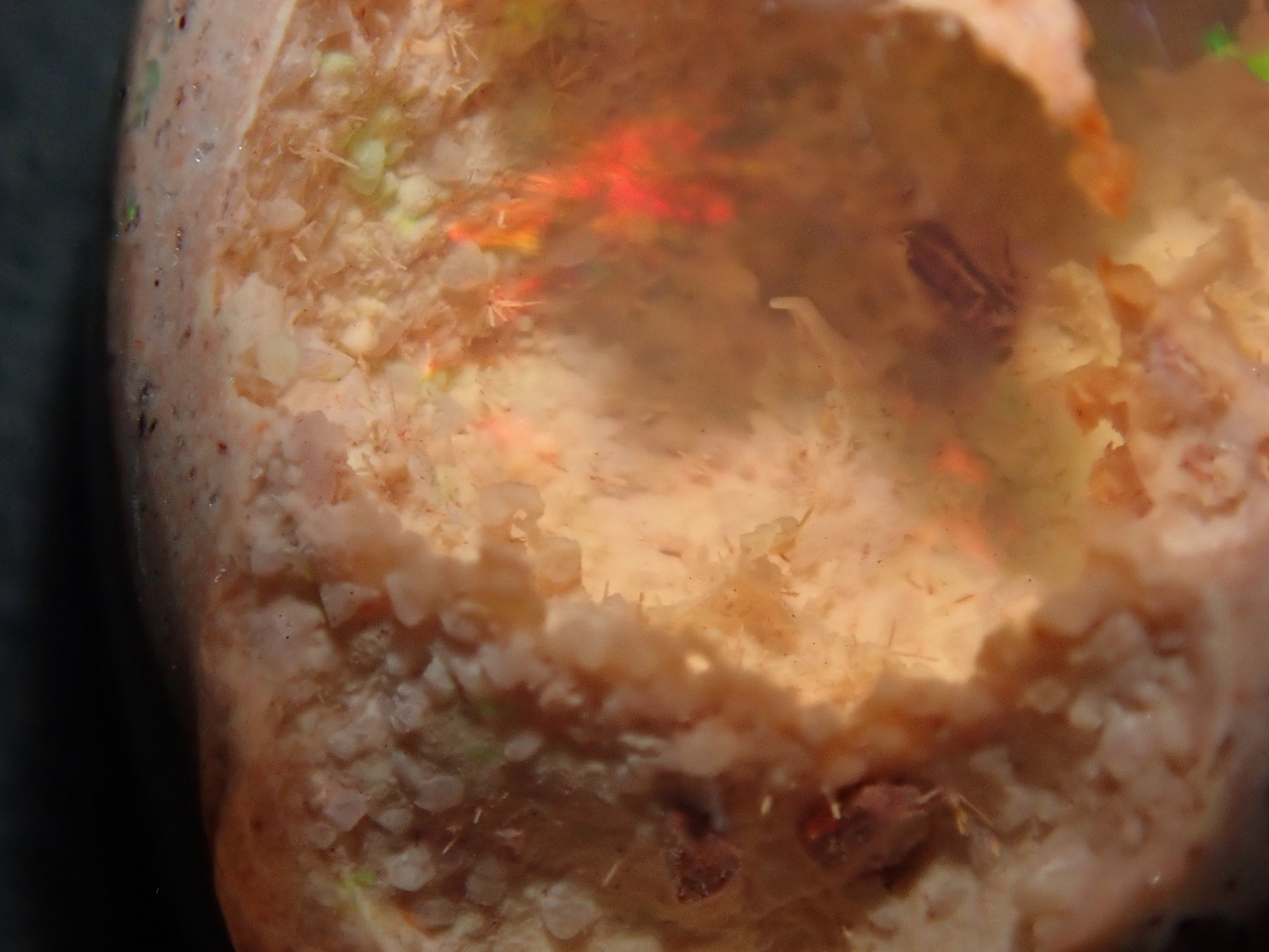Cantera 蛋白石原本是一種有許多環的寶石。照片是使用筆燈拍攝的。