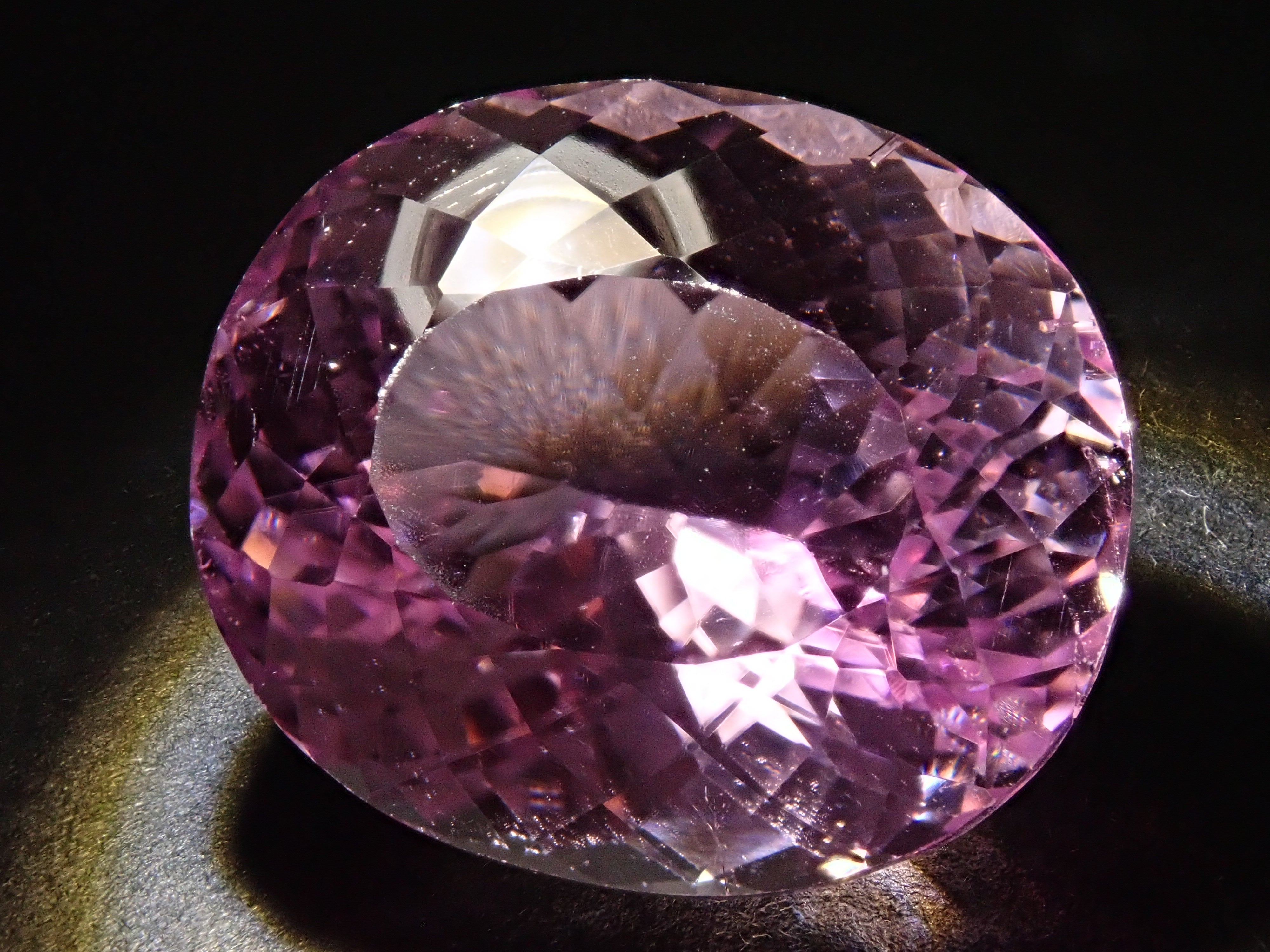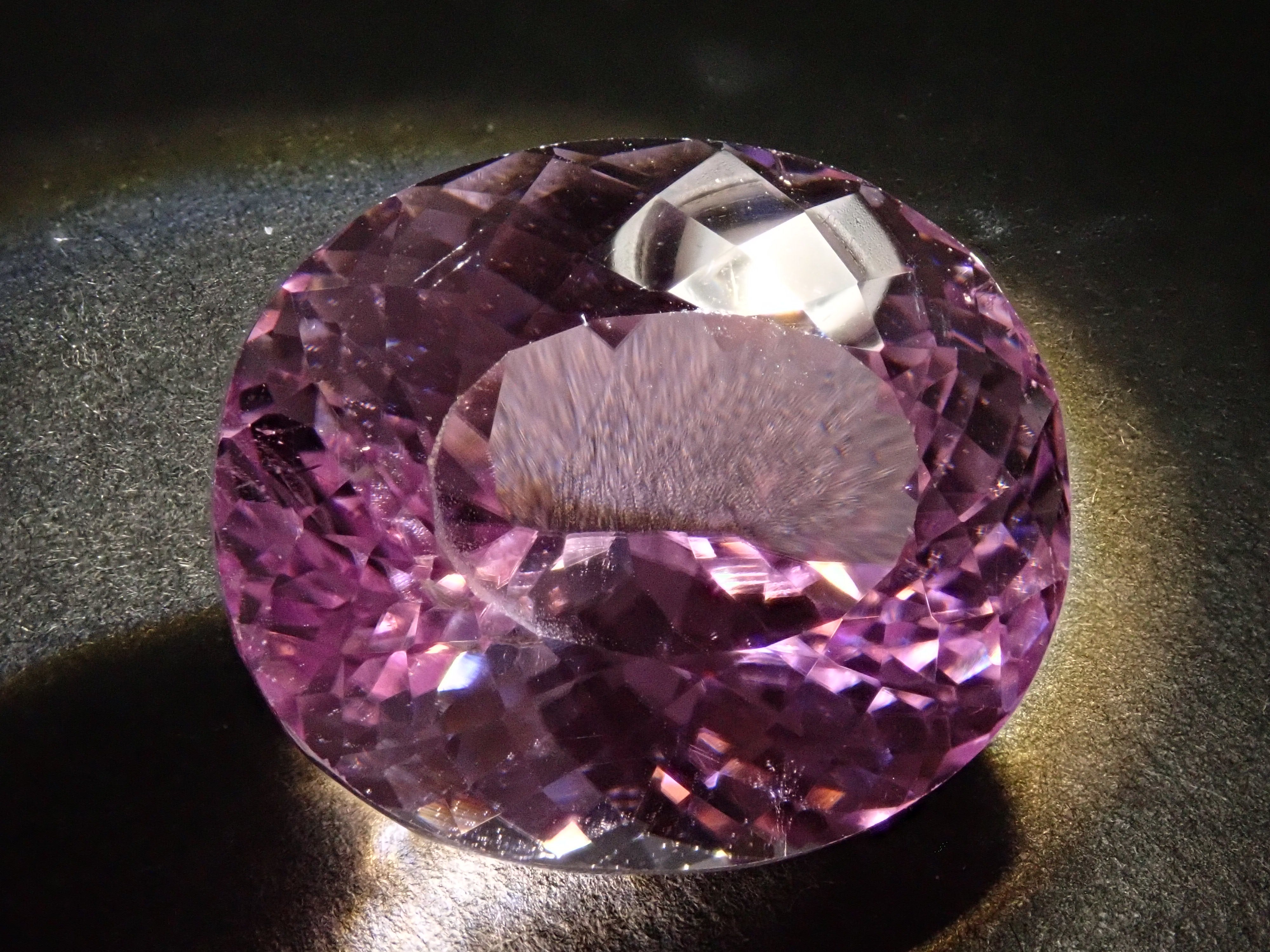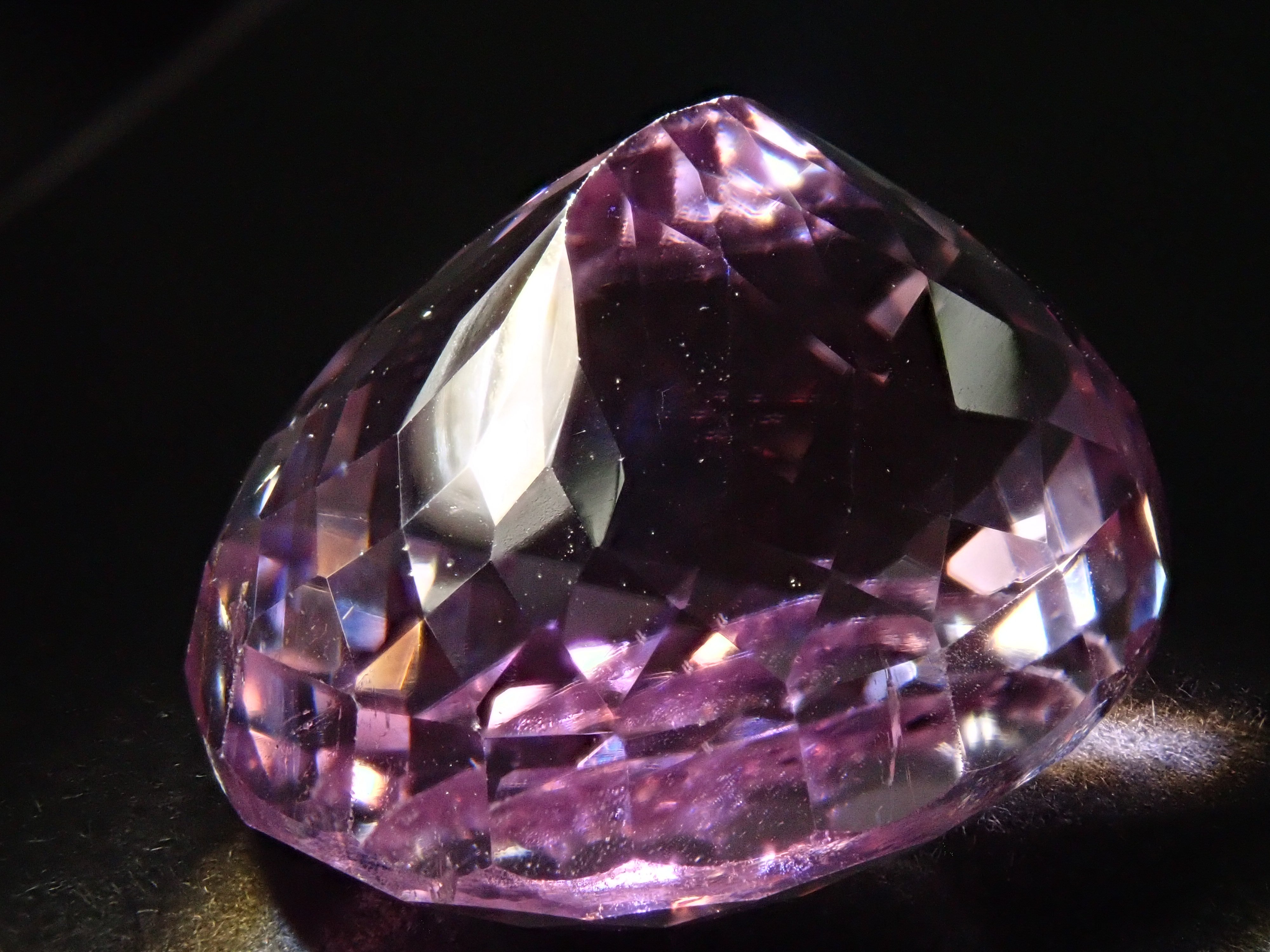 鋰紫玉是一種美麗的淡紫色粉紅色,許多人一想到粉紅色就會想到它。它也是一種多向色性的石頭,因此透過改變角度可以欣賞到不同的色調。它具有即使在黑暗的房間裡也能發光的磷光特性,由於在晚會和晚禮服上看起來非常漂亮,因此也被稱為“夜晚的寶石”。阿富汗紫鋰輝石品質優良,顏色較深。它的尺寸高達 26 克拉。