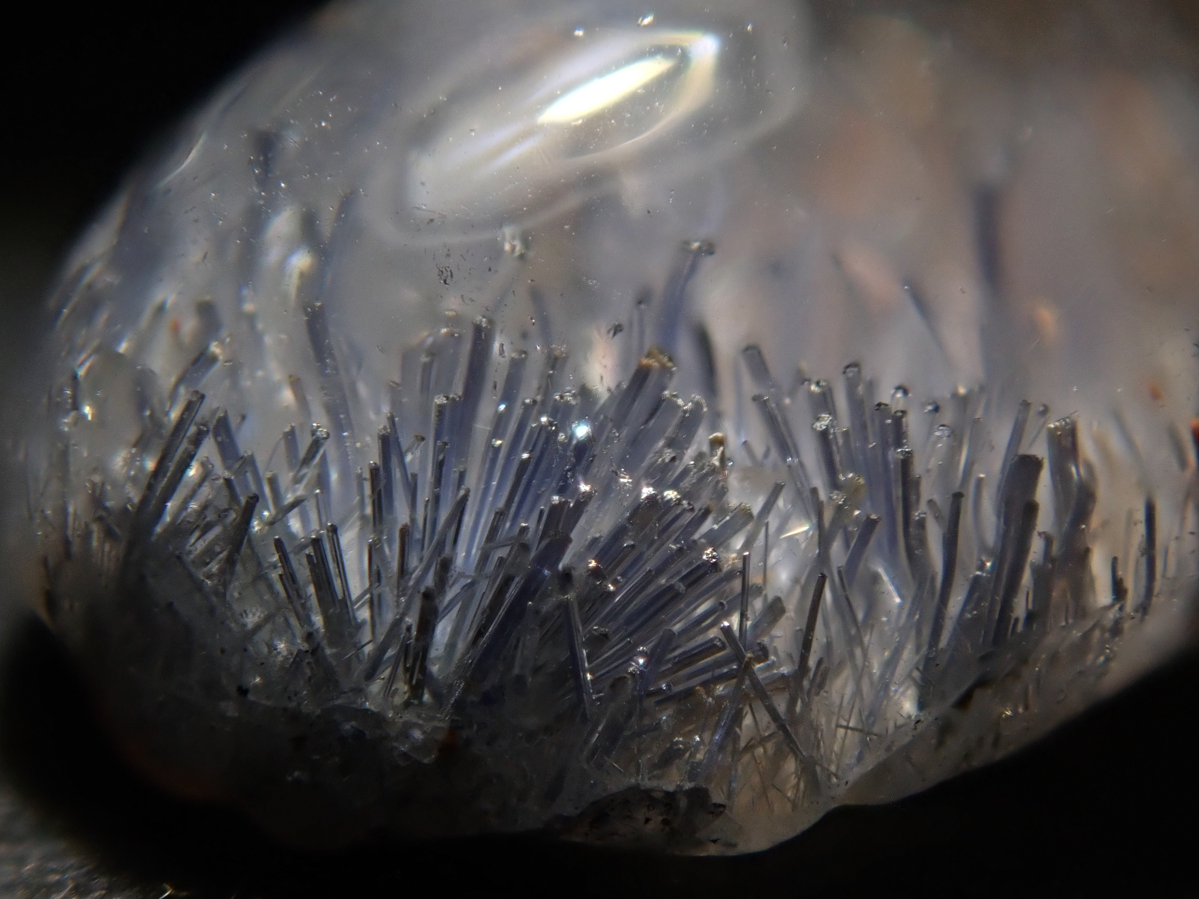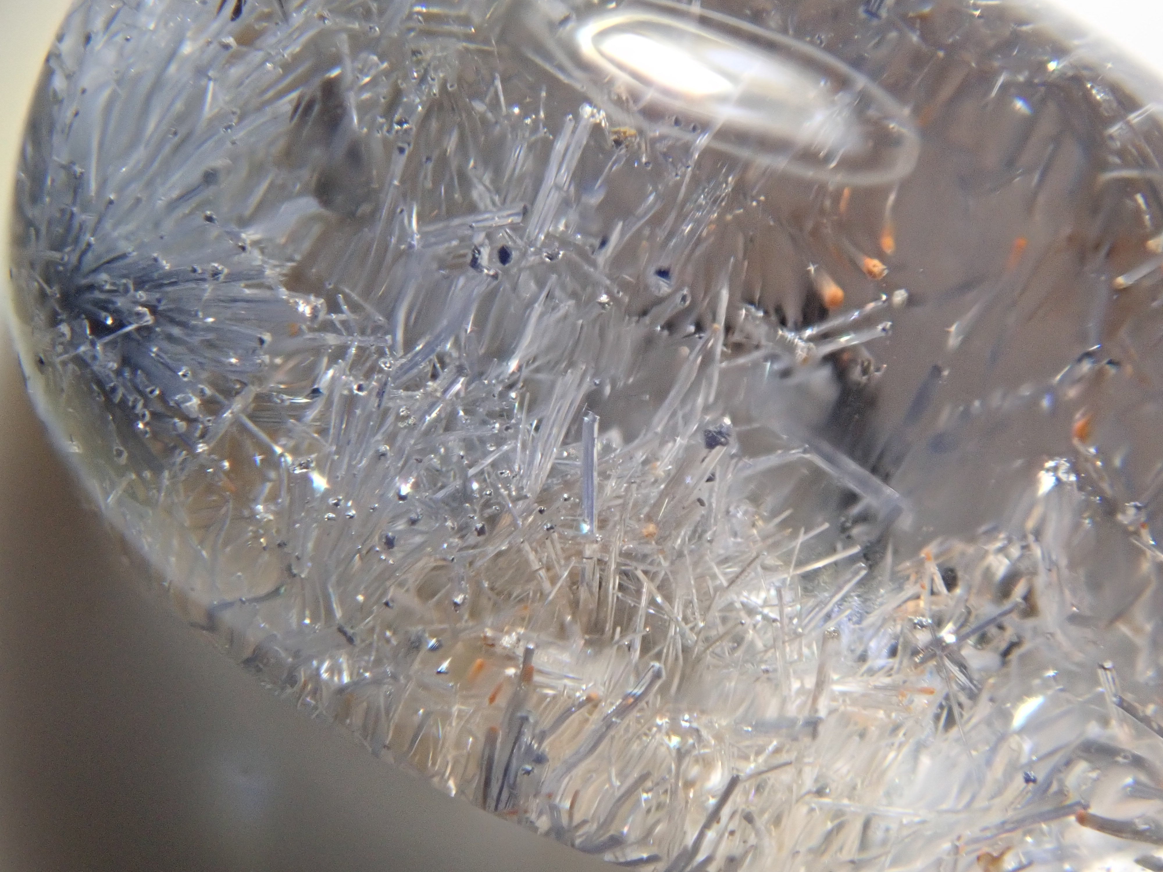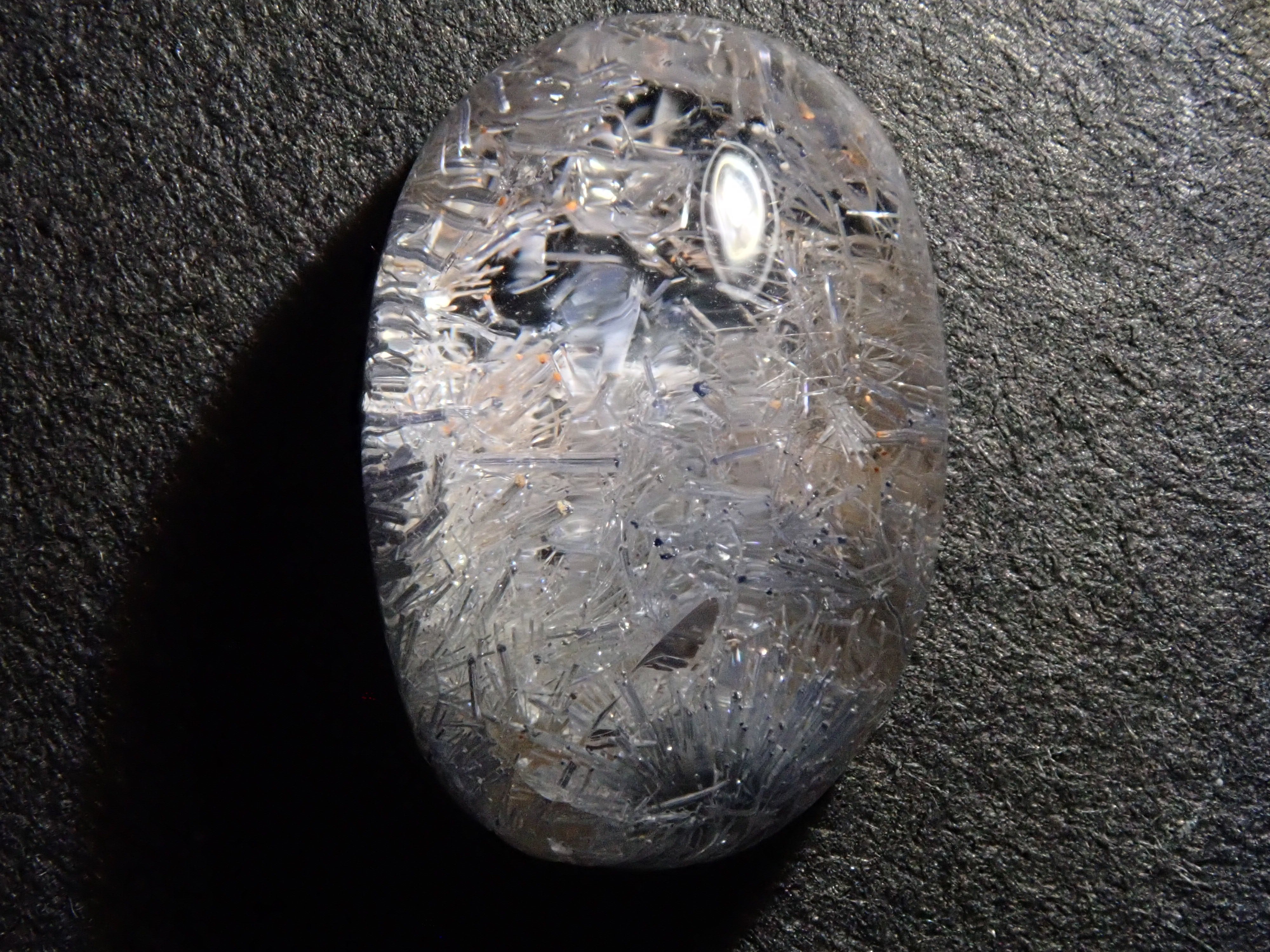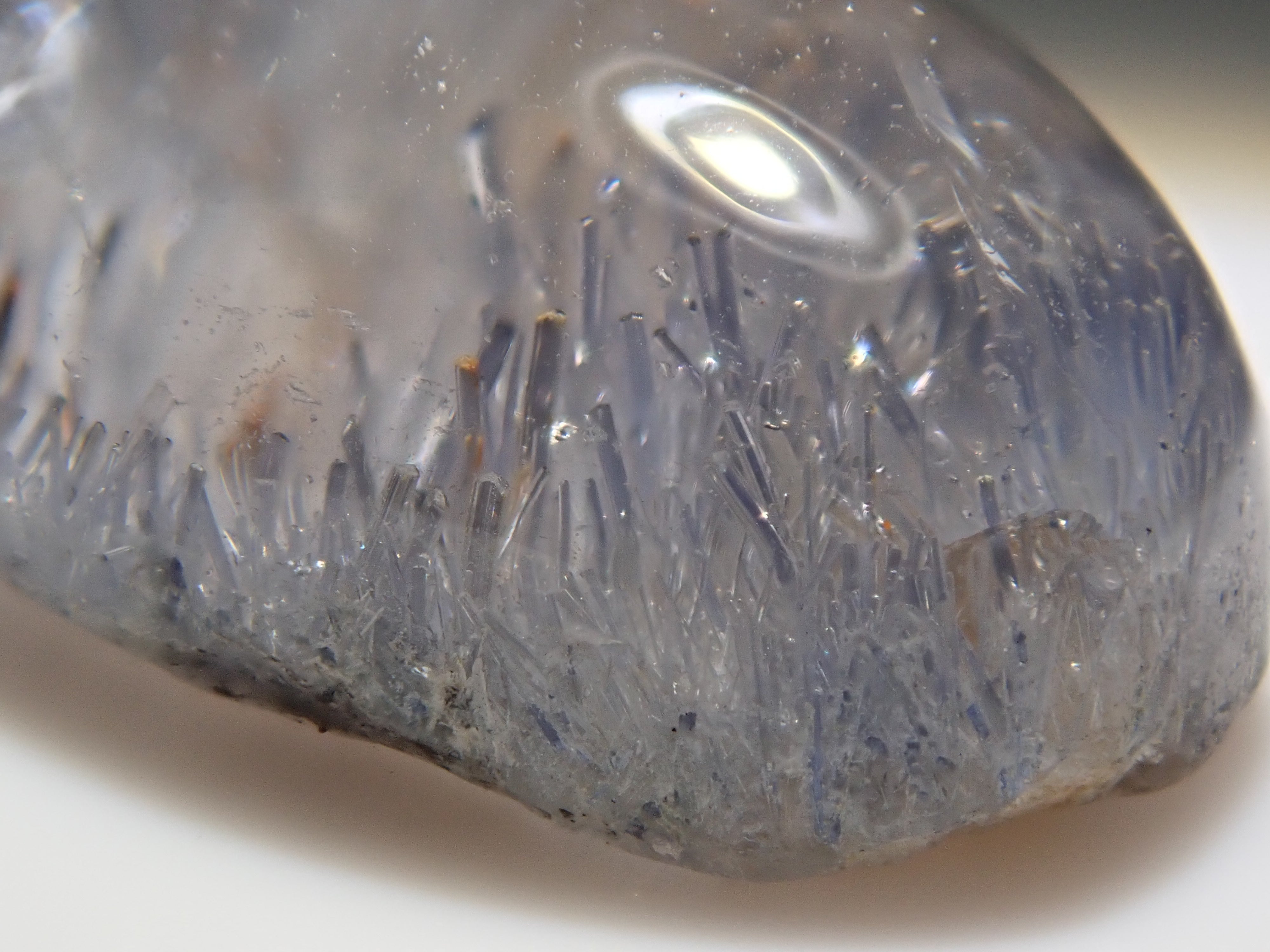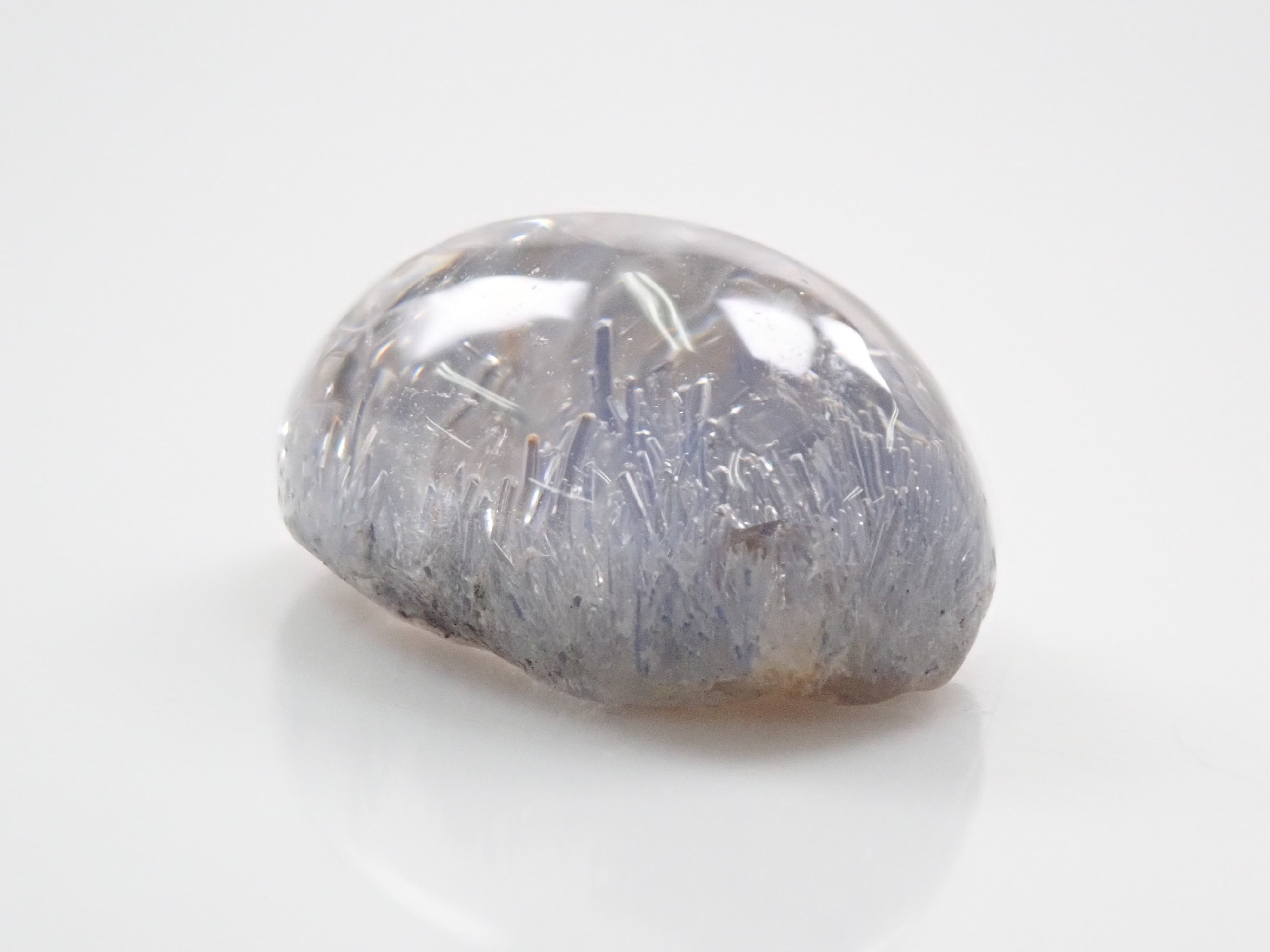 石英在日文中稱為水晶。它是一種在日本非常熟悉的石頭,但它也是一種深寶石,有紫水晶和黃水晶等多種類型。這是石英中的杜莫鐵石,帶有美麗的藍色內含物。沒有任何寶石具有相同的圖案,這塊石頭肯定會吸引收藏家。