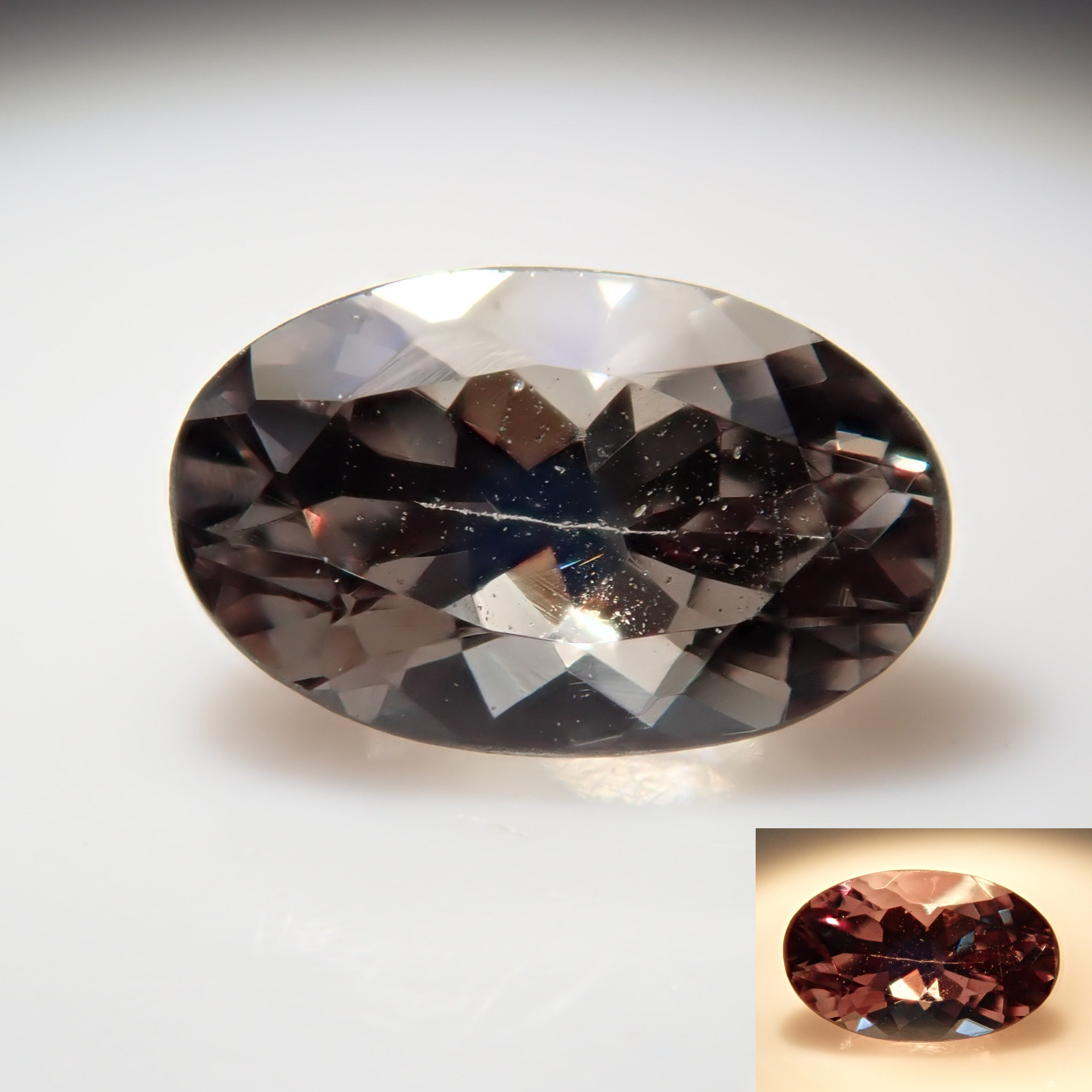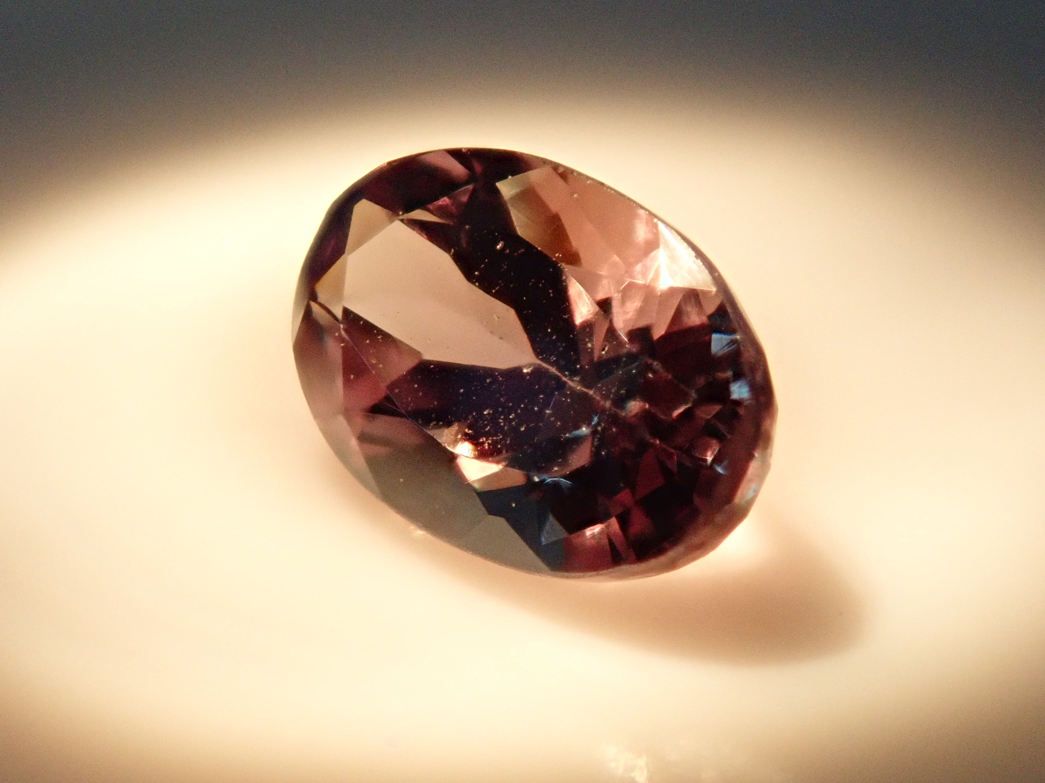 石榴石以一月生日石而聞名。它是標準寶石之一。不過這種變色類型的石榴石在市場上並不常見,所以很多人可能以為石榴石可以變色。這是一種相對罕見的石榴石,稱為貝基利藍石榴石,呈現藍色。請使用紅色變色筆燈欣賞變色效果。