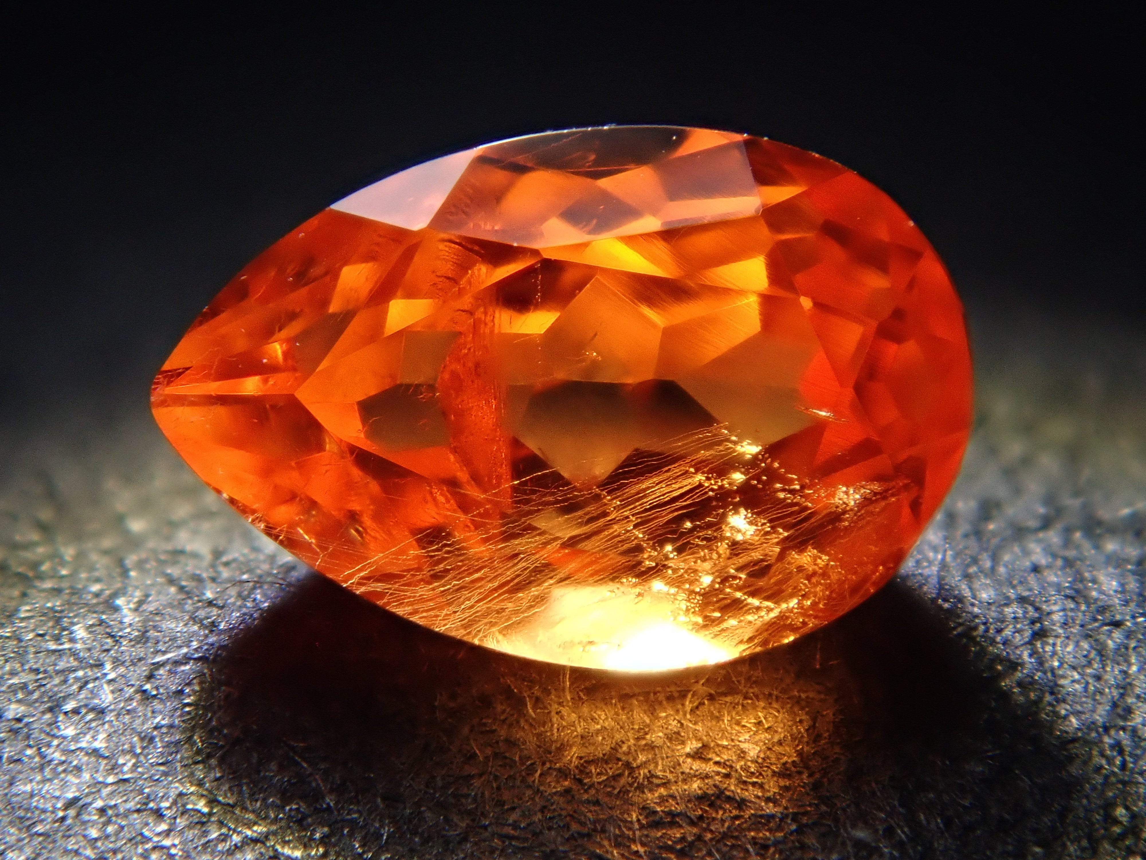 石榴石是著名的一月誕生石。它的顏色多種多樣,包括紅色、黃色、橙色和綠色。這顆「橘子石榴石」正如其名,呈現出鮮豔的橘色,宛如橘子。它也因其產地而被稱為“庫內內”(Kunene)或“霍蘭丁”(Hollandine)。