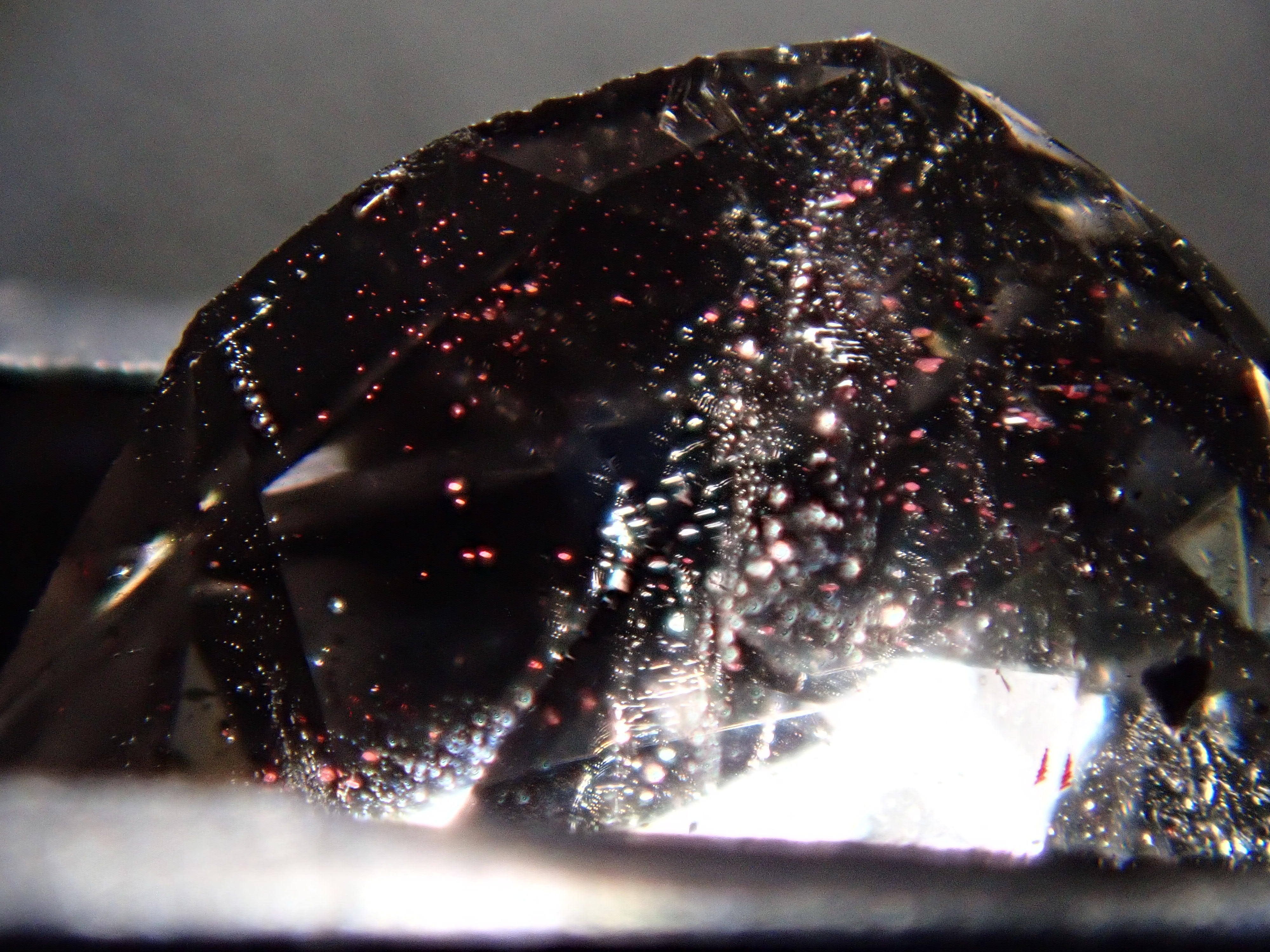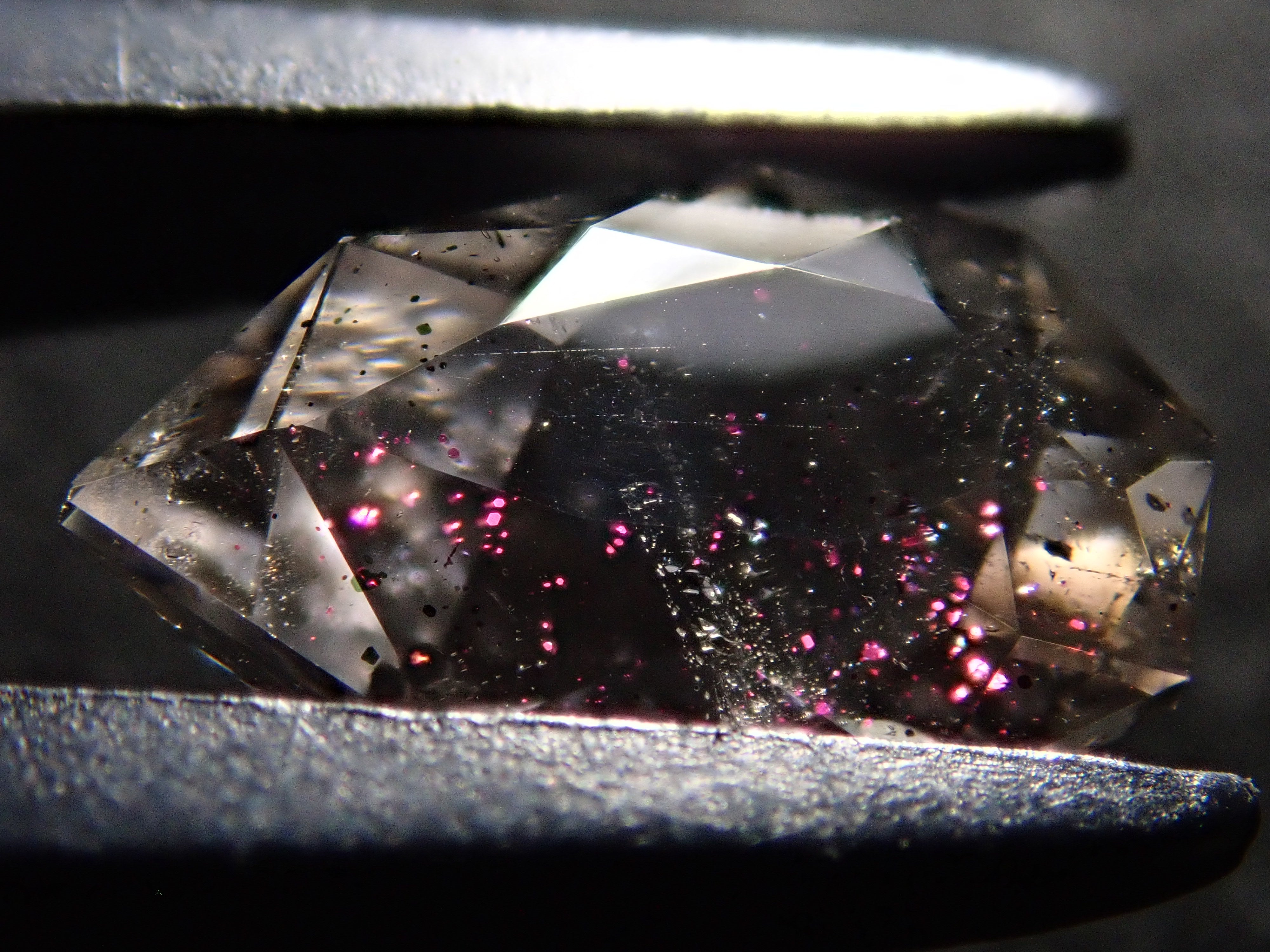石英,日文稱為“水晶”,在日本是一種常見的寶石,但它也是一種深奧的寶石,擁有眾多種類,包括紫水晶和黃水晶。這種形狀像紅色花瓣的水晶被稱為「小叮噹石英」或「粉紅火石英」。照片是用筆形電筒拍攝的,以便清晰地顯示內部內含物的狀態。