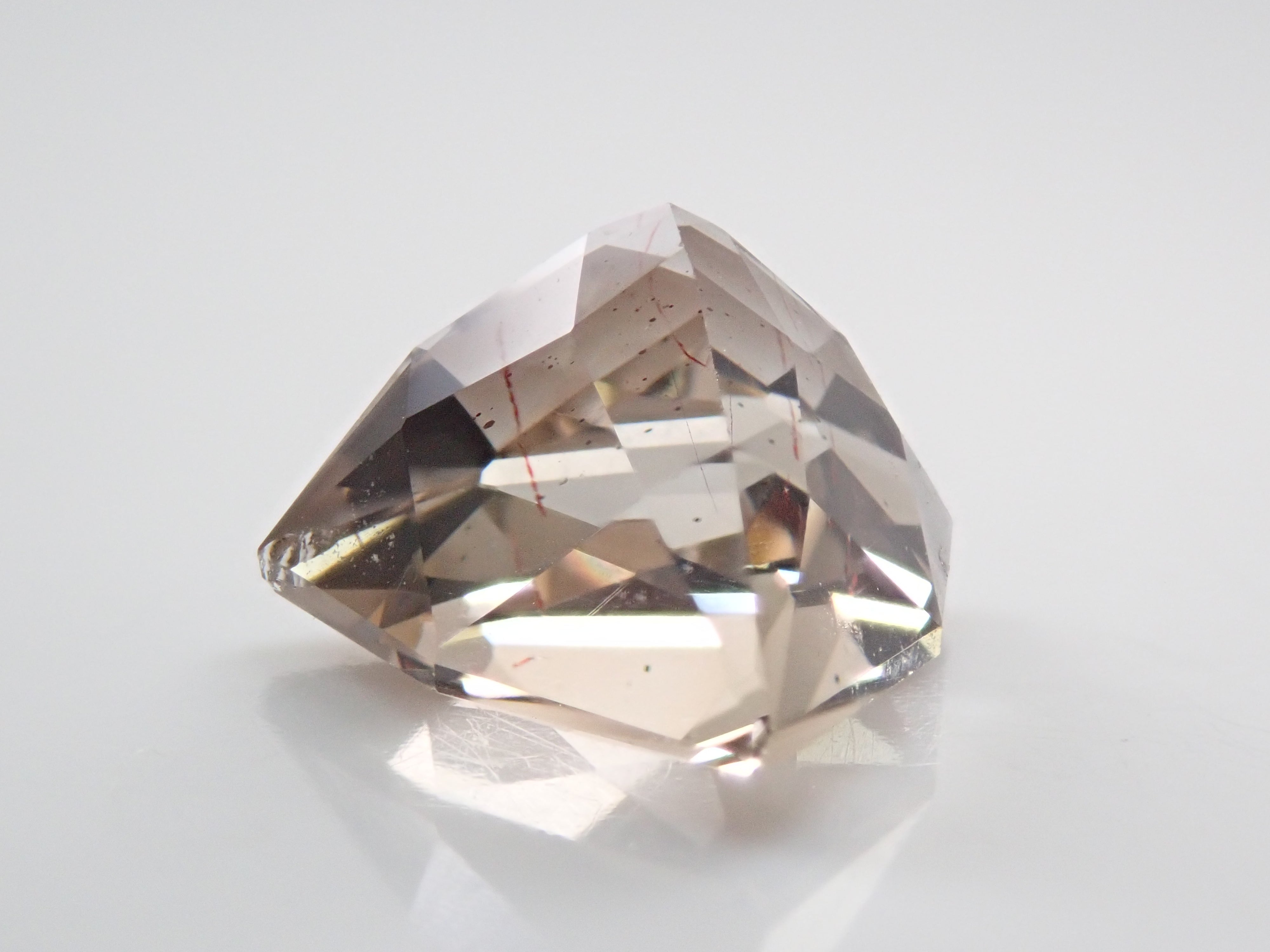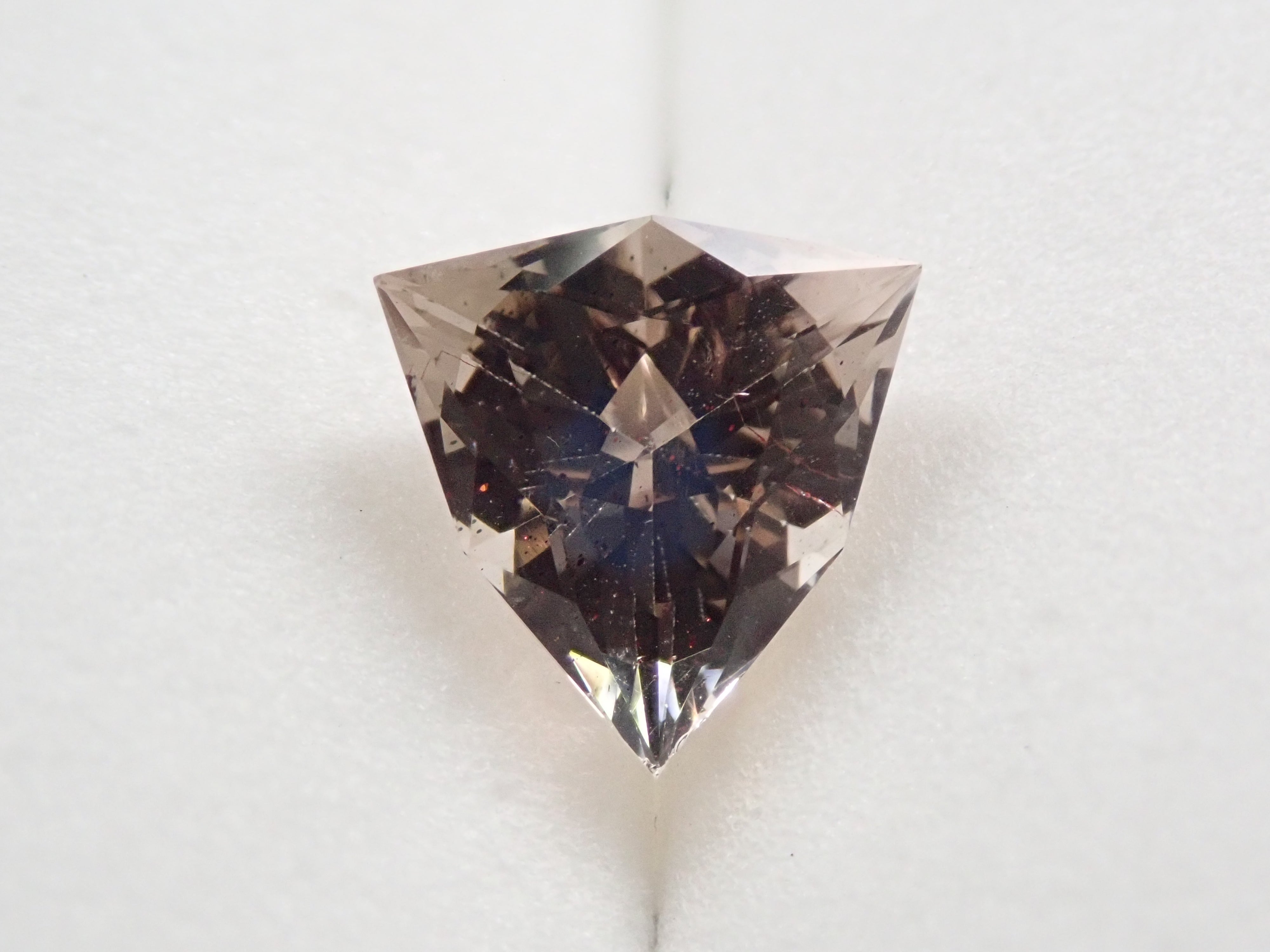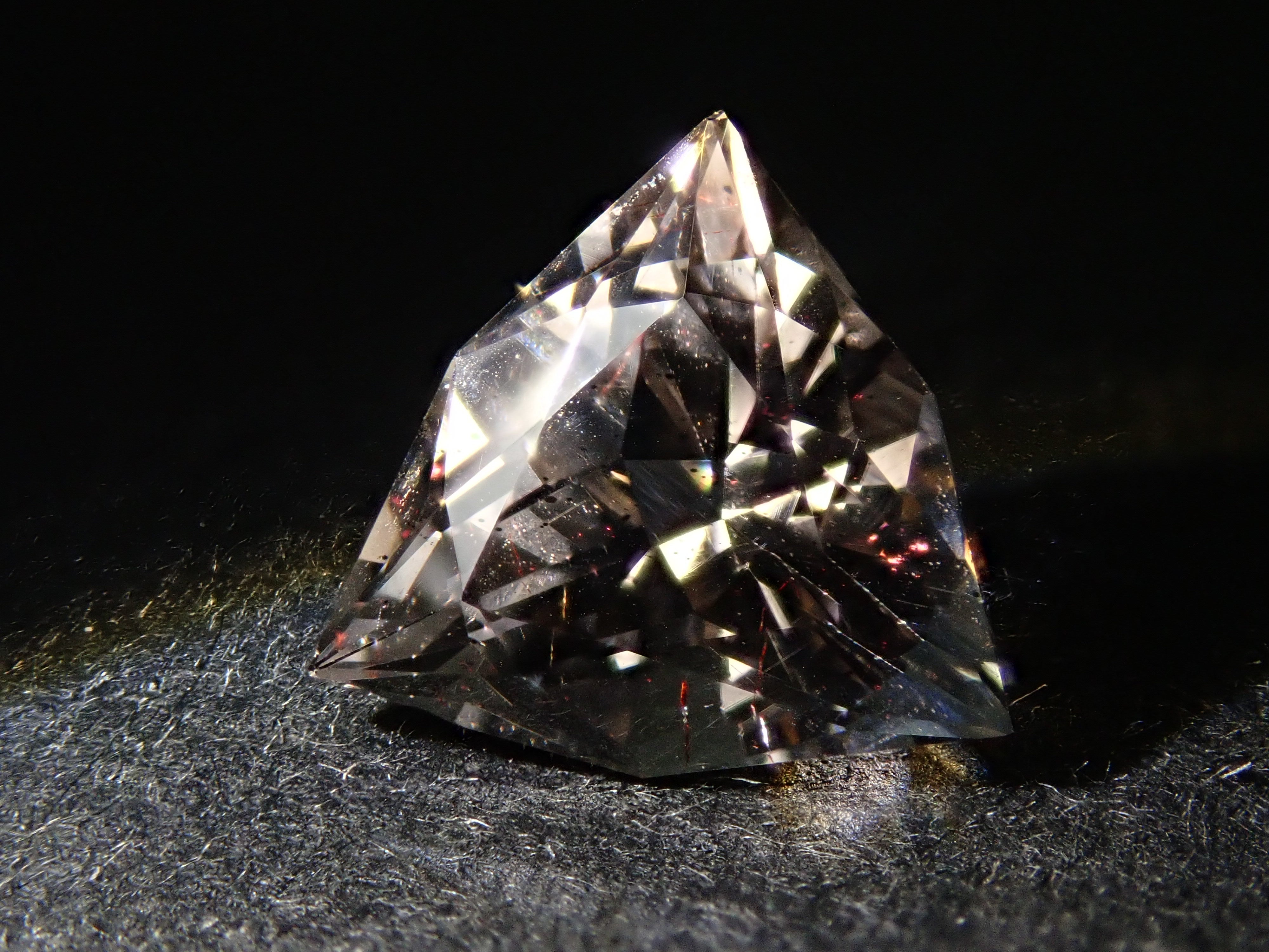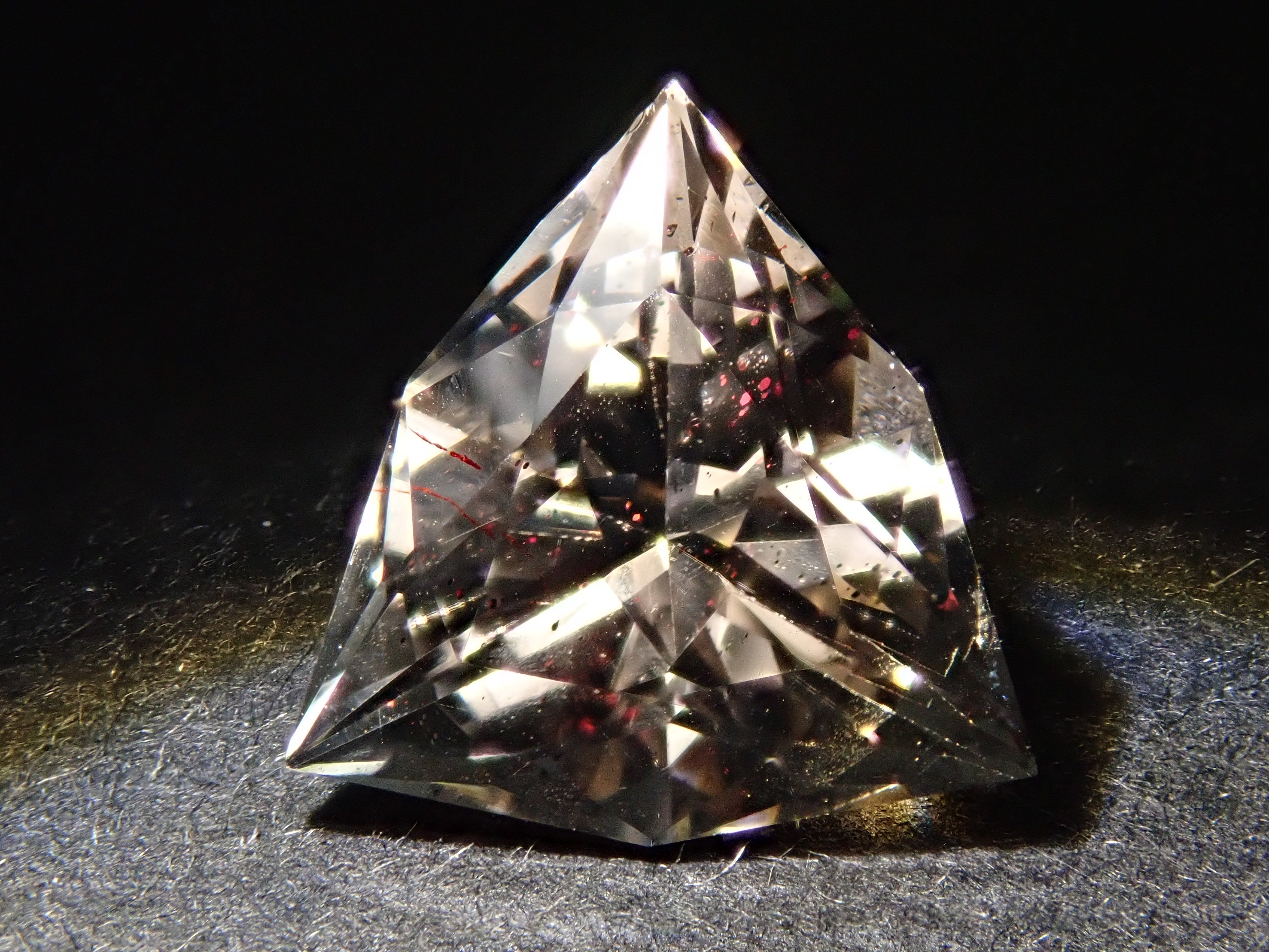 石英在日文中稱為水晶。它是一種在日本非常熟悉的石頭,但它也是一種深寶石,有紫水晶和黃水晶等多種類型。這種晶體看起來像暴風雪般的紅色花朵,被稱為小叮噹石英或粉紅火石英。為了清楚地顯示裡麵包裹體的樣子,我用了筆電筒拍照。