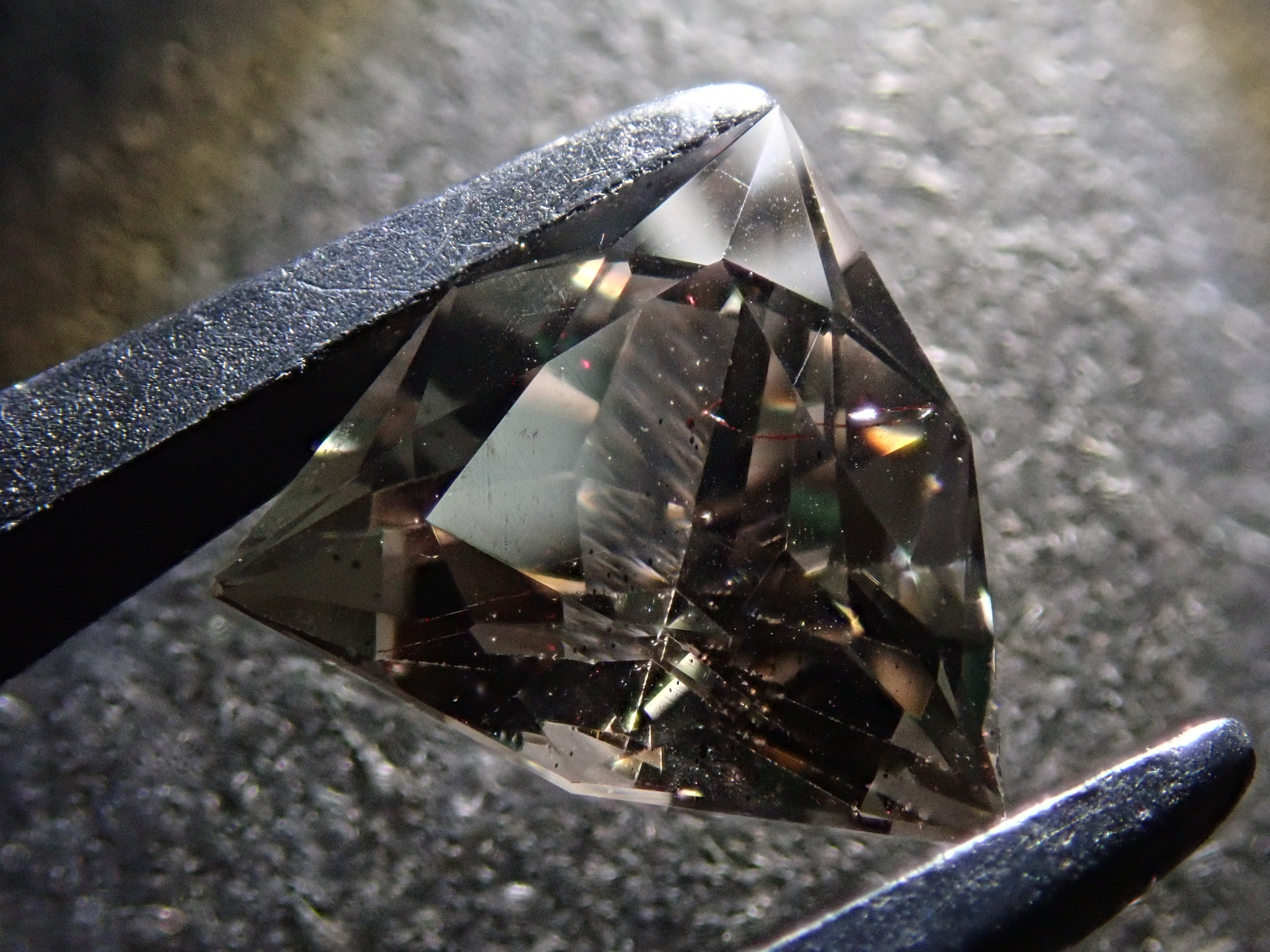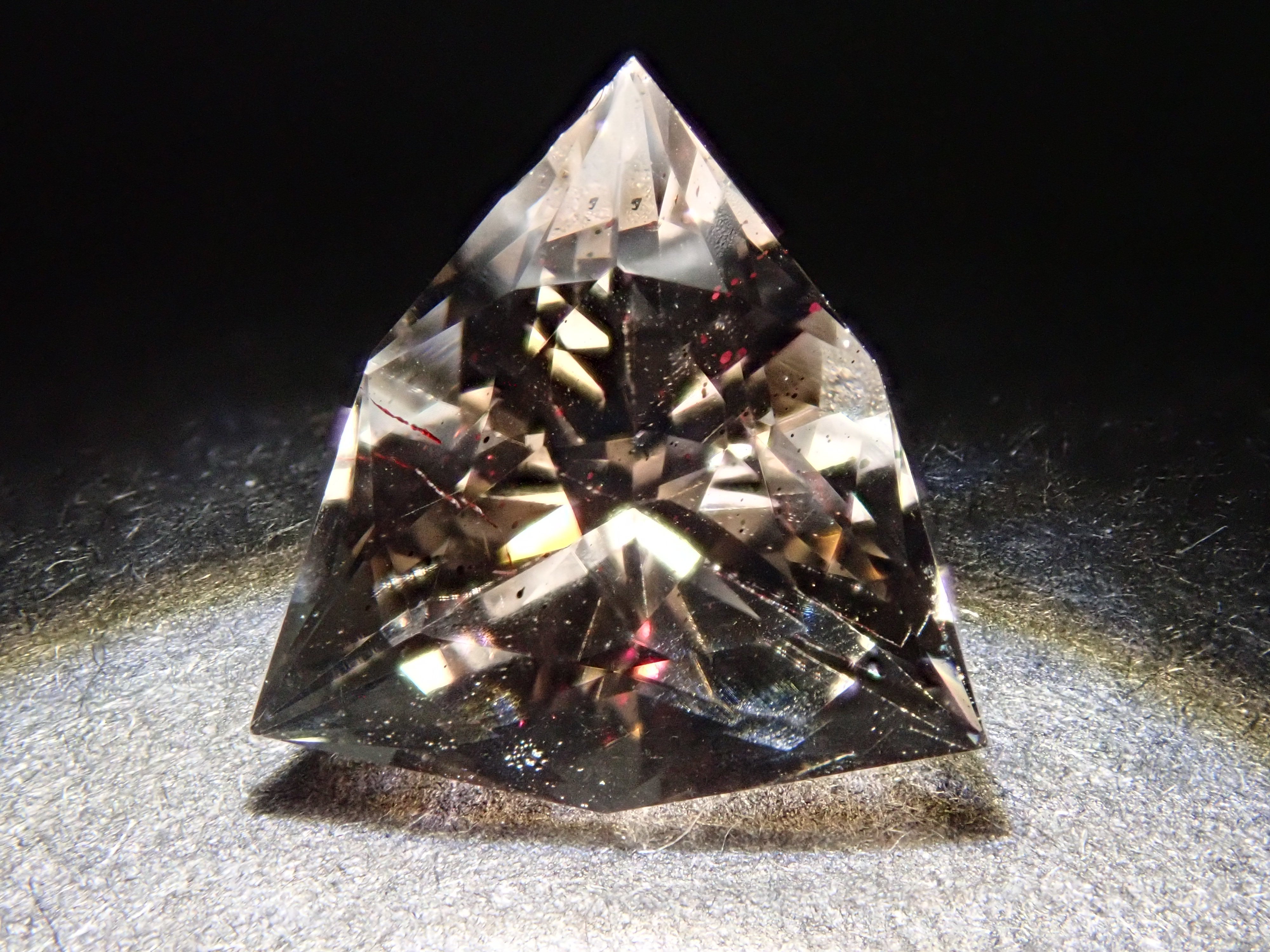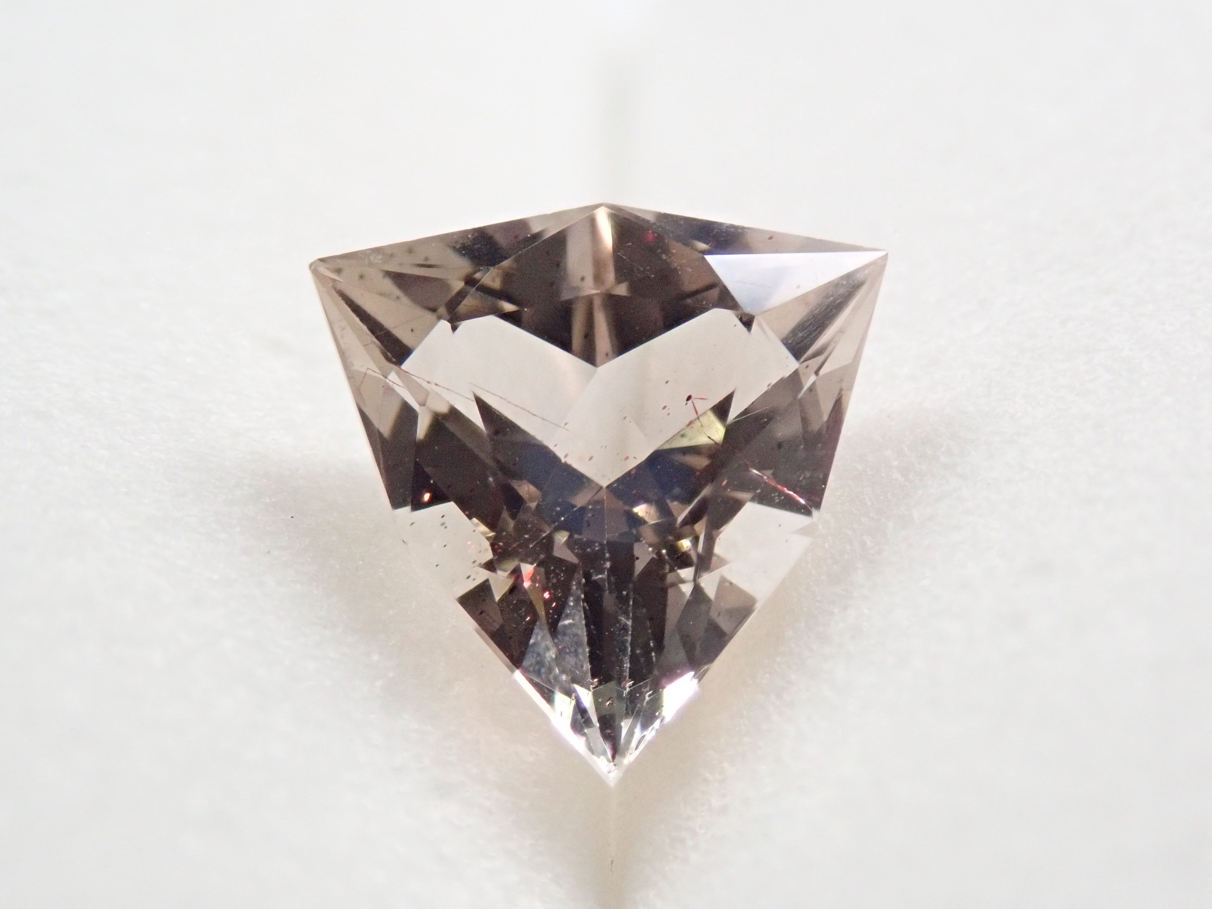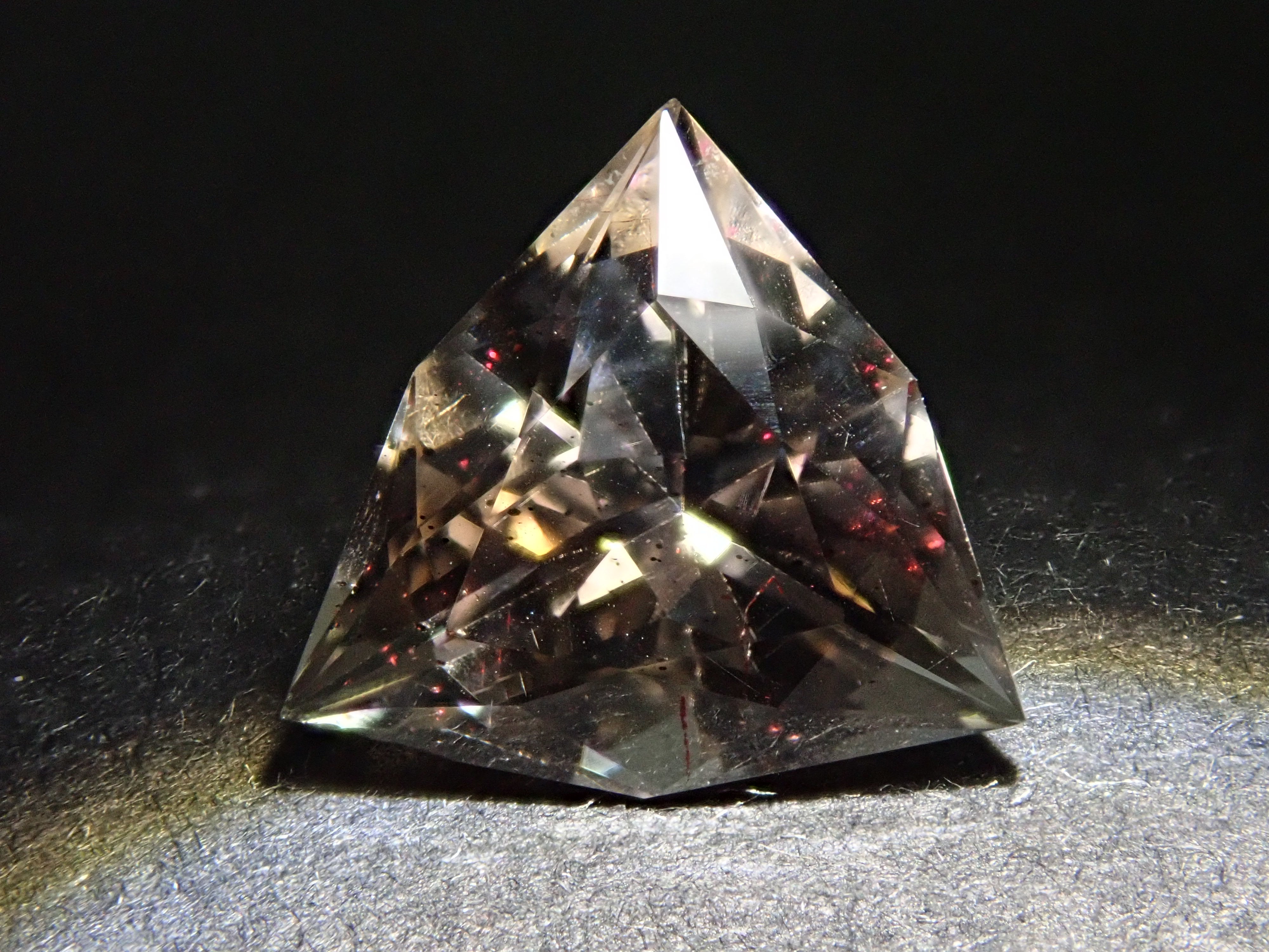 石英在日文中稱為水晶。它是一種在日本非常熟悉的石頭,但它也是一種深寶石,有紫水晶和黃水晶等多種類型。這種晶體看起來像暴風雪般的紅色花朵,被稱為小叮噹石英或粉紅火石英。為了清楚地顯示裡麵包裹體的樣子,我用了筆電筒拍照。