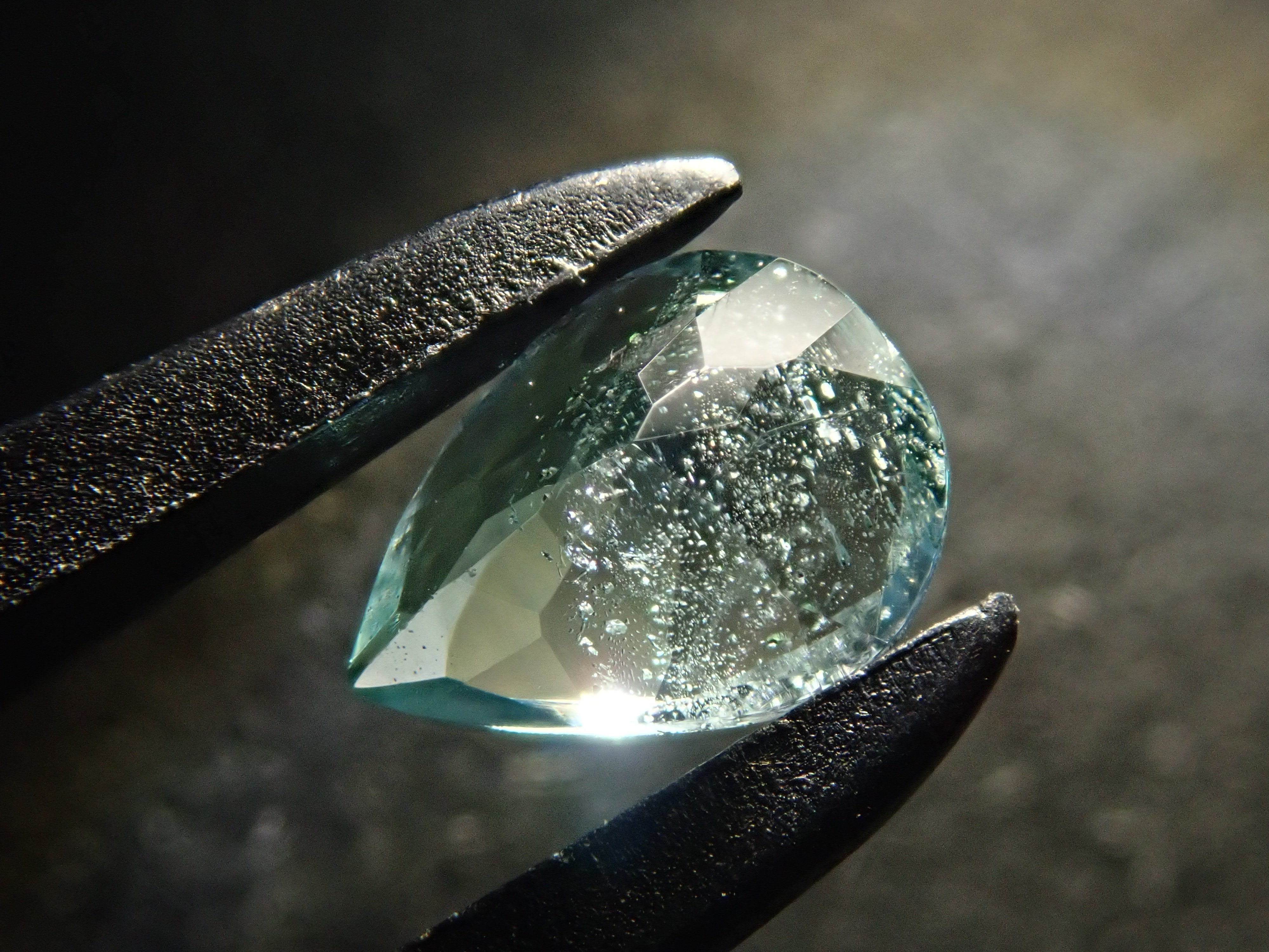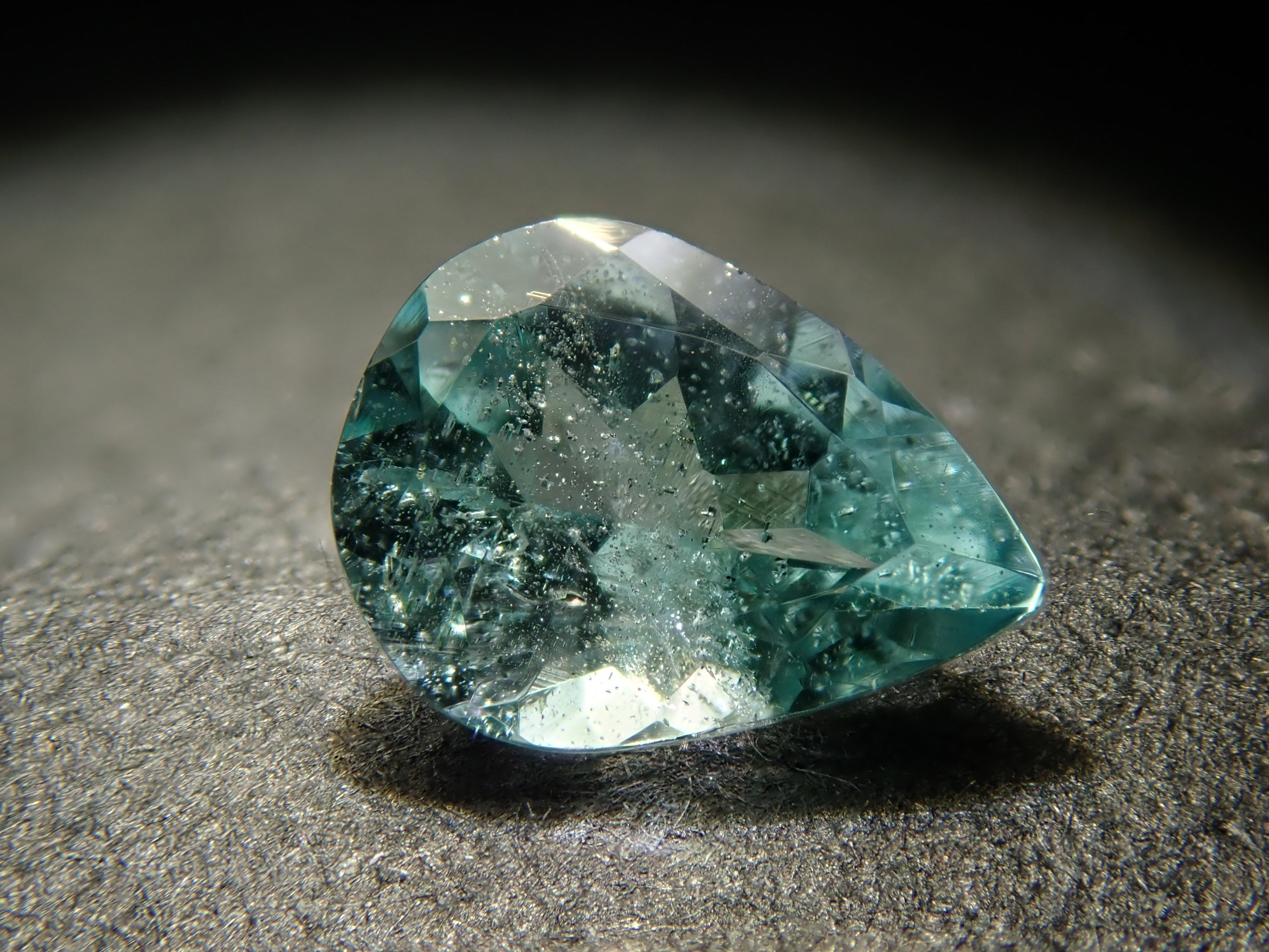 茱萸石因其多色性而引人注目,這使得從不同角度觀看時呈現出不同的顏色。它是稀有寶石之一。多向色性通常以三種顏色出現,有些顏色就像魔法一樣變化,從藍色到紫色,從綠色到透明。據說,顆粒越大,其多色性就越美麗,但這種情況並不多見。這是一枚產自坦尚尼亞的梨形切割康乃爾別針,重 0.303 克拉。