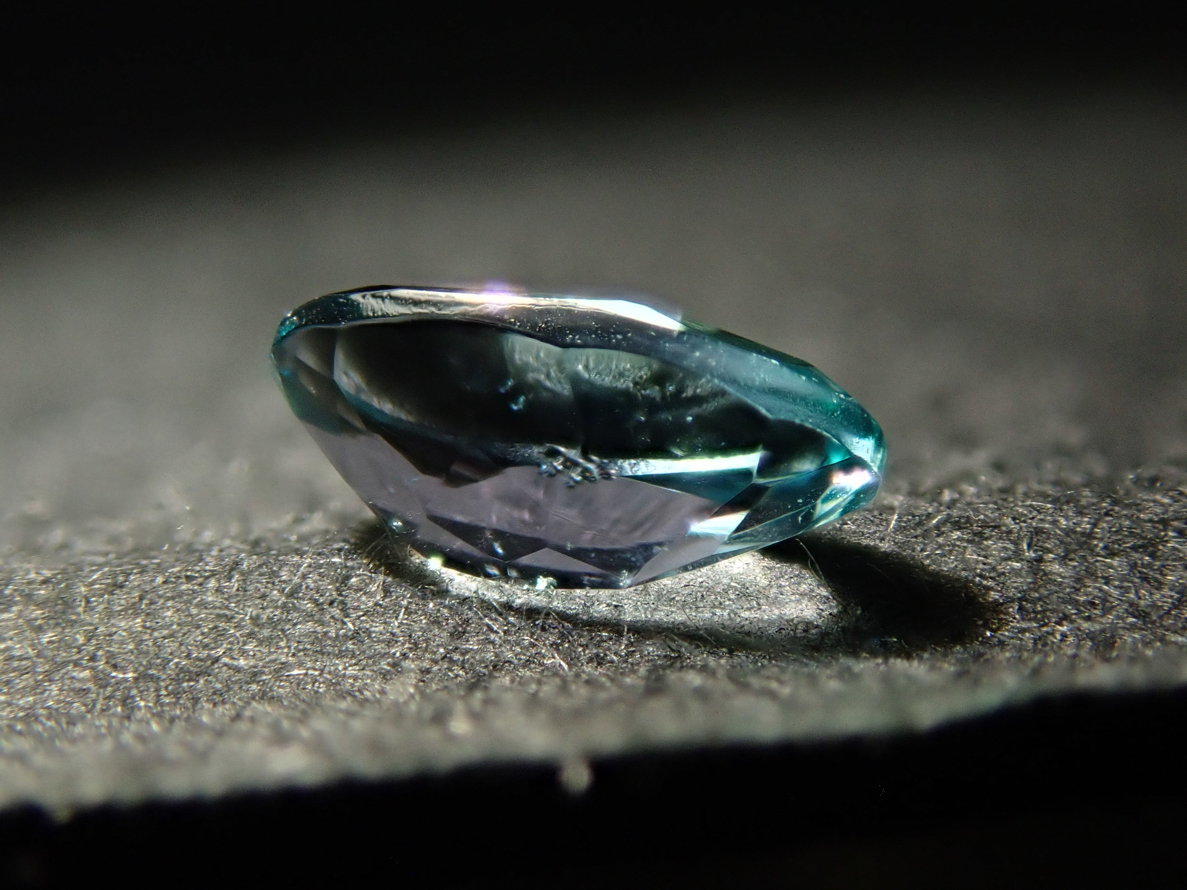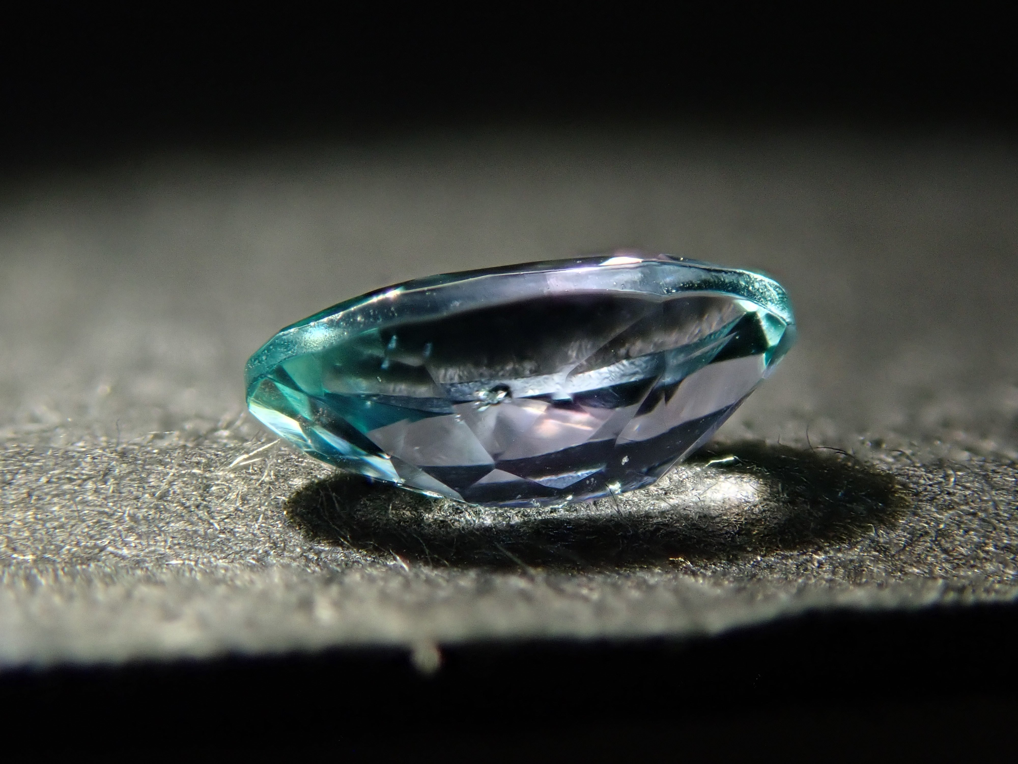 山茱萸因其多色性而引人注目,這使得從不同角度觀看時呈現出不同的顏色。它是稀有寶石之一。多向色性通常以三種顏色出現,有些可以神奇地從藍色變為紫色、綠色和透明。據說,顆粒越大,其多色性就越美麗,但這種情況並不多見。這是產自坦尚尼亞的高度透明的角松 0.210 克拉晶片。