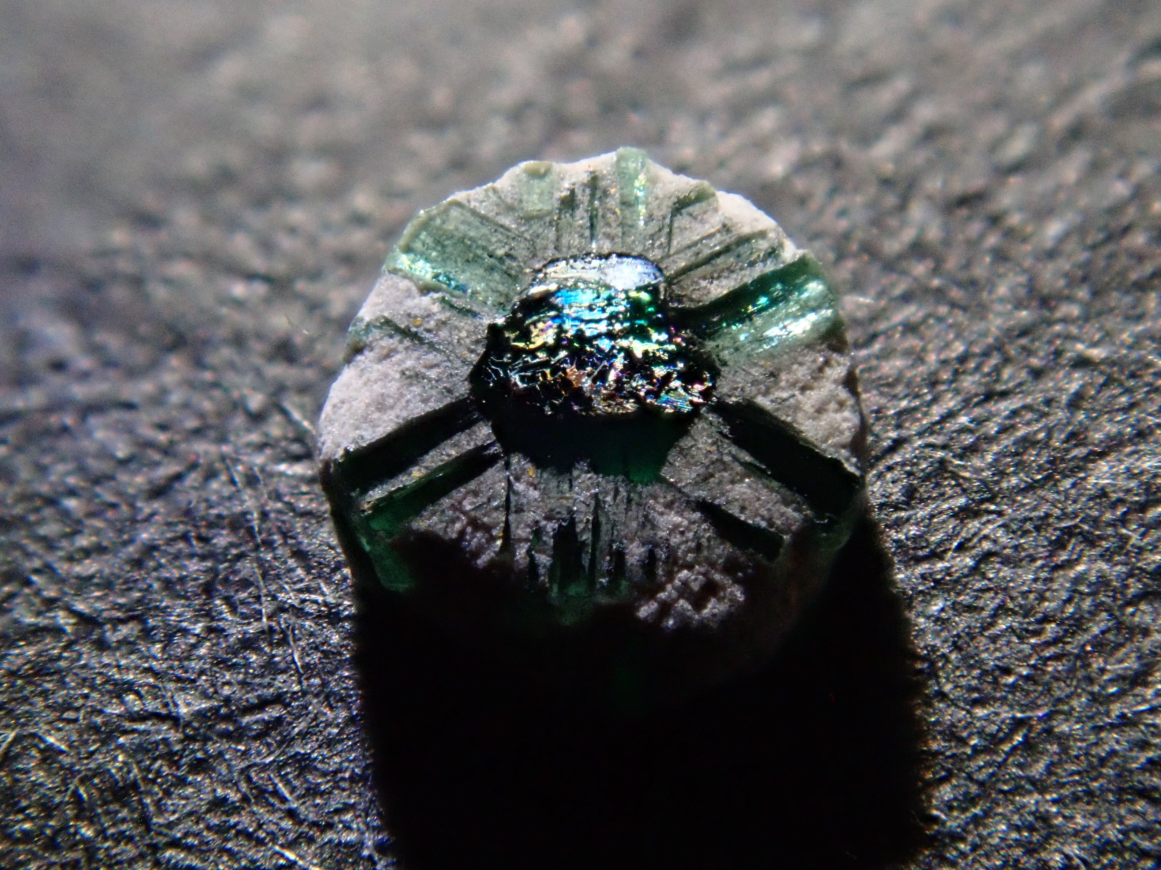 達碧茲祖母綠有六條線,是一種稀有寶石,僅佔所有祖母綠的一小部分。人們認為這種圖案是由於晶體生長過程中混入的雜質所導致的,然後沿著晶體垂直延伸。這是一顆鬆散達碧茲祖母綠,與普通達碧茲祖母綠類型相反。這是一種非常罕見的祖母綠類型,稱為反向達碧茲祖母綠,其中心有一顆祖母綠原石,生長方式與平常不同。在當地它也被稱為達碧茲祖母綠 Contrario。