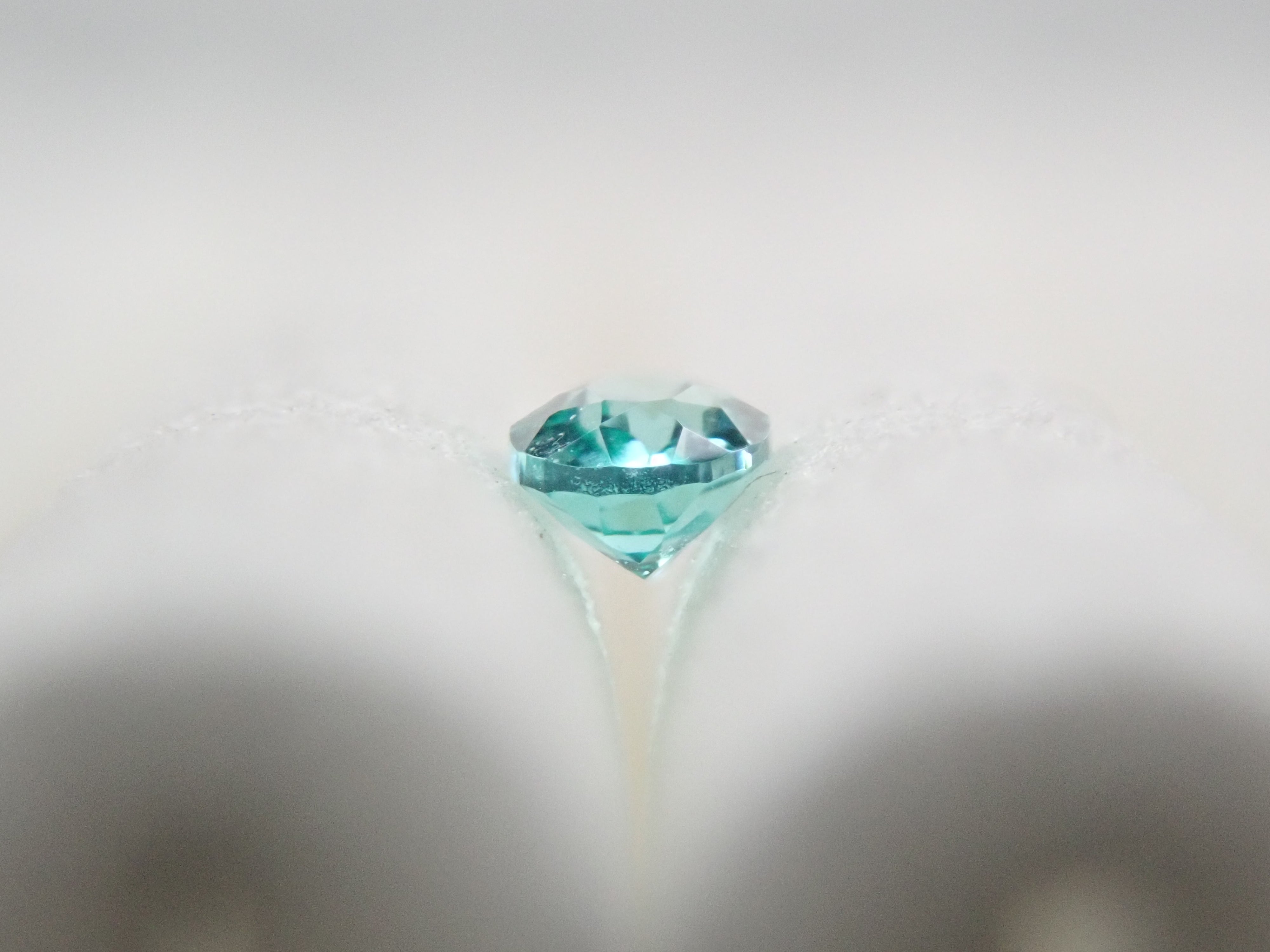 這是一顆巴西帕拉伊巴碧璽,尺寸為2.5 x 1.8毫米。這顆碧璽是高品質的裸石,透明度高。