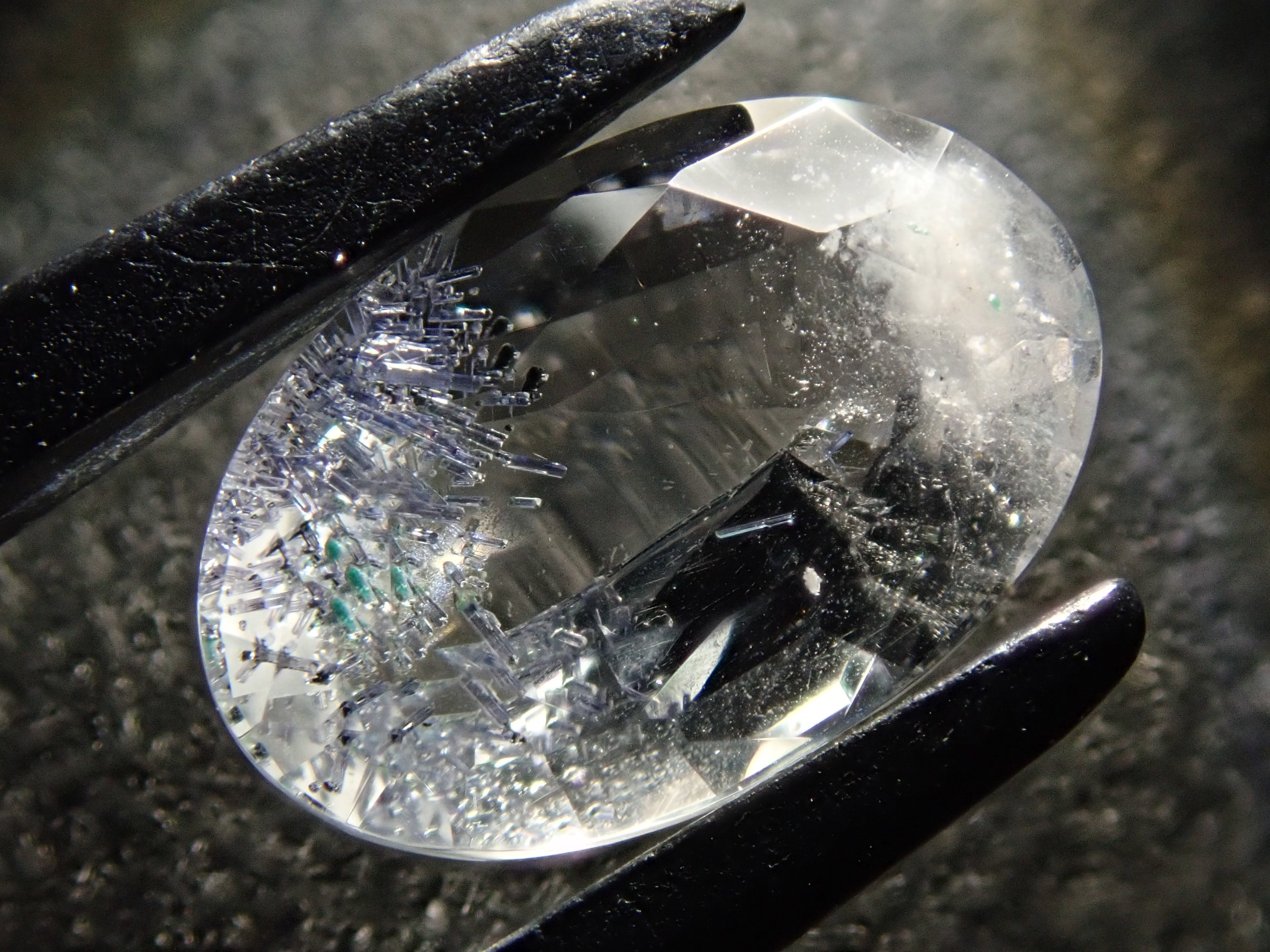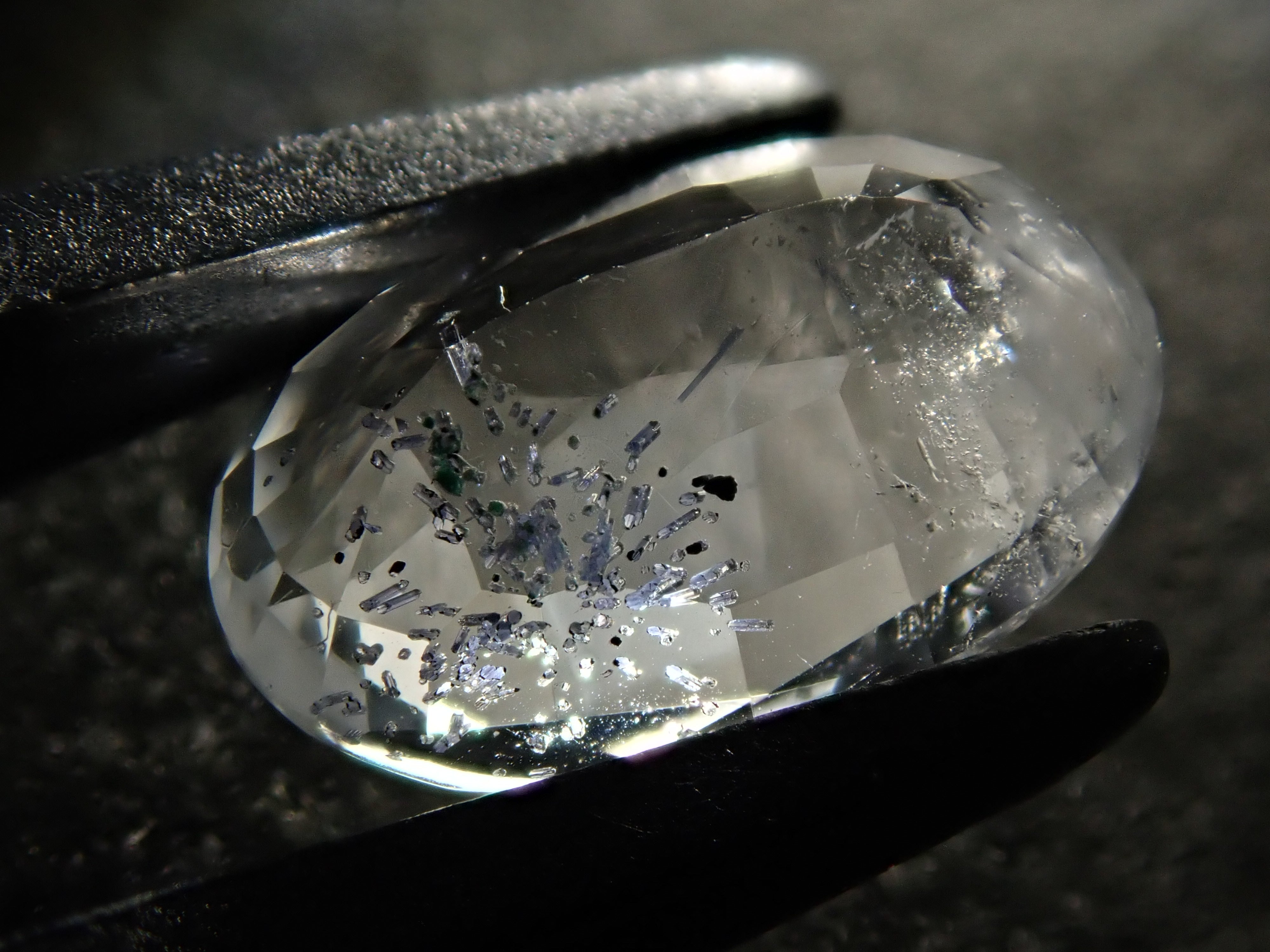 它是鬆散的,並被拋光成刻面切割,這對於石英中的矽錳鐵礦來說是罕見的。