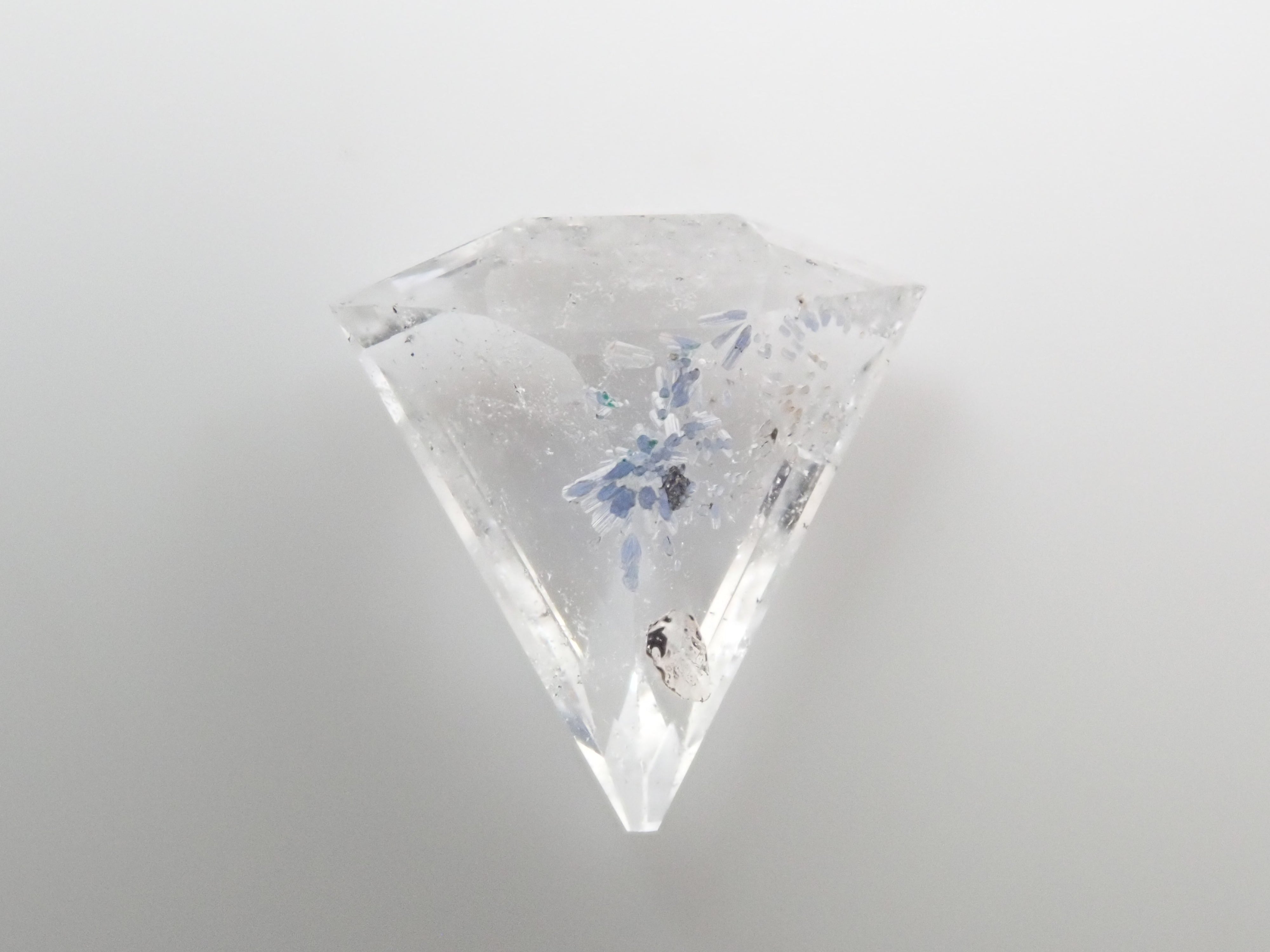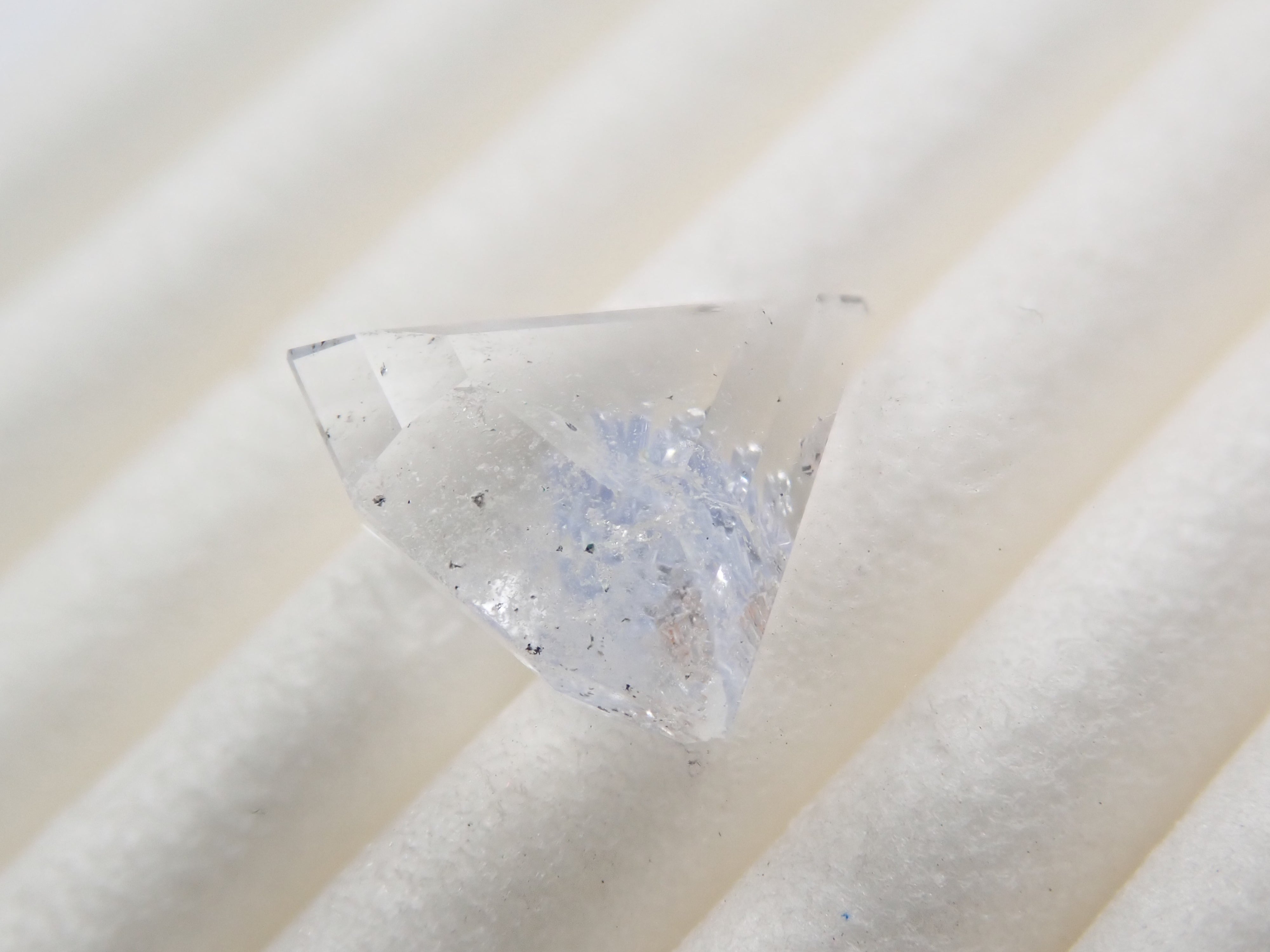石英在日文中稱為水晶。它是一種在日本非常熟悉的石頭,但它也是一種深寶石,有紫水晶和黃水晶等多種類型。這是石英中的杜莫鐵石,帶有美麗的藍色內含物。沒有任何寶石具有相同的圖案,這塊石頭肯定會吸引收藏家。
