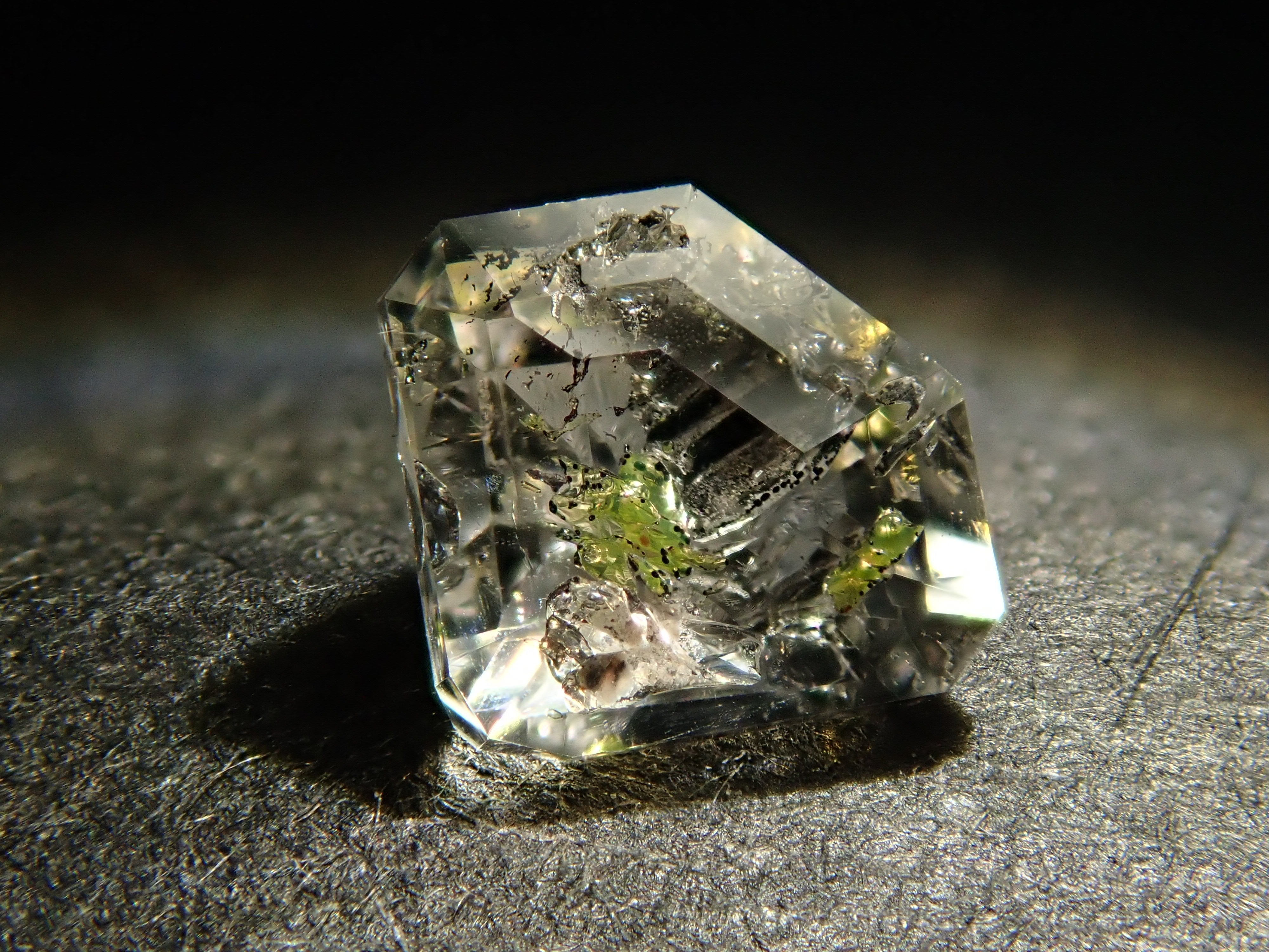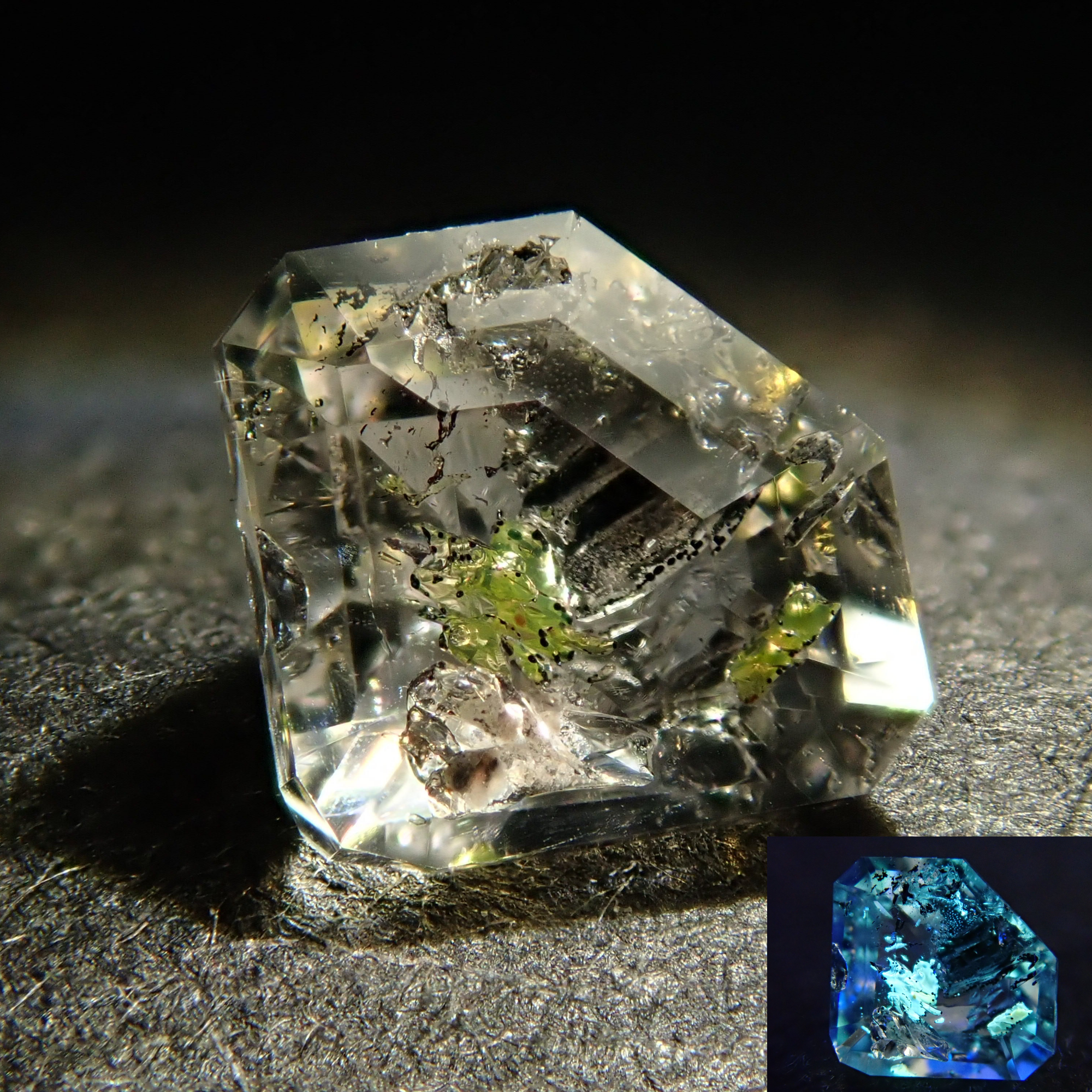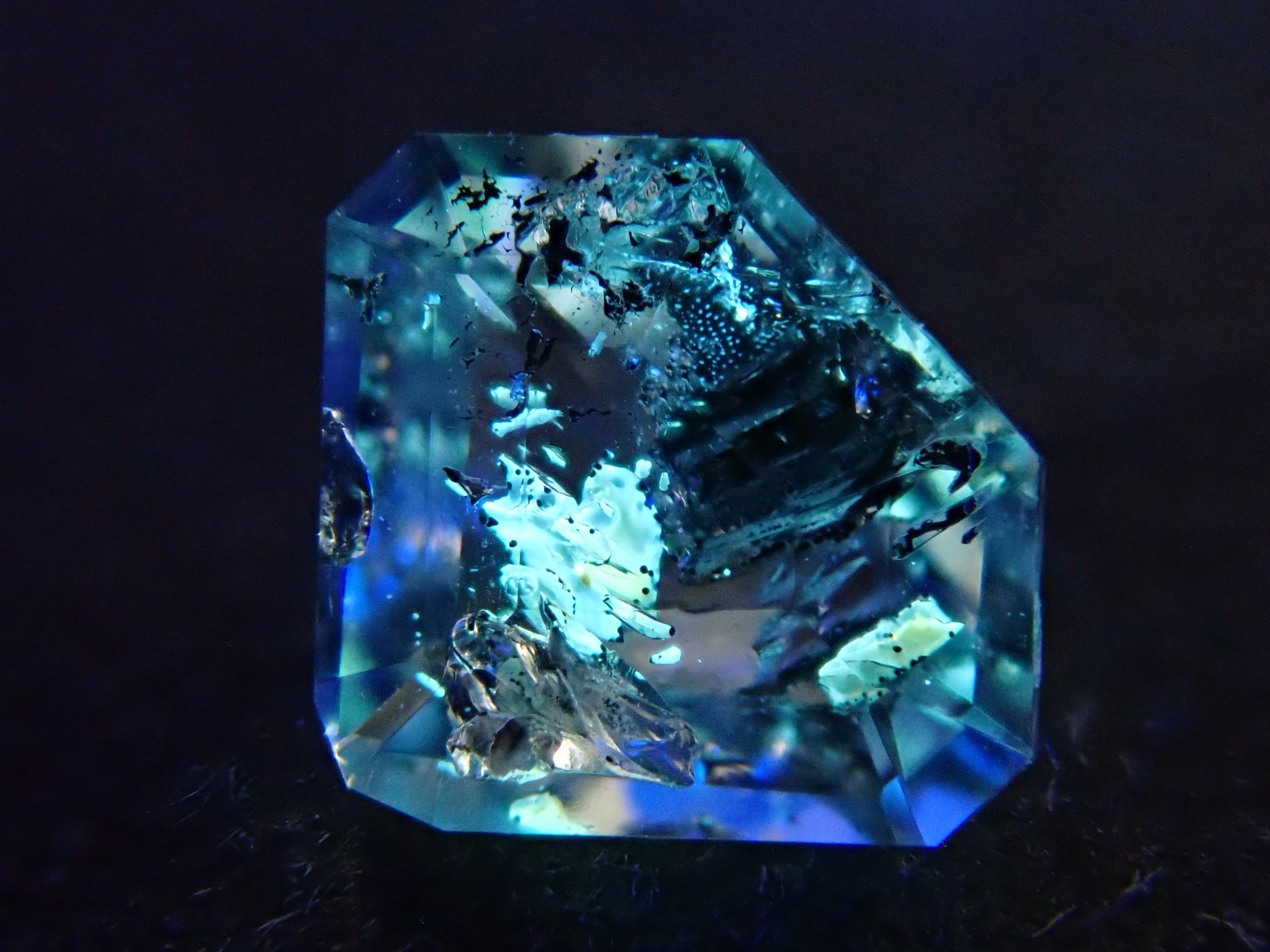 石英在日文中稱為水晶。它是一種在日本非常熟悉的石頭,但它也是一種深寶石,有紫水晶和黃水晶等多種類型。顧名思義,這是一種含有油的石英石。當暴露在黑光下時,內含物會發出螢光並發出藍光,賦予它們非常神奇的外觀。 它是一種刻面切割的含油石英。