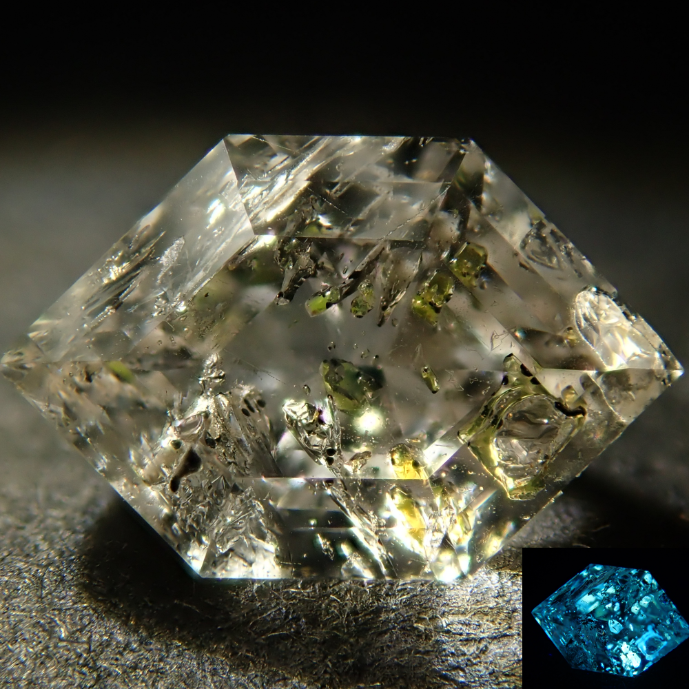 石英在日文中稱為水晶。它是一種在日本非常熟悉的石頭,但它也是一種深寶石,有紫水晶和黃水晶等多種類型。顧名思義,這是一種含有油的石英石。當暴露在黑光下時,內含物會發出螢光並發出藍光,賦予它們非常神奇的外觀。