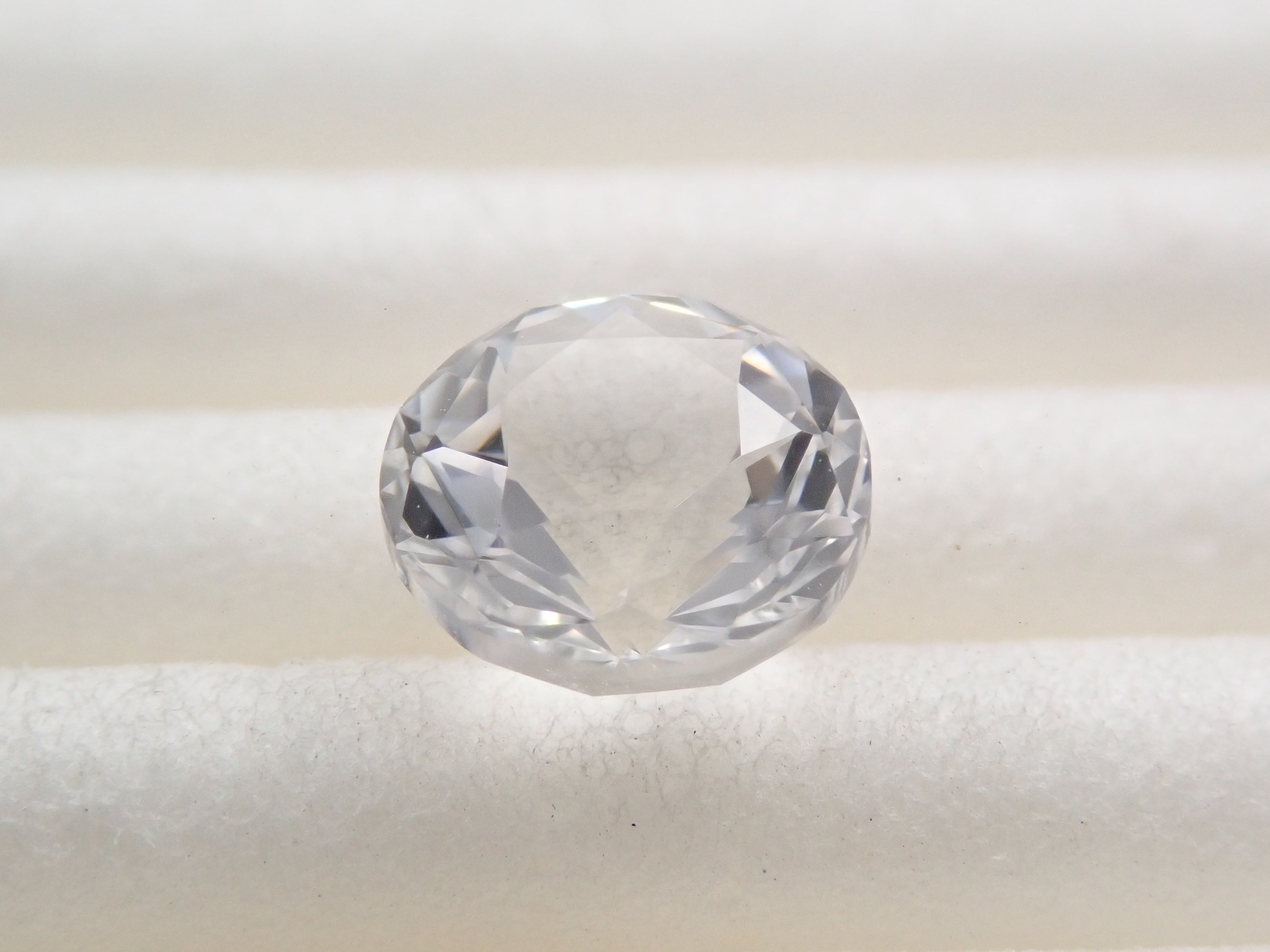 「戈珊石」一下子在珠寶之國名聲大噪。也稱為「戈珊石」。從礦物角度來看,它與祖母綠和海藍寶石一樣屬於綠柱石家族的一員,也被稱為無色綠柱石意義上的「白色綠柱石」。其高透明度賦予其高貴感。是6毫米。由斯里蘭卡拋光師 Sanjay 切割。