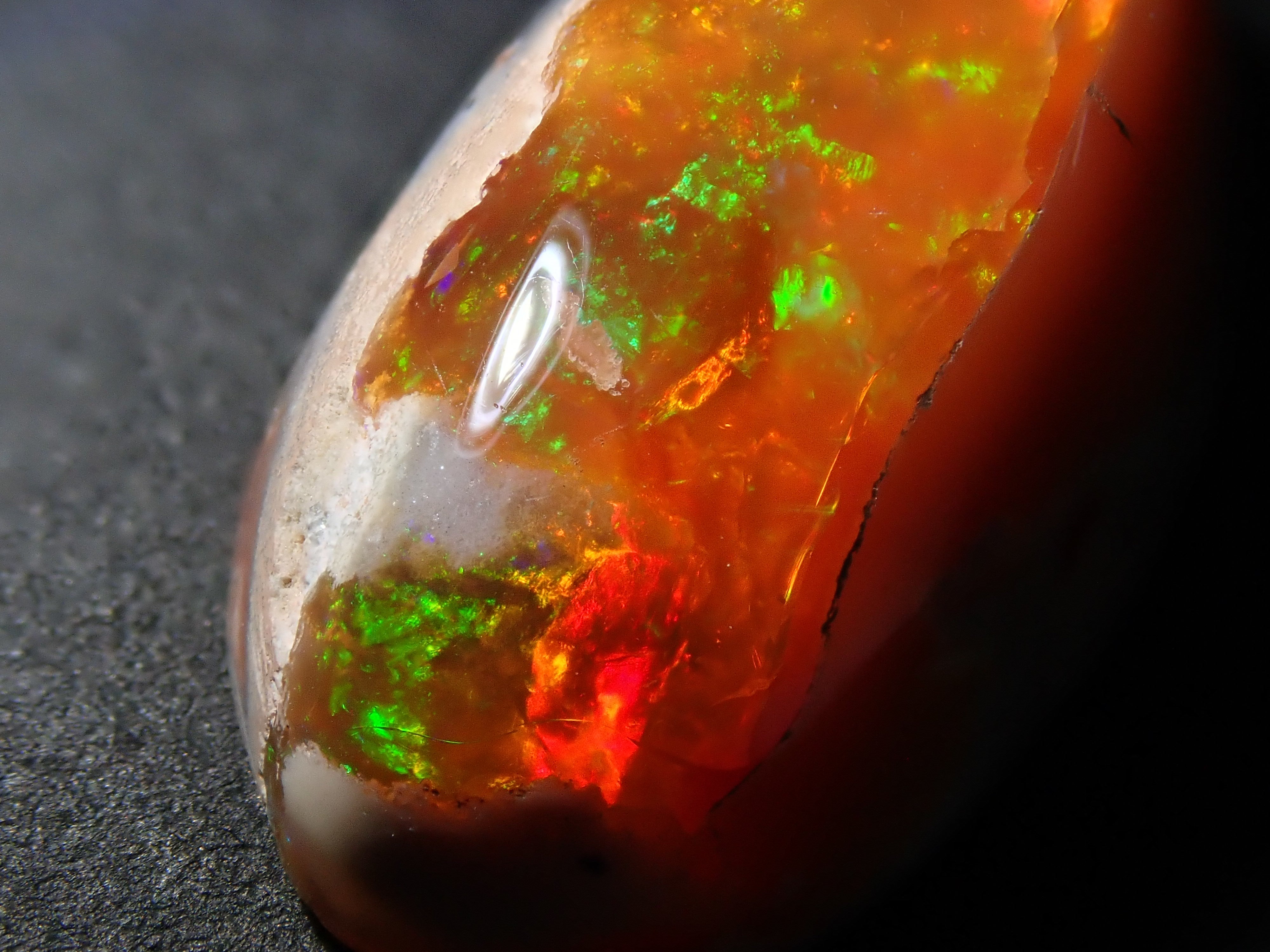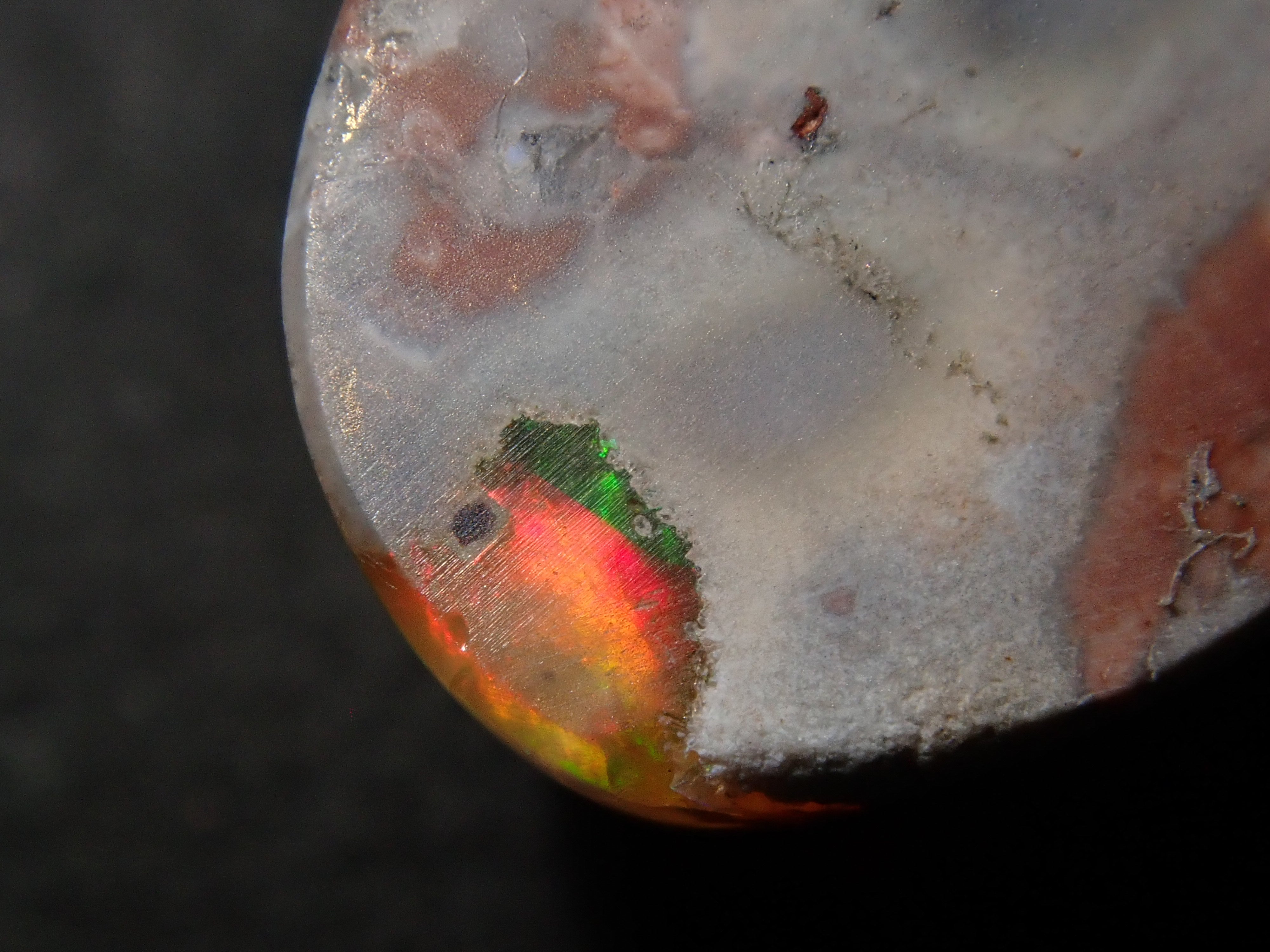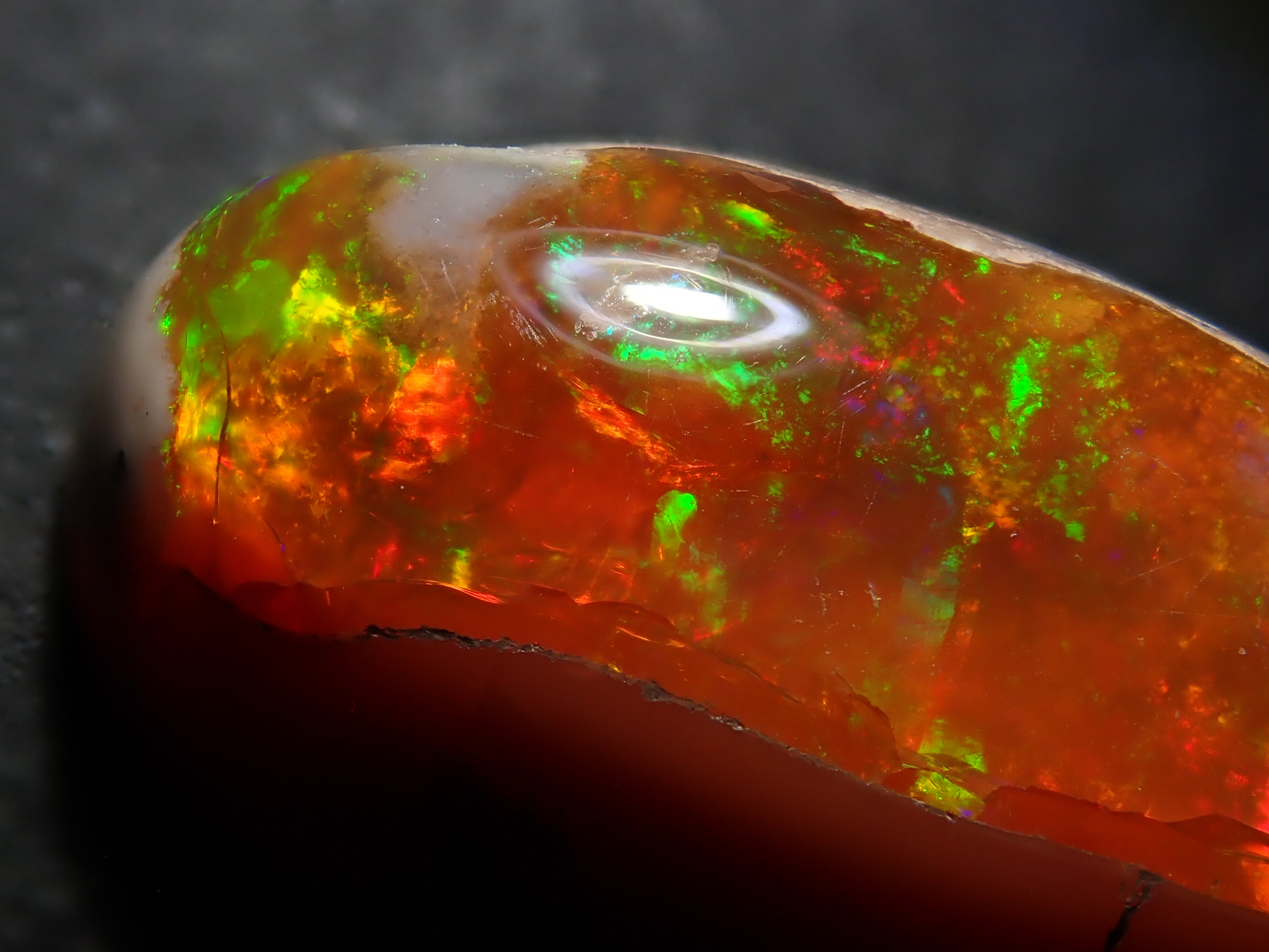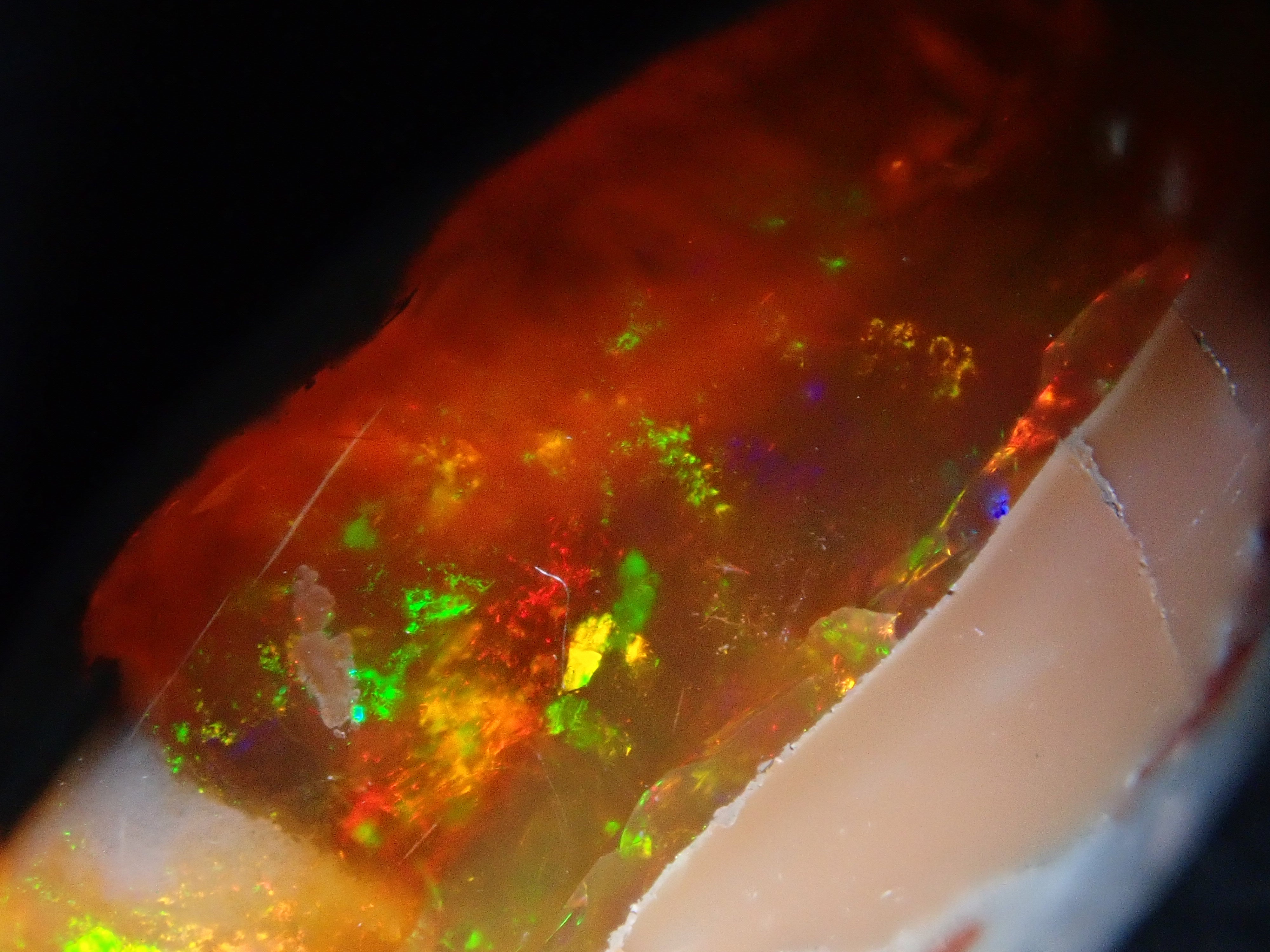 Cantera 蛋白石原本是一種有許多環的寶石。照片是使用筆燈拍攝的。