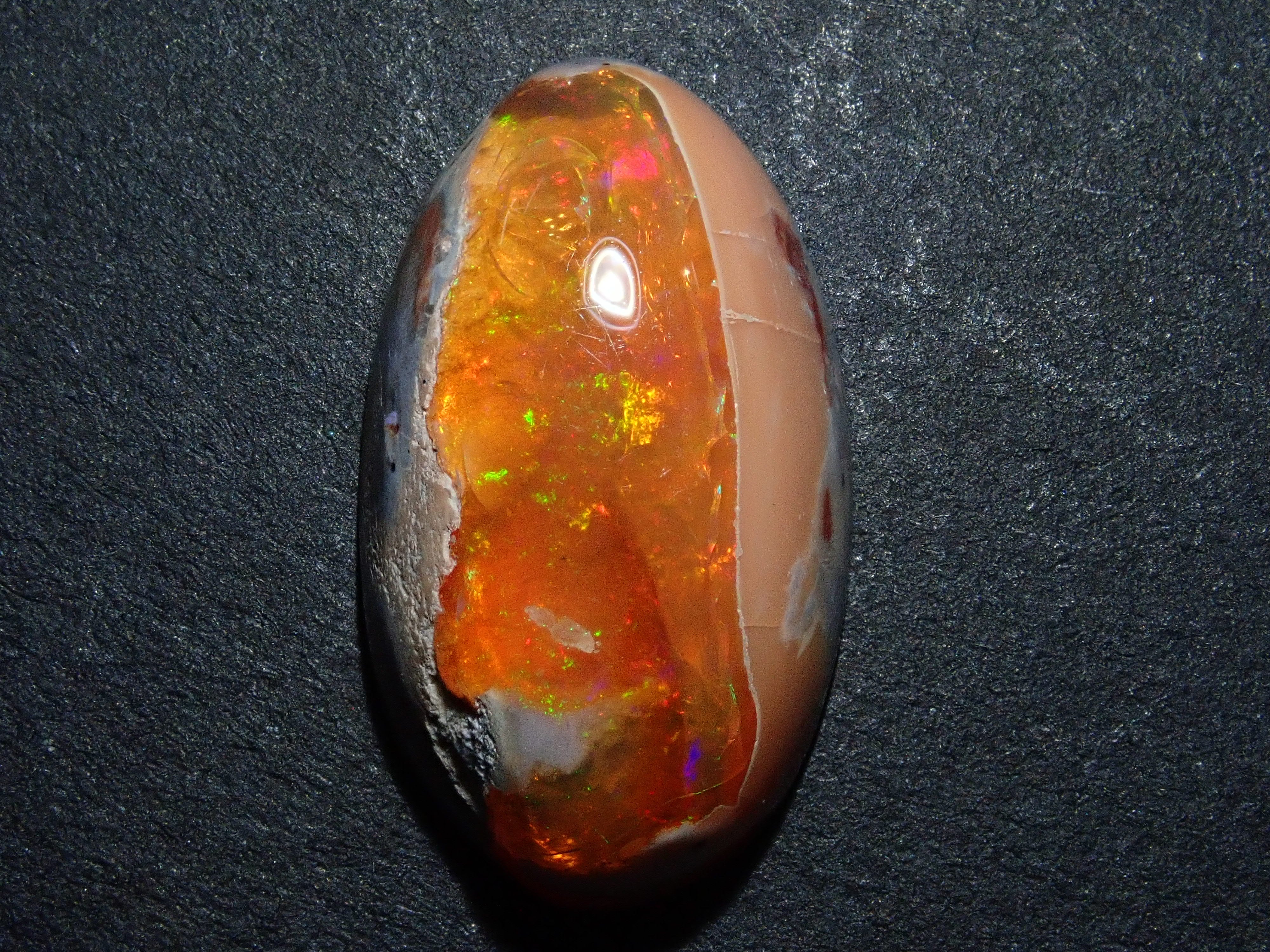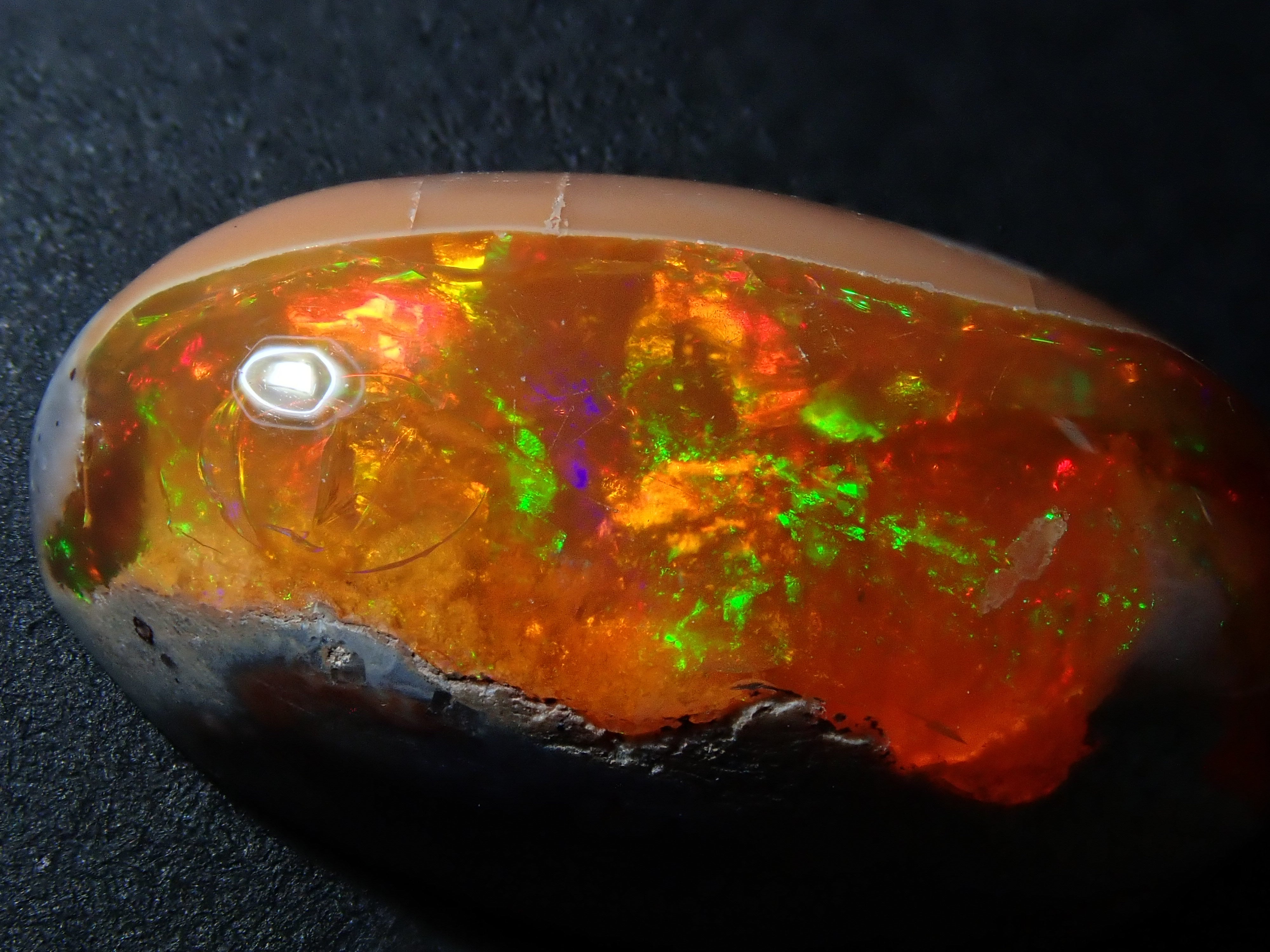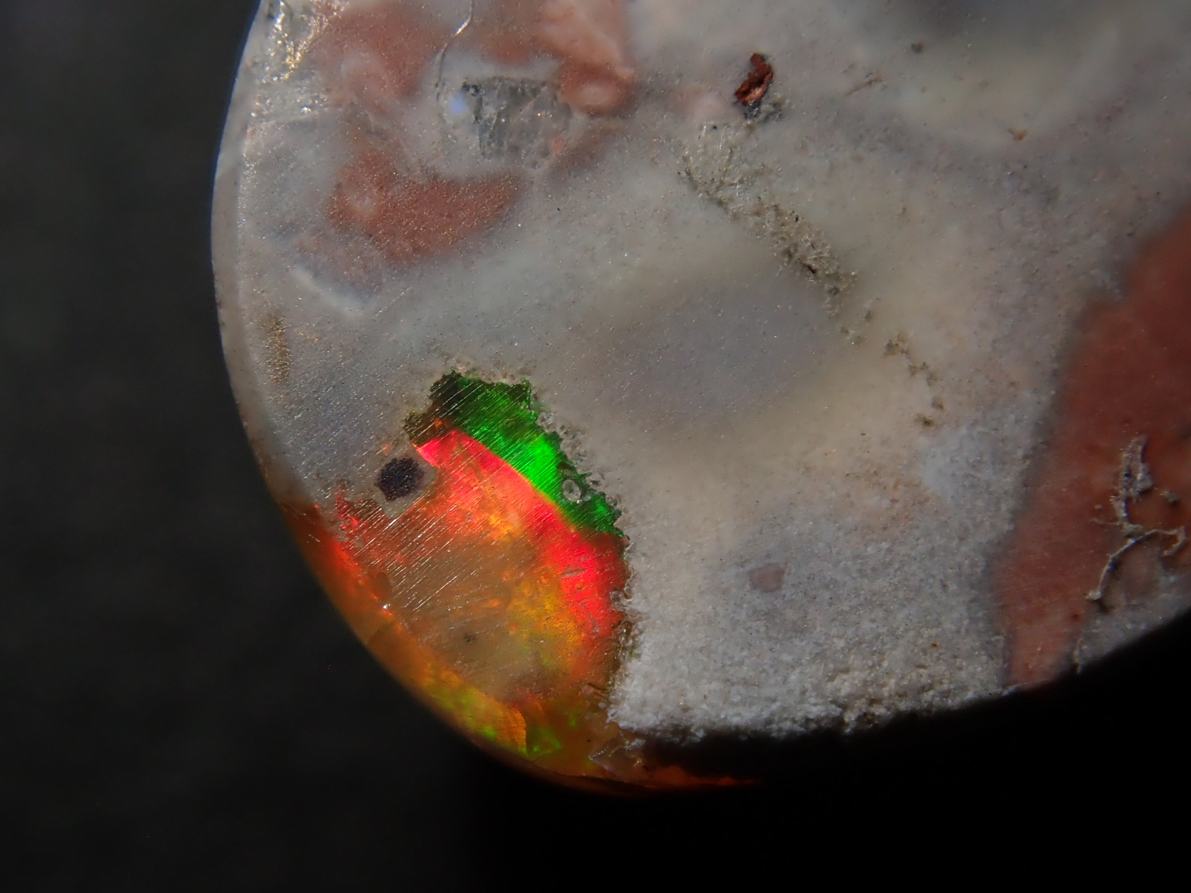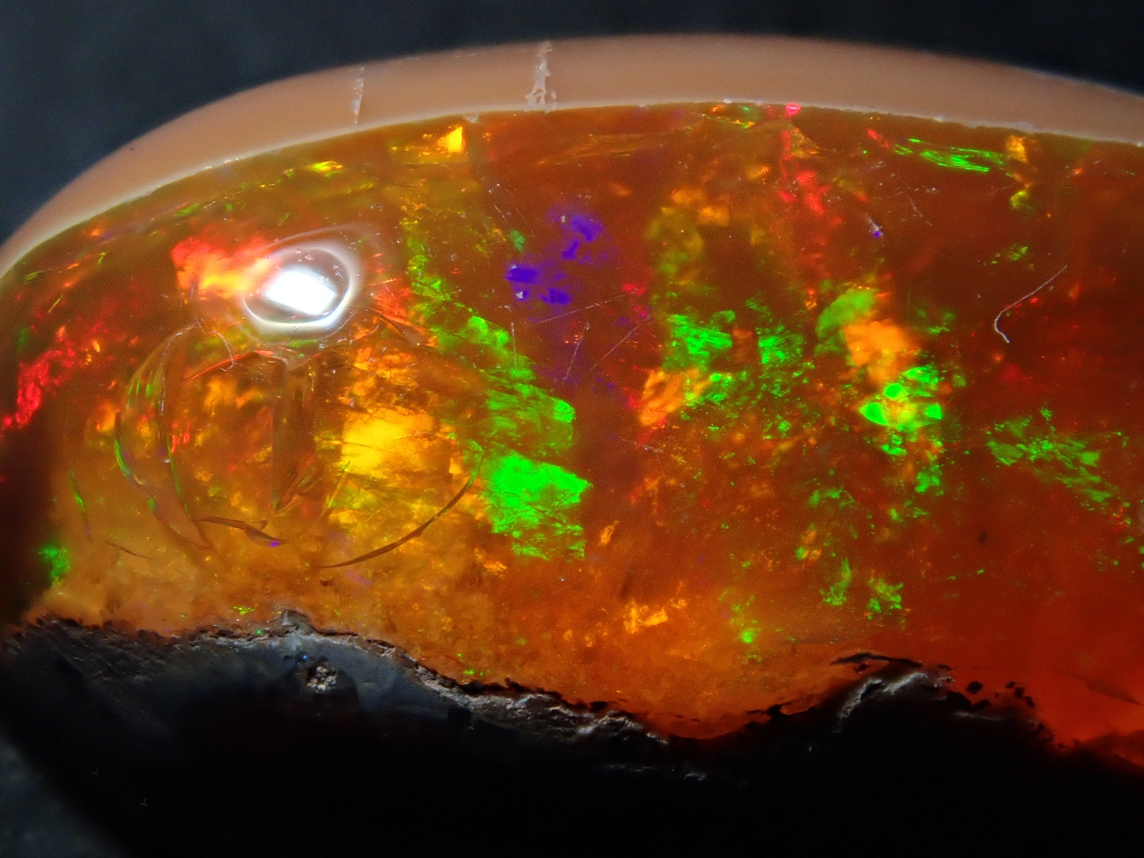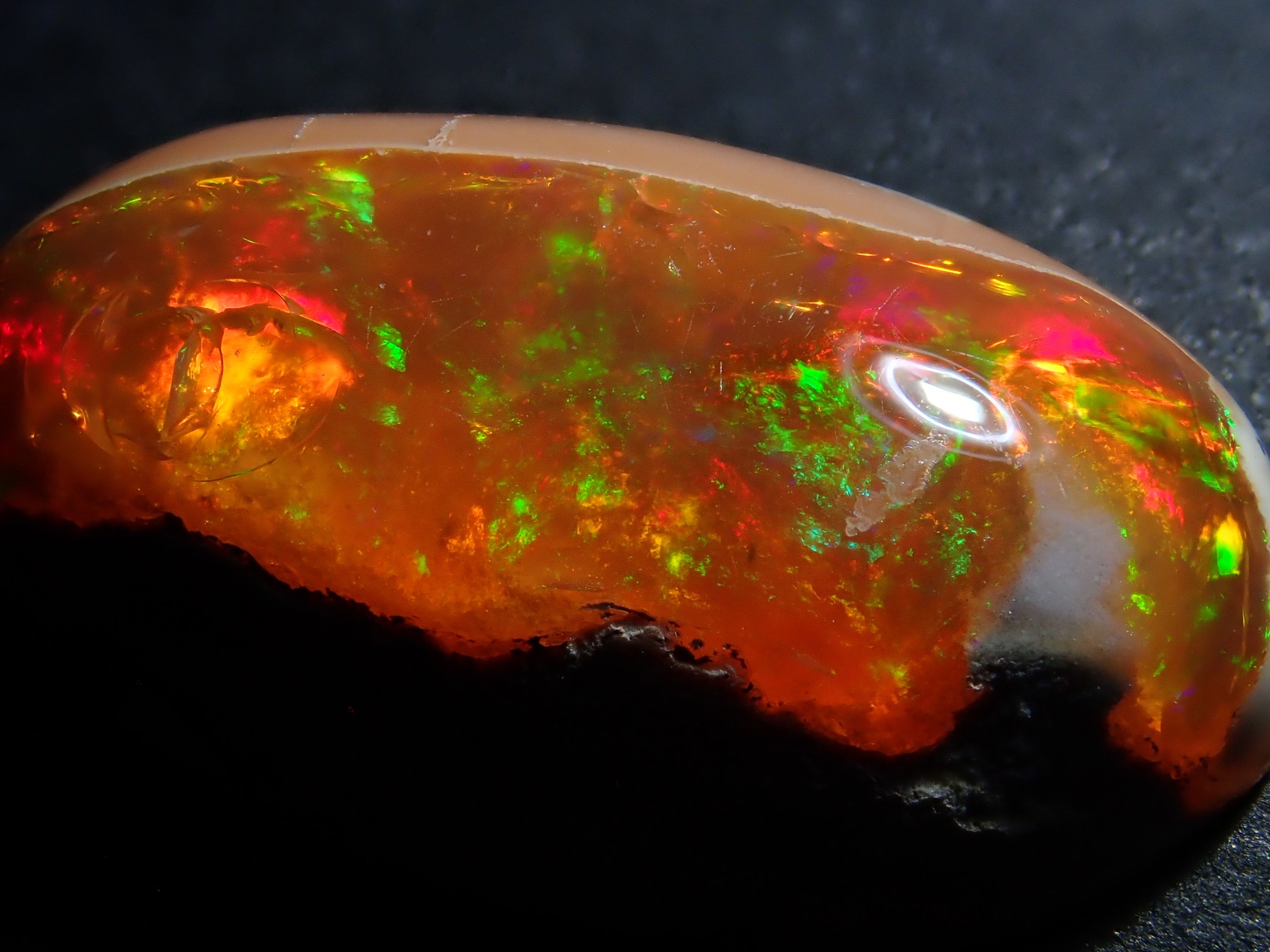 Cantera 蛋白石原本是一種有許多環的寶石。照片是使用筆燈拍攝的。