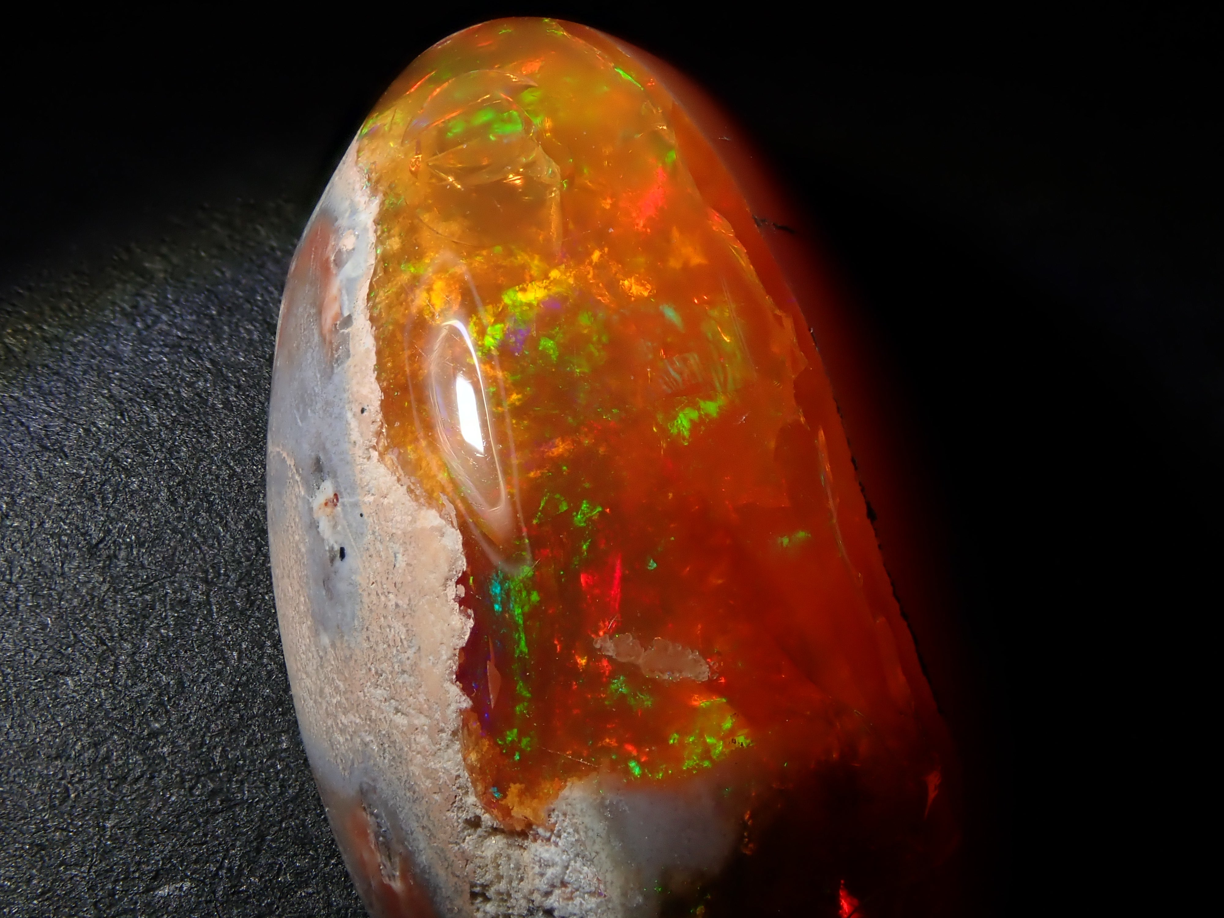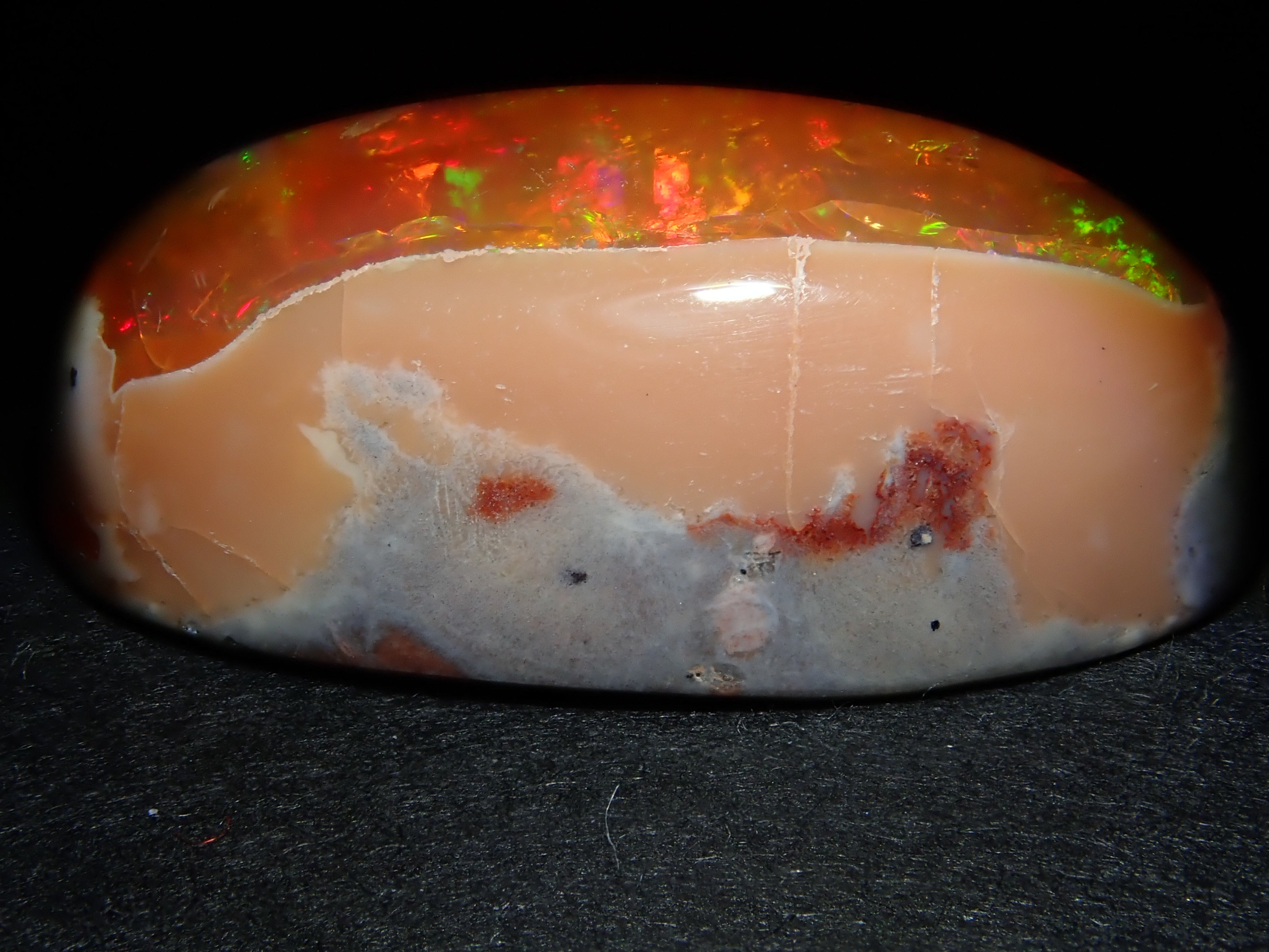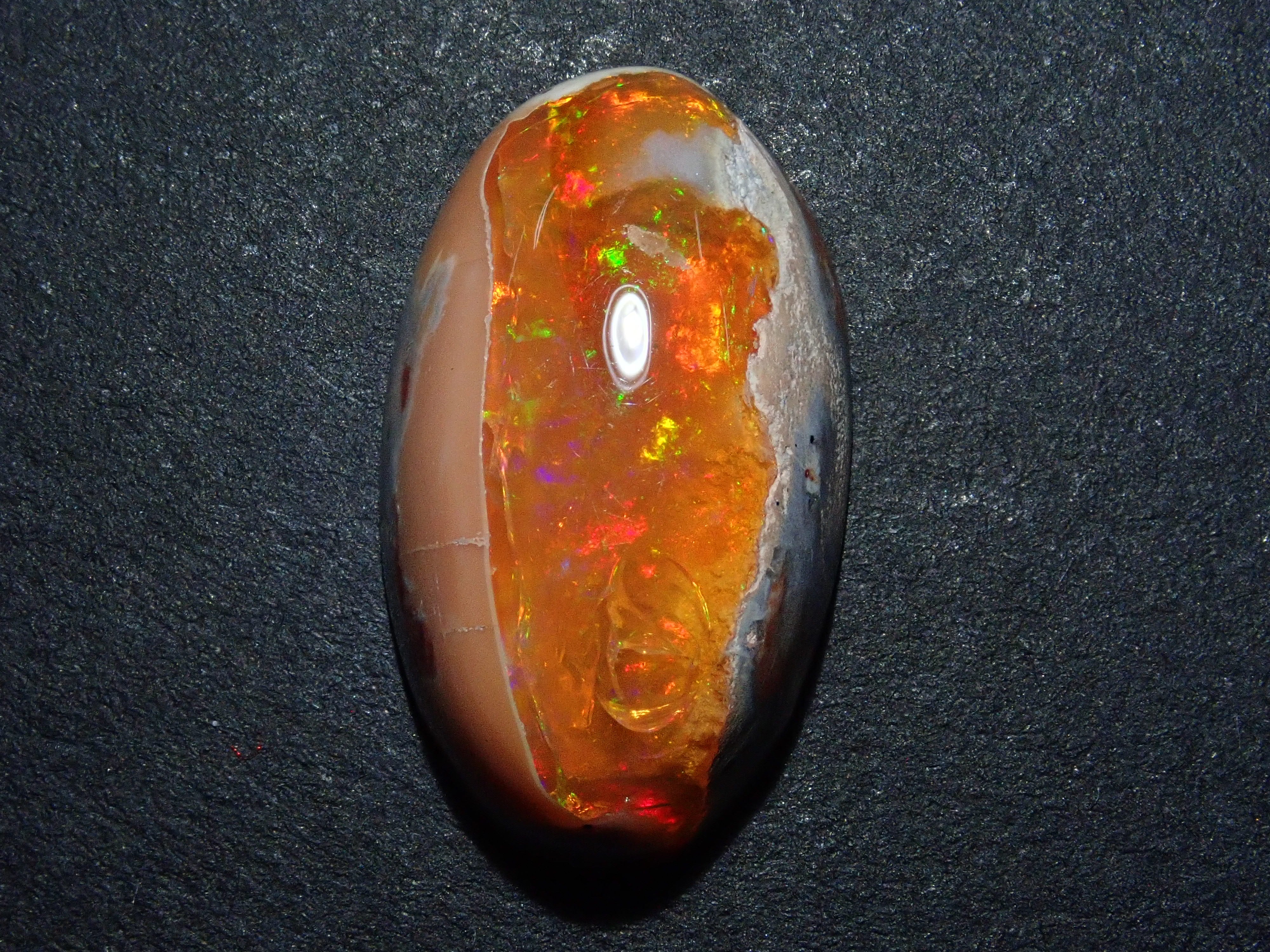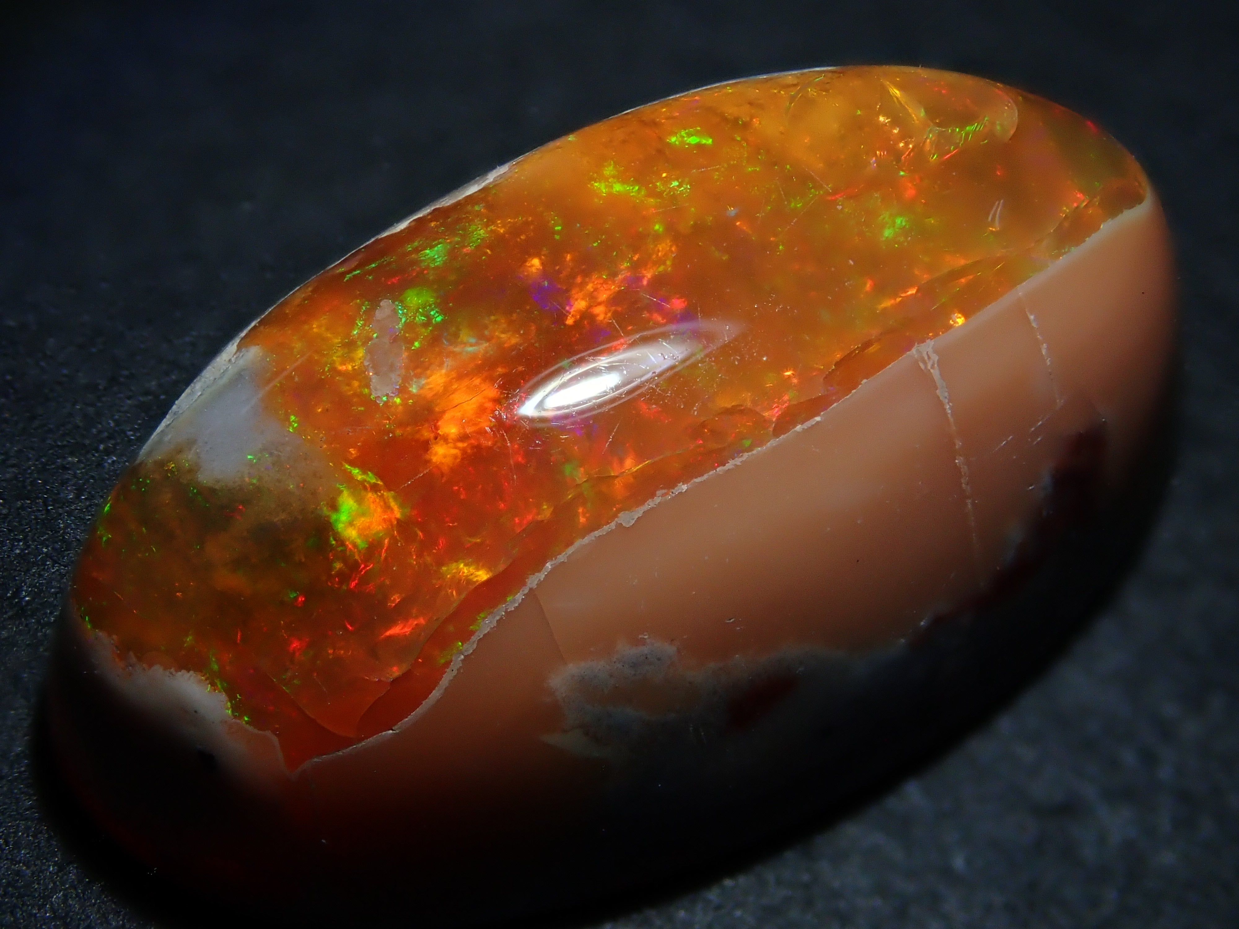 Cantera 蛋白石原本是一種有許多環的寶石。照片是使用筆燈拍攝的。