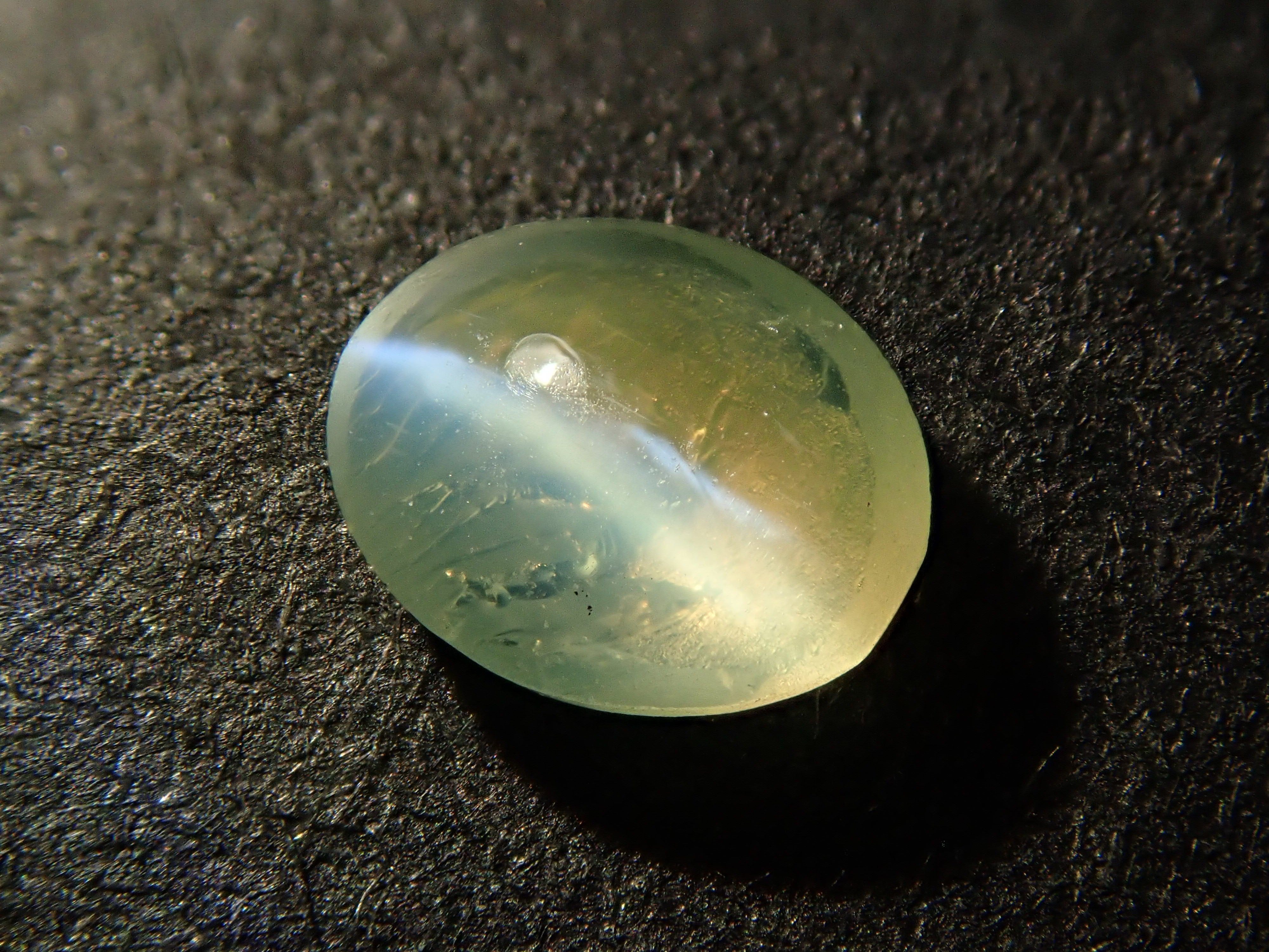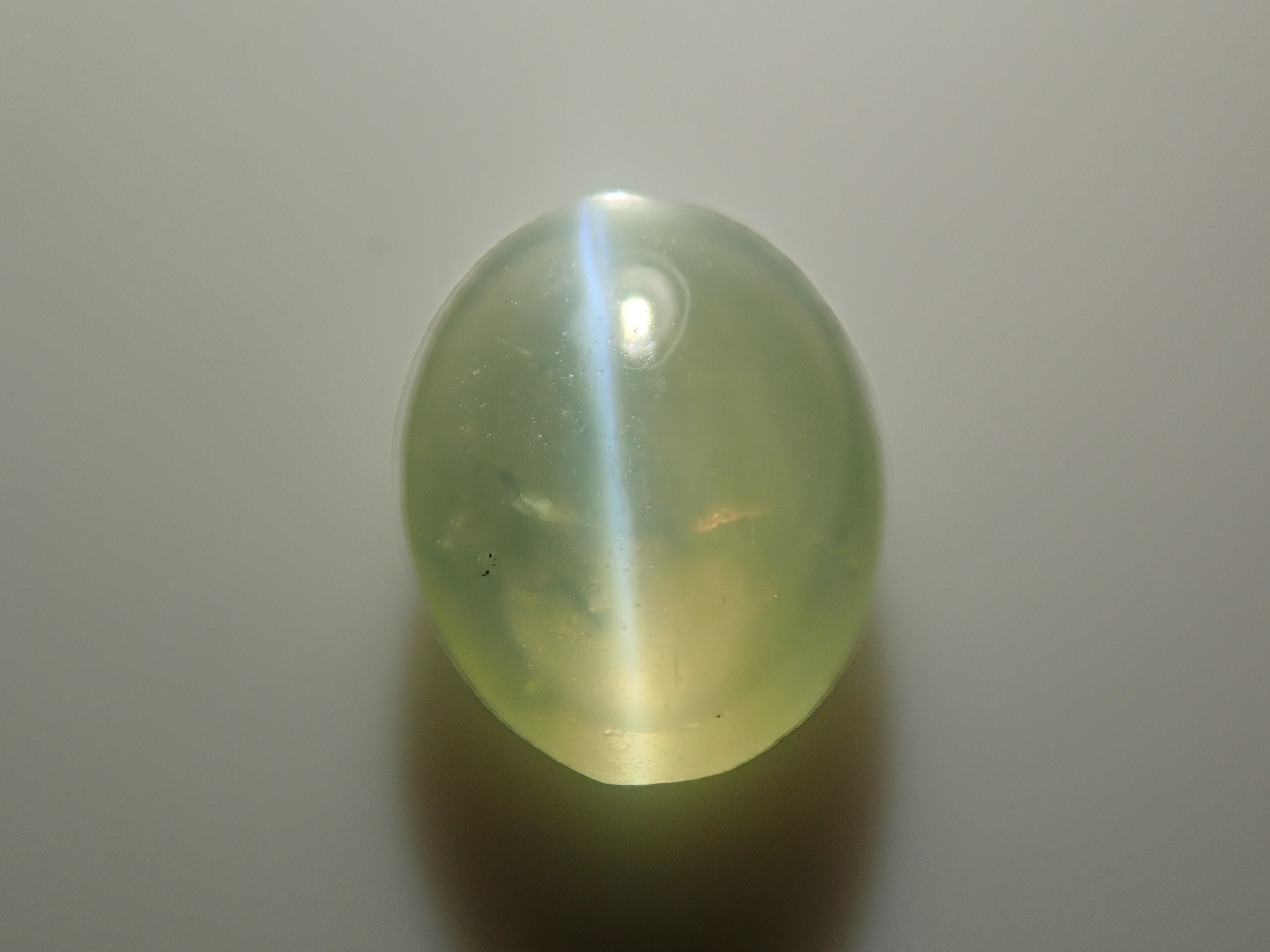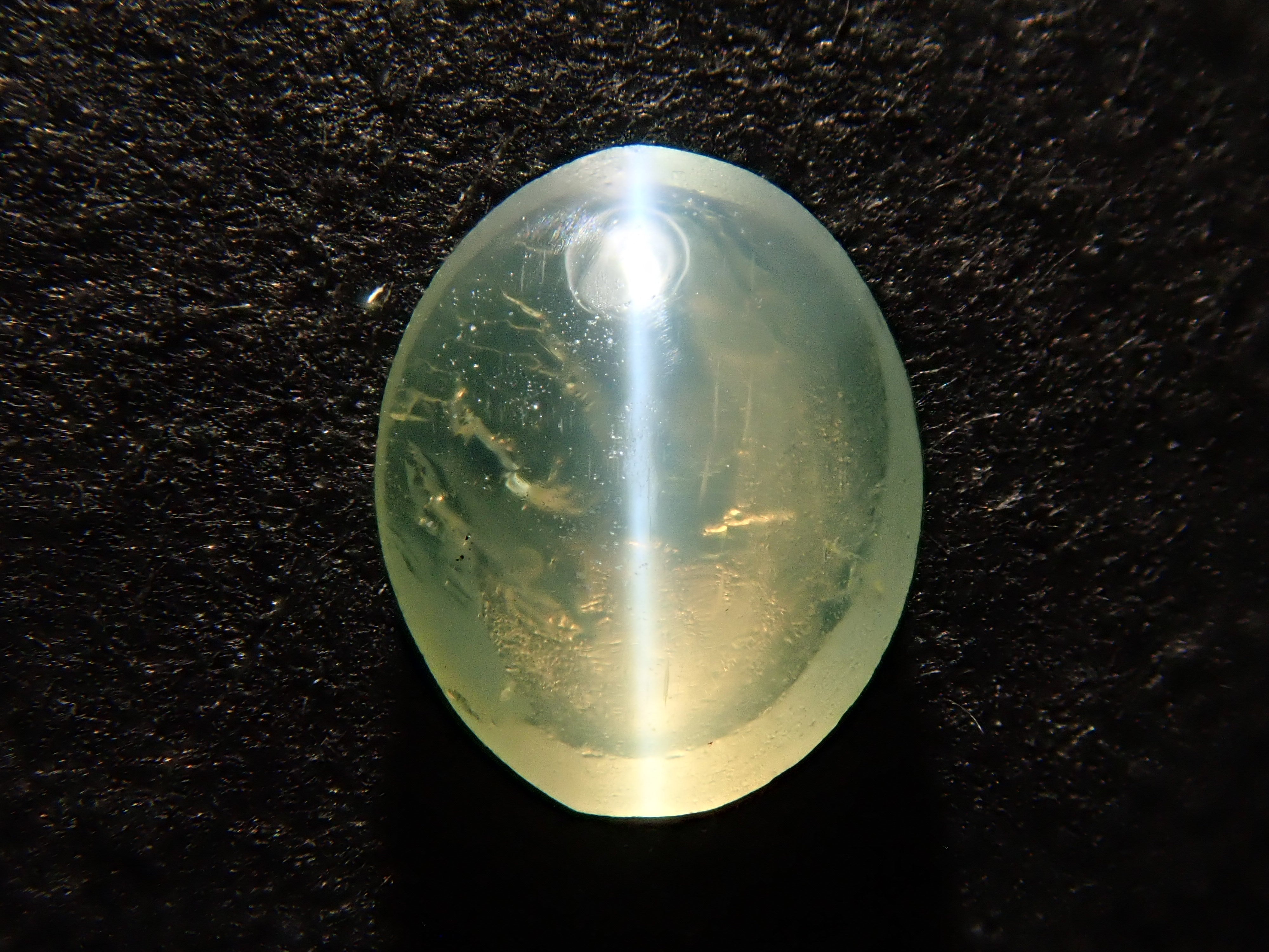 金綠寶石是一種有多種色調的寶石,從淺黃色到綠色再到深棕色。它是一種堅硬耐用的寶石。這是可以看到貓眼效果的類型,使用筆燈拍攝。石頭的背面基本上是未拋光的。來自斯里蘭卡的金綠玉貓眼,透明度高。