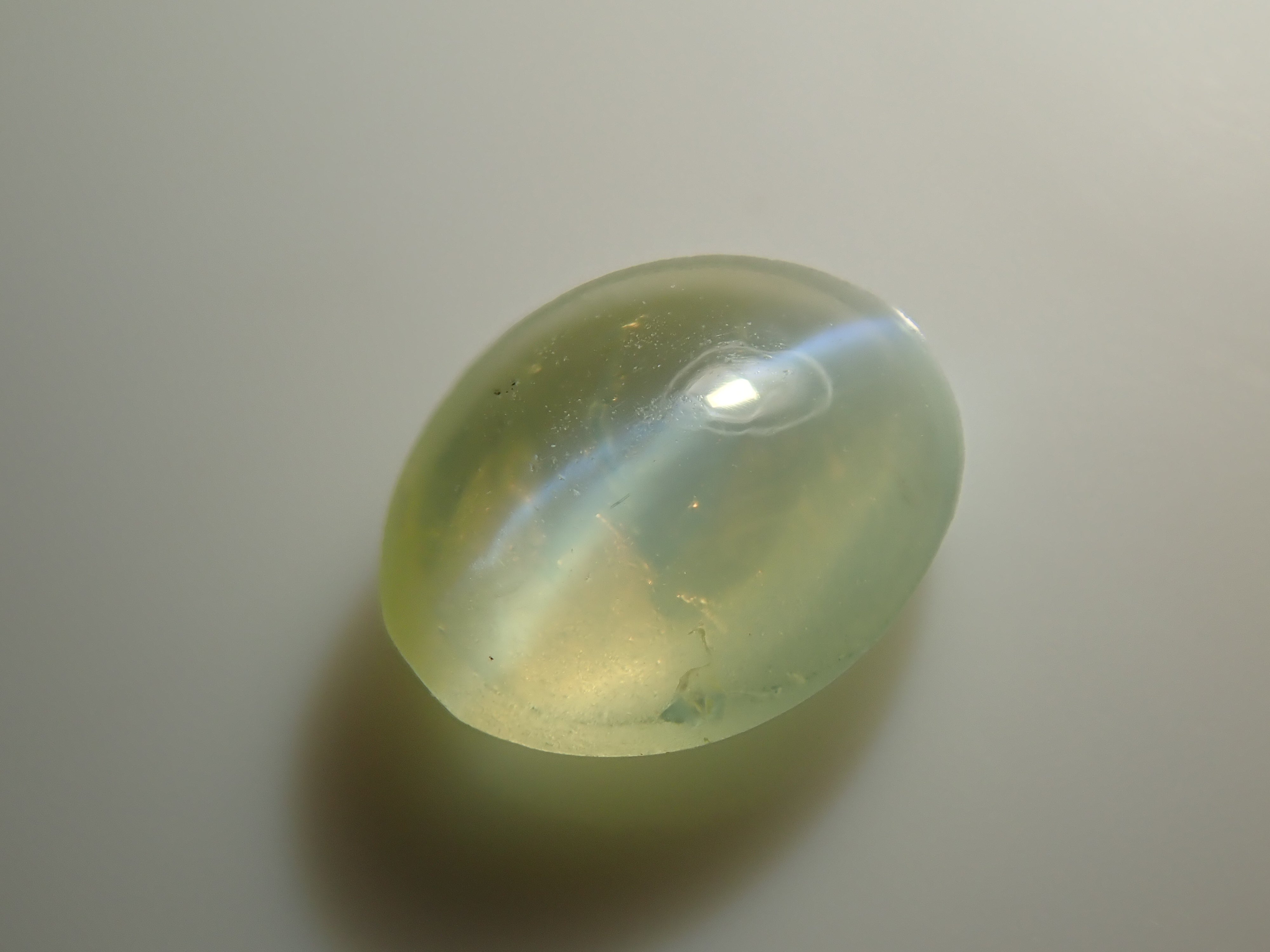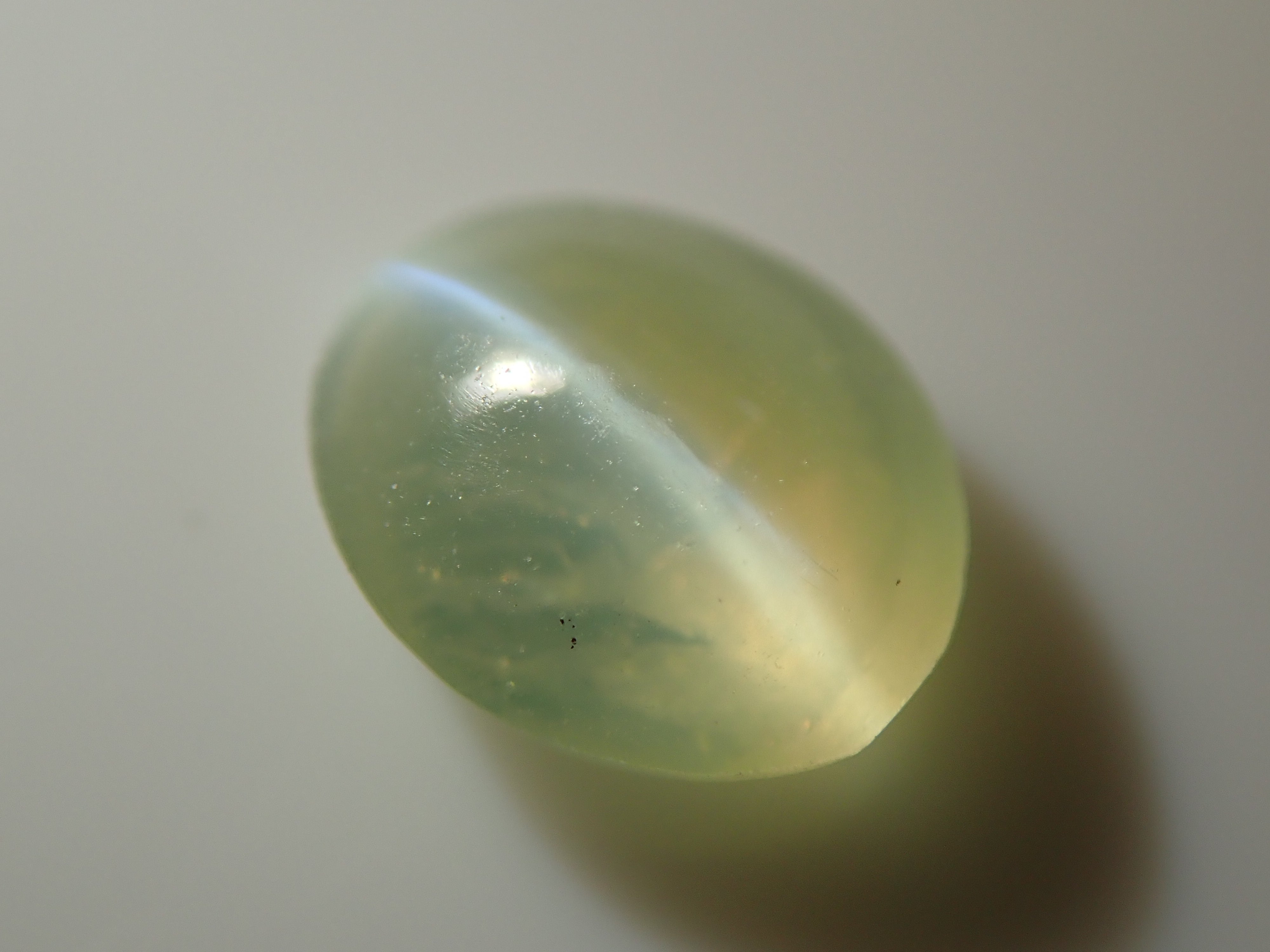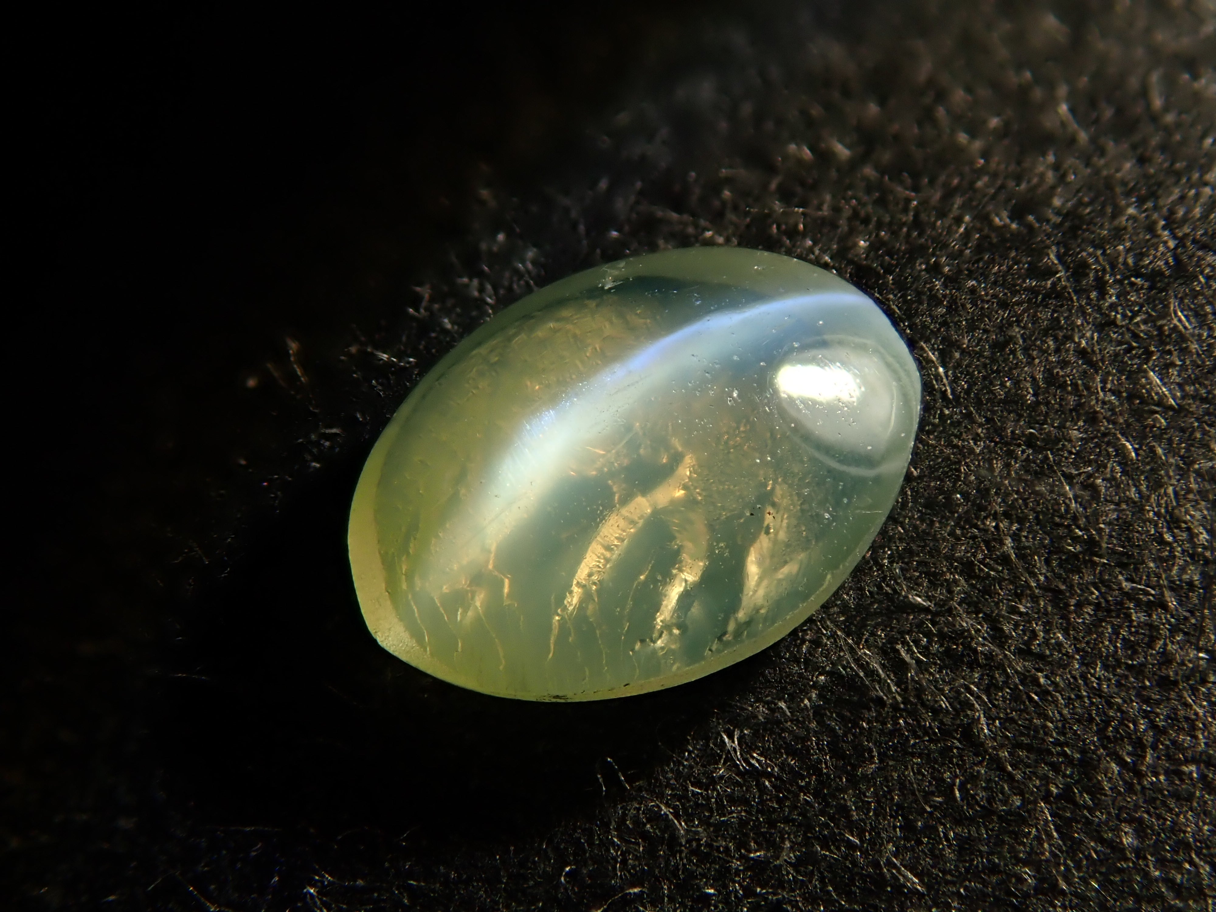 金綠寶石是一種有多種色調的寶石,從淺黃色到綠色再到深棕色。它是一種堅硬耐用的寶石。這是可以看到貓眼效果的類型,使用筆燈拍攝。石頭的背面基本上是未拋光的。來自斯里蘭卡的金綠玉貓眼,透明度高。
