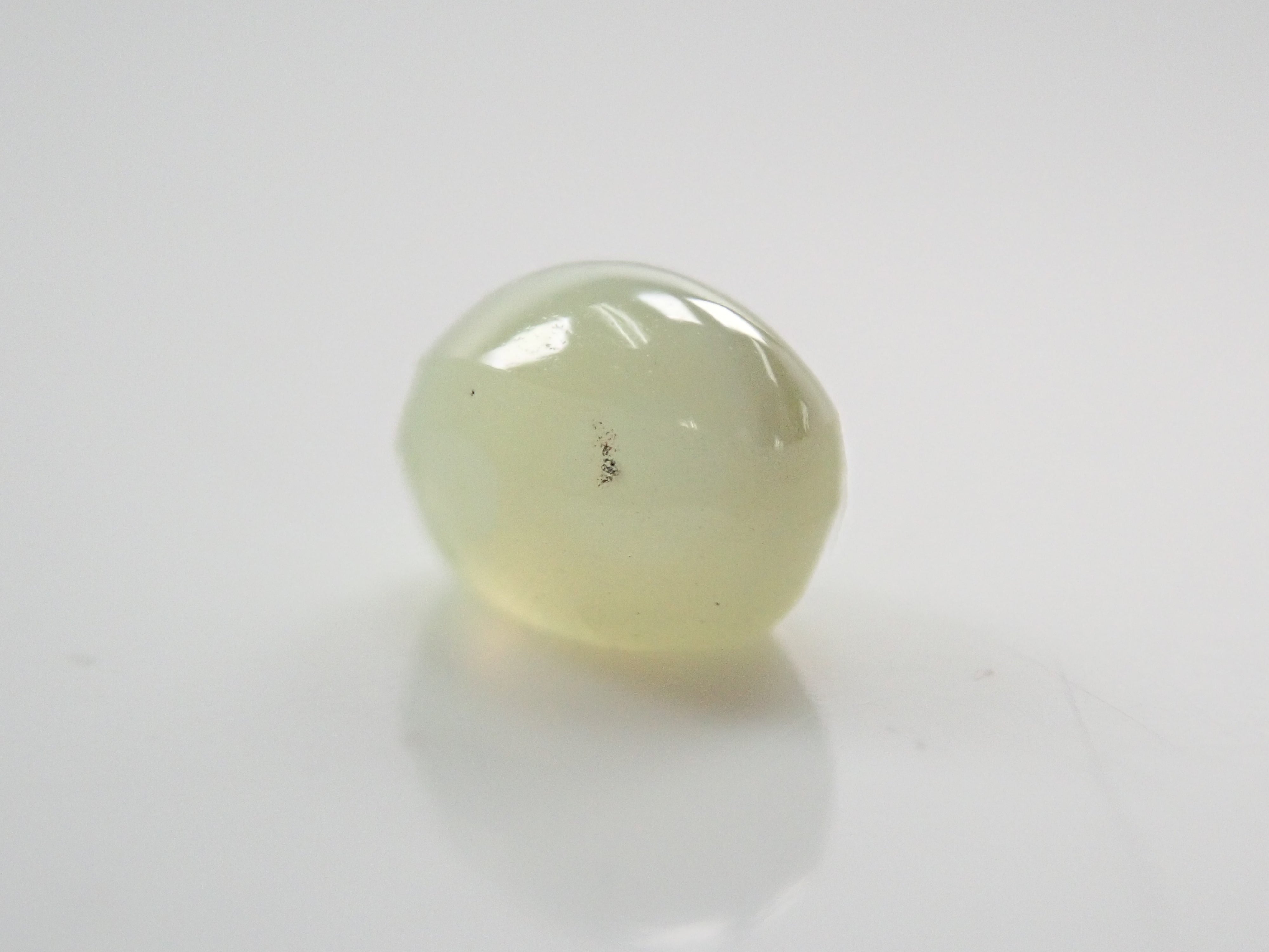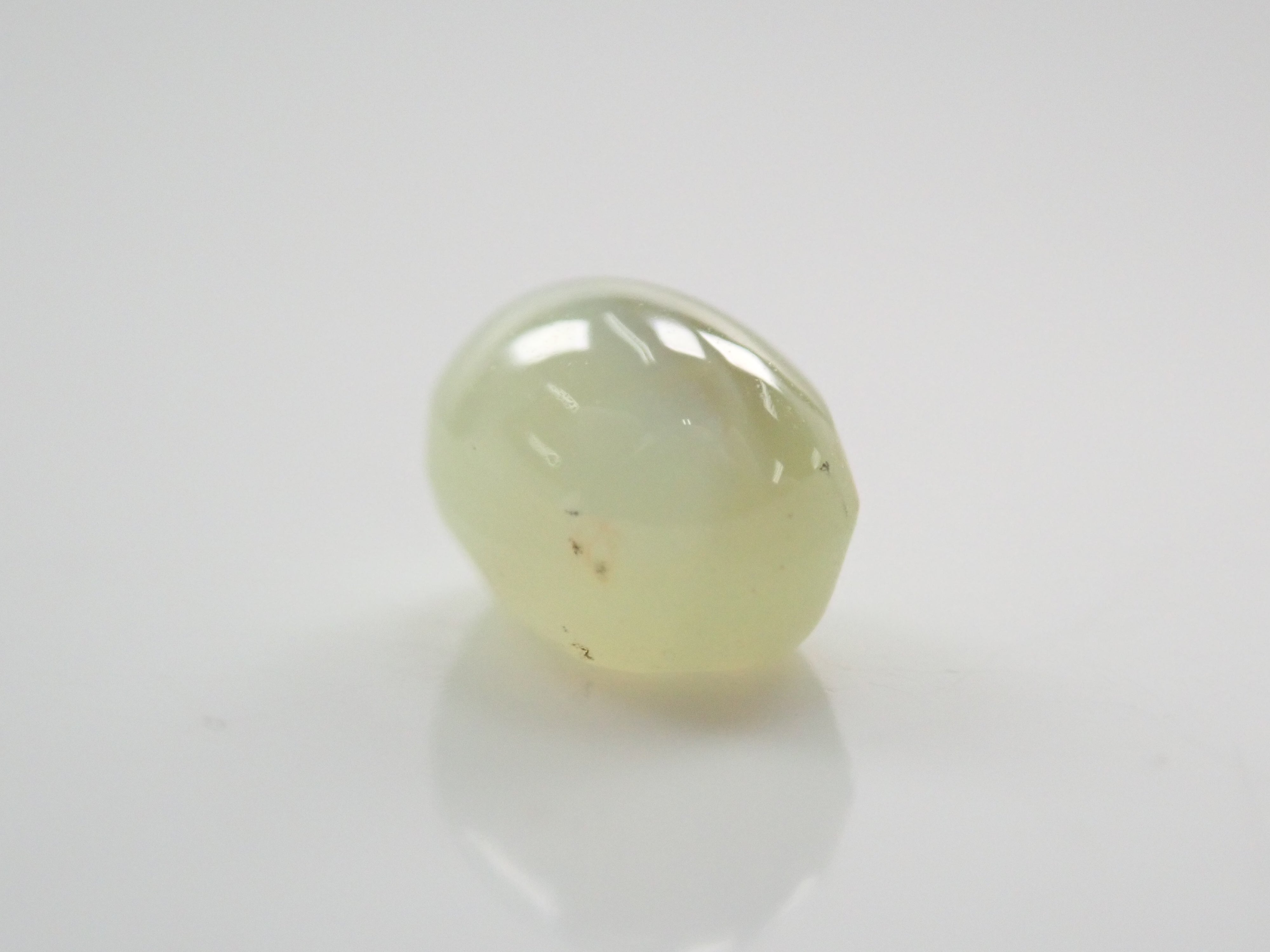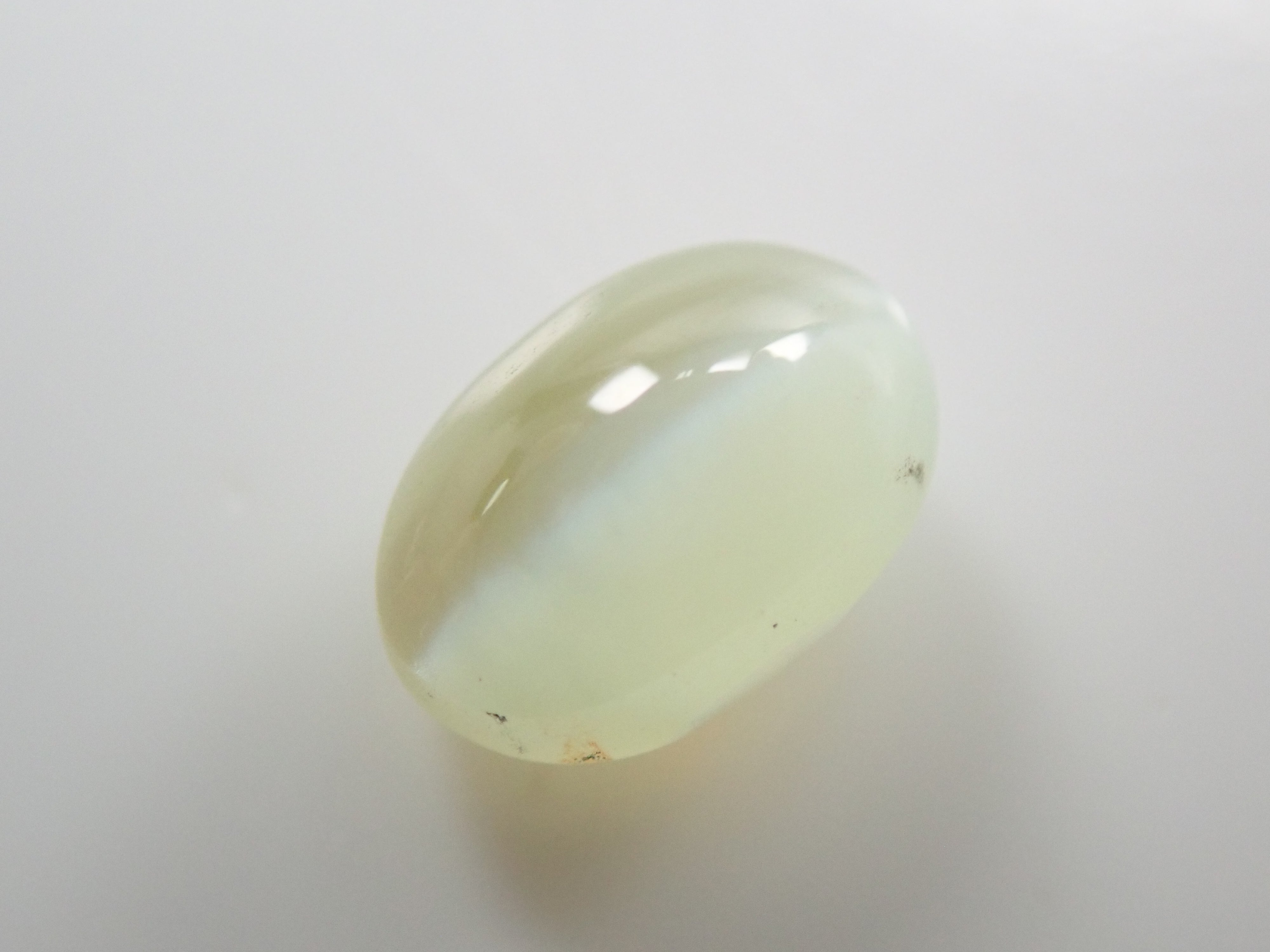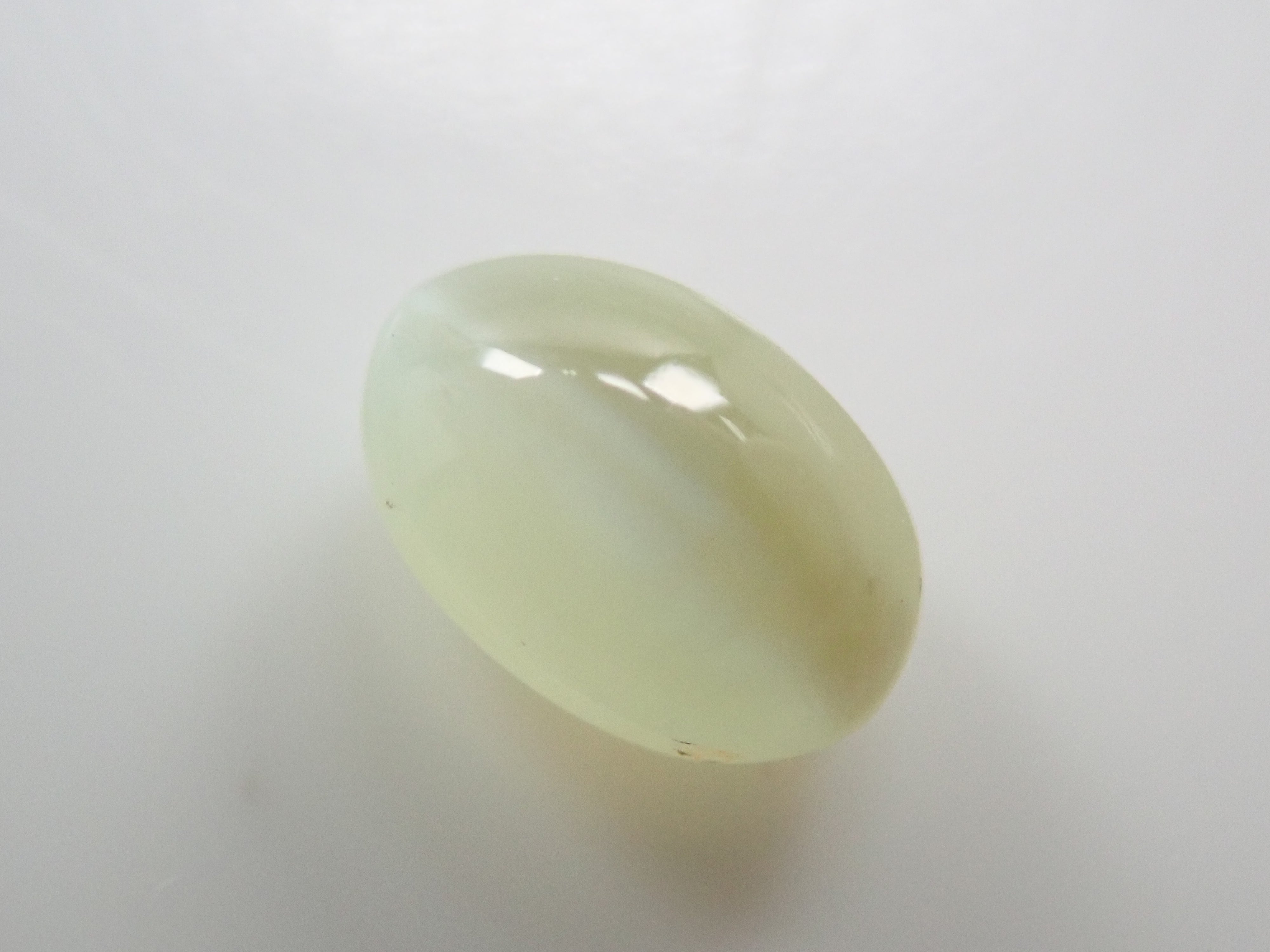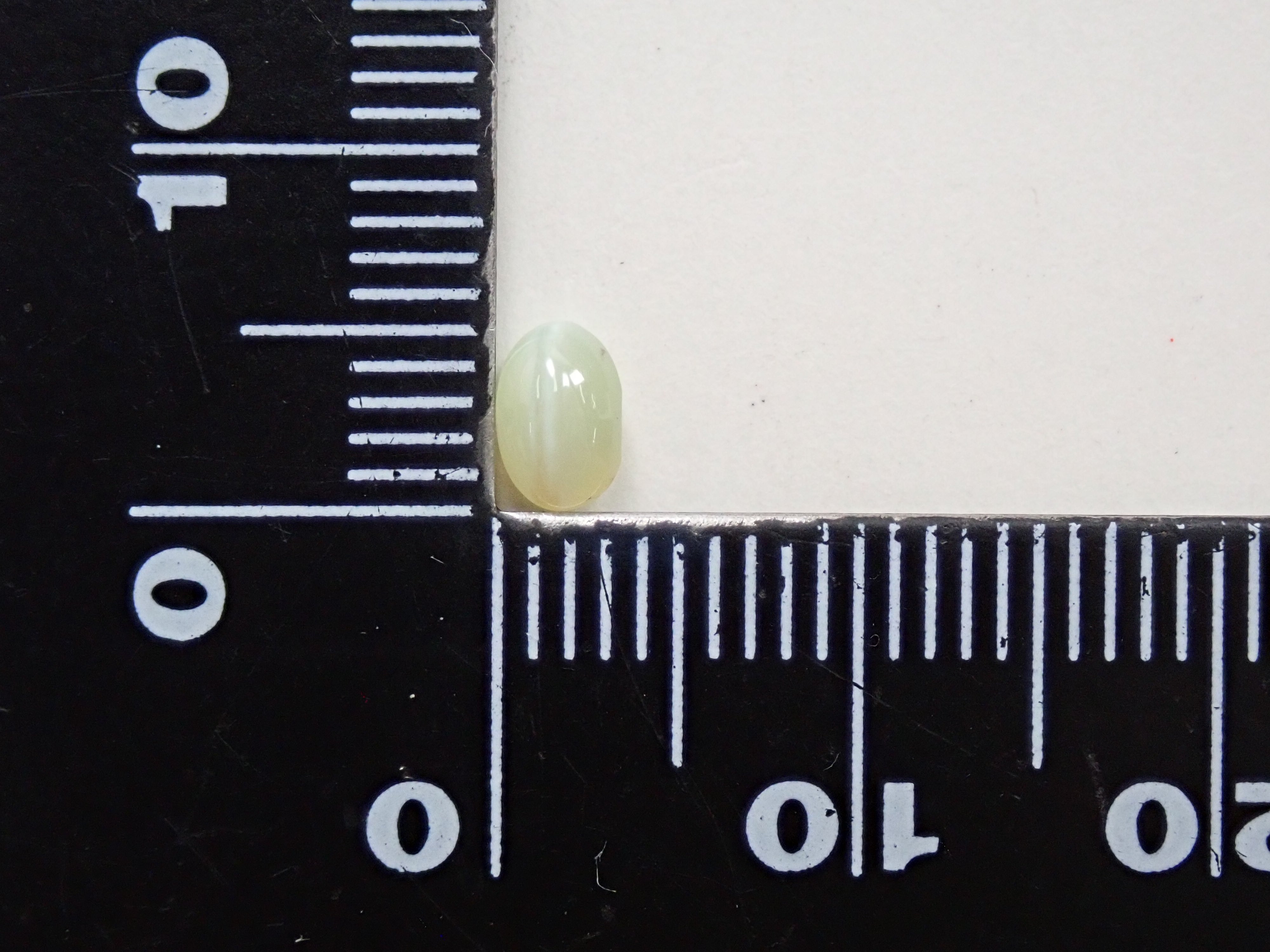 金綠寶石是一種有多種色調的寶石,從淺黃色到綠色再到深棕色。它是一種堅硬耐用的寶石。這是可以看到貓眼效果的類型,使用筆燈拍攝。石頭的背面基本上是未拋光的。