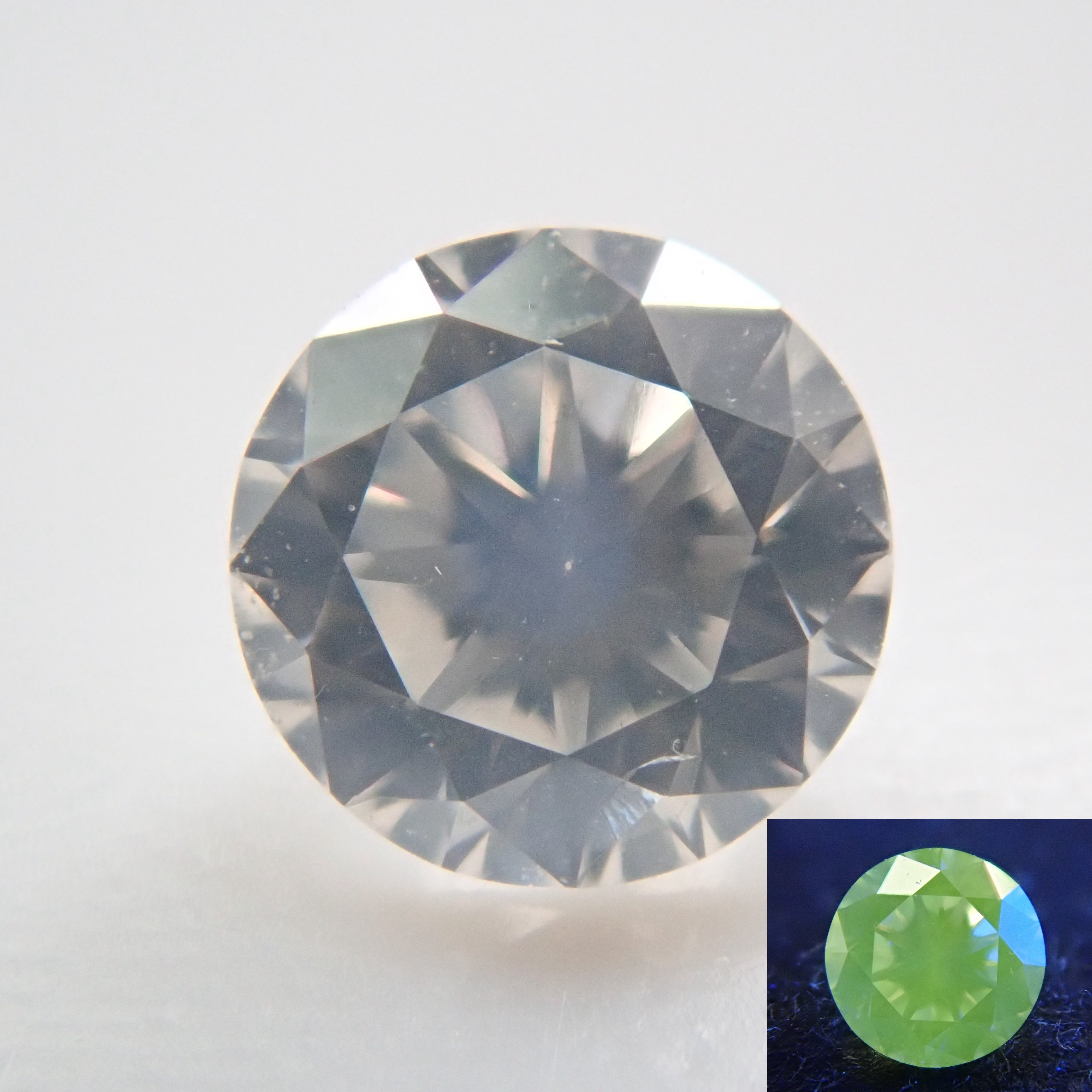 在眾多寶石中,鑽石是最特別的寶石之一。歷史上出現的許多著名的鑽石首飾都為我們帶來了各種各樣的軼事和傳說。這是一顆絲質鑽石,在鑽石中是罕見的。 高度透明的絲狀鑽石。圓形切割 2.7 毫米。它在黑光下發出綠色螢光。