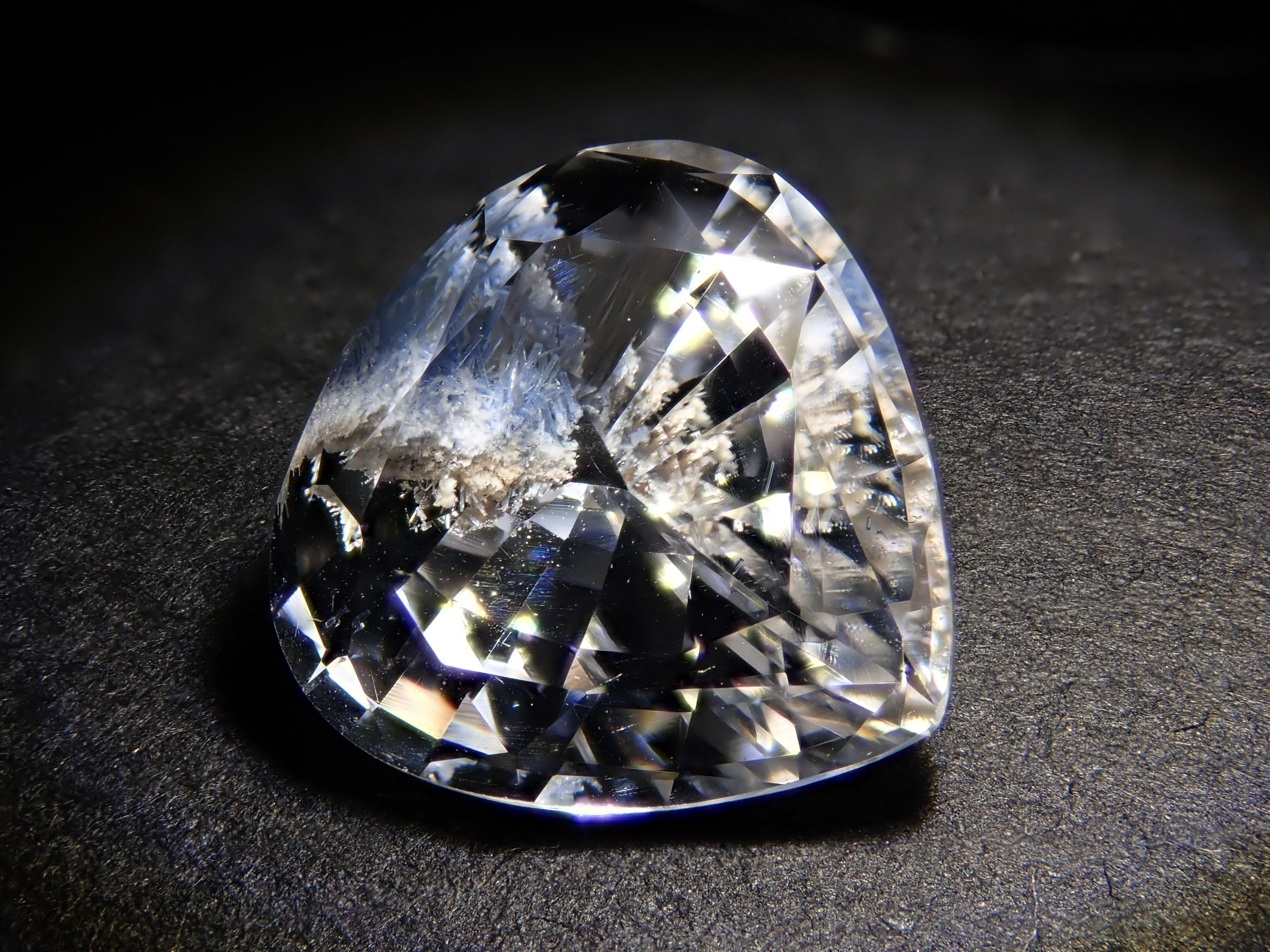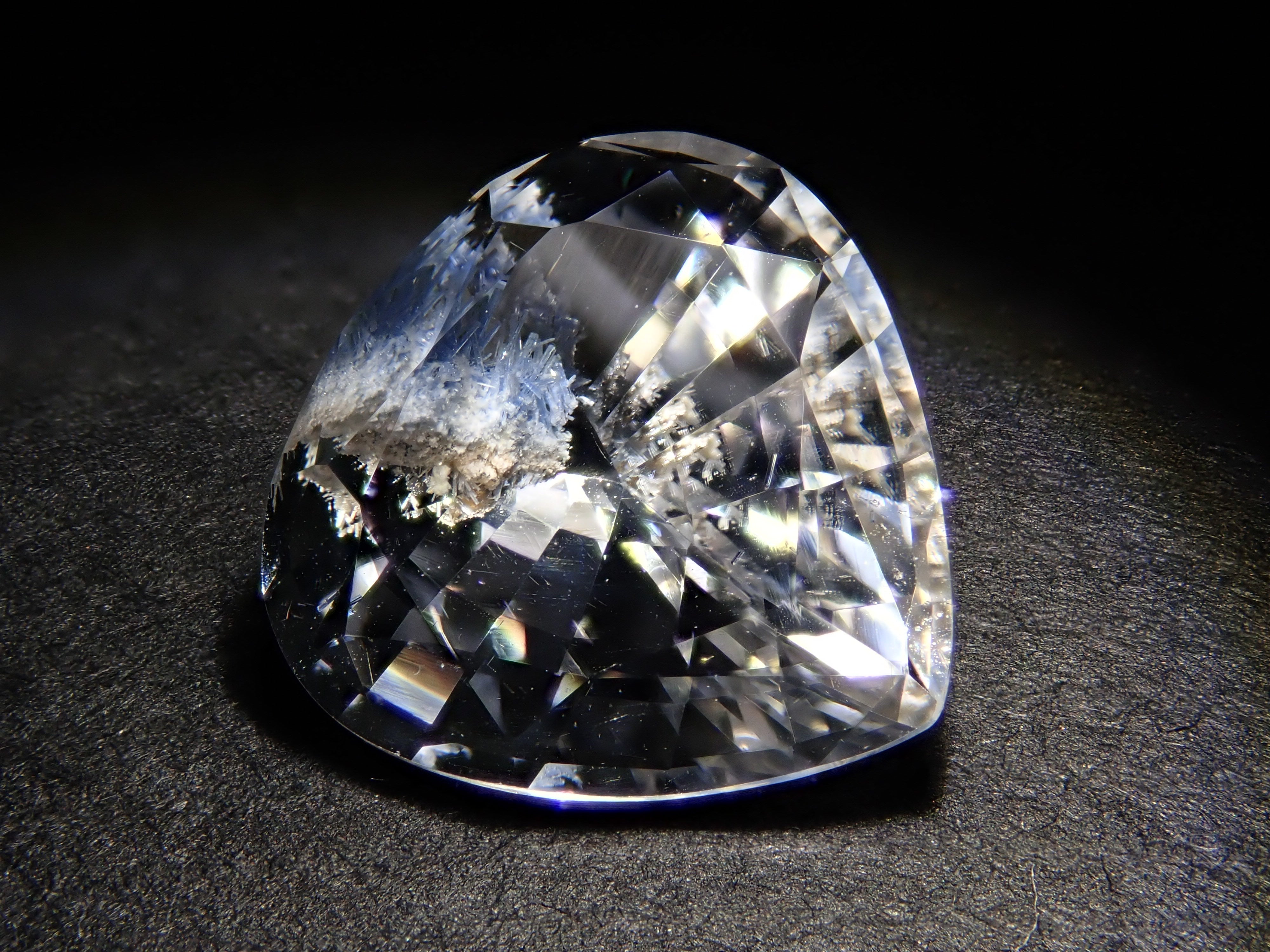 石英在日文中稱為水晶。它是一種在日本非常熟悉的石頭,但它也是一種深寶石,有紫水晶和黃水晶等多種類型。這是石英中的杜莫鐵石,帶有美麗的藍色內含物。沒有任何寶石具有相同的圖案,這塊石頭肯定會吸引收藏家。
