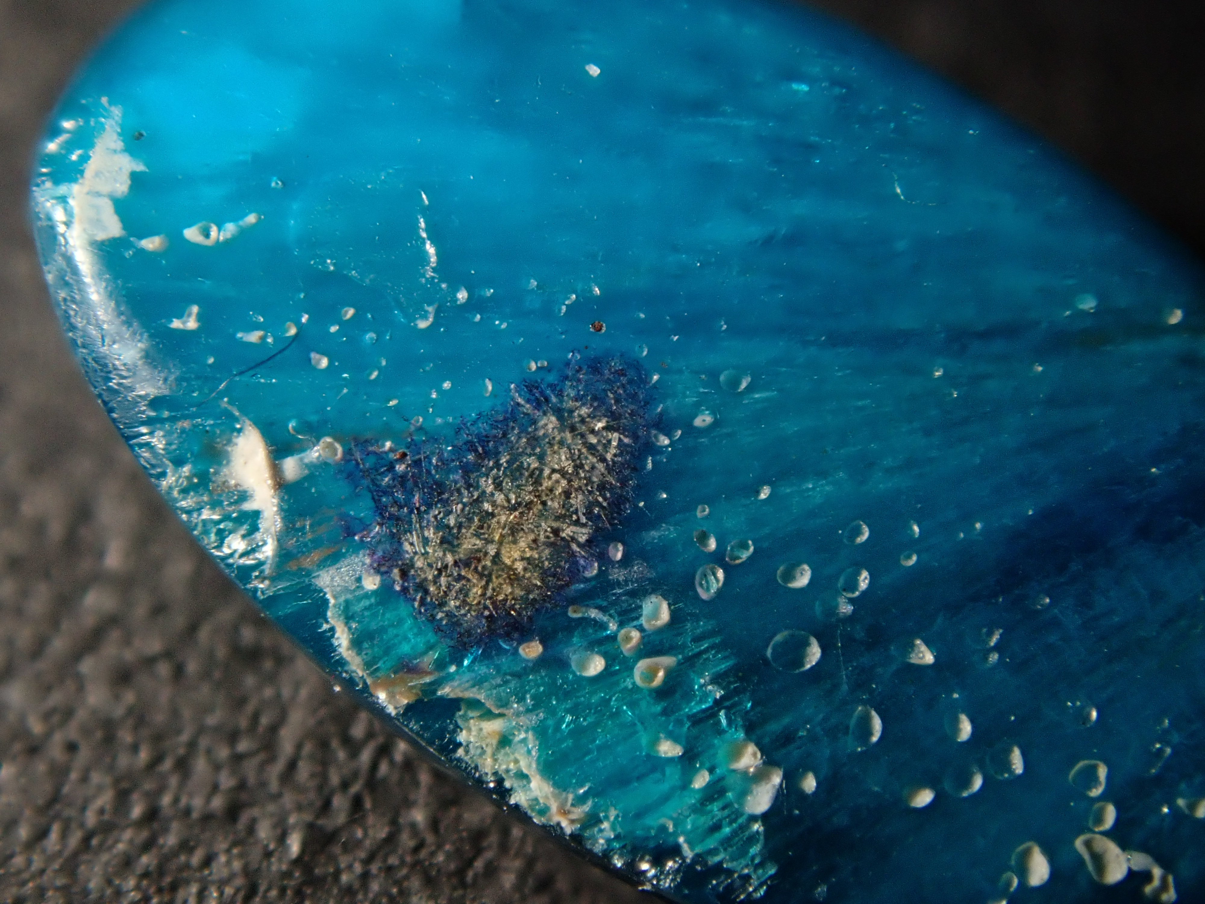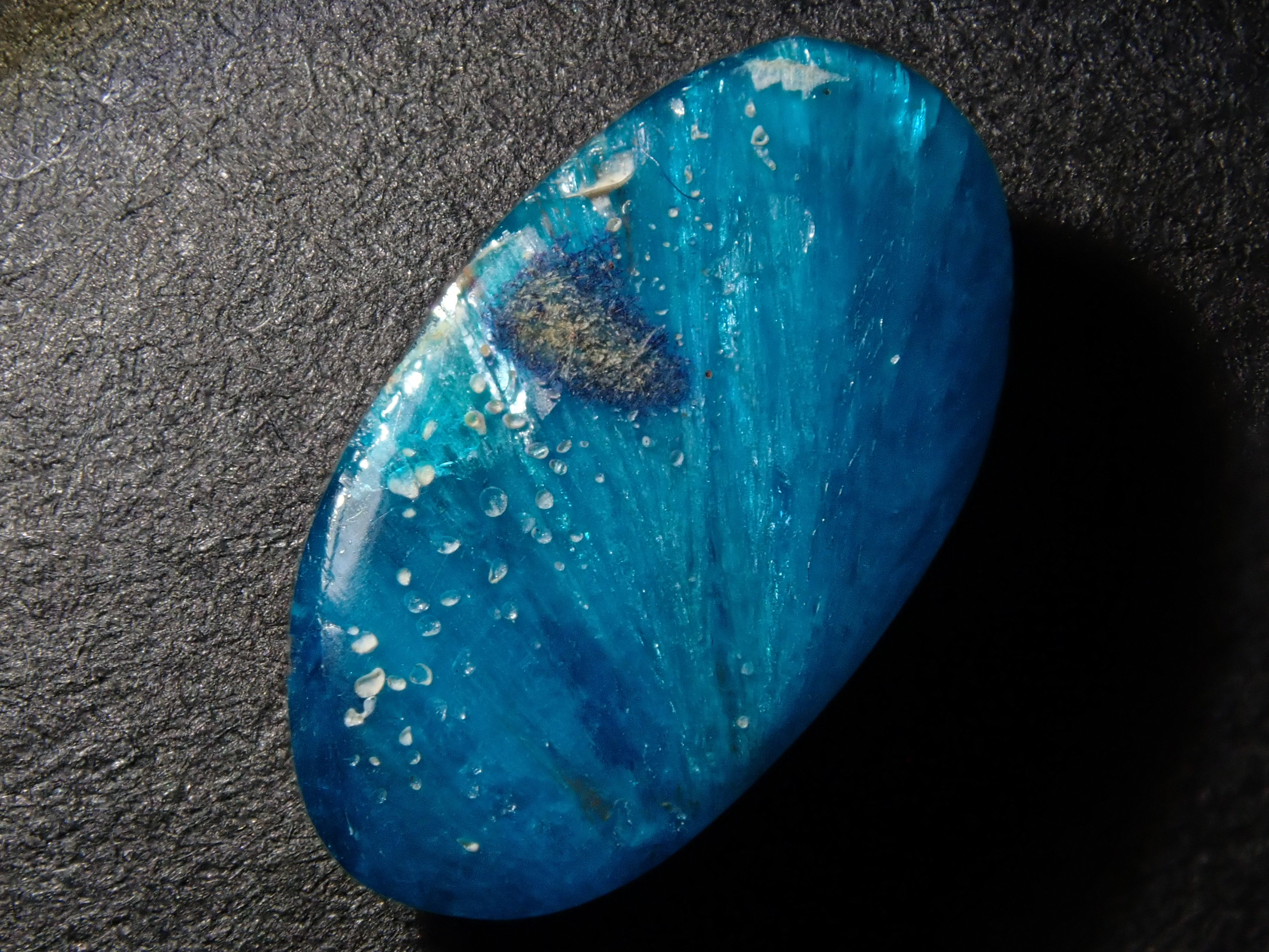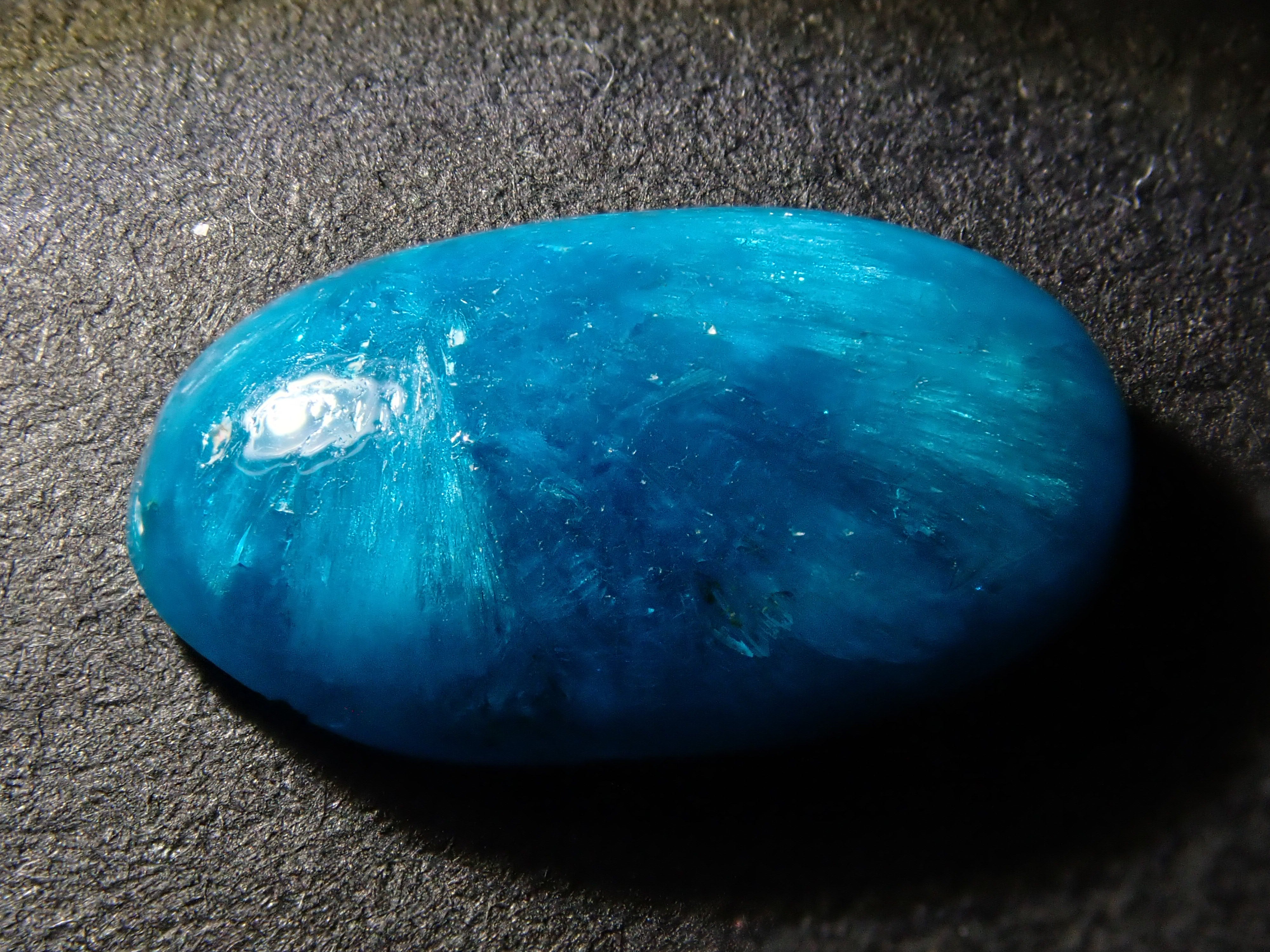 方矽石是一種亮藍色的柱狀晶體,深受礦物收藏家的喜愛。它於1960年代在美國被發現,但目前市面上大多數方矽石都產自印度。這是一塊從德國慕尼黑展會直接運來的方矽石碎片。