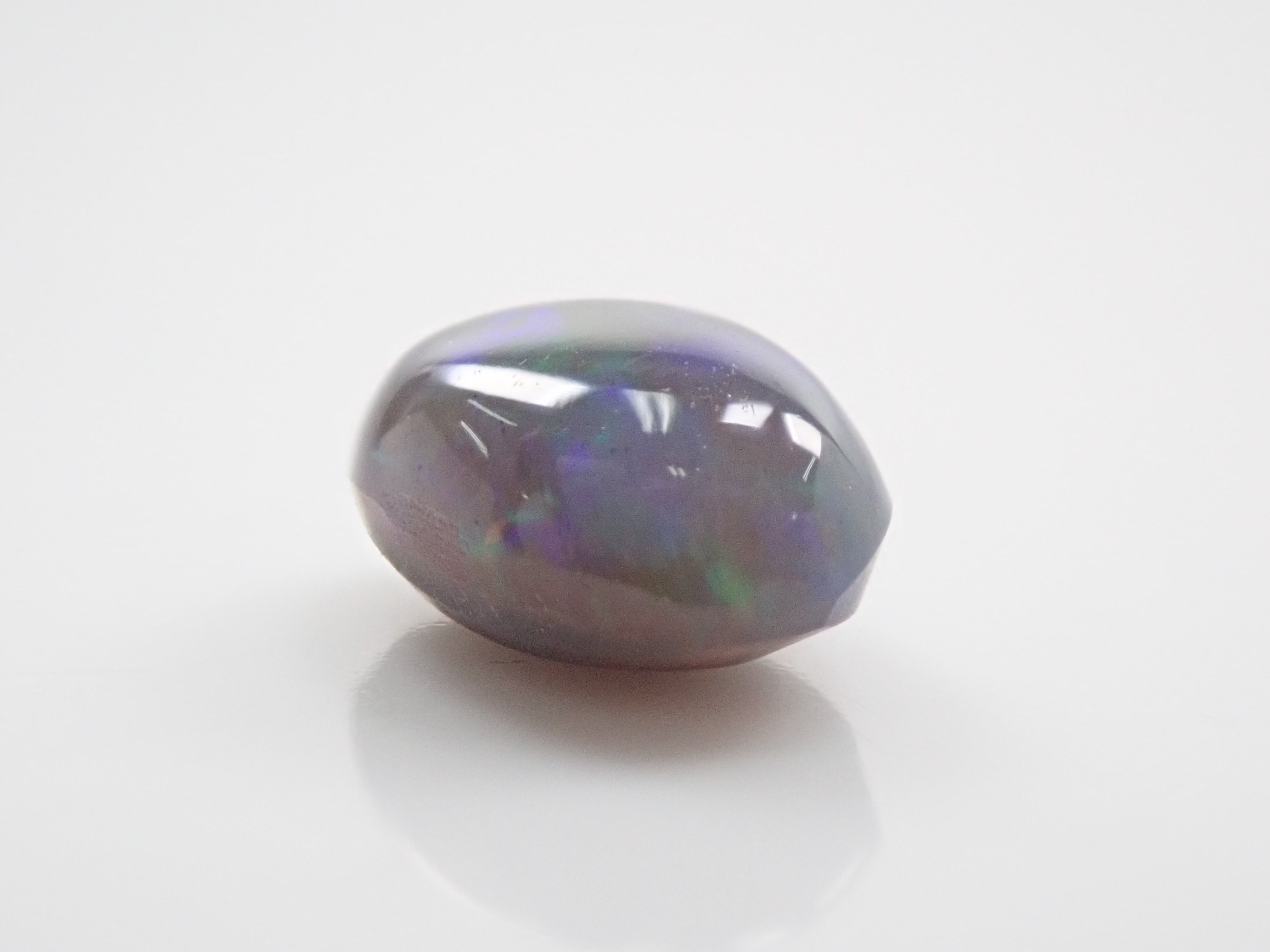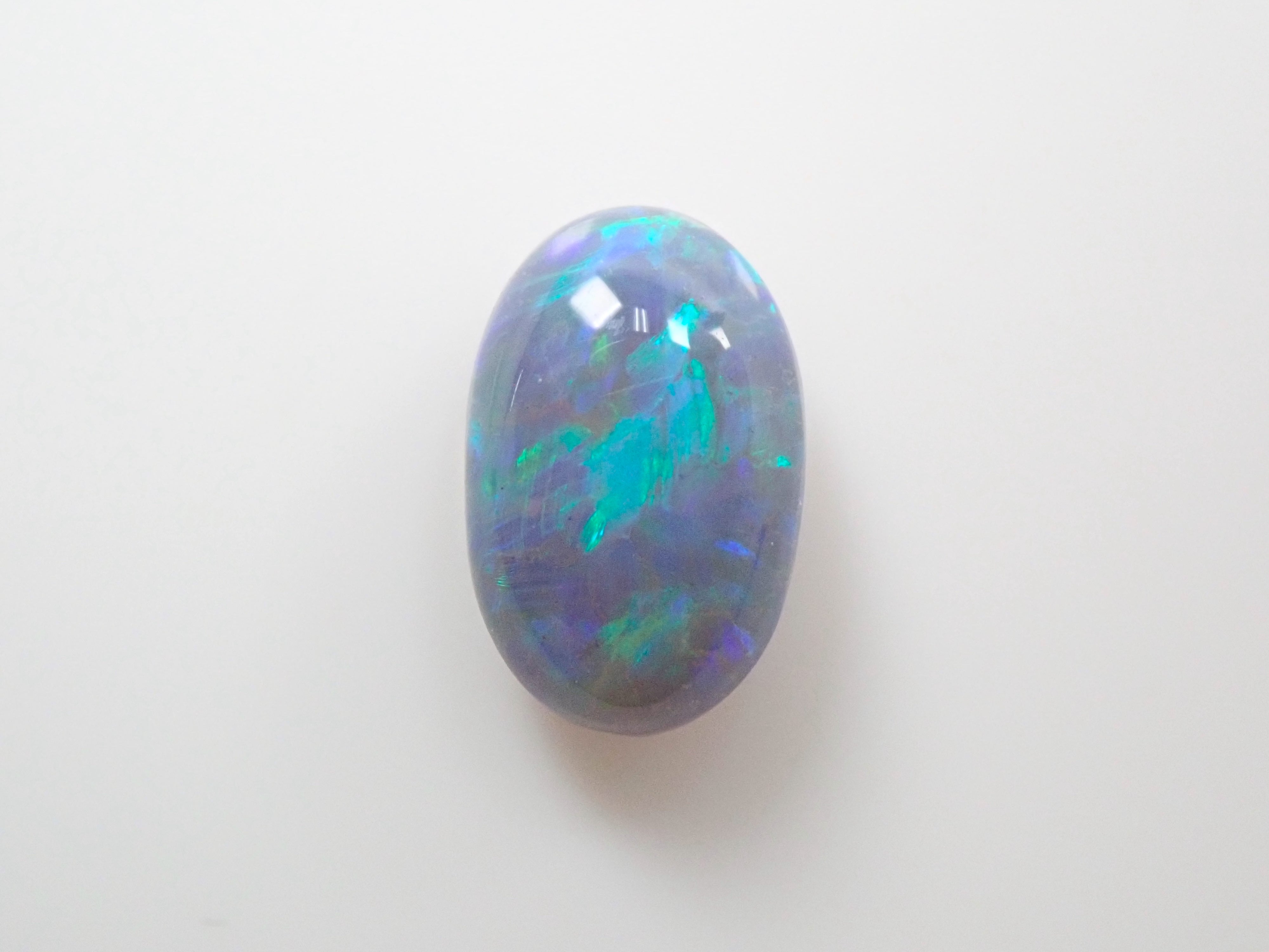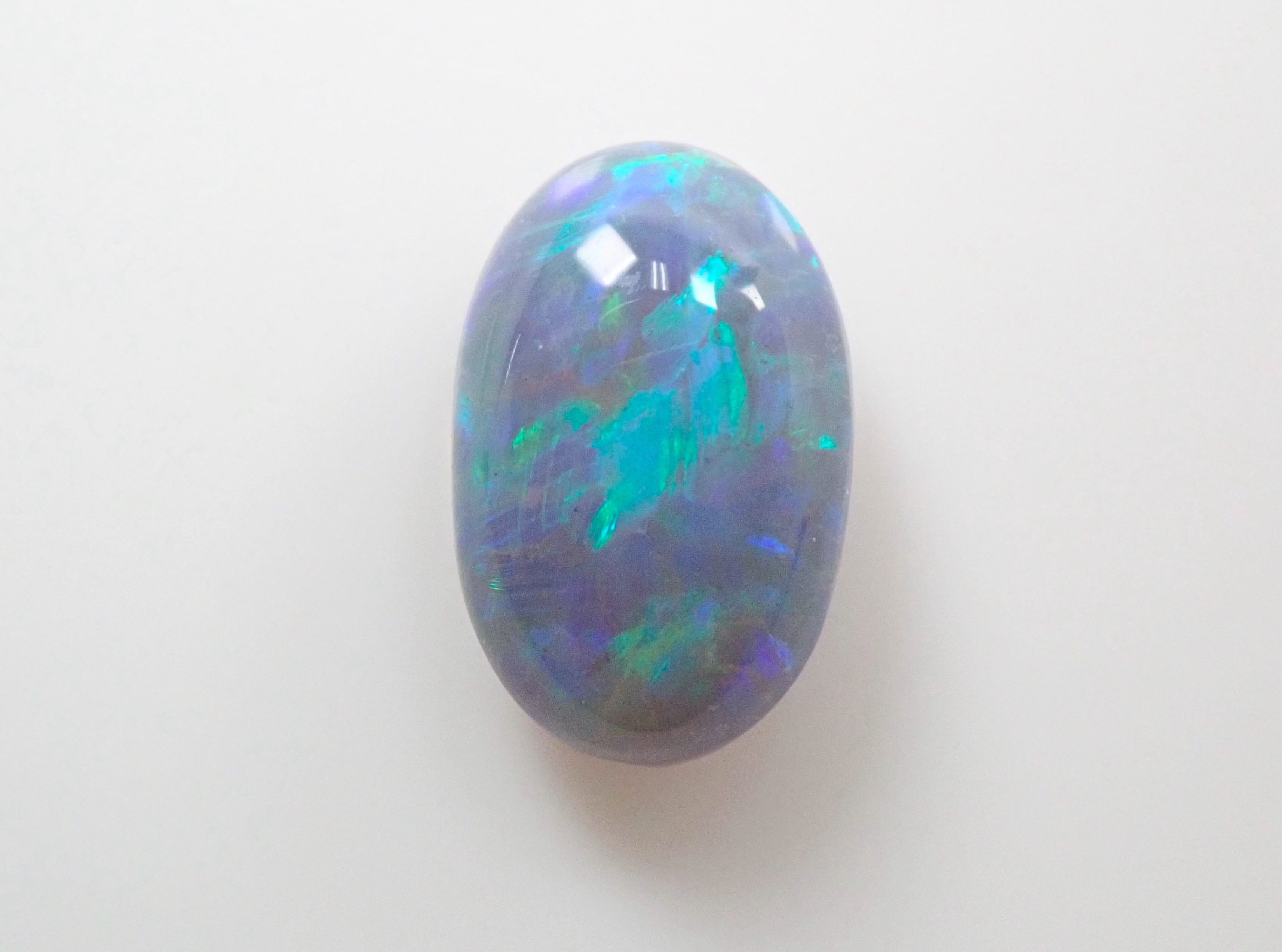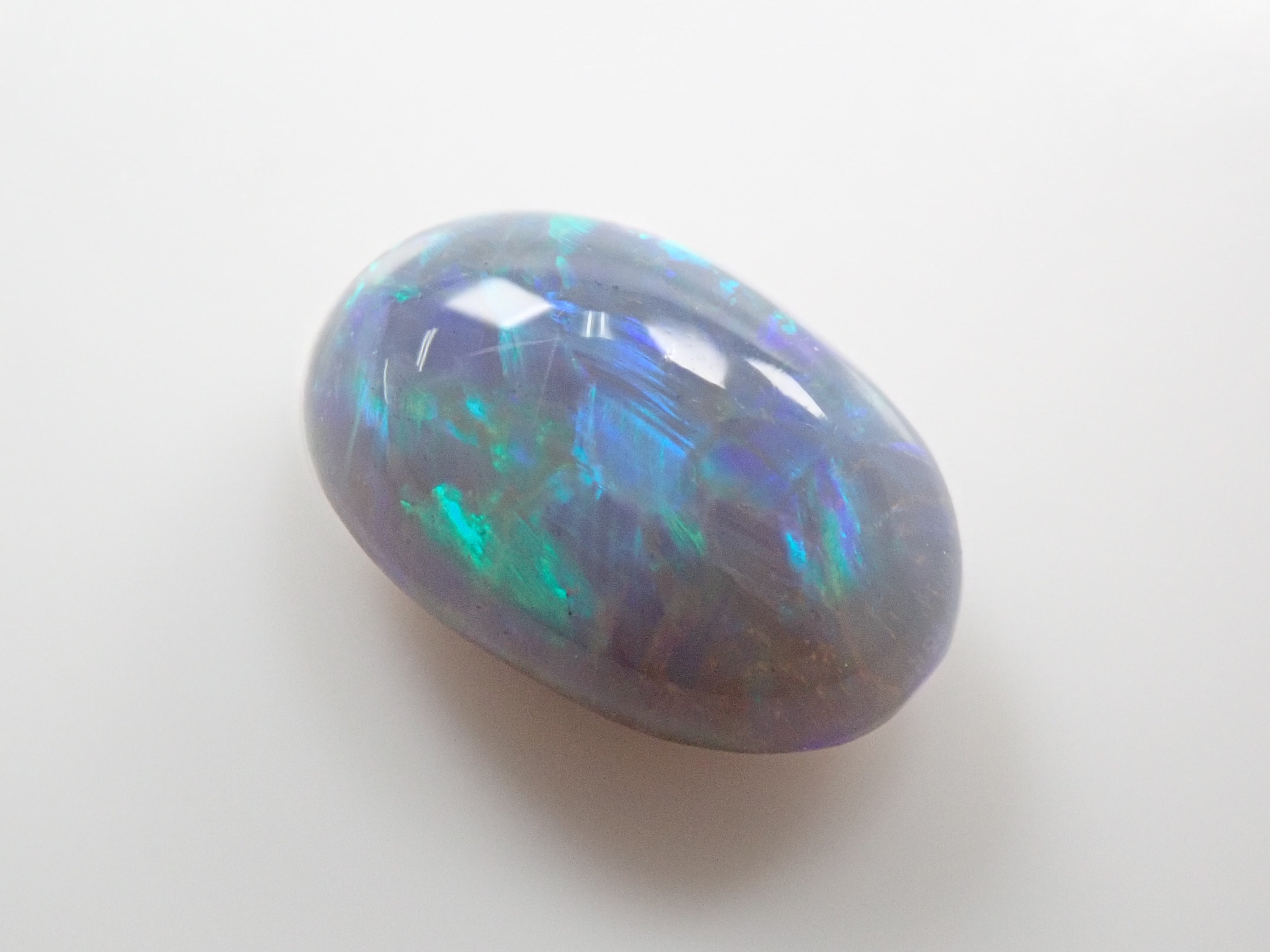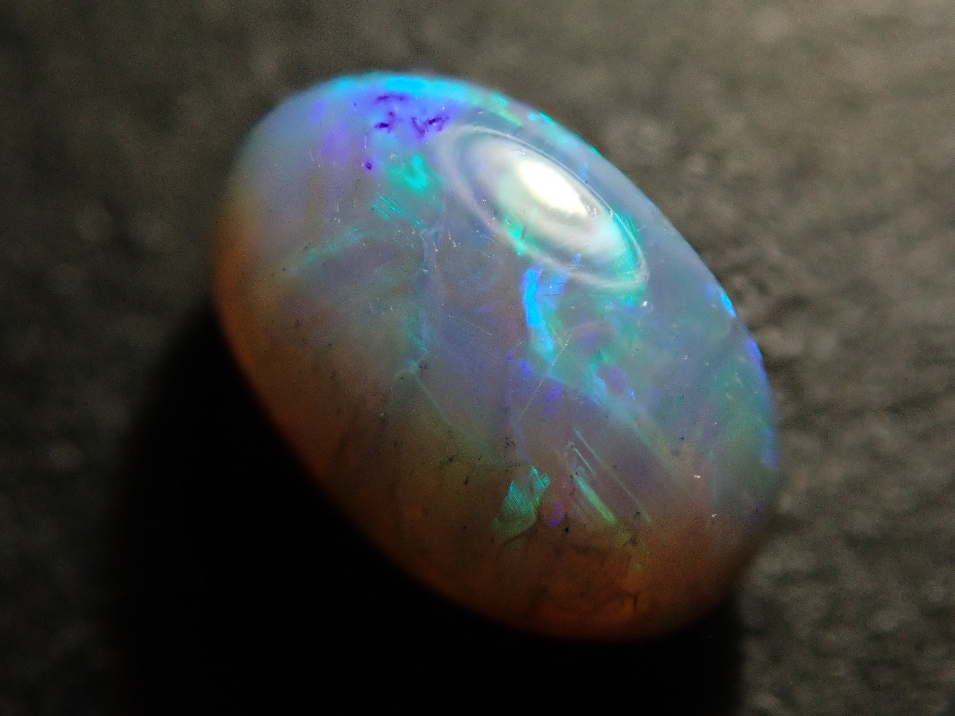 蛋白石是一種閃爍著彩虹色光芒的寶石。蛋白石有好幾種類型,但其中,黑蛋白石漆黑的黑暗中搖曳的紅色火焰美得讓人無法移開目光。底色包括黑色、藍色和灰色。照片是使用筆燈拍攝的。