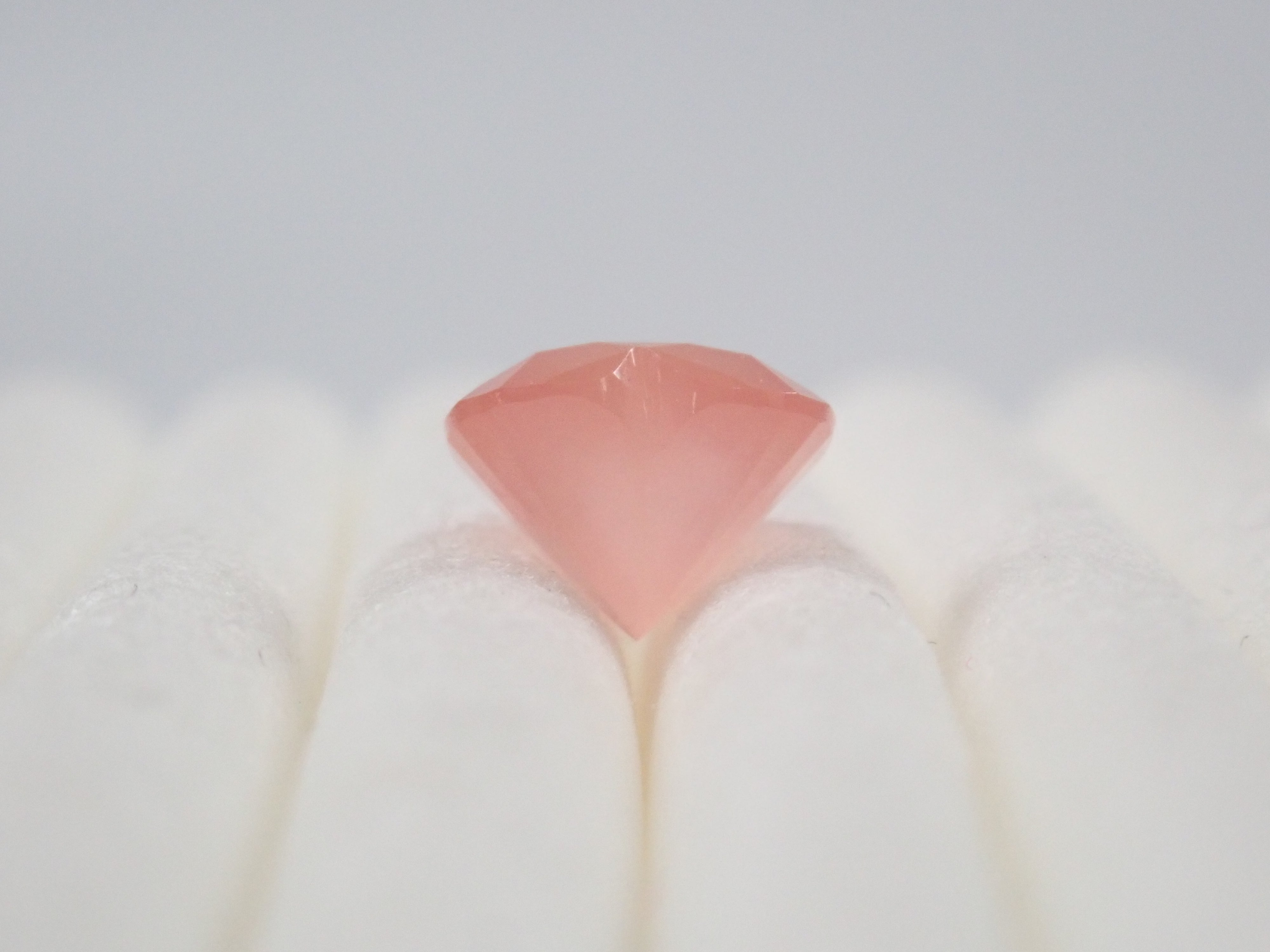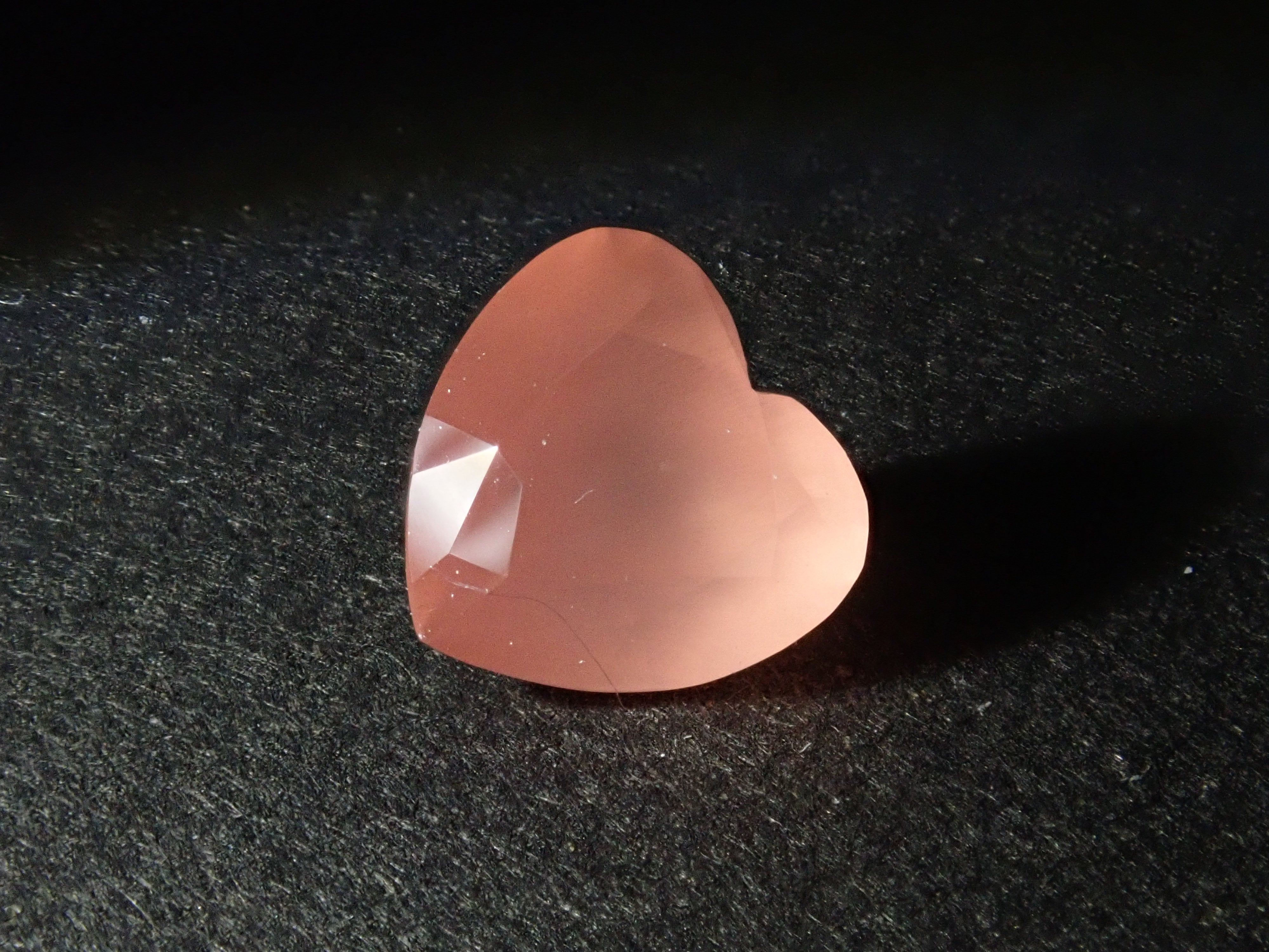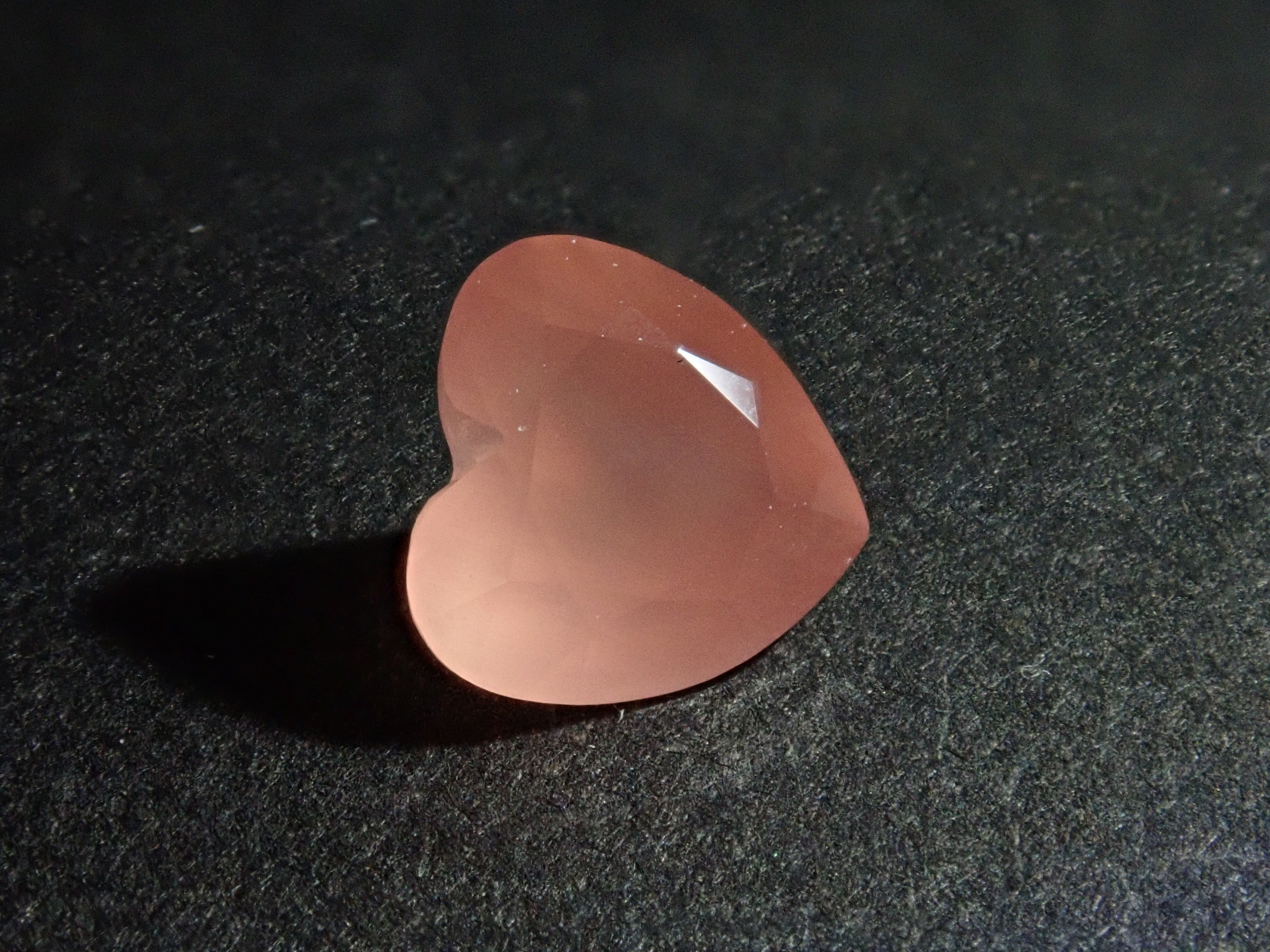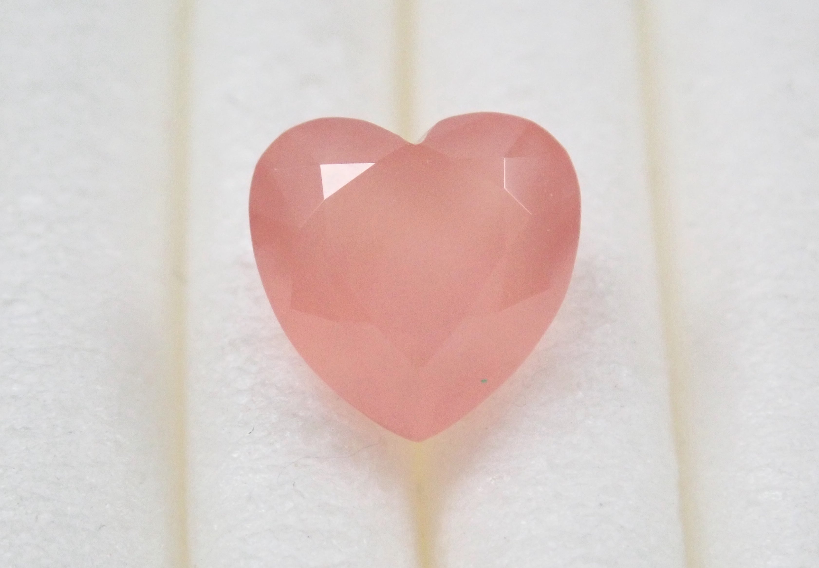 產自北海道的菱錳礦是日本生產的少數寶石之一。這是一顆2023年12月剛從原石打磨出來的心形裸石。尺寸為5毫米。