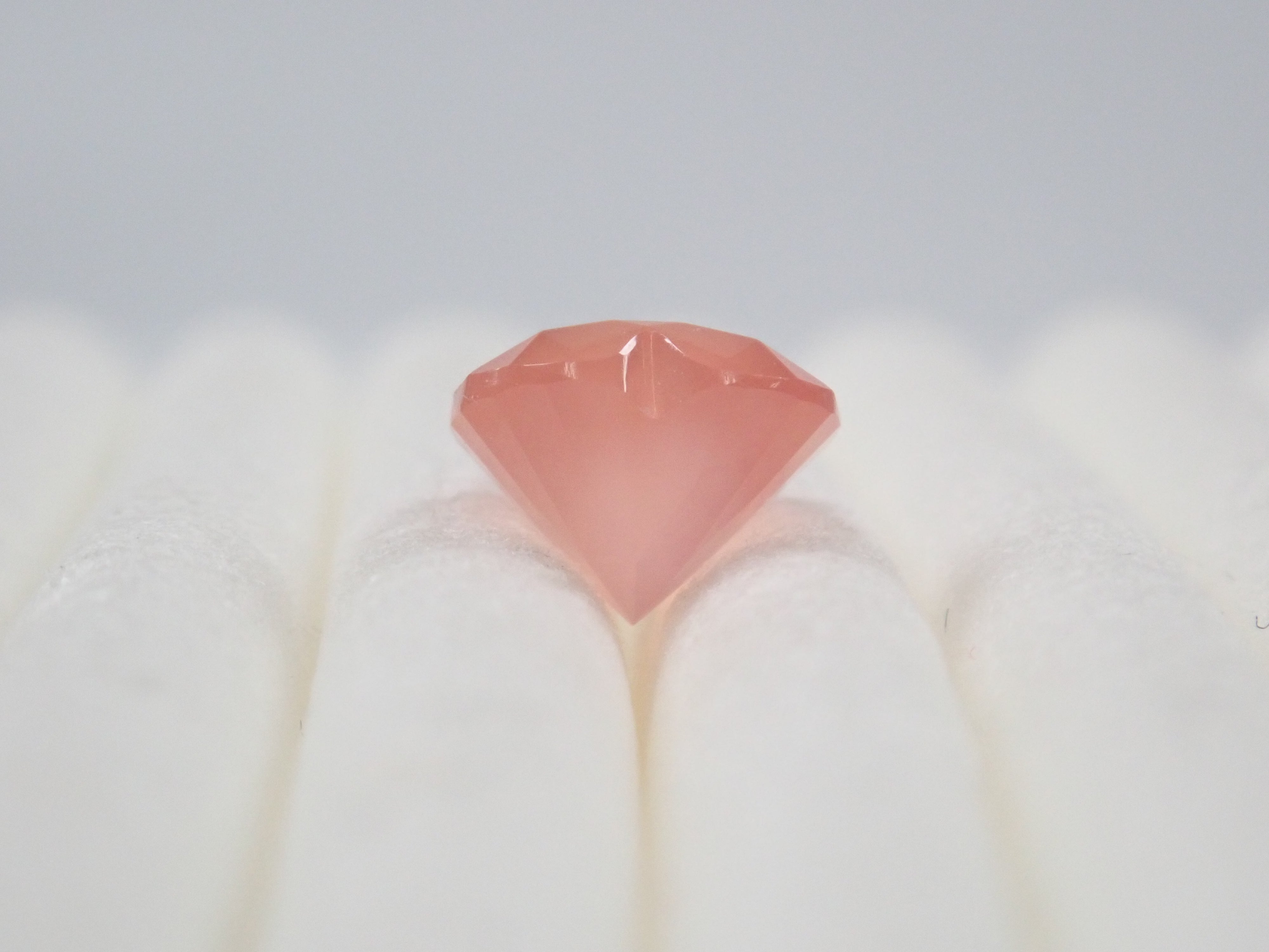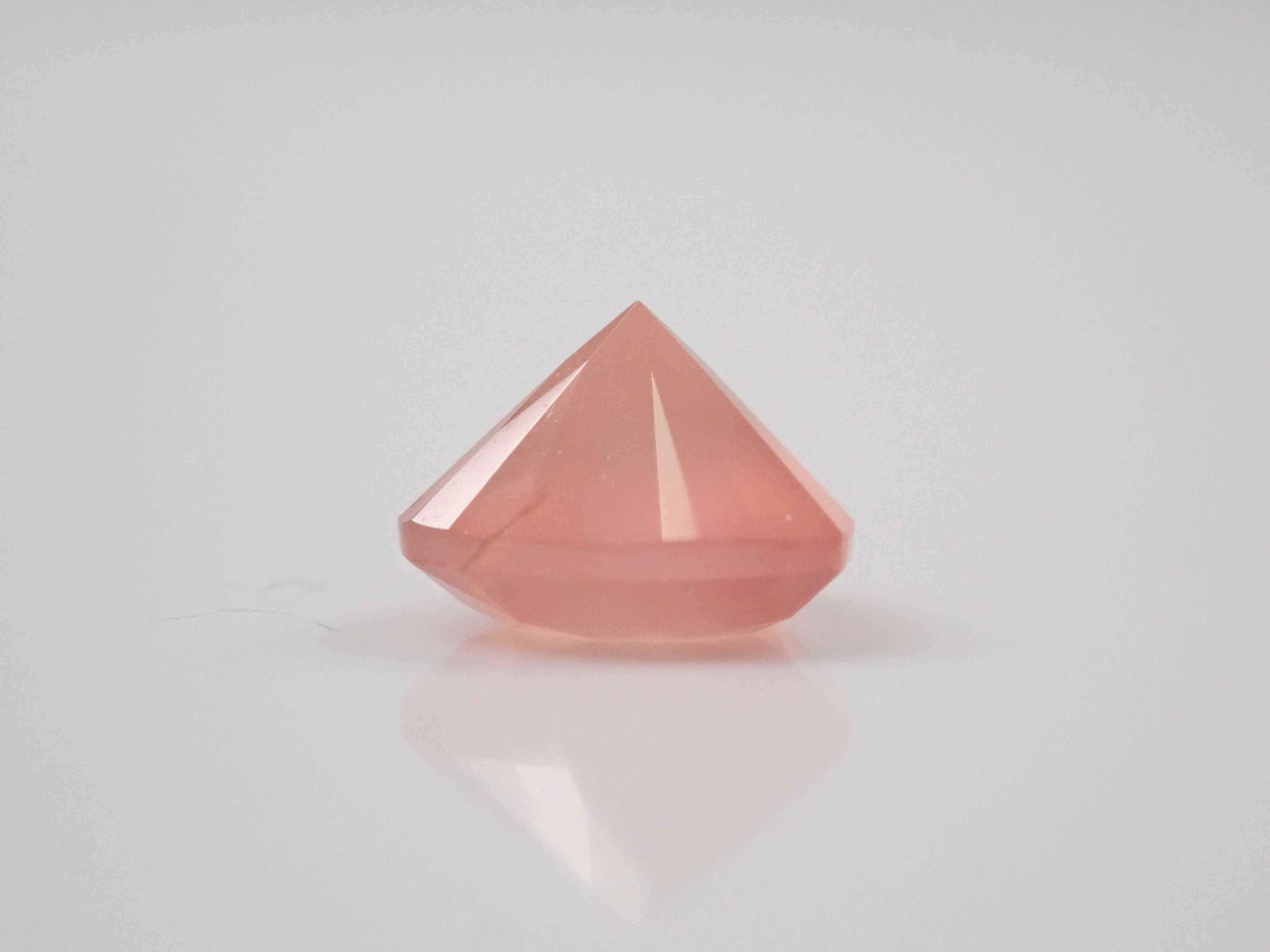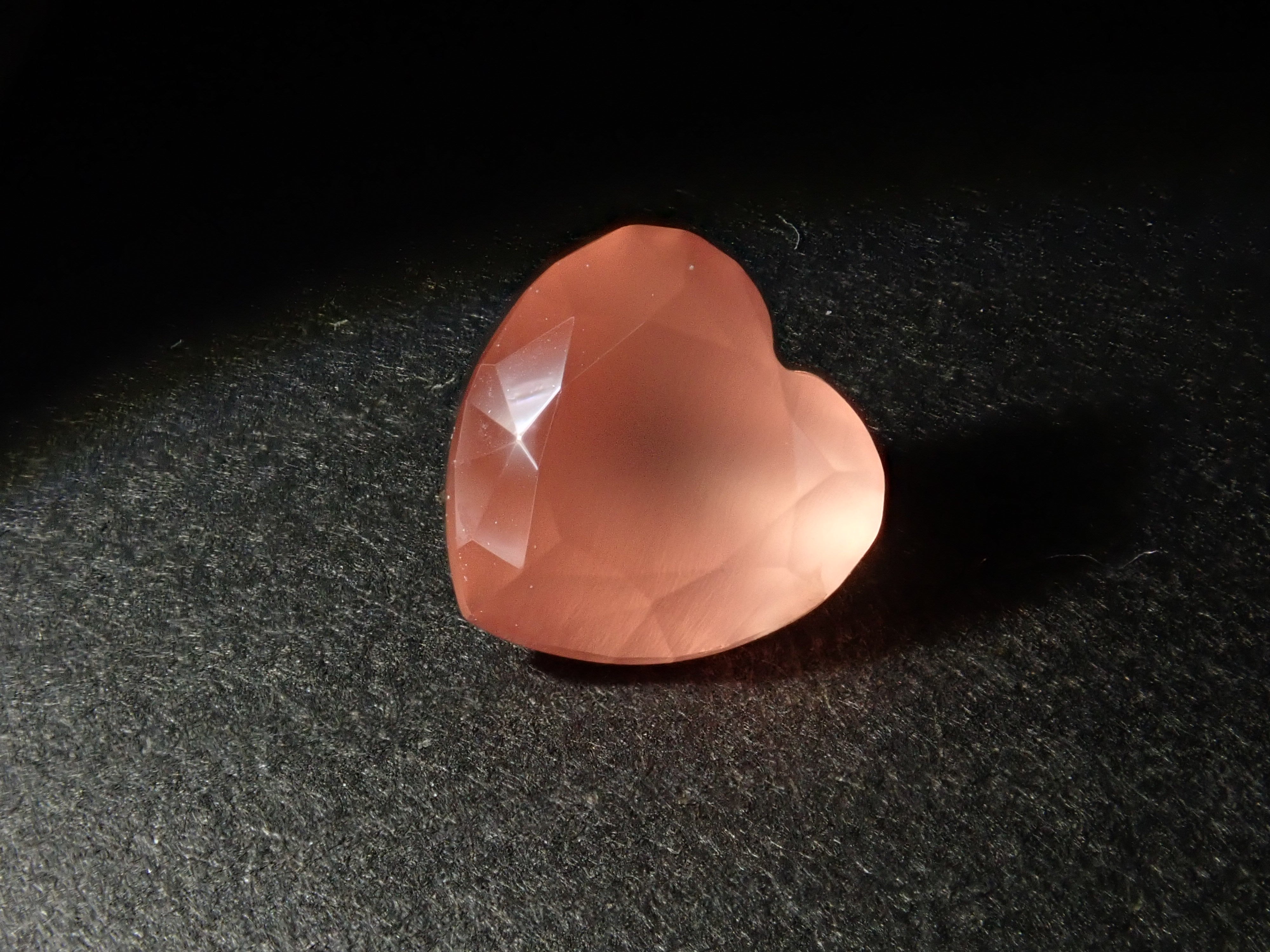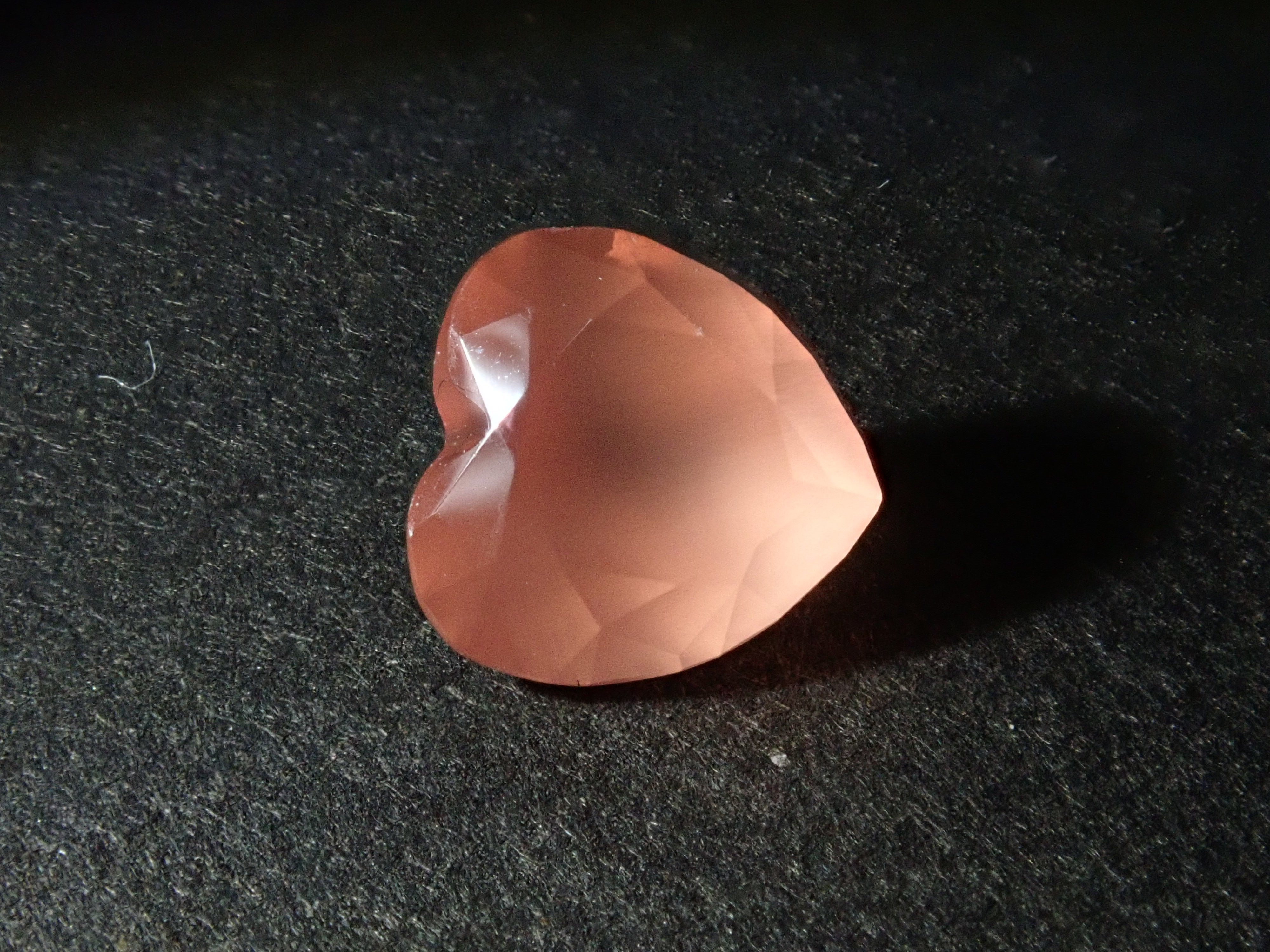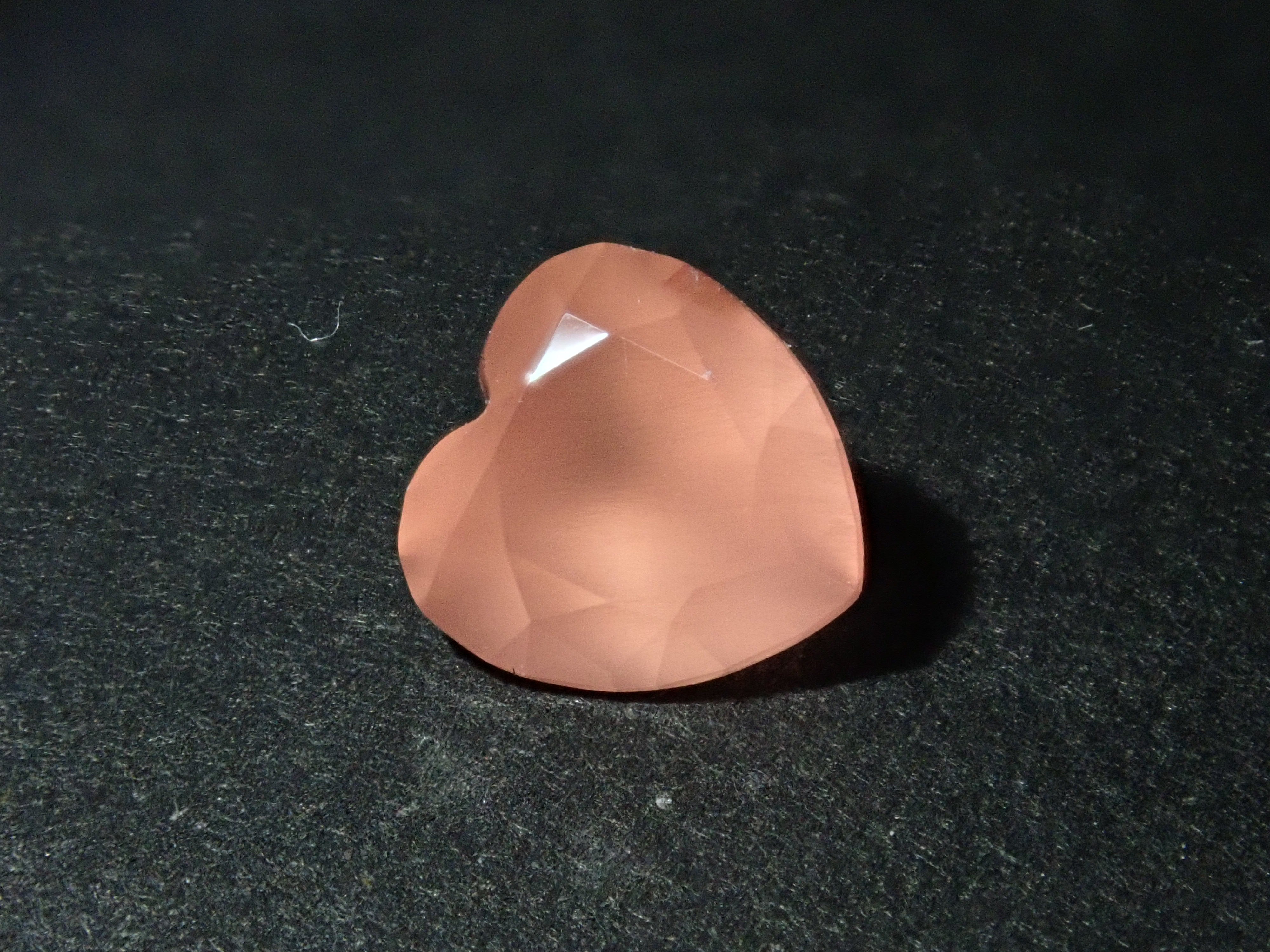 產自北海道的菱錳礦是日本生產的少數寶石之一。這是一顆2023年12月剛從原石打磨出來的心形裸石。尺寸為5毫米。