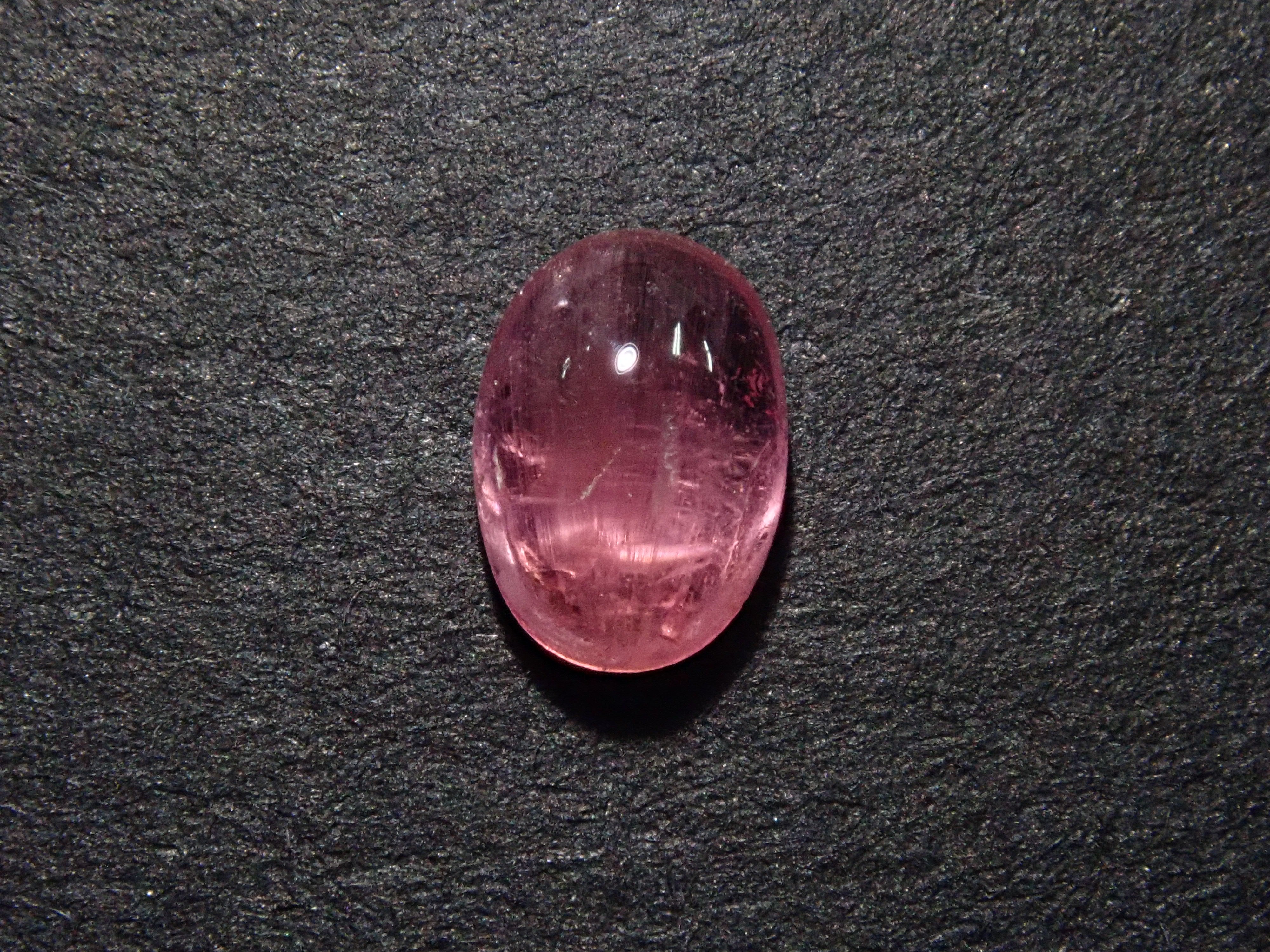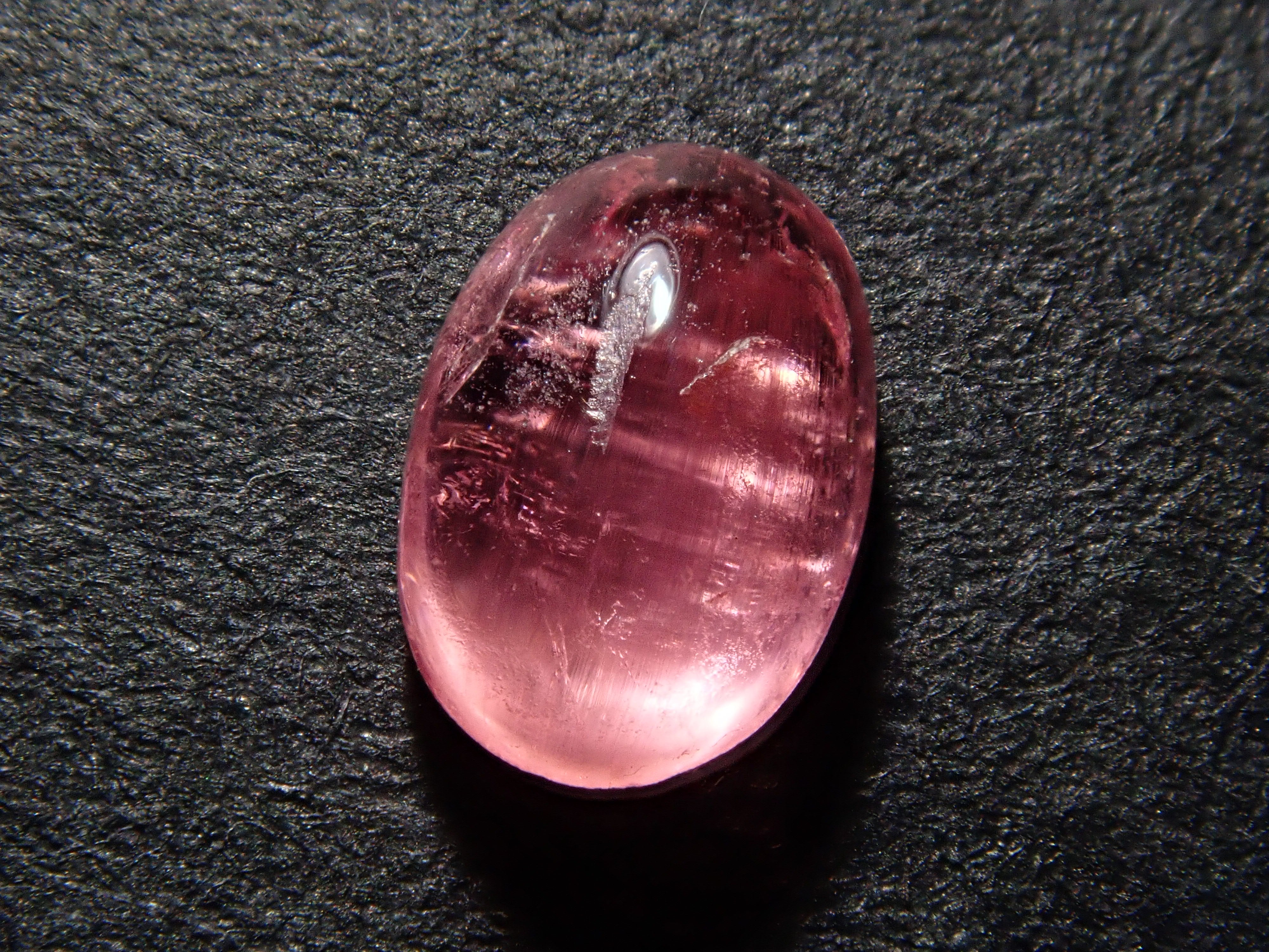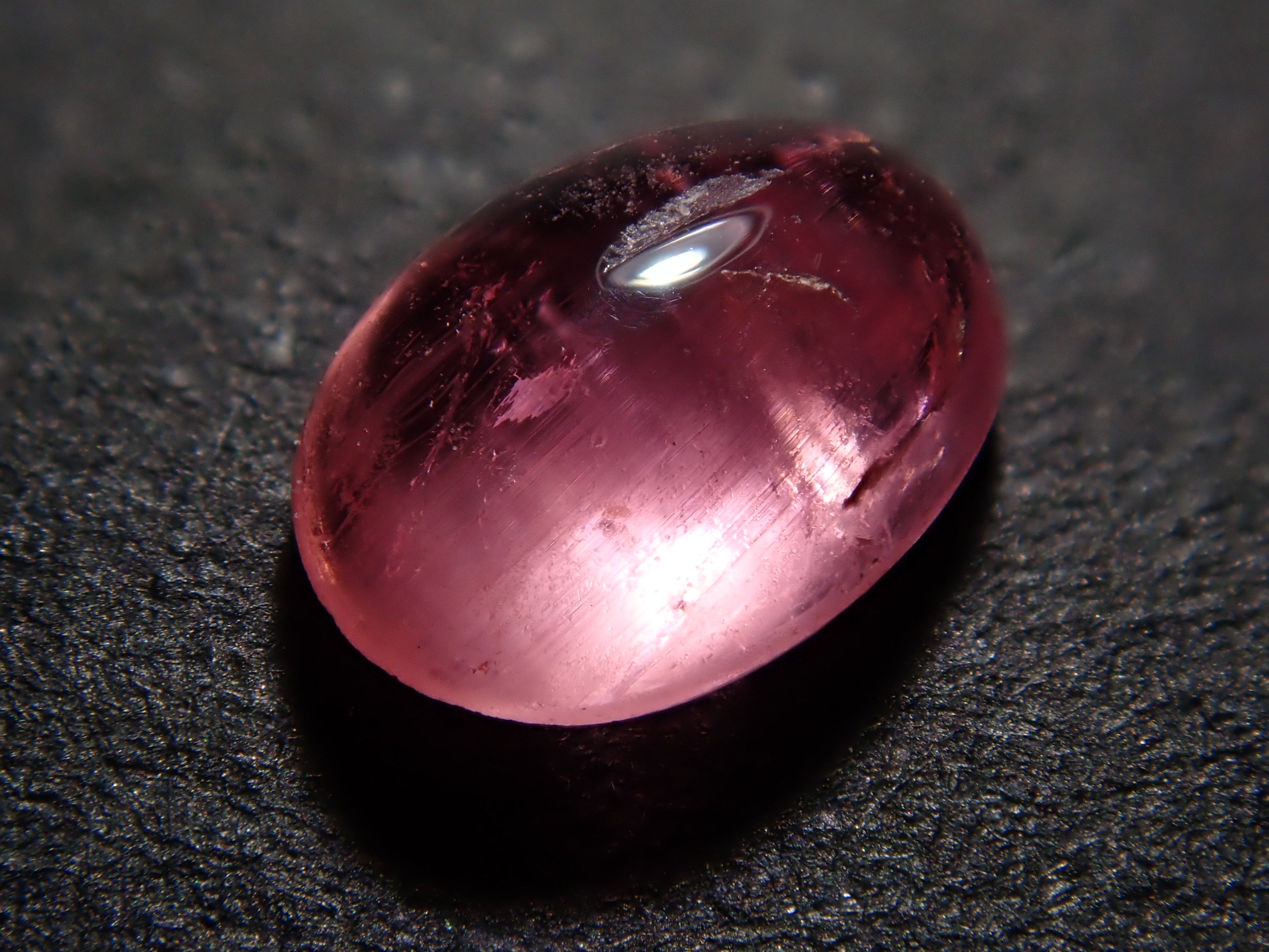 稀有石頭,綠色鋰長石。它是一種新寶石,直到 2003 年才被正式認可為礦物。它是一種具有迷人的亮粉色的寶石,在美國礦物展上作為新礦物被介紹,並迅速流行起來。這是可以看到貓眼效果的類型。筆燈用於攝影。石頭的背面基本上是未拋光的。
