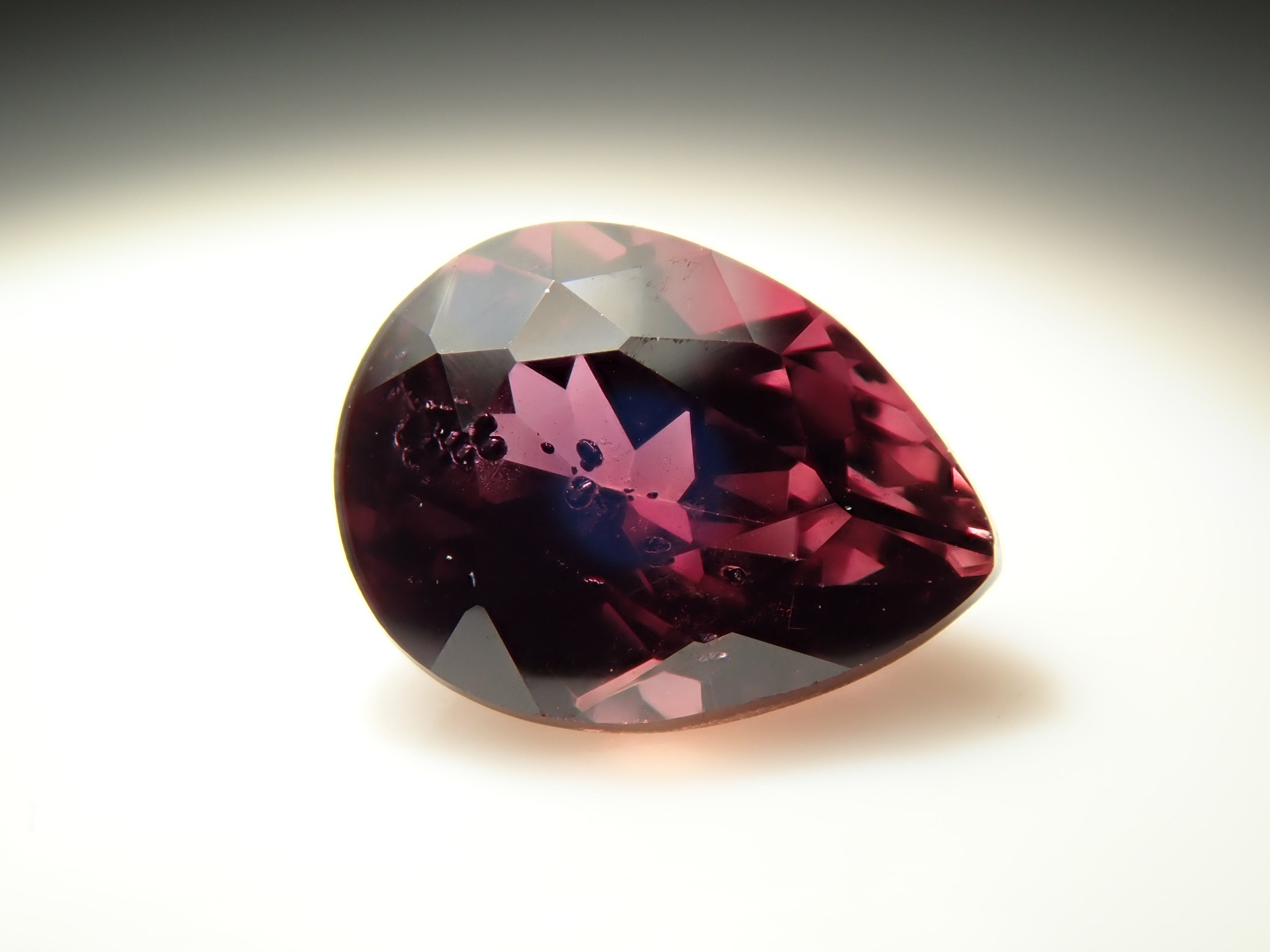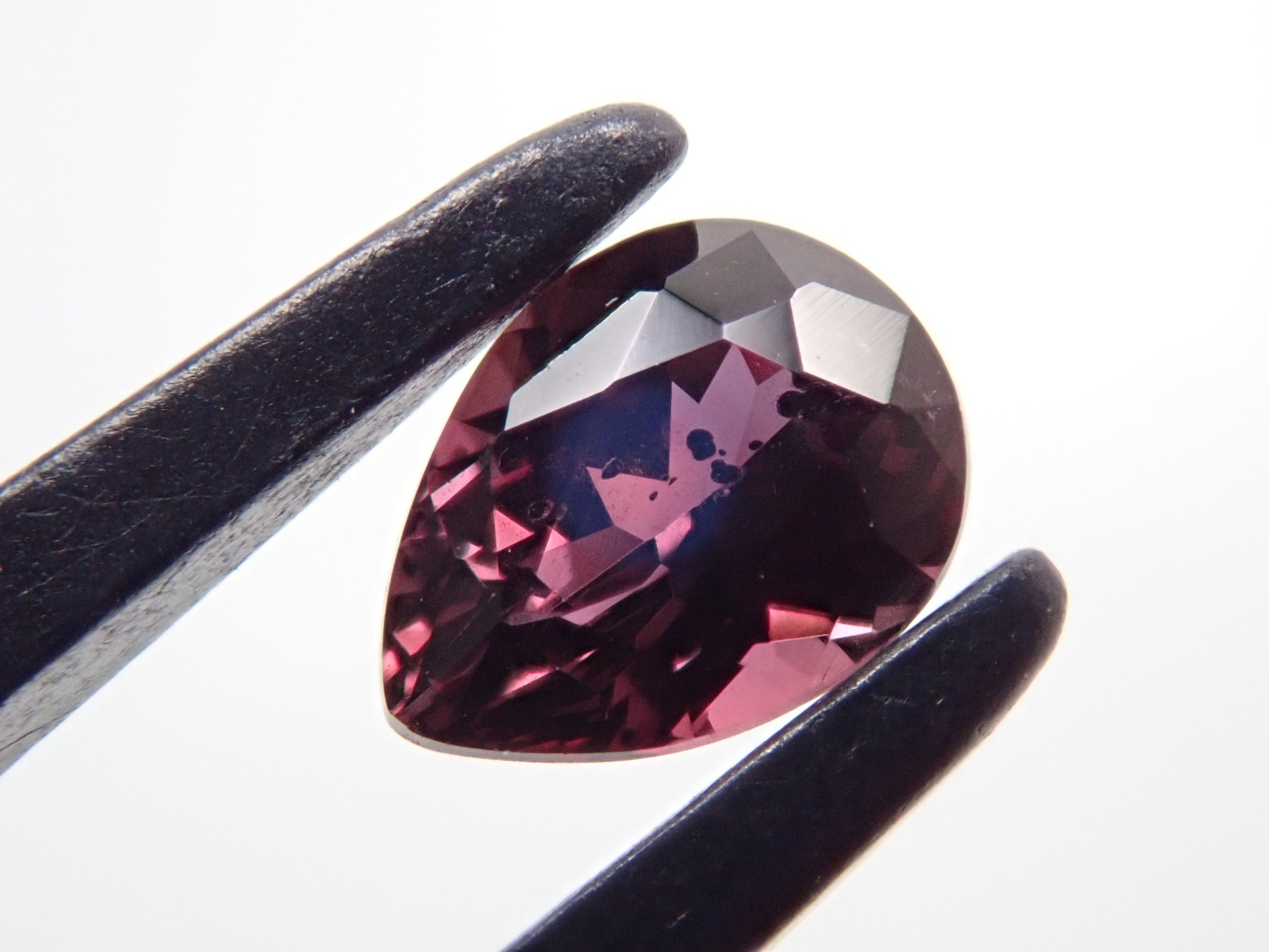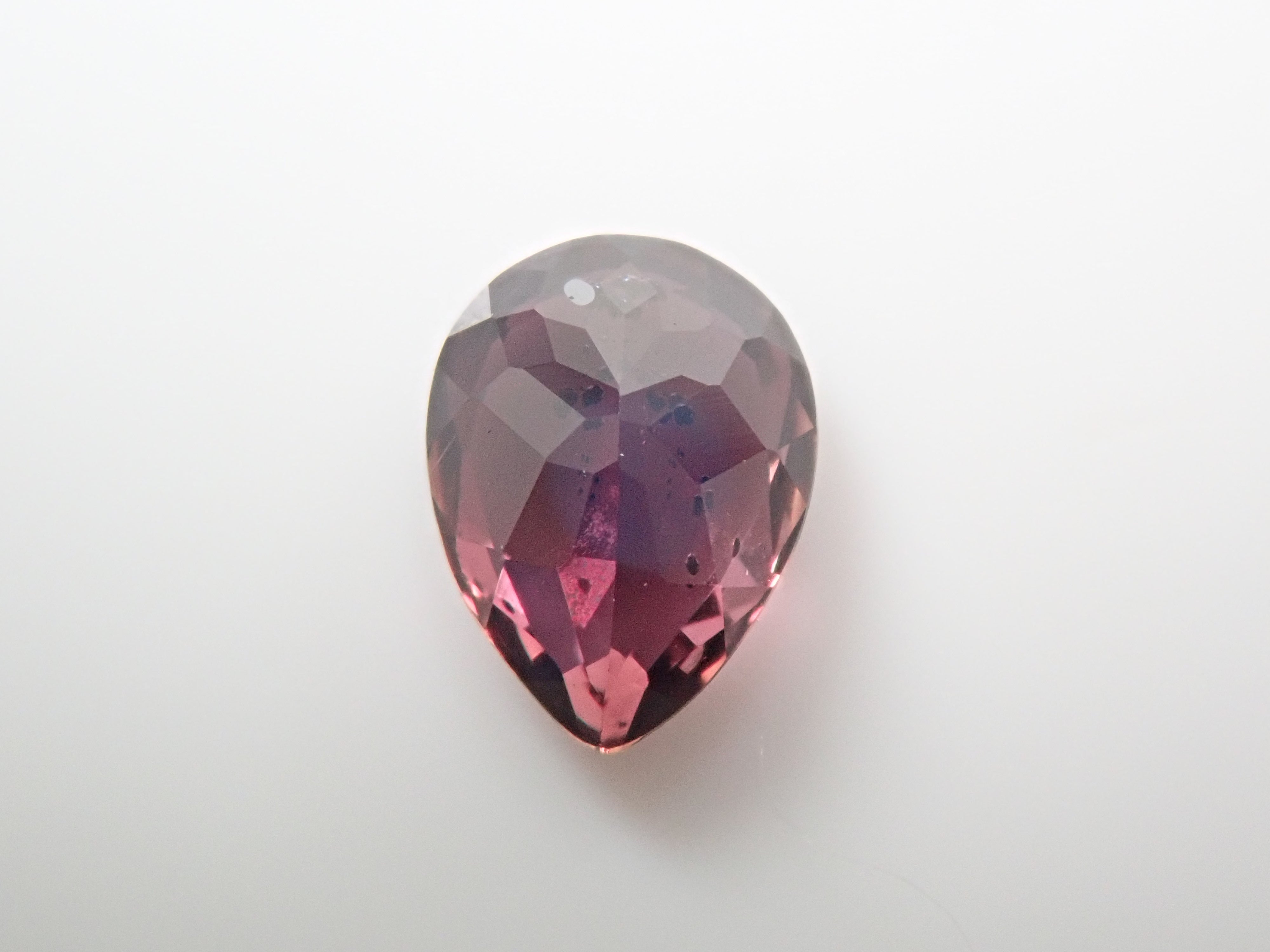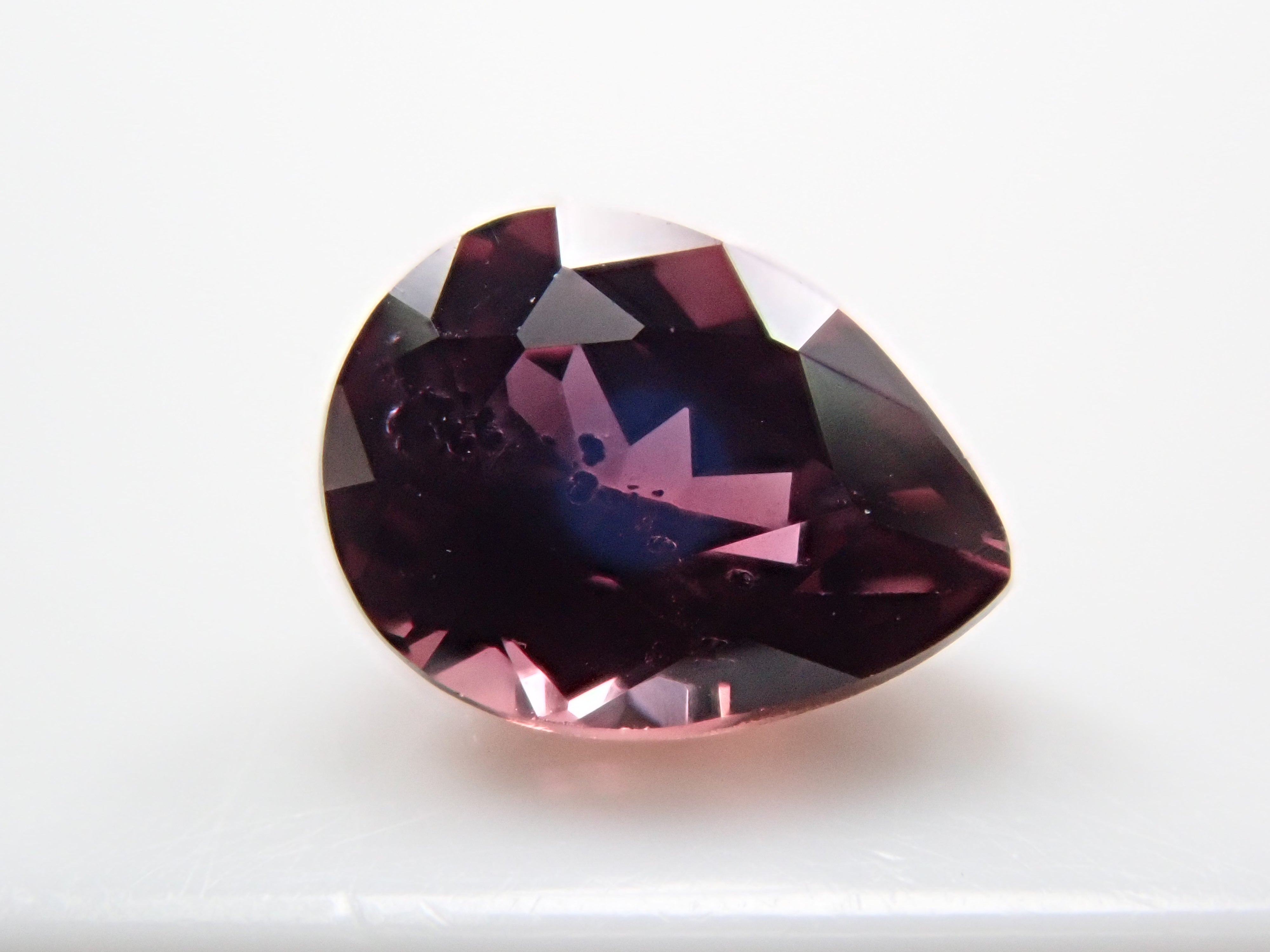 藍寶石是一種著名的寶石。礦物為剛玉,與紅寶石相同,但除紅色以外的所有剛玉稱為藍寶石。其中,這是一種罕見的會變色的藍寶石。藍寶石的硬度為 9,是僅次於鑽石的第二硬寶石,是一種高度堅韌、穩定且易於護理的寶石。請使用紅色變色筆燈欣賞變色效果。