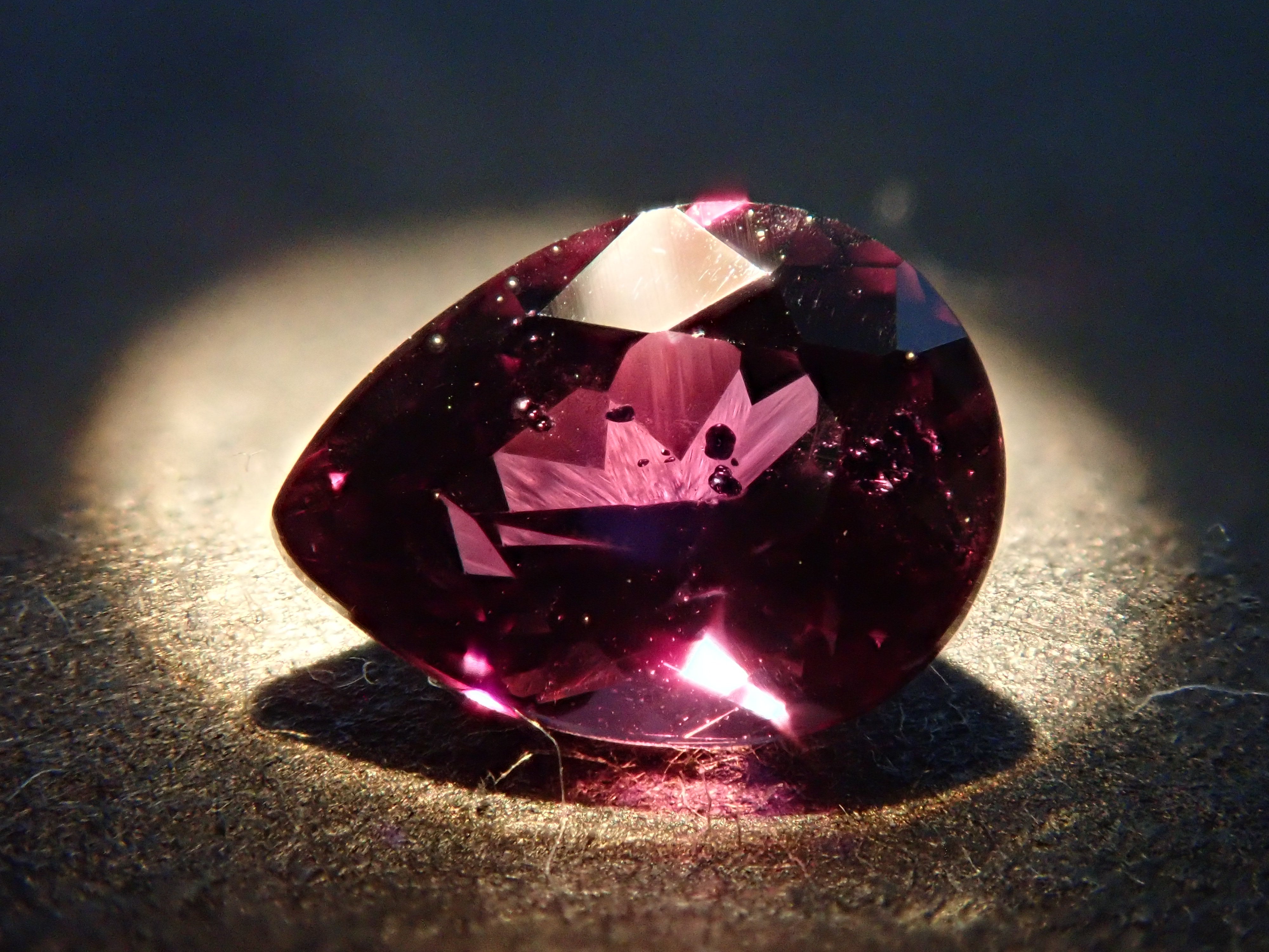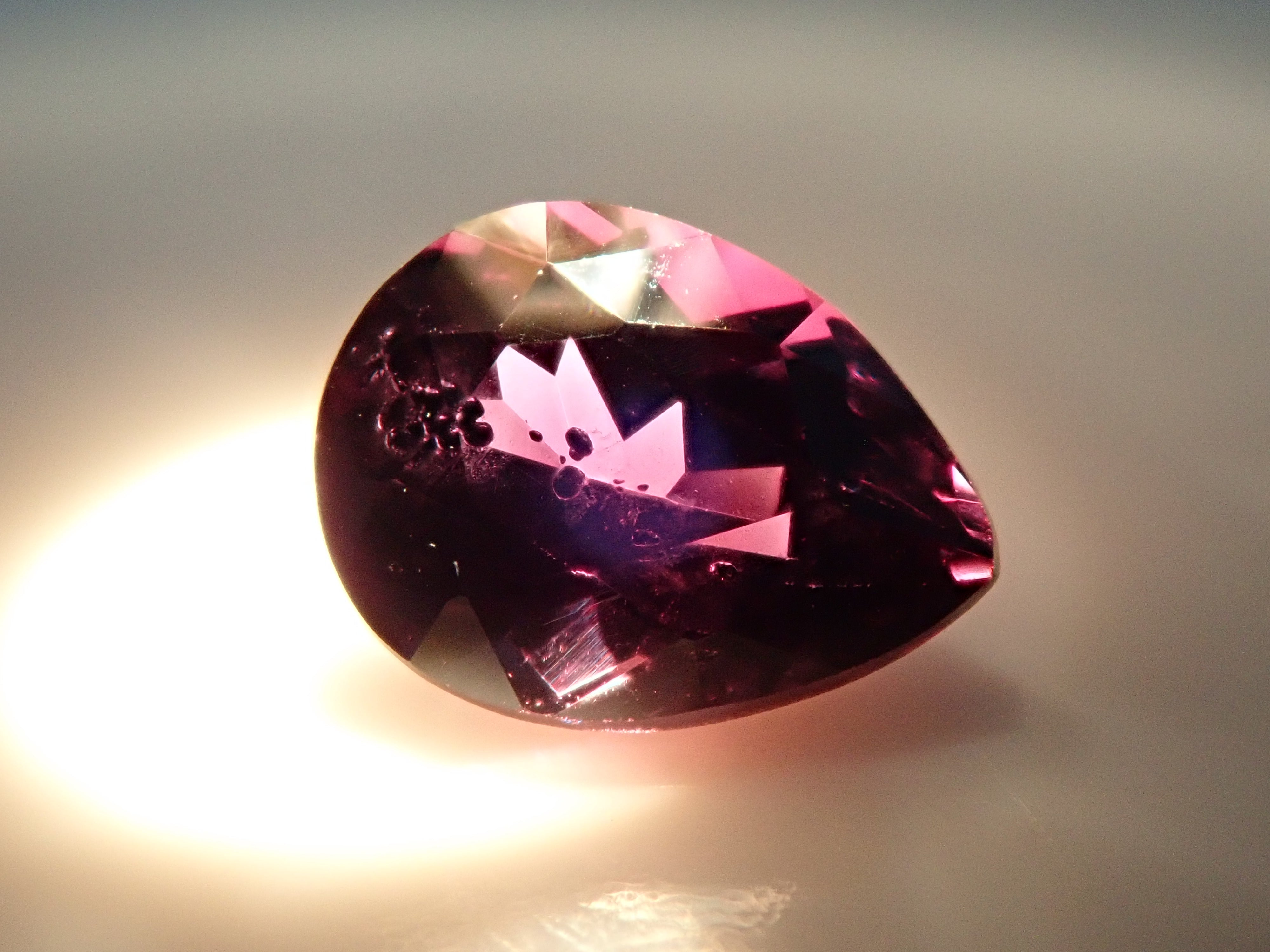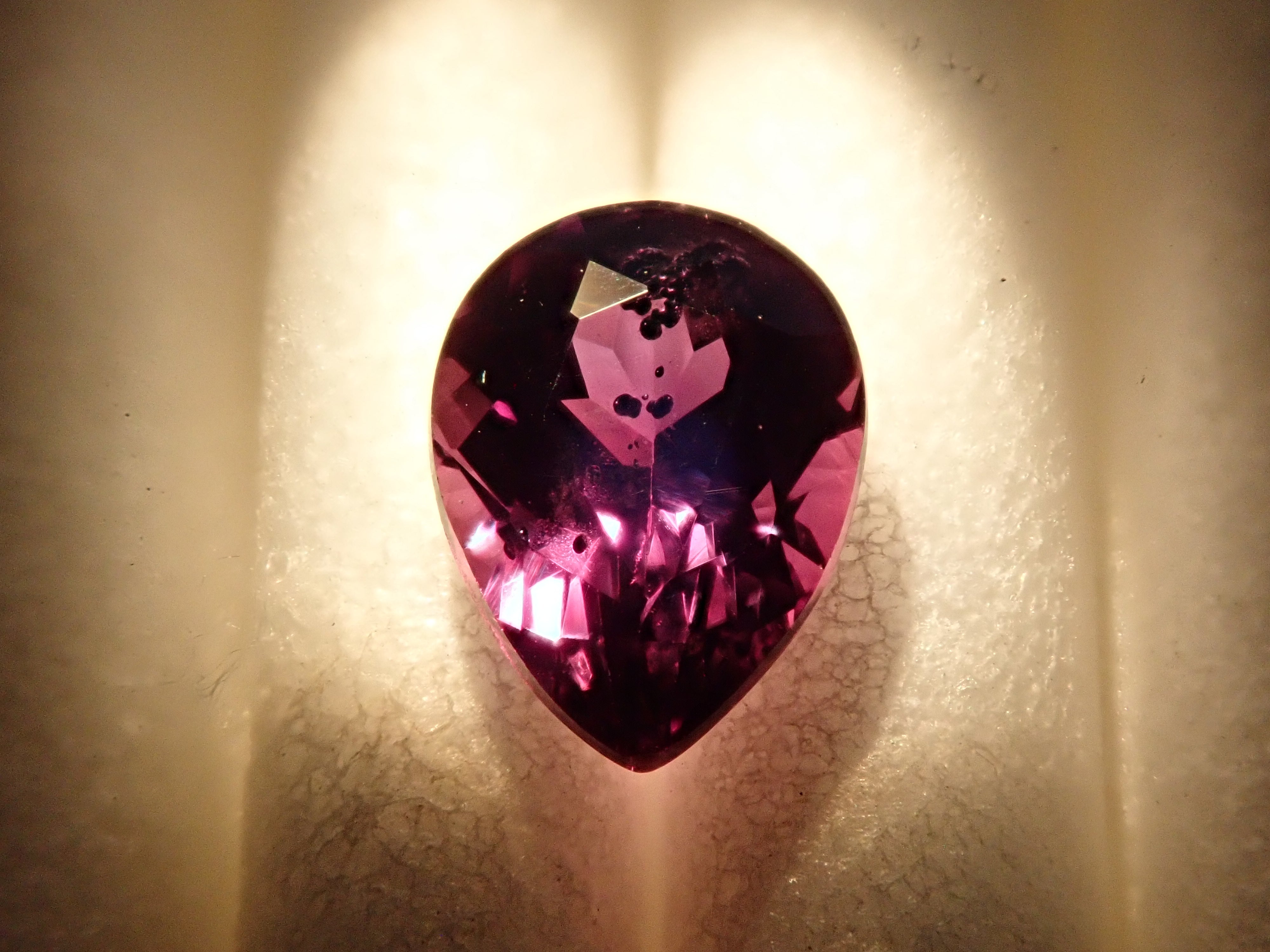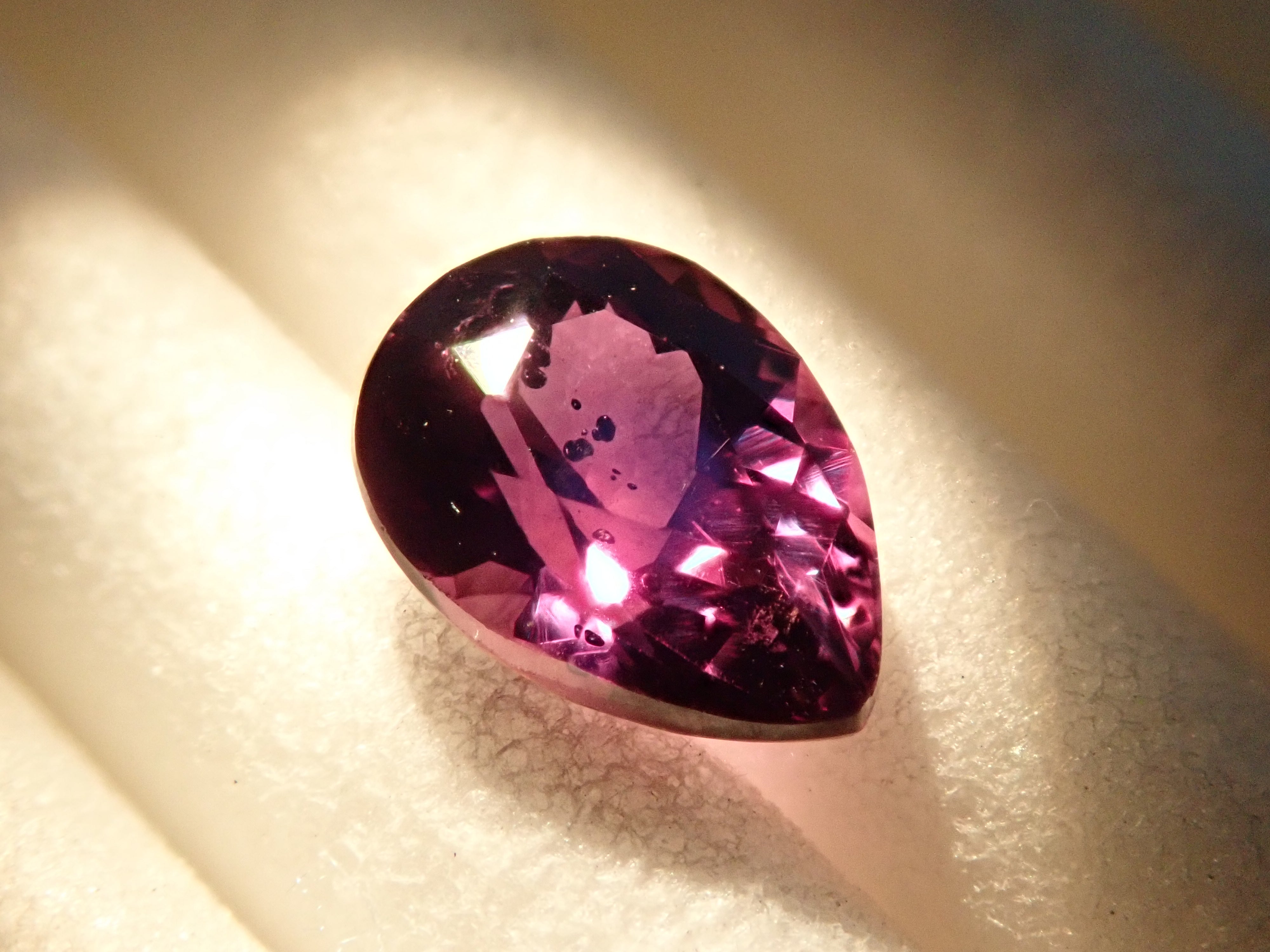 藍寶石是一種著名的寶石。礦物為剛玉,與紅寶石相同,但除紅色以外的所有剛玉稱為藍寶石。其中,這是一種罕見的會變色的藍寶石。藍寶石的硬度為 9,是僅次於鑽石的第二硬寶石,是一種高度堅韌、穩定且易於護理的寶石。請使用紅色變色筆燈欣賞變色效果。