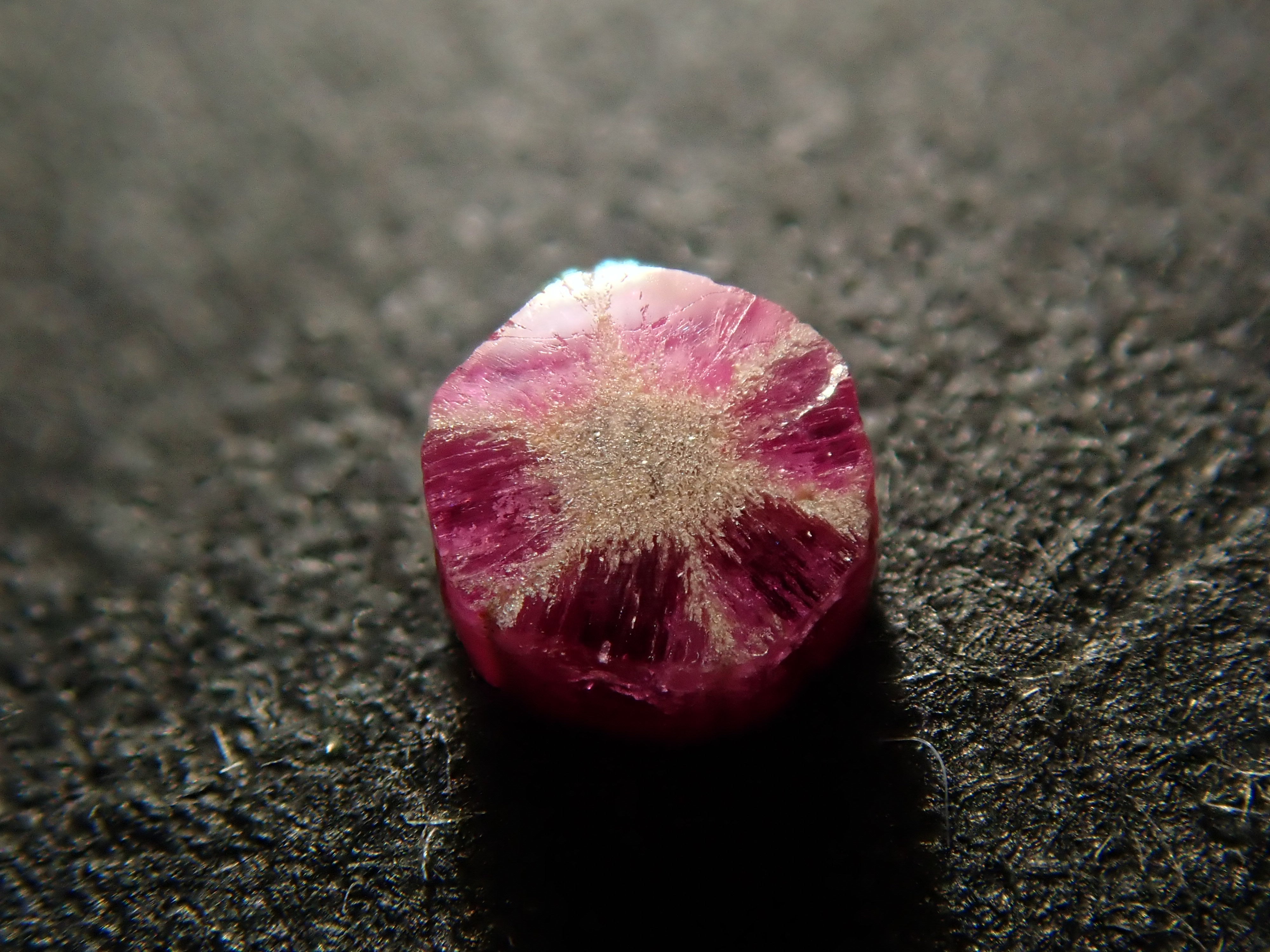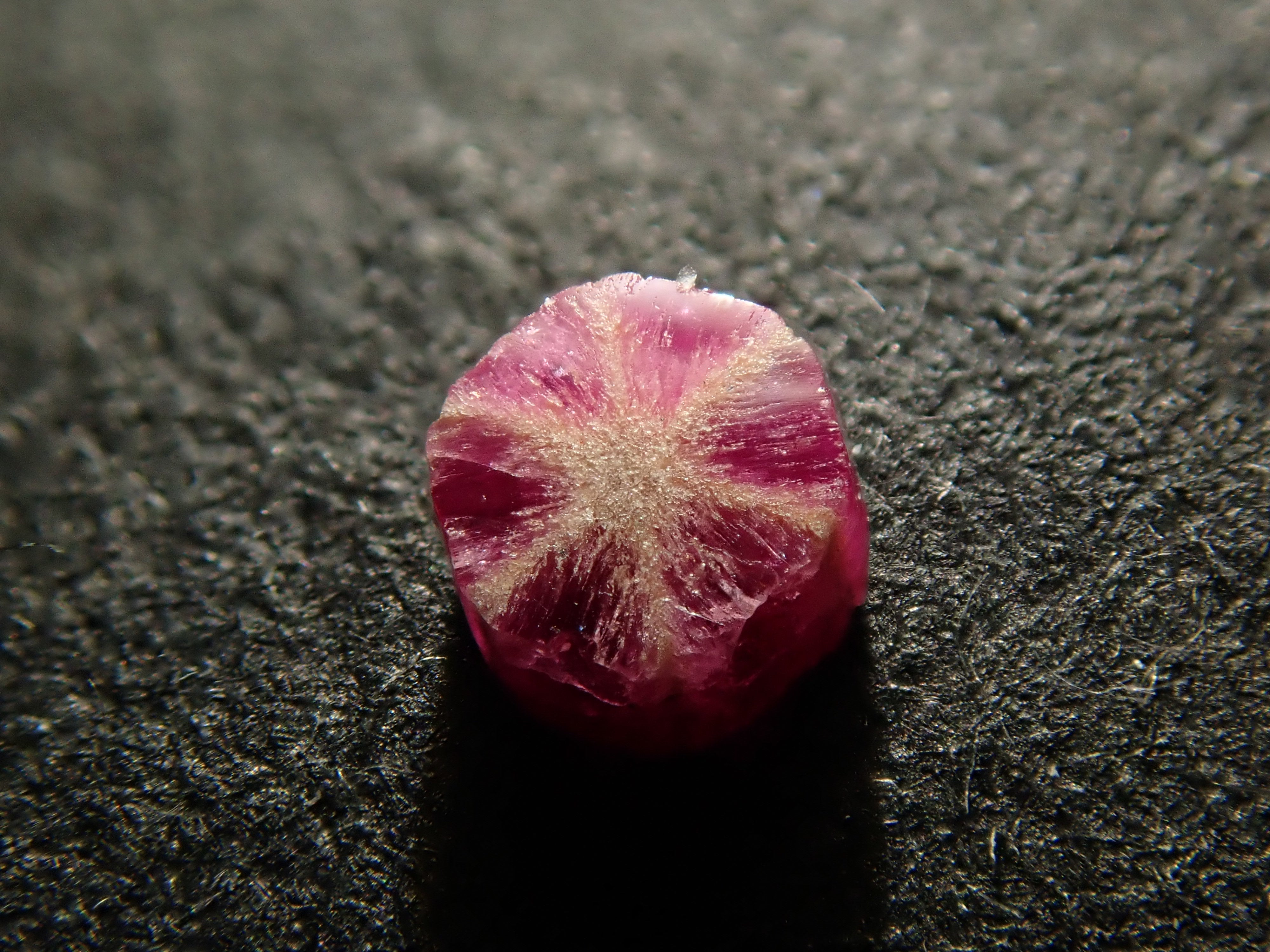 達碧茲圖案也稱為碳線。其中,trapichelby 是一種產量很少的稀有寶石。這種六線星狀圖案很有特色。此外,有很多類型的達碧茲都有划痕和缺口,而不僅僅是紅寶石。