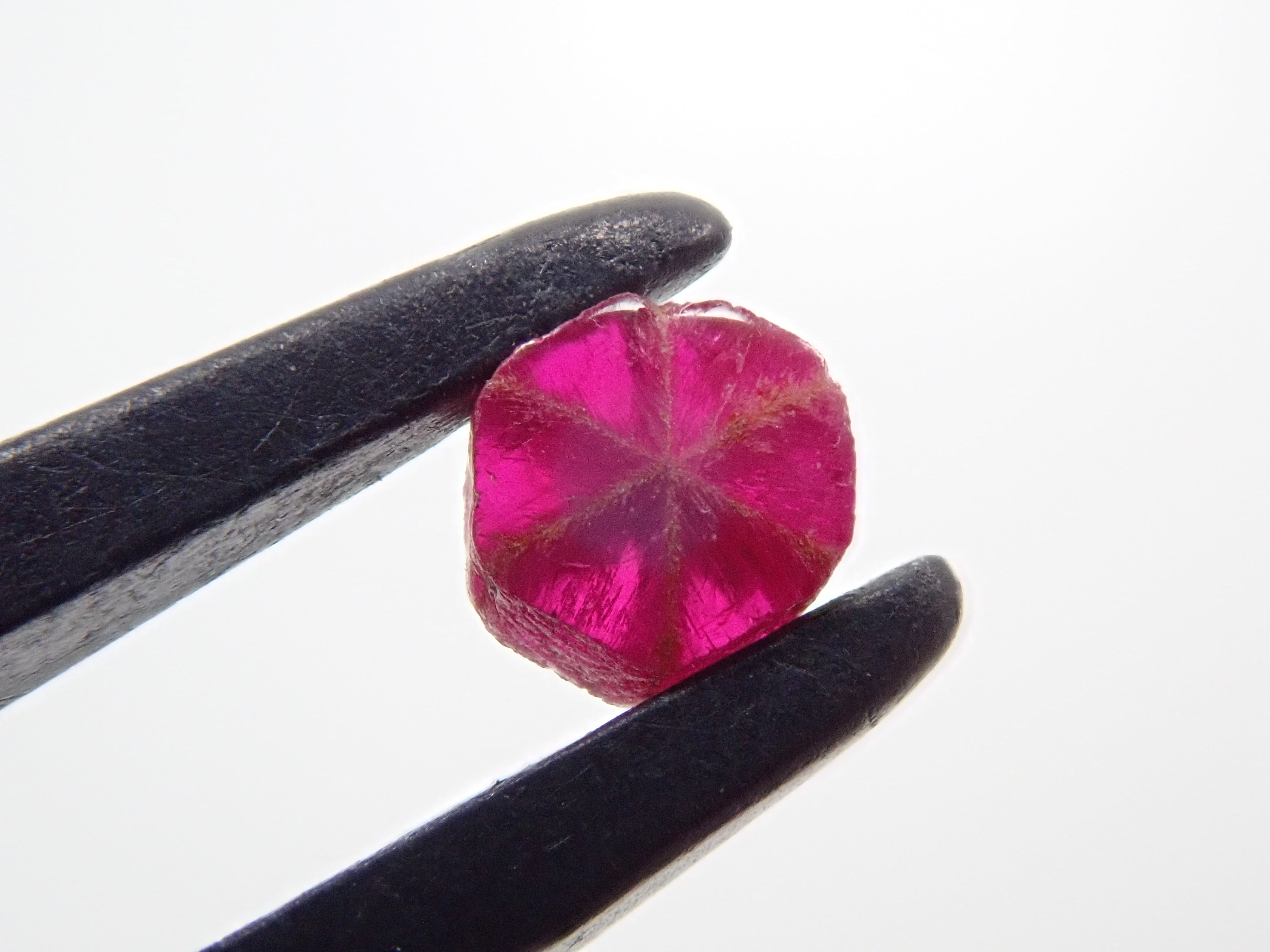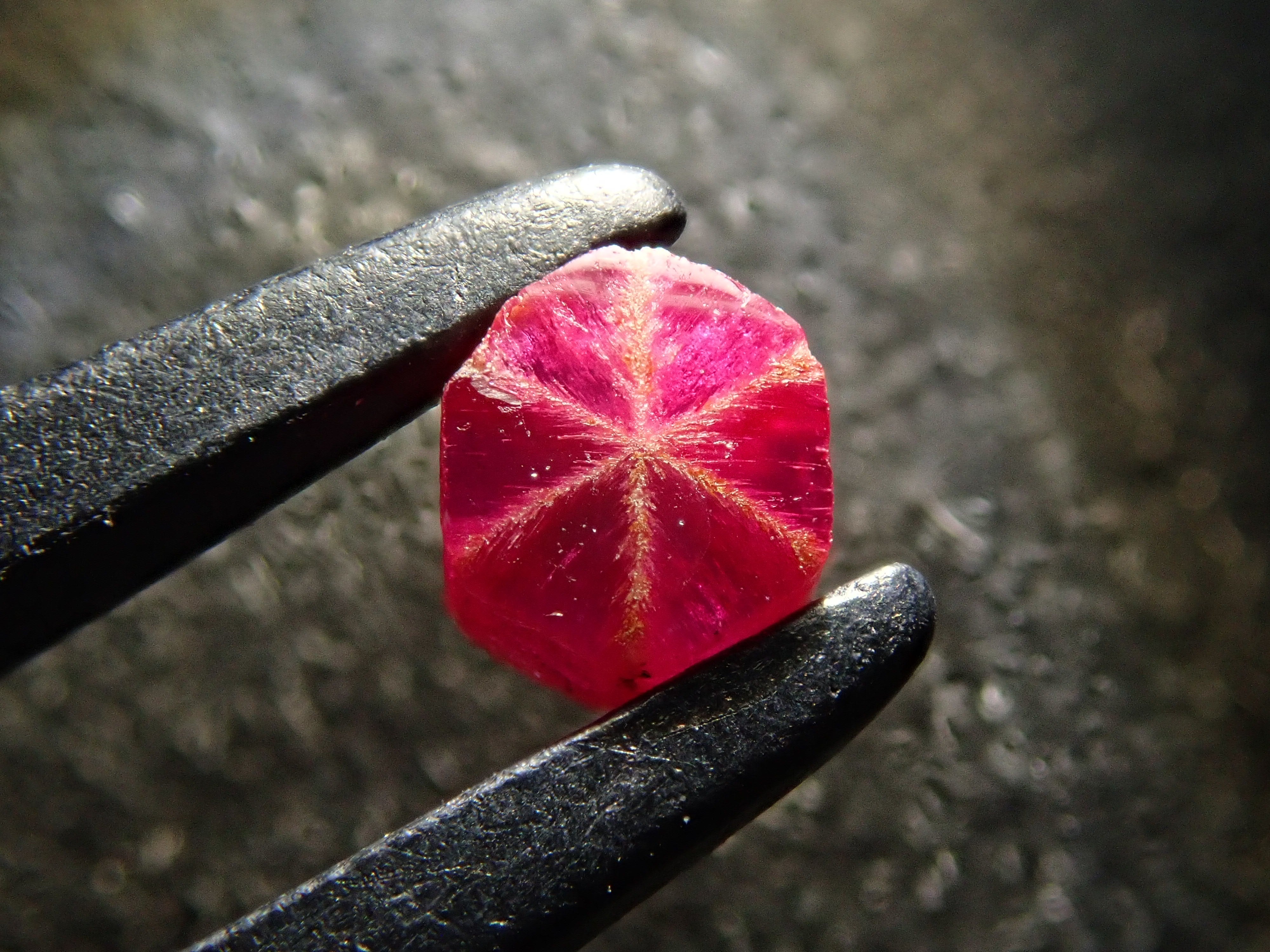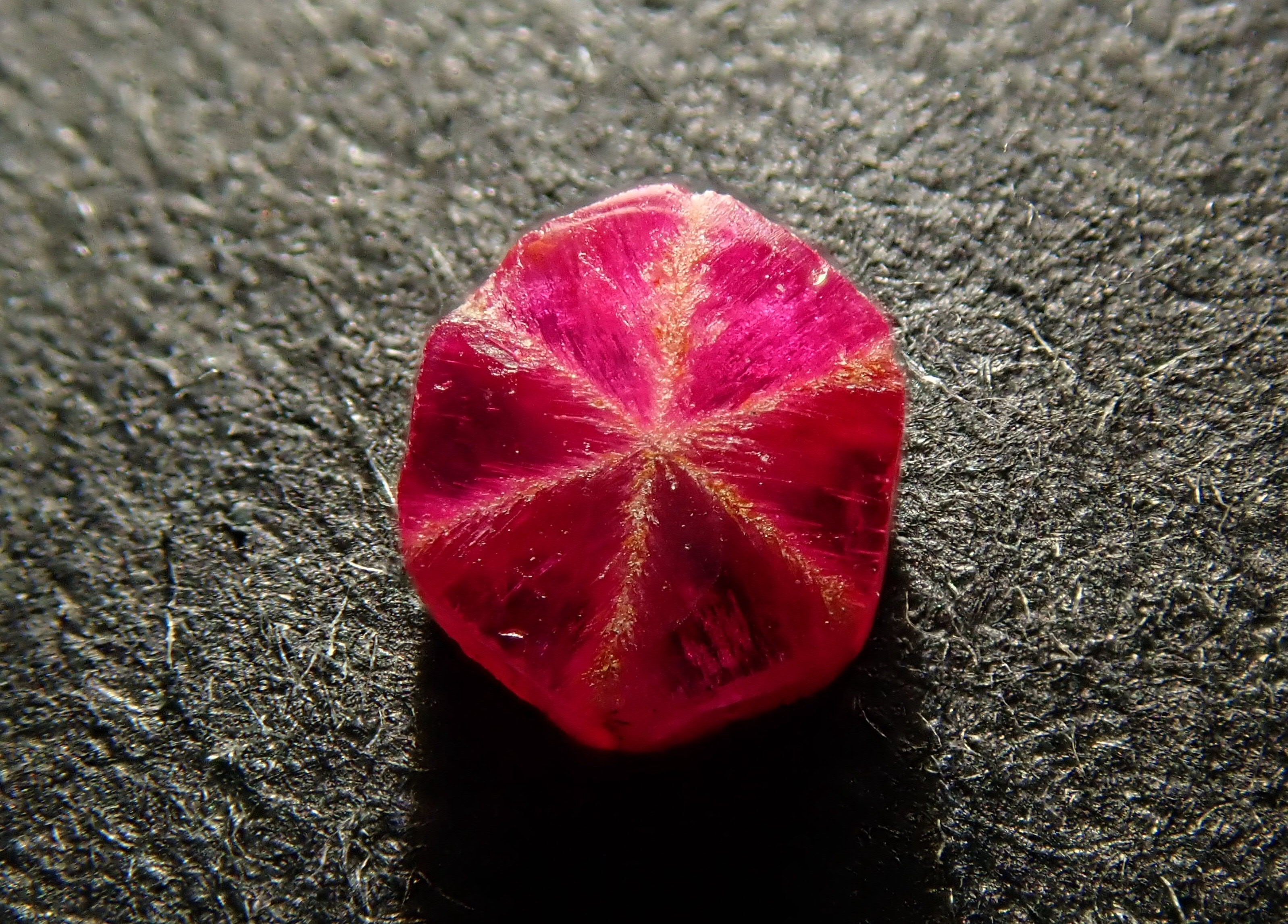 達碧茲圖案也稱為碳線。其中,trapichelby 是一種產量很少的稀有寶石。它的特點是這種 6 線星狀圖案。此外,有很多類型的達碧茲都有划痕和缺口,而不僅僅是紅寶石。