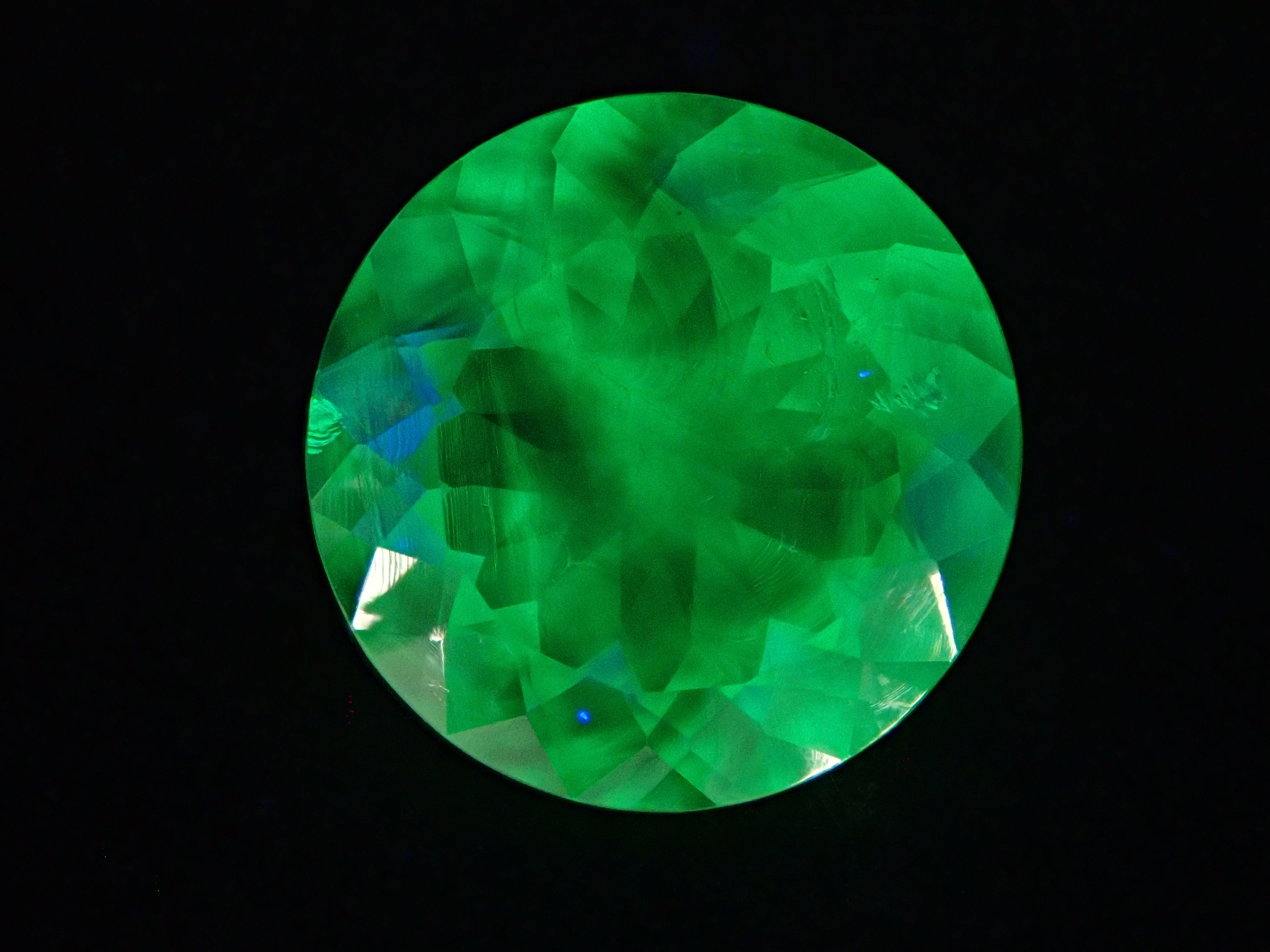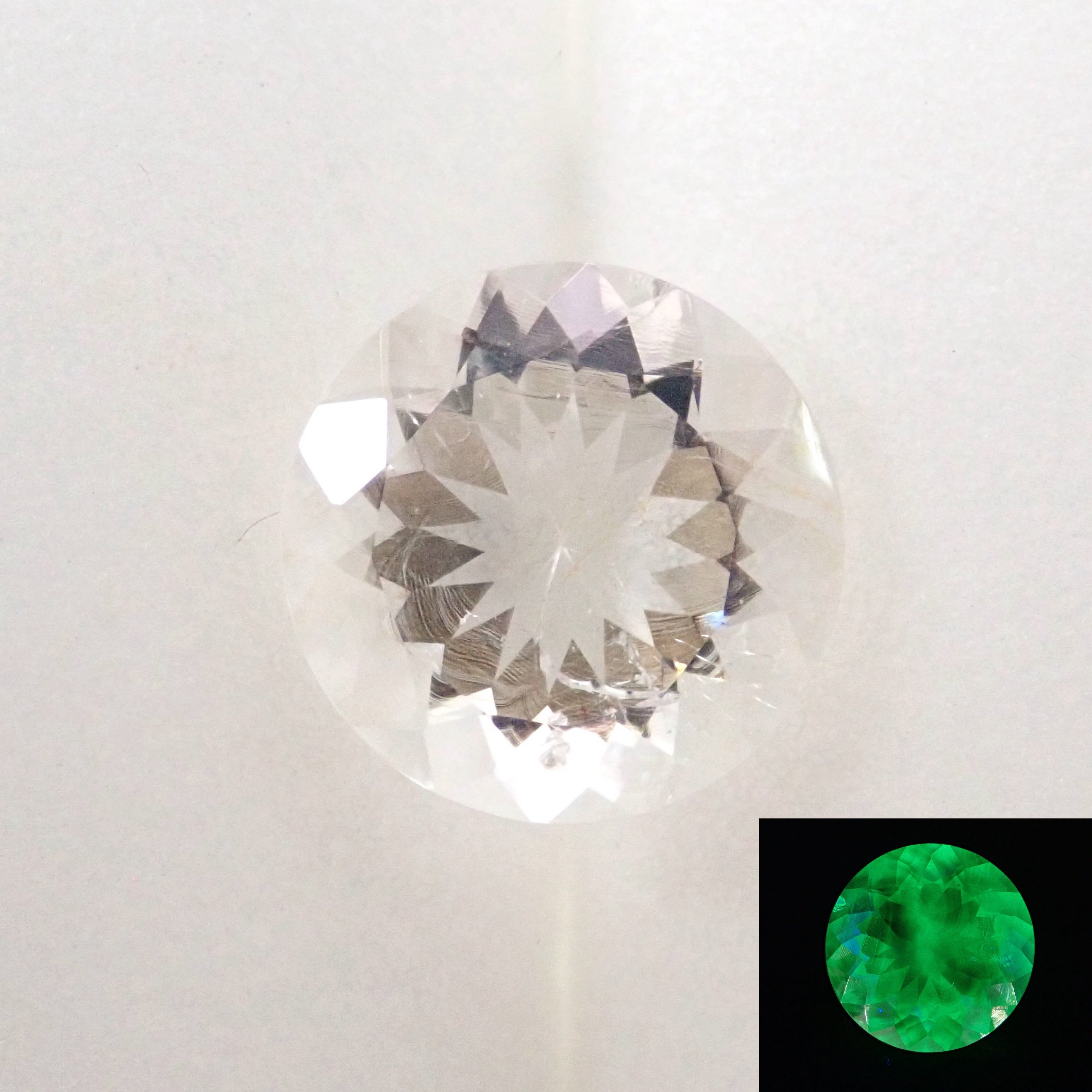 玻璃蛋白石暴露在黑光下時會發出薄荷綠色螢光。它是被稱為稀有寶石的寶石之一。顧名思義,它在礦物學上屬於蛋白石家族的一員,但它沒有變彩。使用黑光燈欣賞螢光。