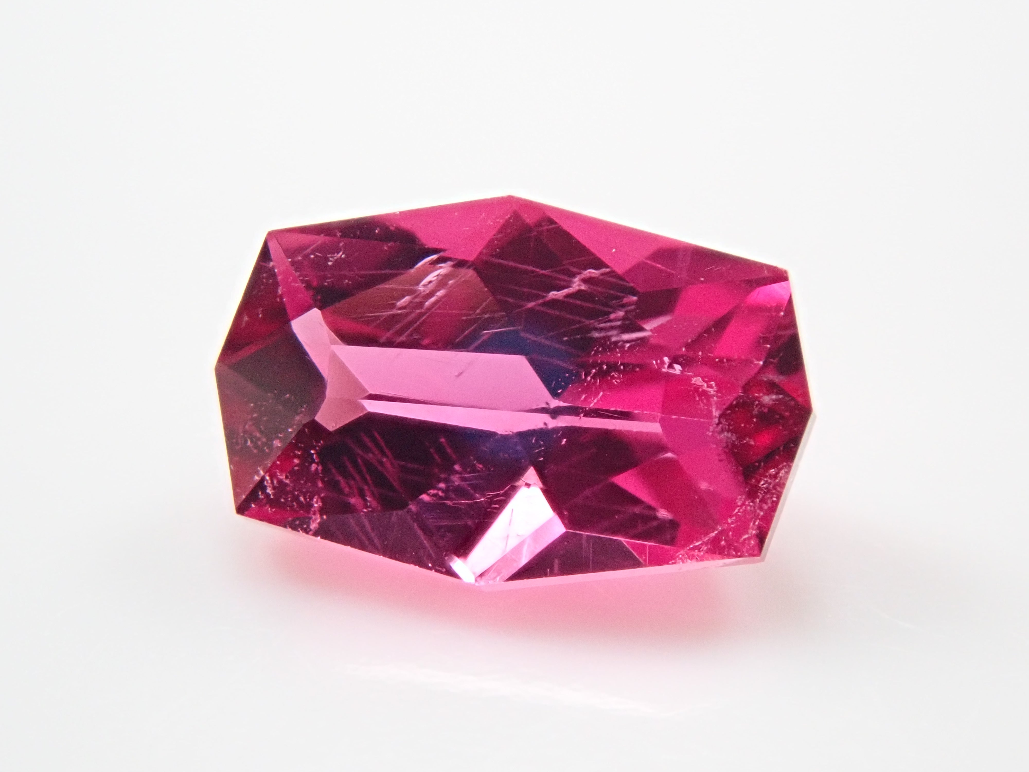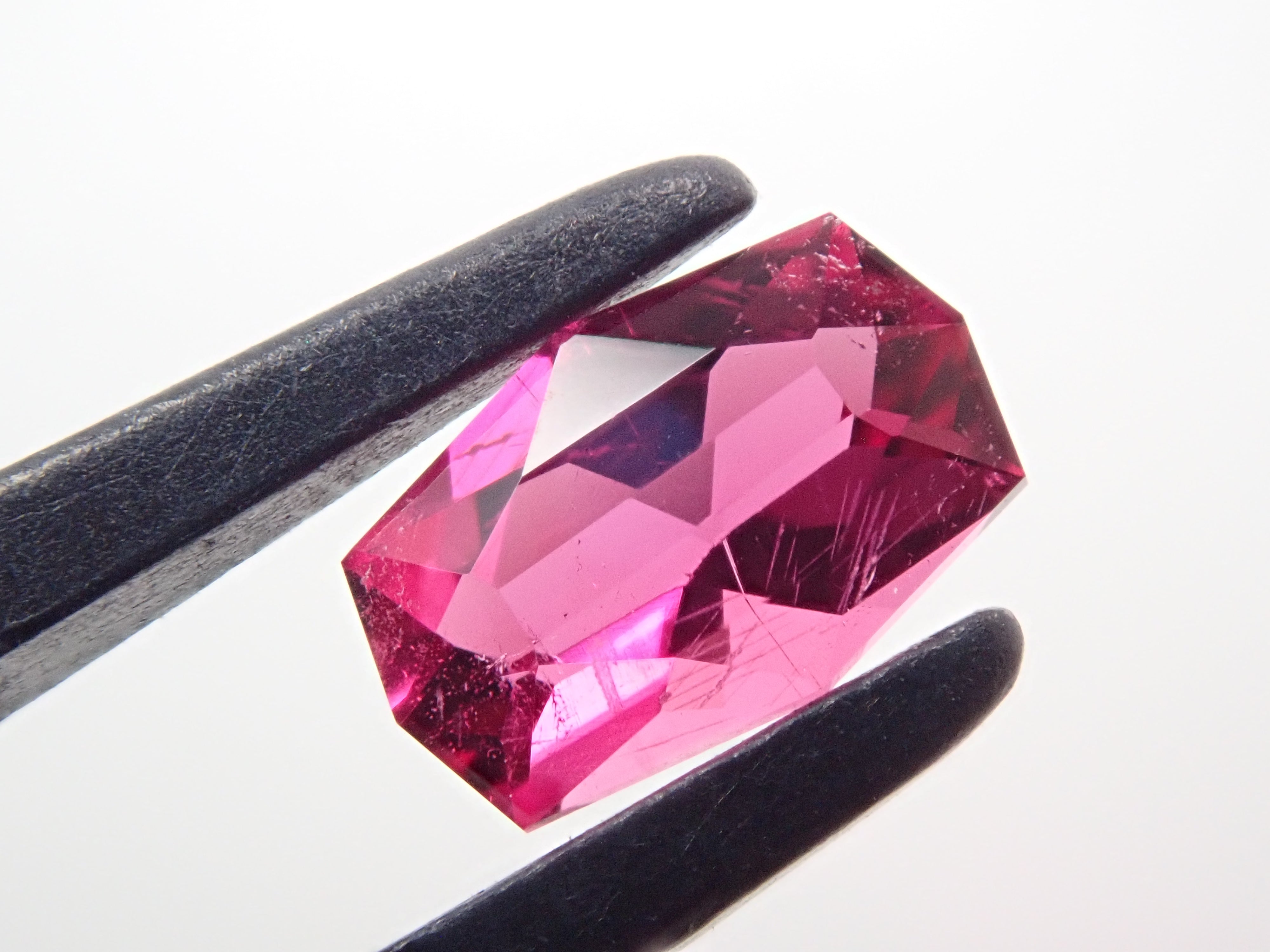 紅碧璽,一種迷人的蔓越莓色。它是碧璽的一種,指的是紅色碧璽。紅色碧璽中,具有一定顏色範圍的碧璽尤其被稱為紅碧璽。享受紅色到紫紅色粉紅色的清新光芒。由斯里蘭卡拋光師 Sanjay 切割。