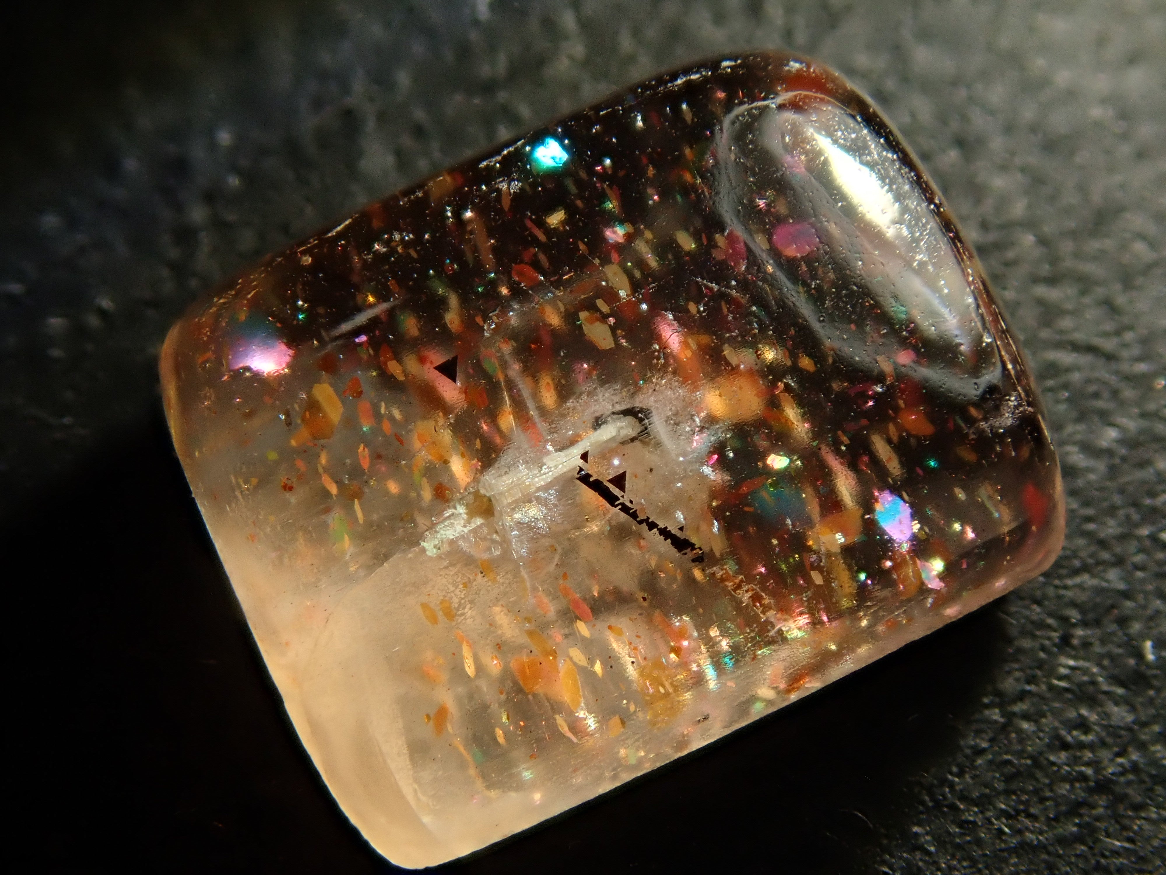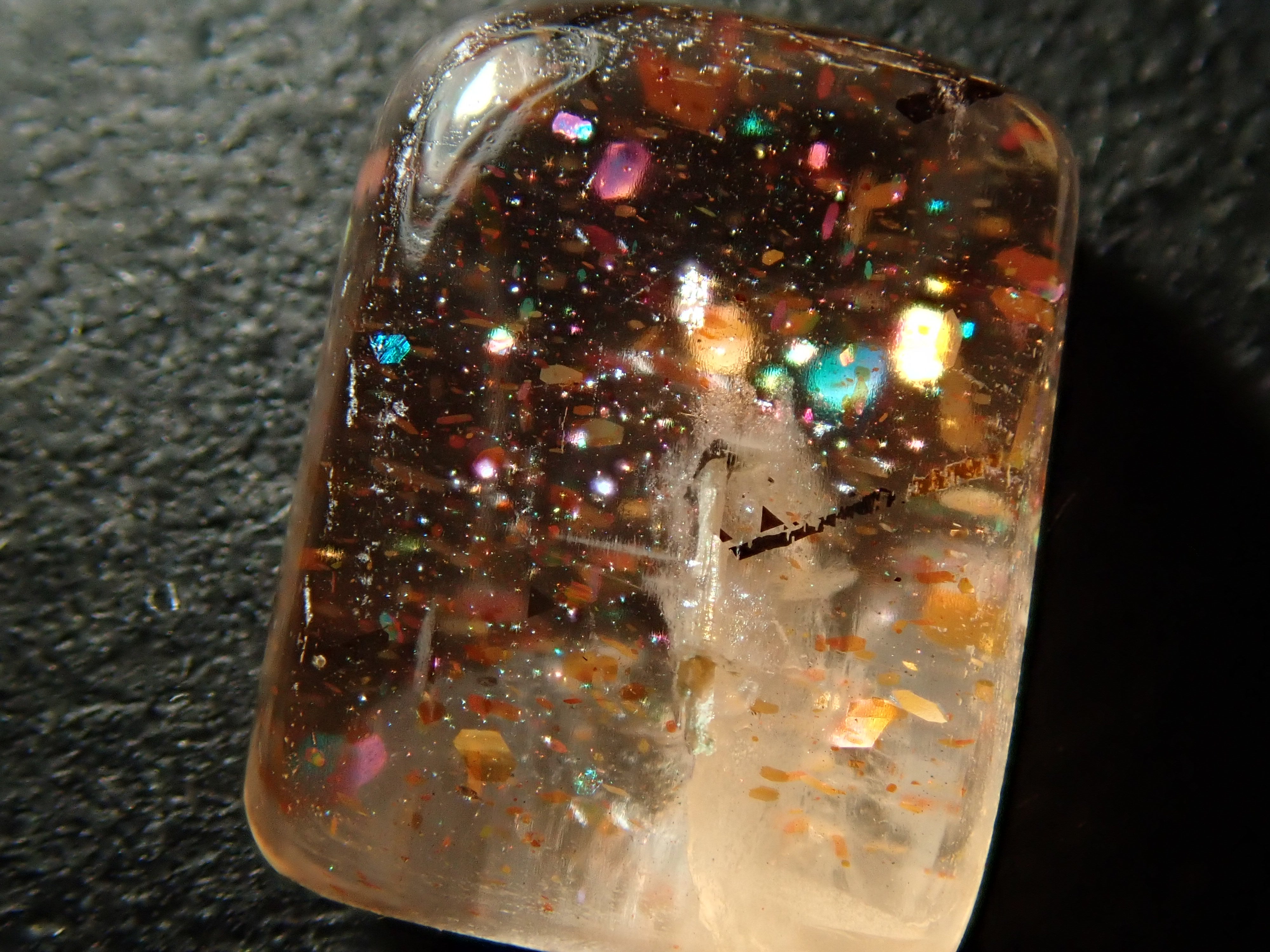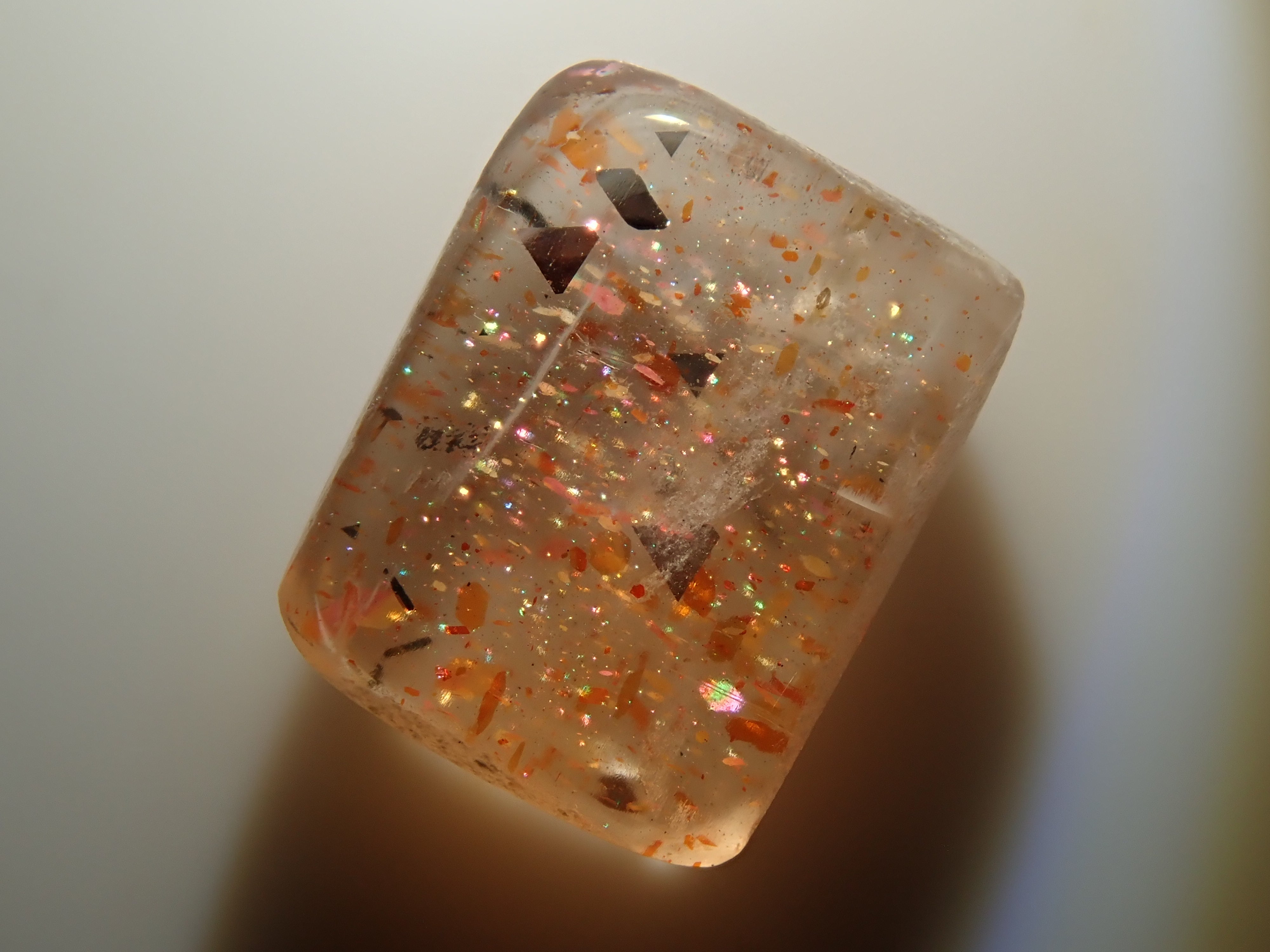 據說彩虹格子日光石是所有日光石中最稀有的。月光石的虹彩效果與彩虹晶格的結合極為罕見,據說是最稀有的日光石。它是屬於長石族的正長石類型,稱為彩虹晶格日光石(分佈名稱)。