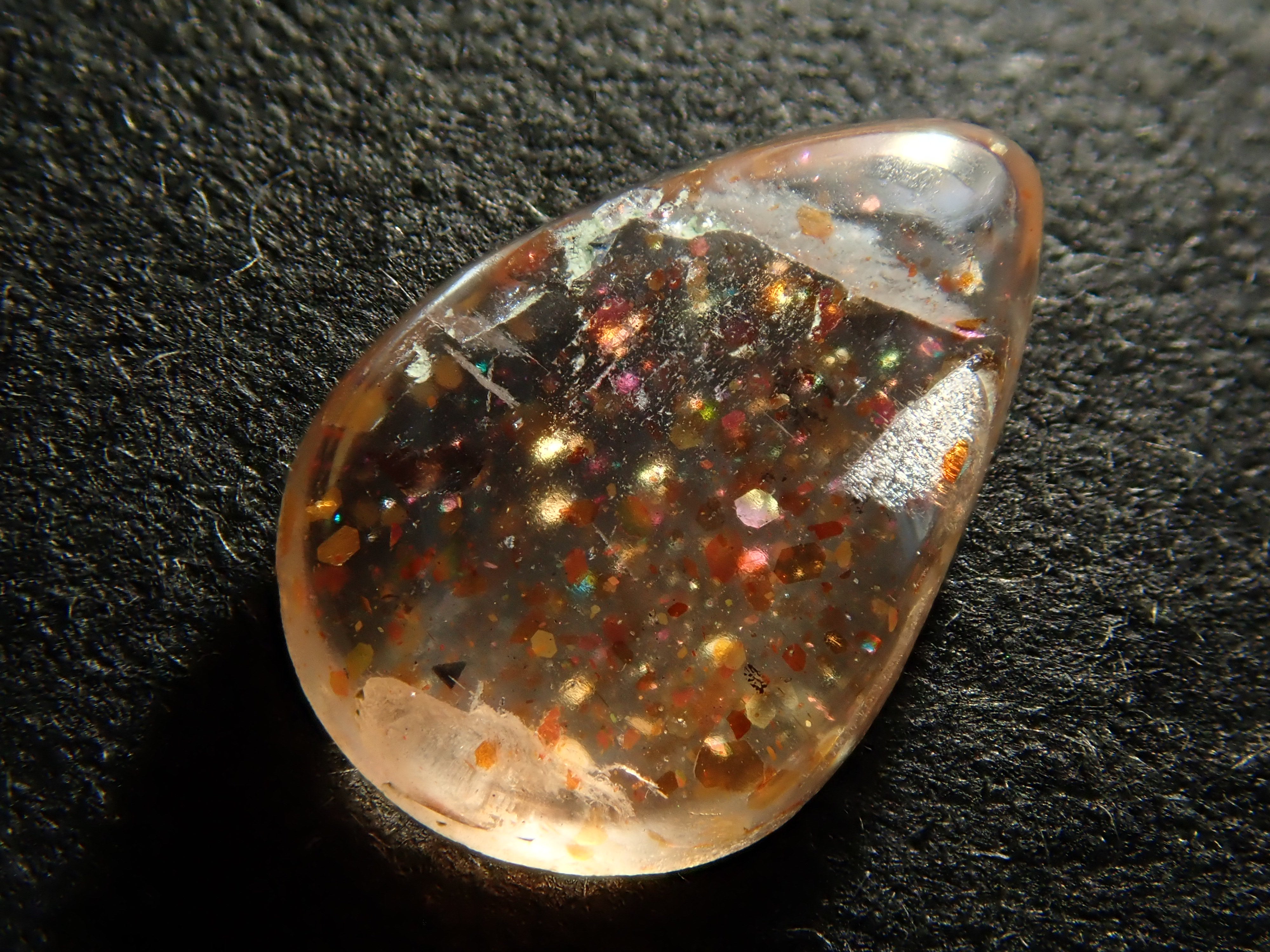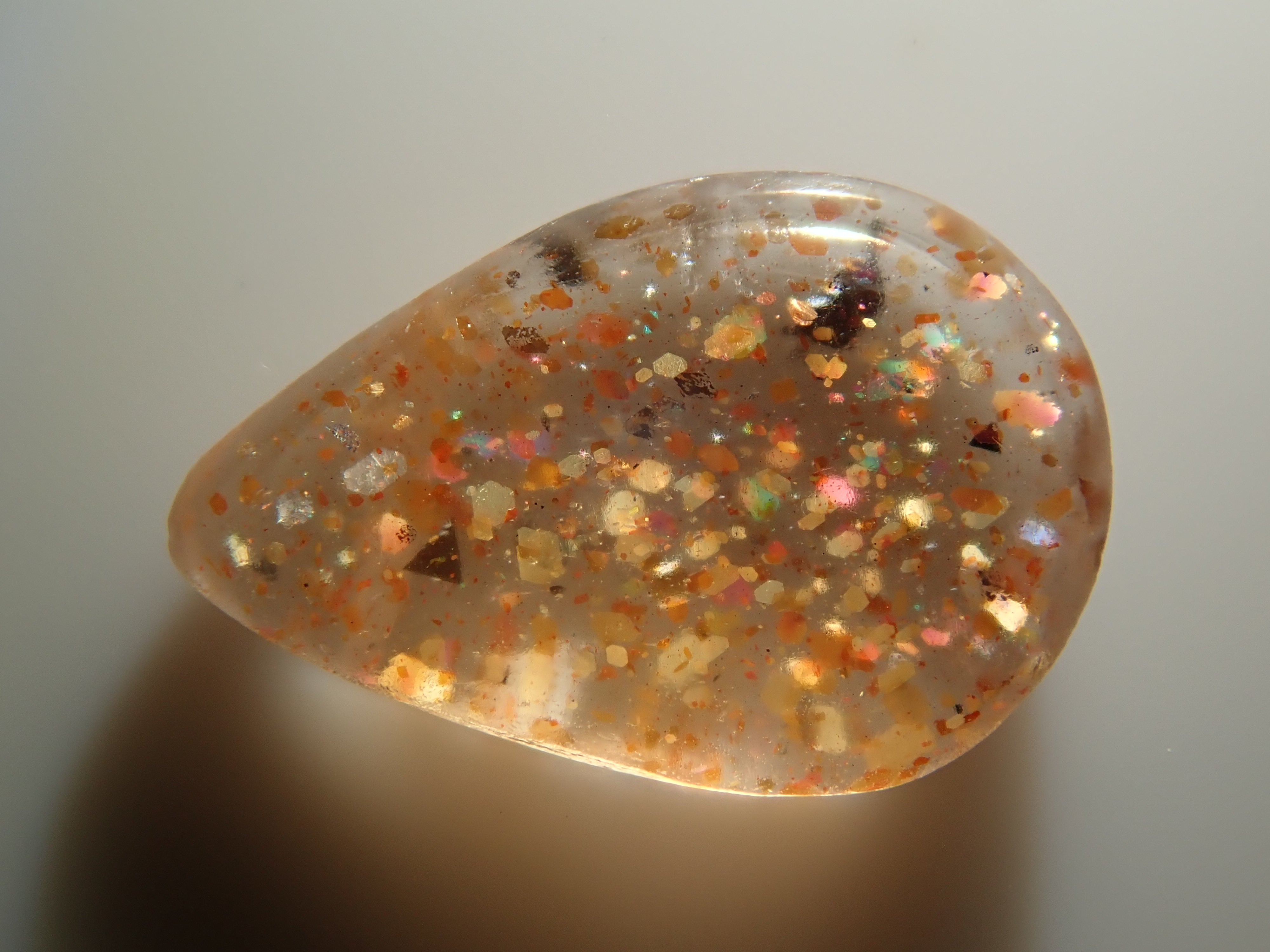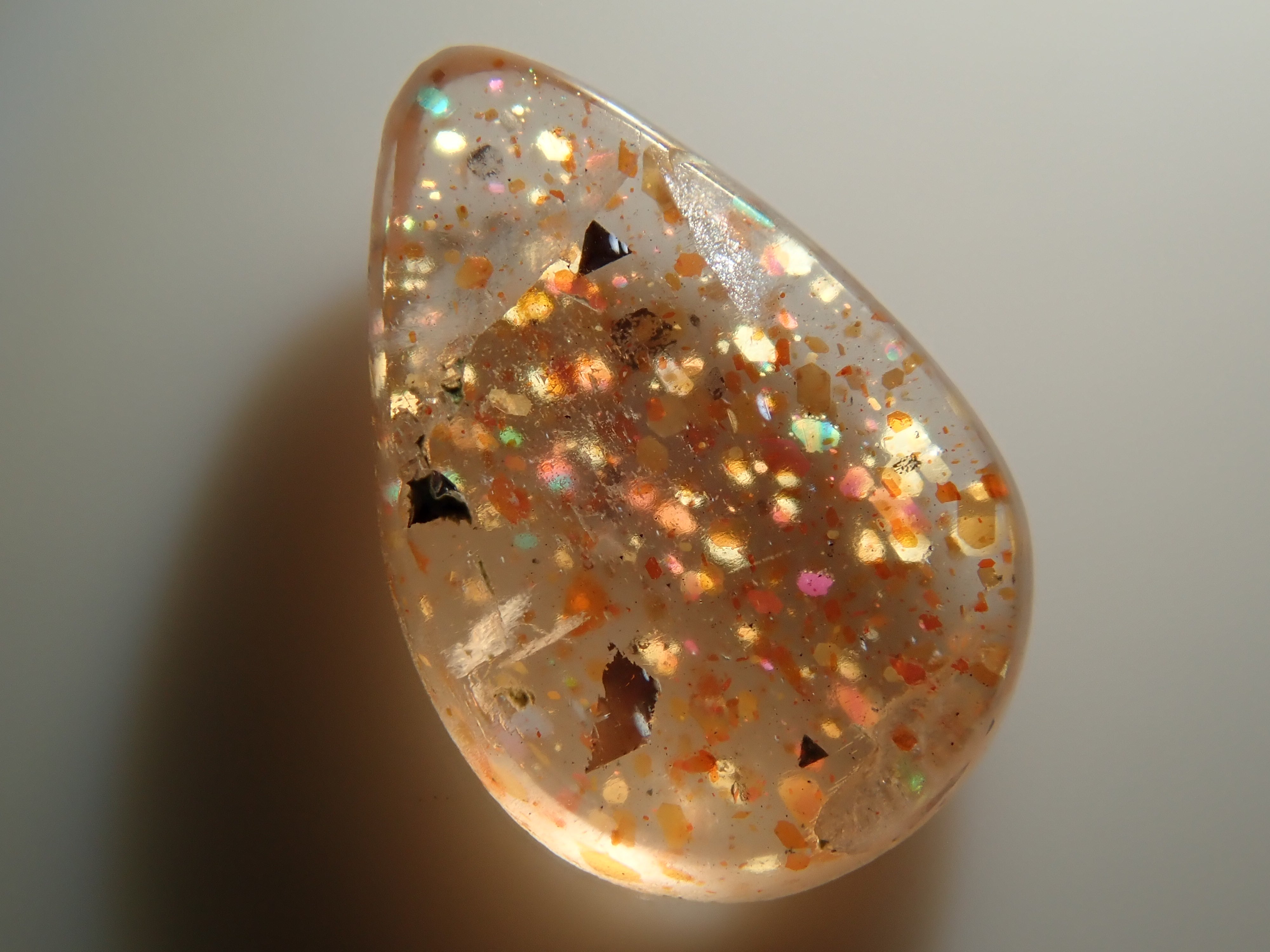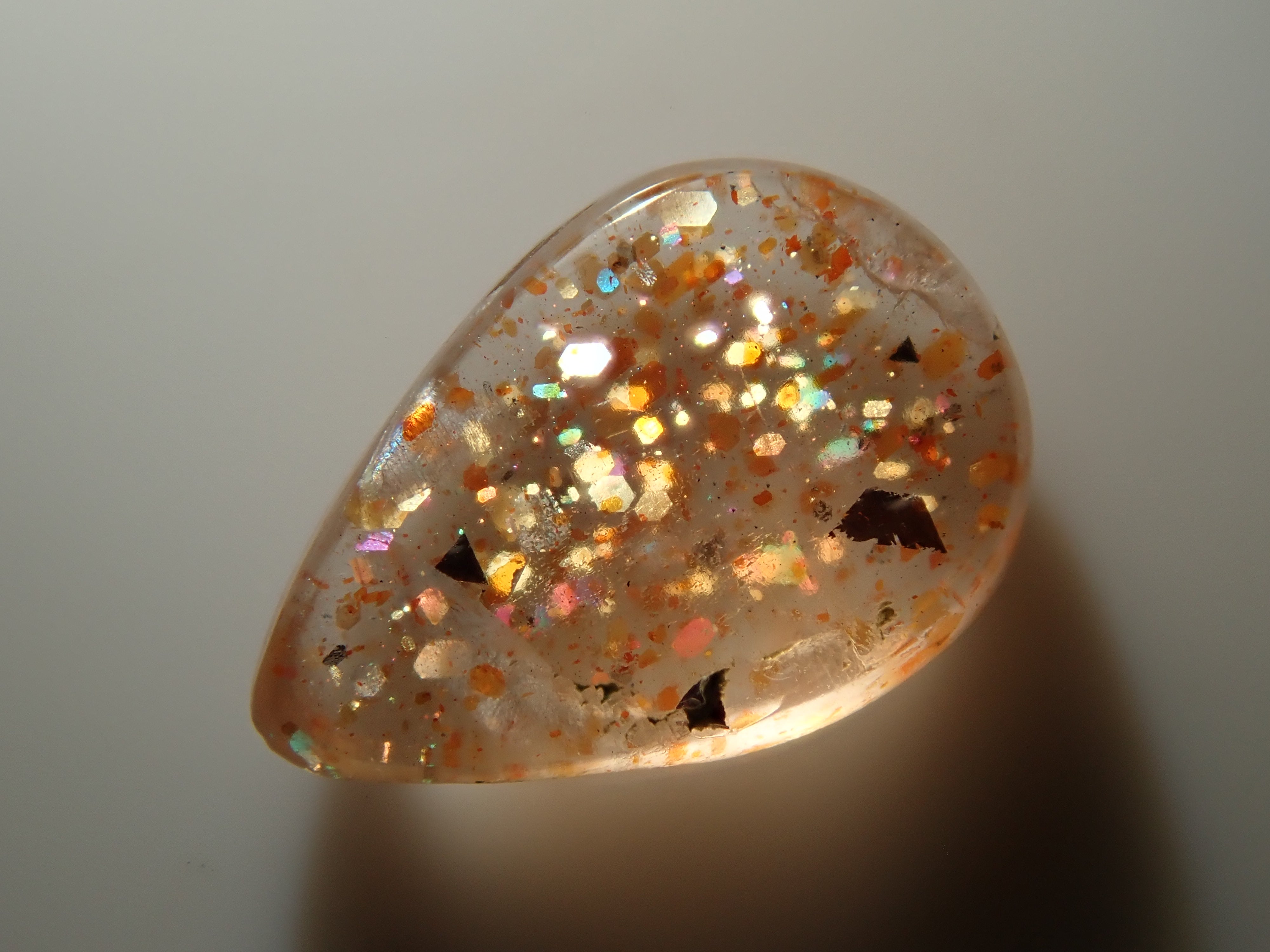 據說彩虹格子日光石是所有日光石中最稀有的。月光石的虹彩效果與彩虹晶格的結合極為罕見,據說是最稀有的日光石。它是屬於長石族的正長石類型,稱為彩虹晶格日光石(分佈名稱)。