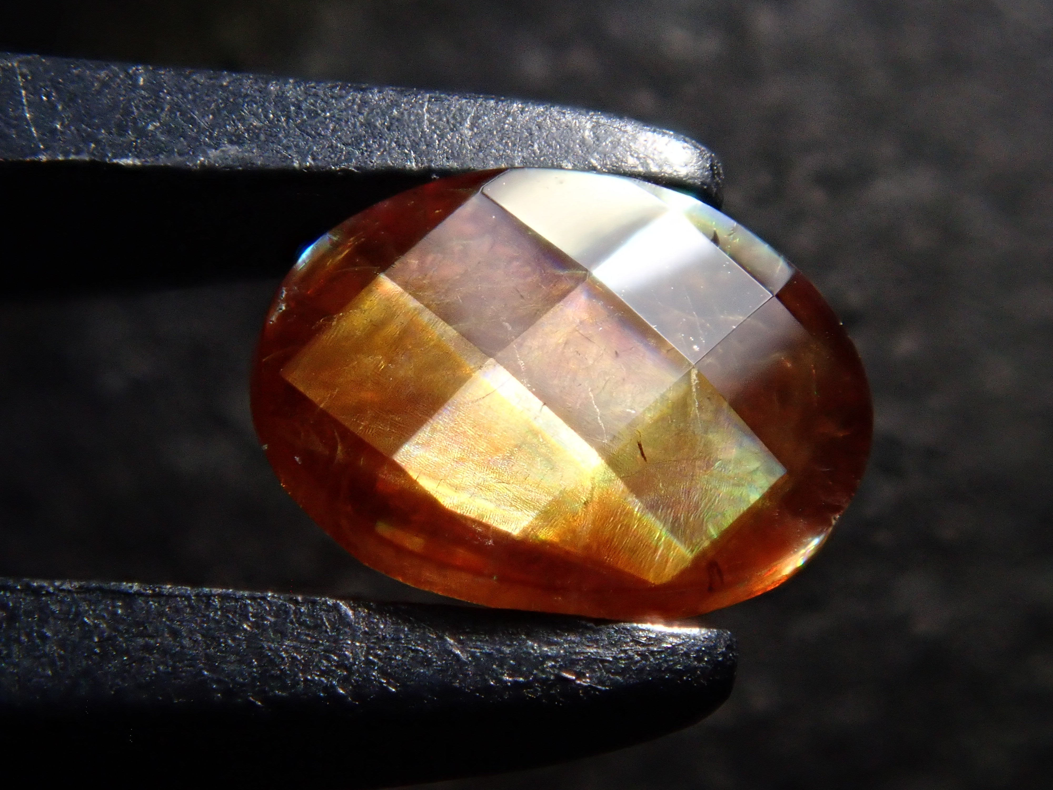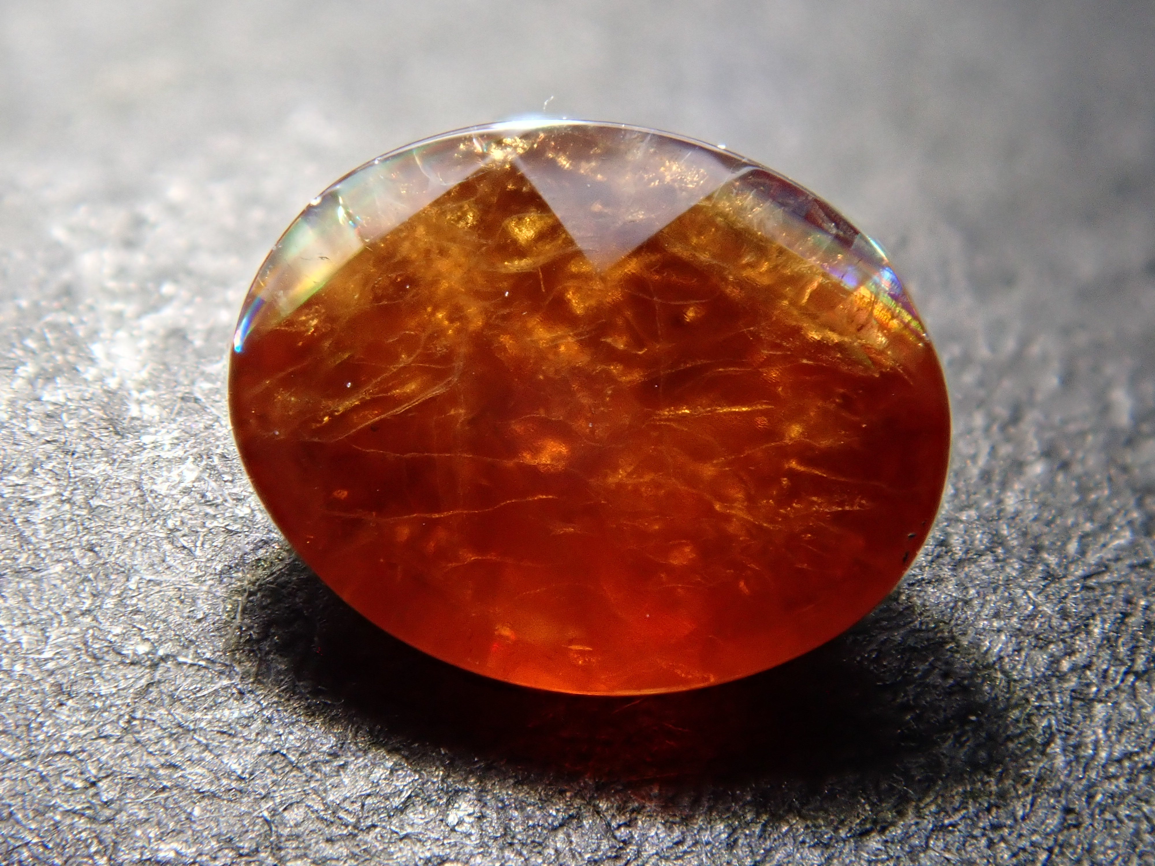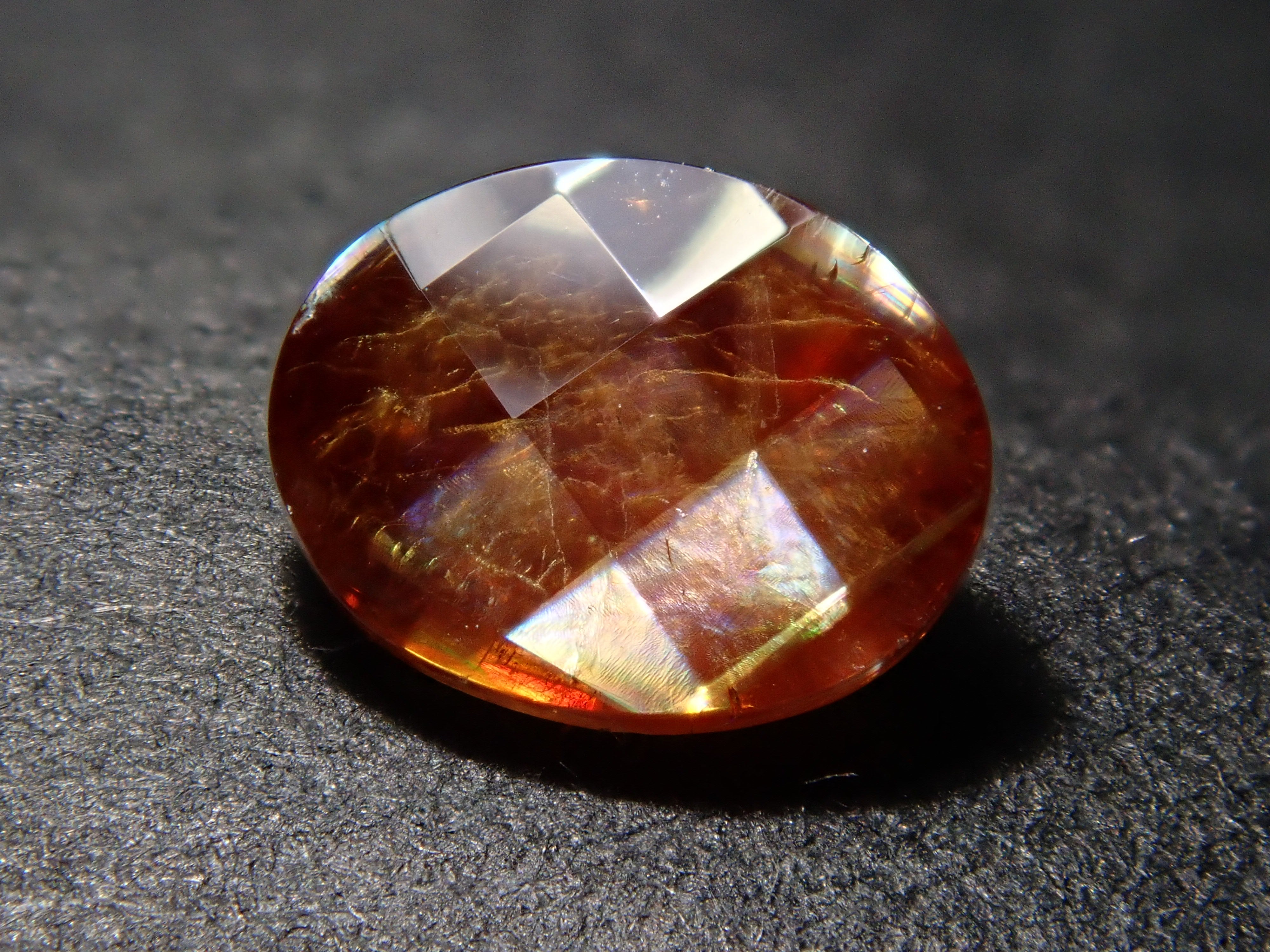 石榴石是一月的生日石。這是一種稍微不尋常的類型,您可以看到虹彩效果。由於其外觀,它被俗稱為“彩虹石榴石”和“虹彩鈣鐵榴石石榴石”。這是產自奈良縣天川村的彩虹石榴石(鈣鐵榴石石榴石)。 這是一種鬆散刻面切工,這對於彩虹石榴石來說是罕見的。