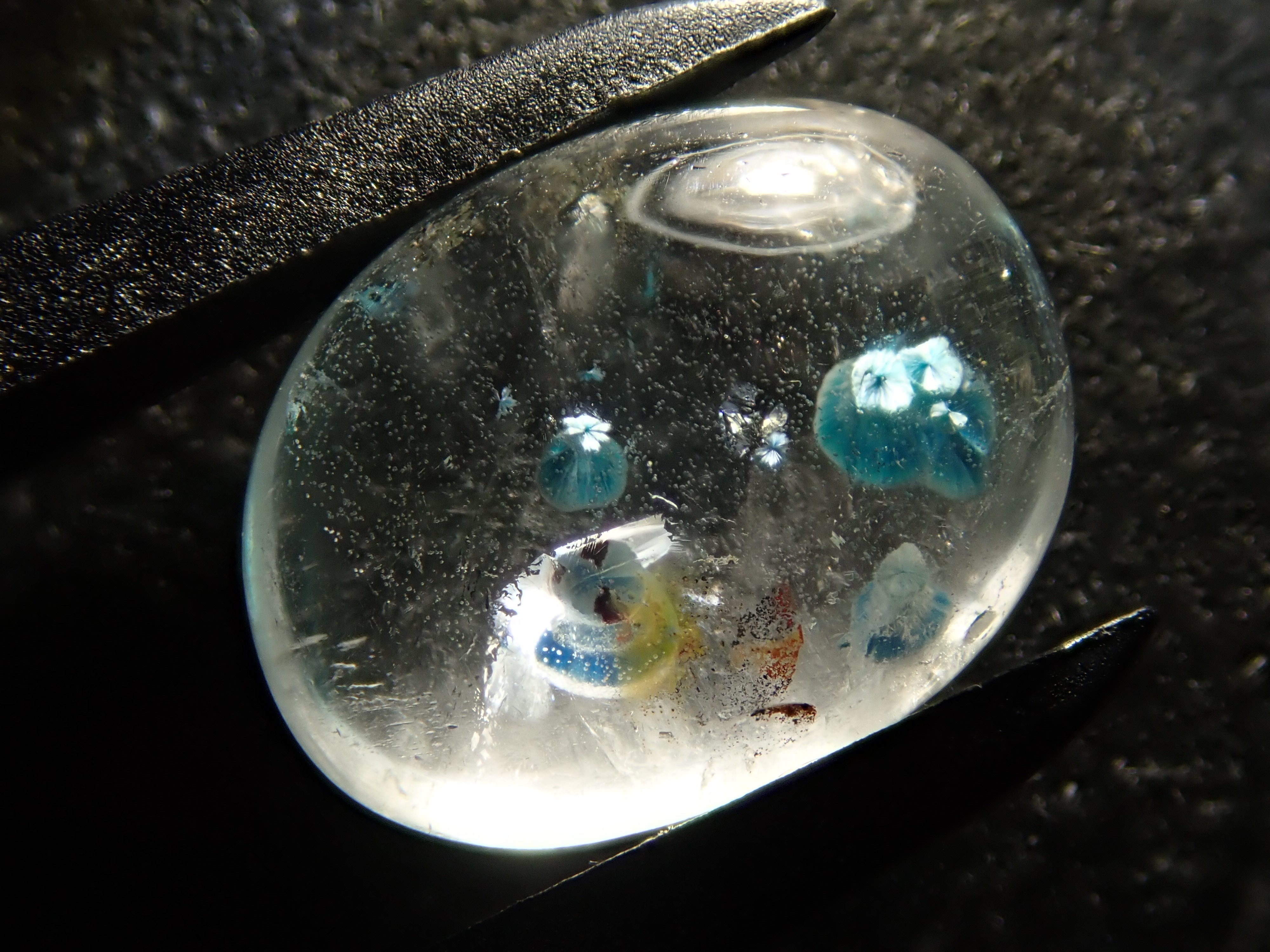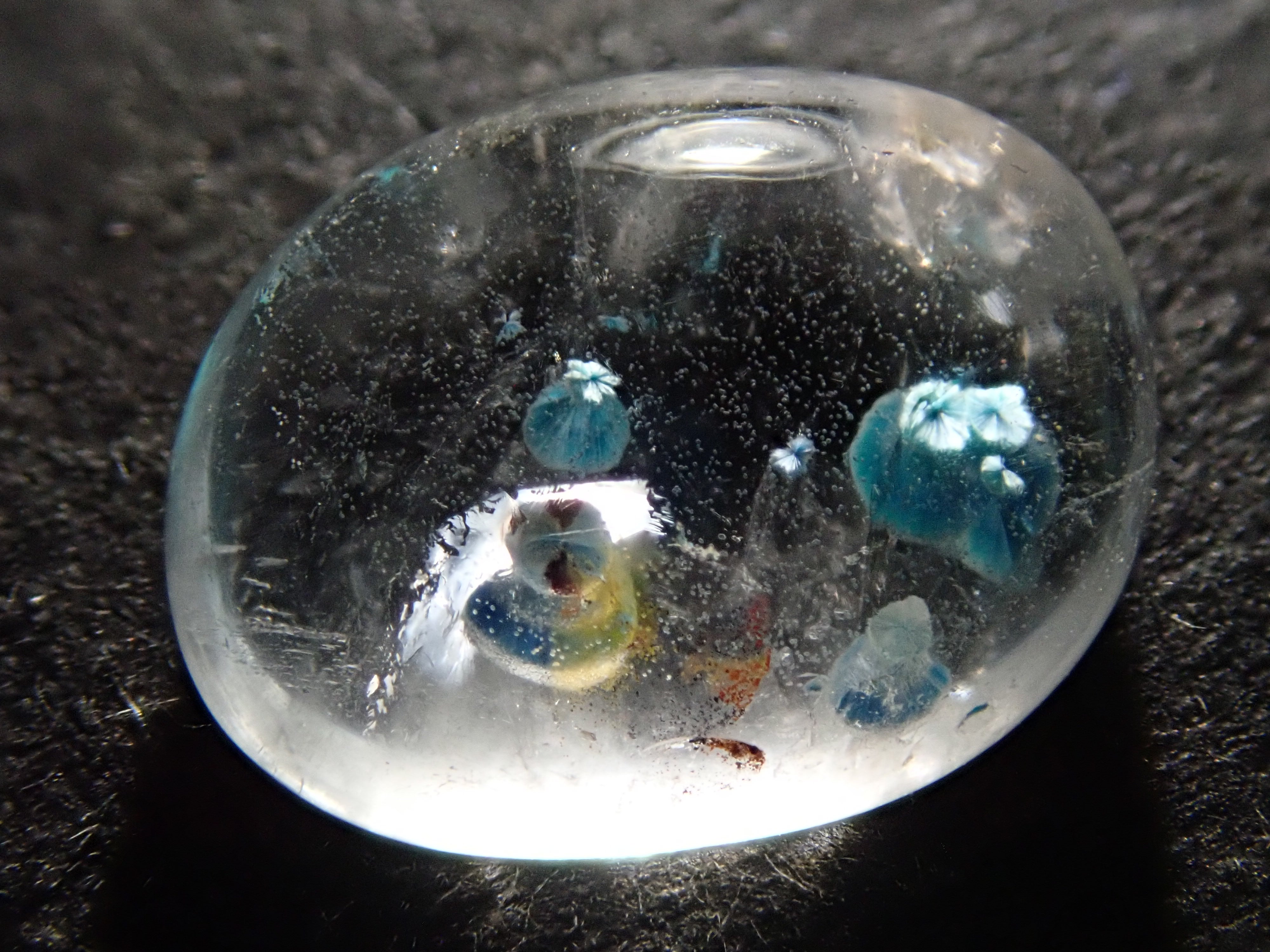 美杜莎石英的晶體內含有吉拉瑞特礦物的內含物。它有時在石英中被稱為 Gilalite,但 GIA 說內含物看起來像水母,稱為“美杜莎水母”,因此被稱為“美杜莎石英”。此外,它是一種寶石,有幾個常見的名稱,包括讓人想起帕拉伊巴碧璽的美麗藍色,以及產於出產帕拉伊巴碧璽的巴西帕拉伊巴州的事實,例如“帕拉伊巴石英」。請盡情享受石頭中展開的神秘而美麗的世界。這是來自巴西的高度透明的美杜莎石英(帕拉伊巴石英)。